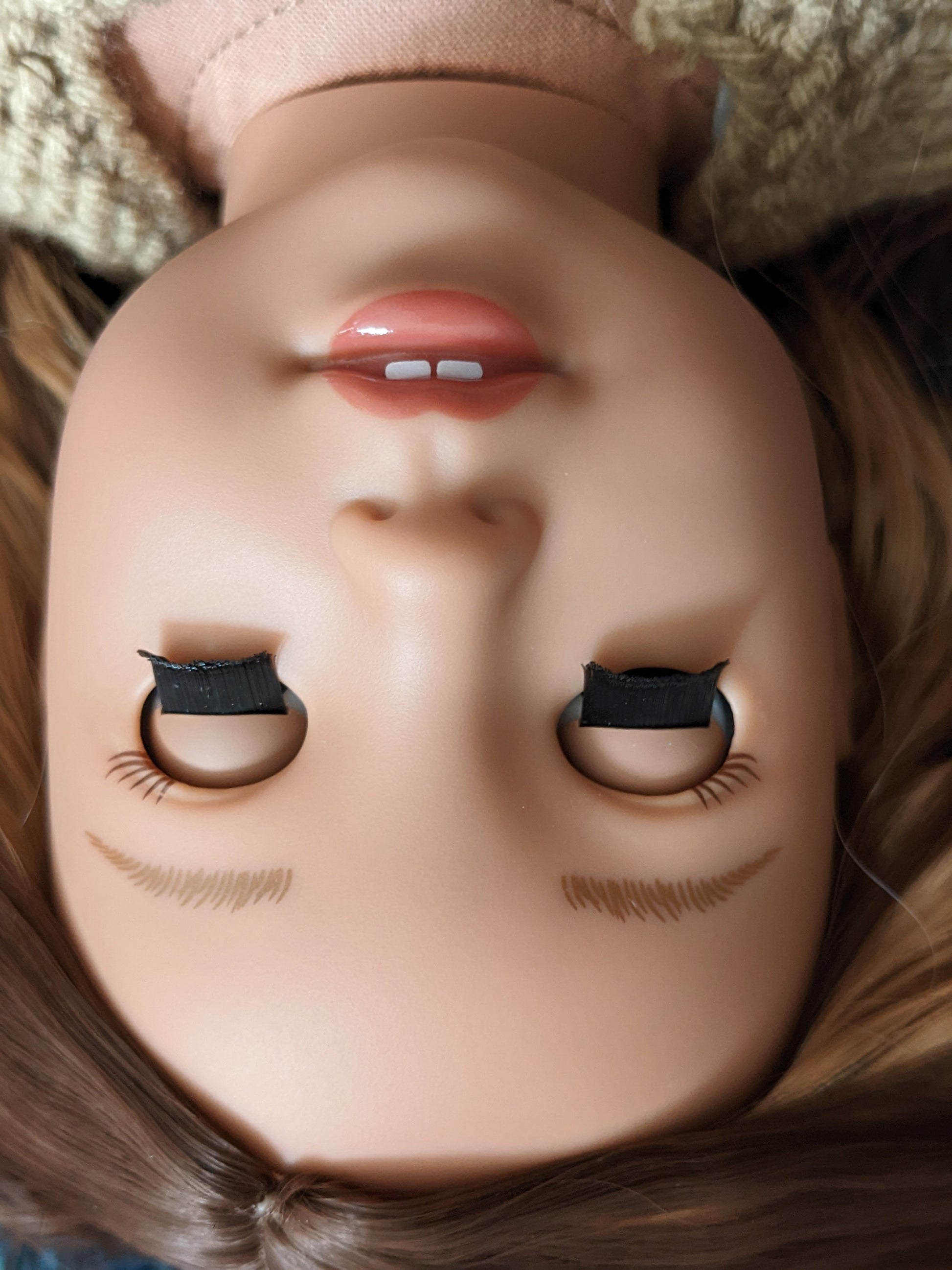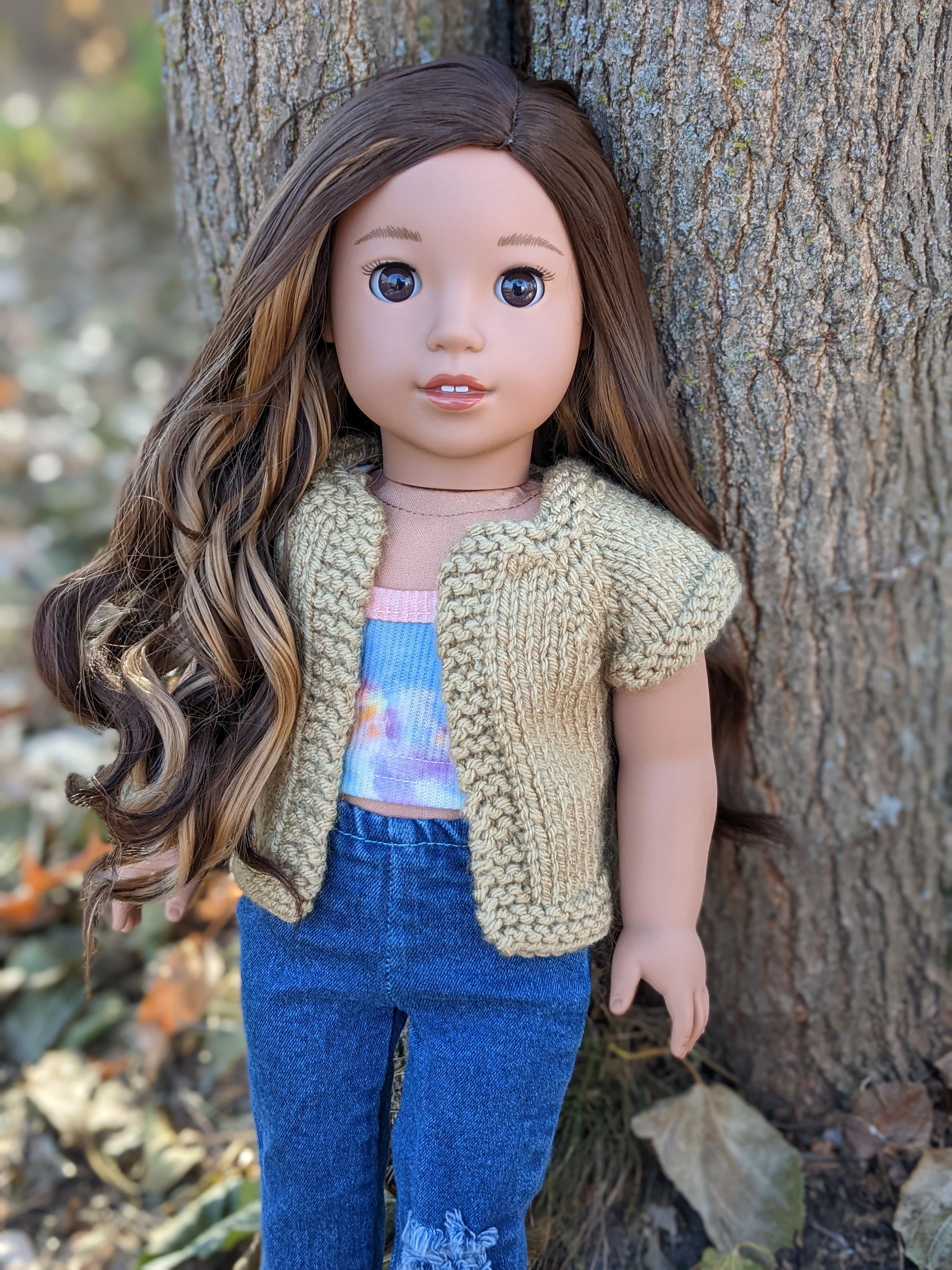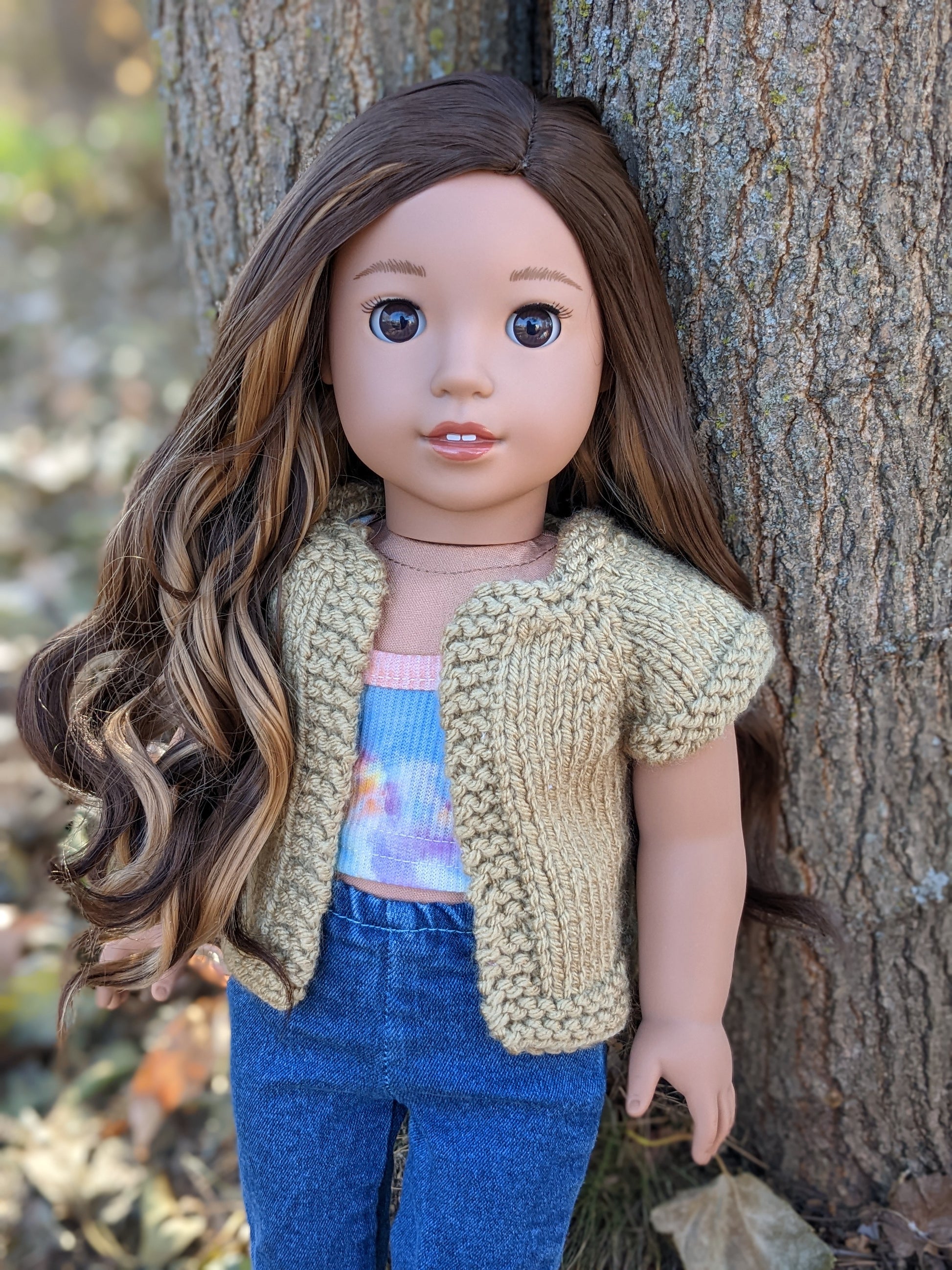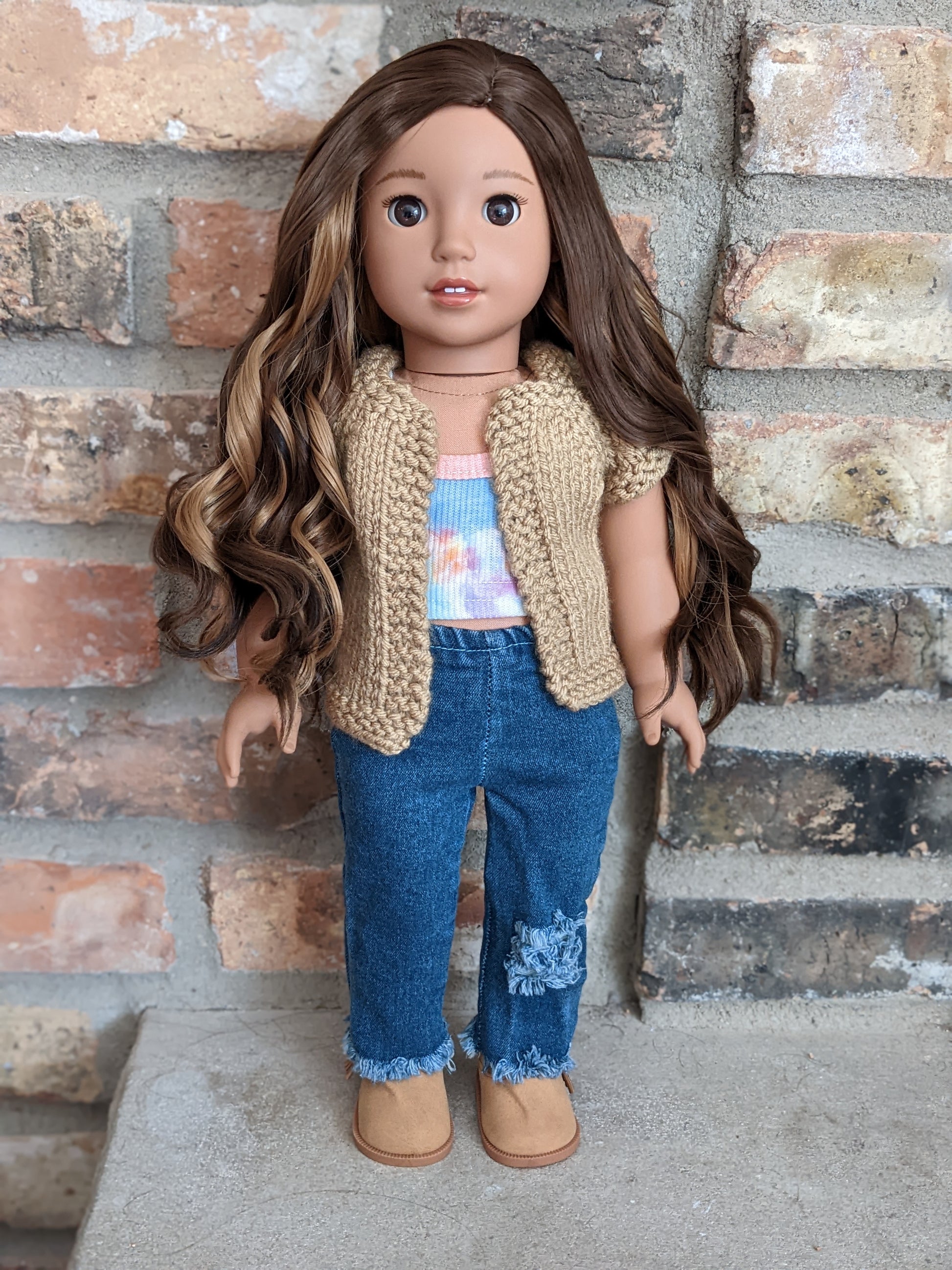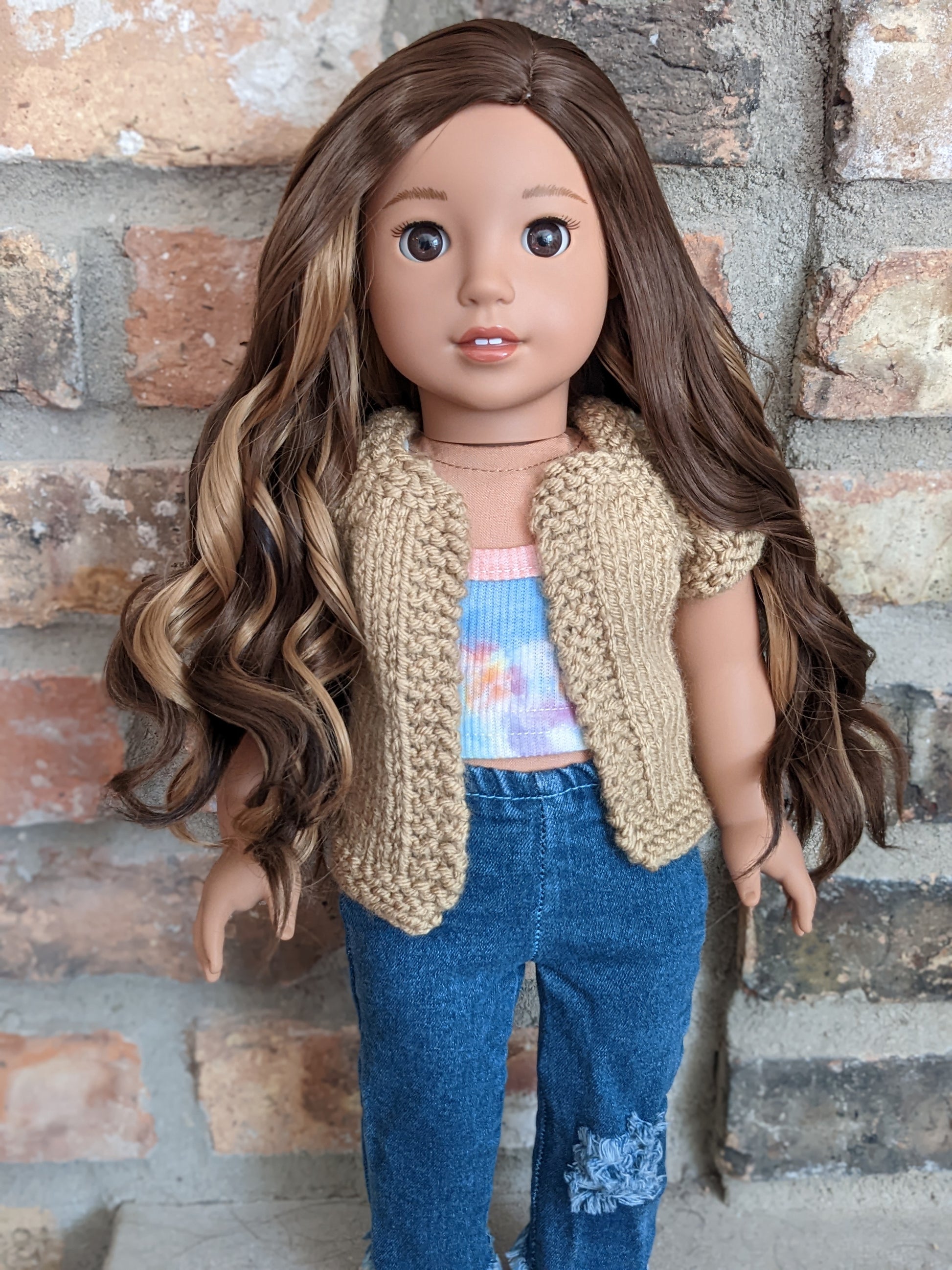 This one of a kind OOAK custom American Girl doll was created with a brand new Truly Me 120 doll, a brown multi toned wig, and brown eyes. She has lip gloss that was hand painted and sealed. She may have some minor shine marks from handling. She comes with the outfit pictured. Her bottom painted on eyelashes have been removed.