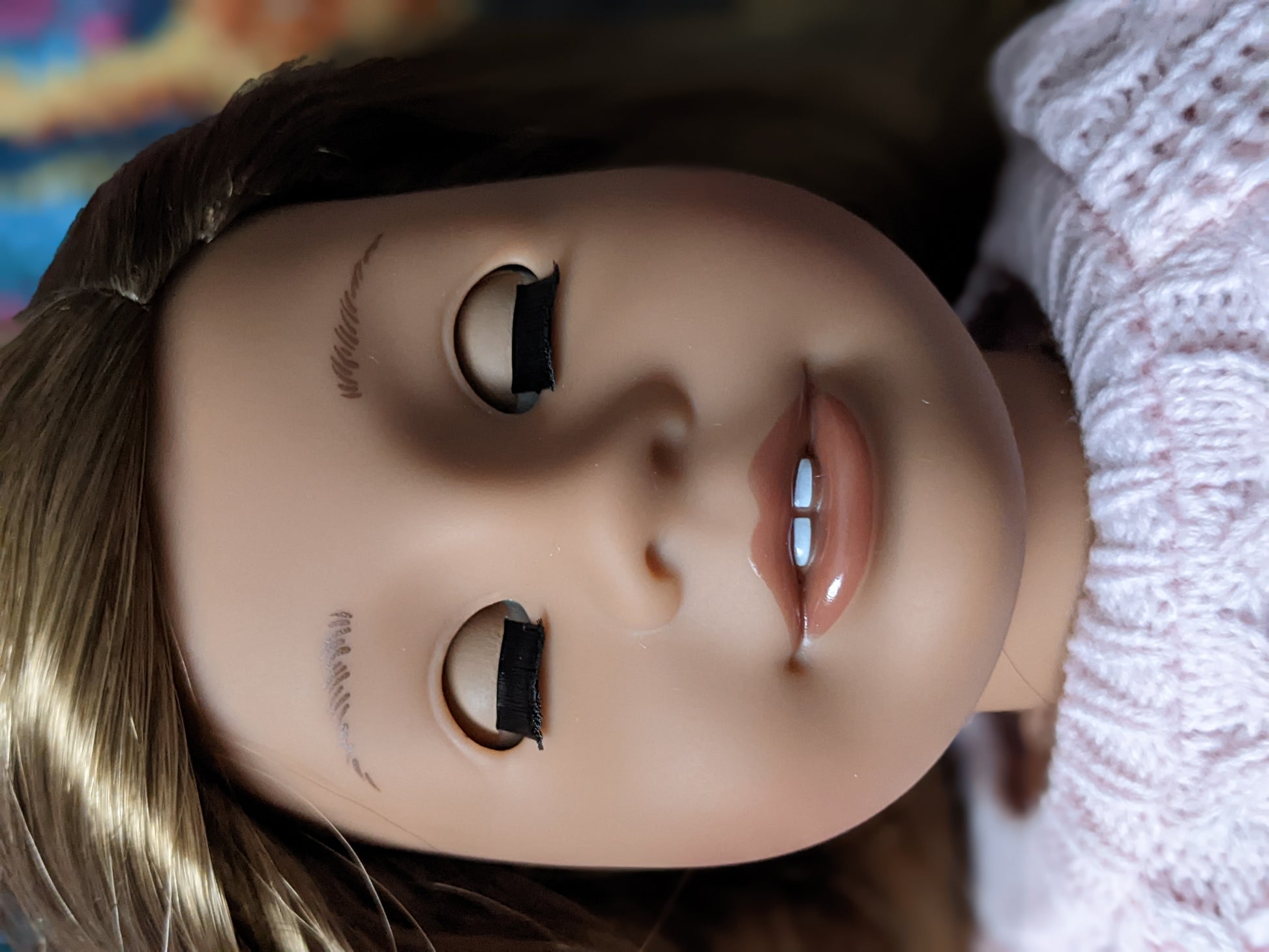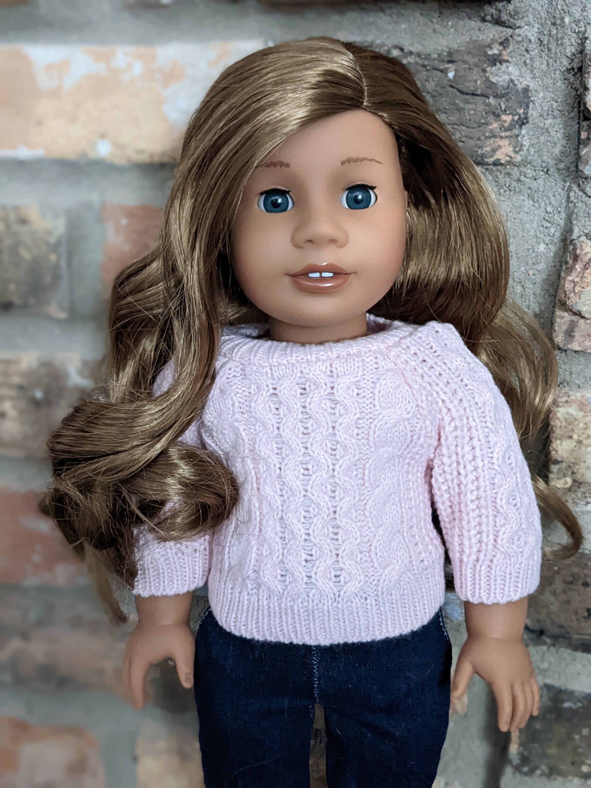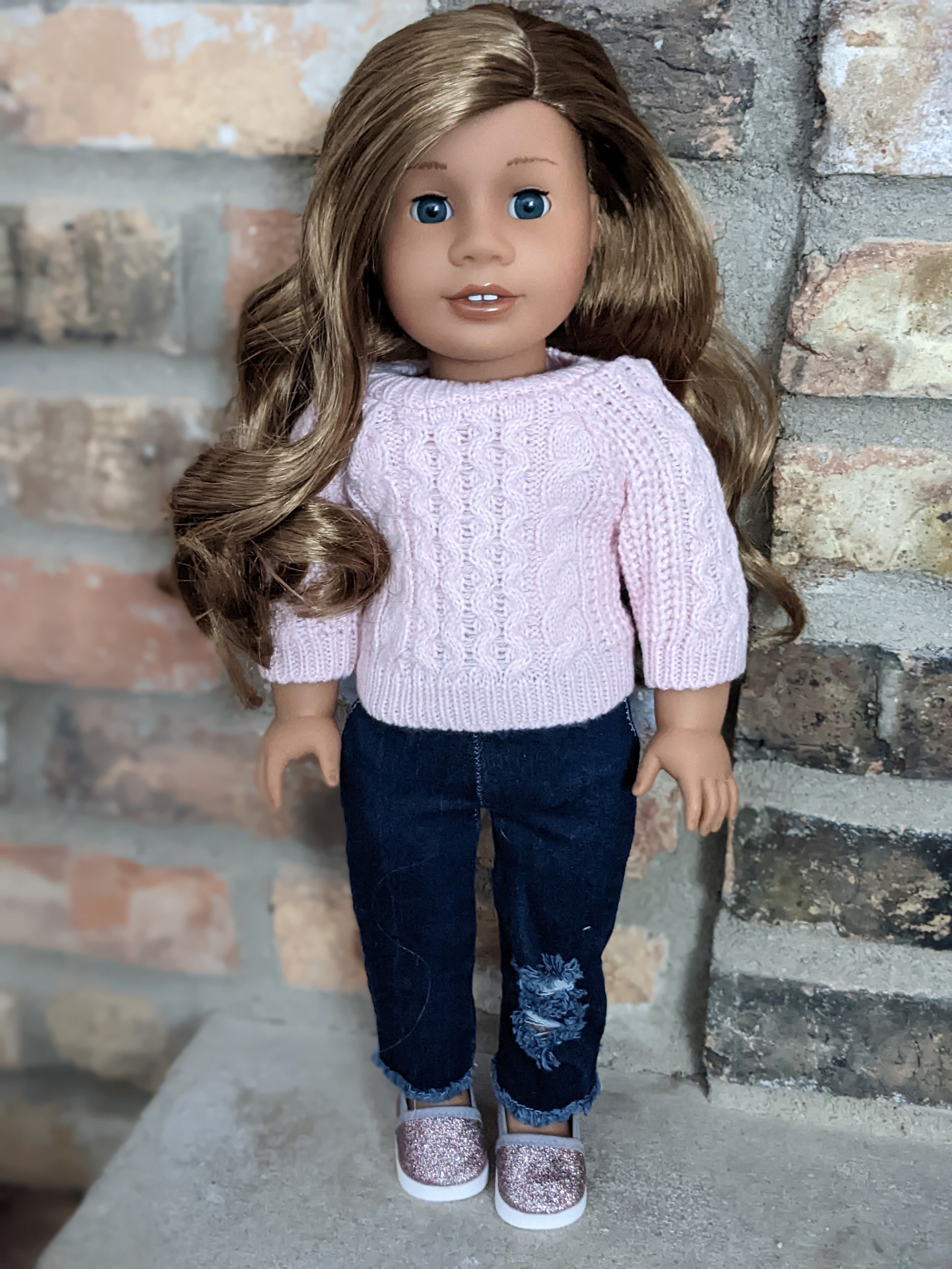 This one of a kind OOAK custom American Girl doll was created with a brand new TM doll, a caramel brown wig from a new TM doll, and dark blue eyes. She has lip gloss that was hand painted and sealed. She may have some minor shine marks from handling. She comes with the outfit pictured. She has the microfiber cloth body with permapanties and a tiny x on her bum.