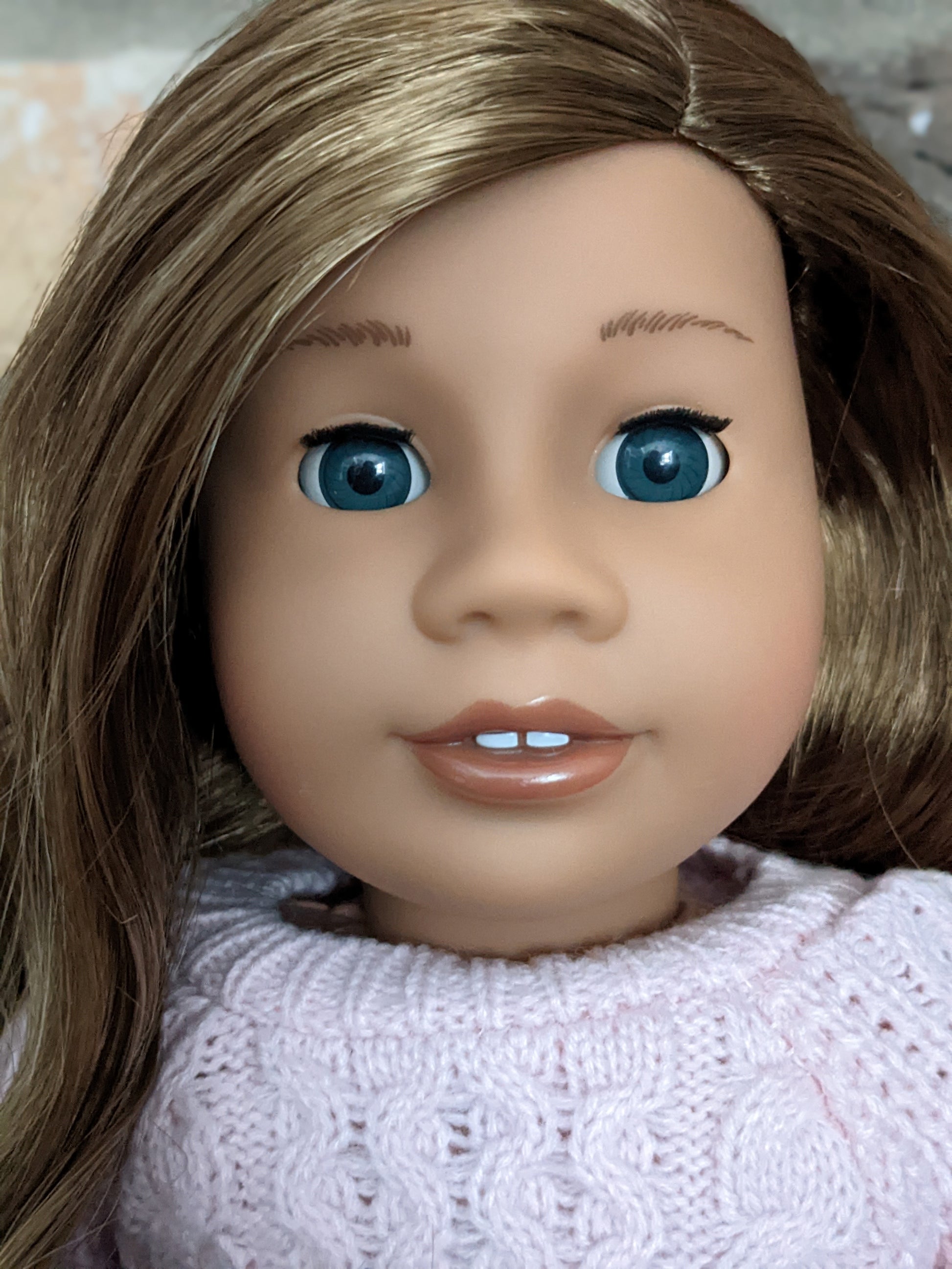 Alondra - caramel brown hair, dark blue eyes, medium skin tone, Addy face mold