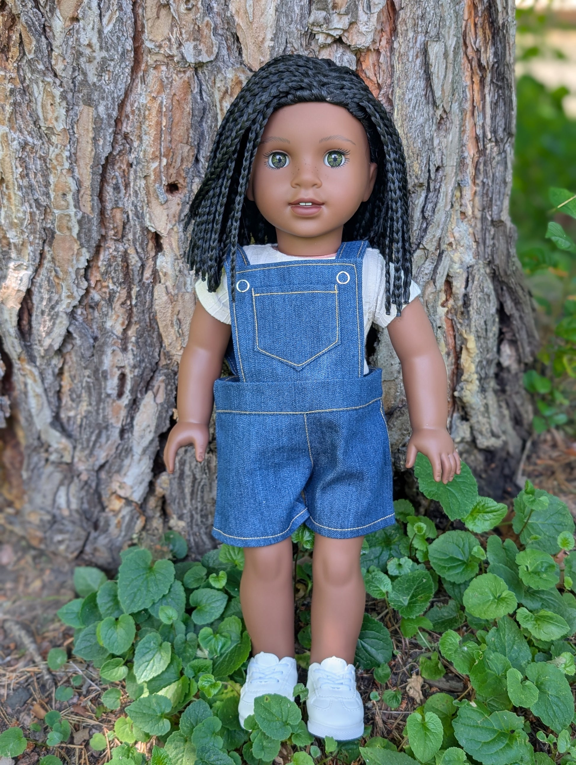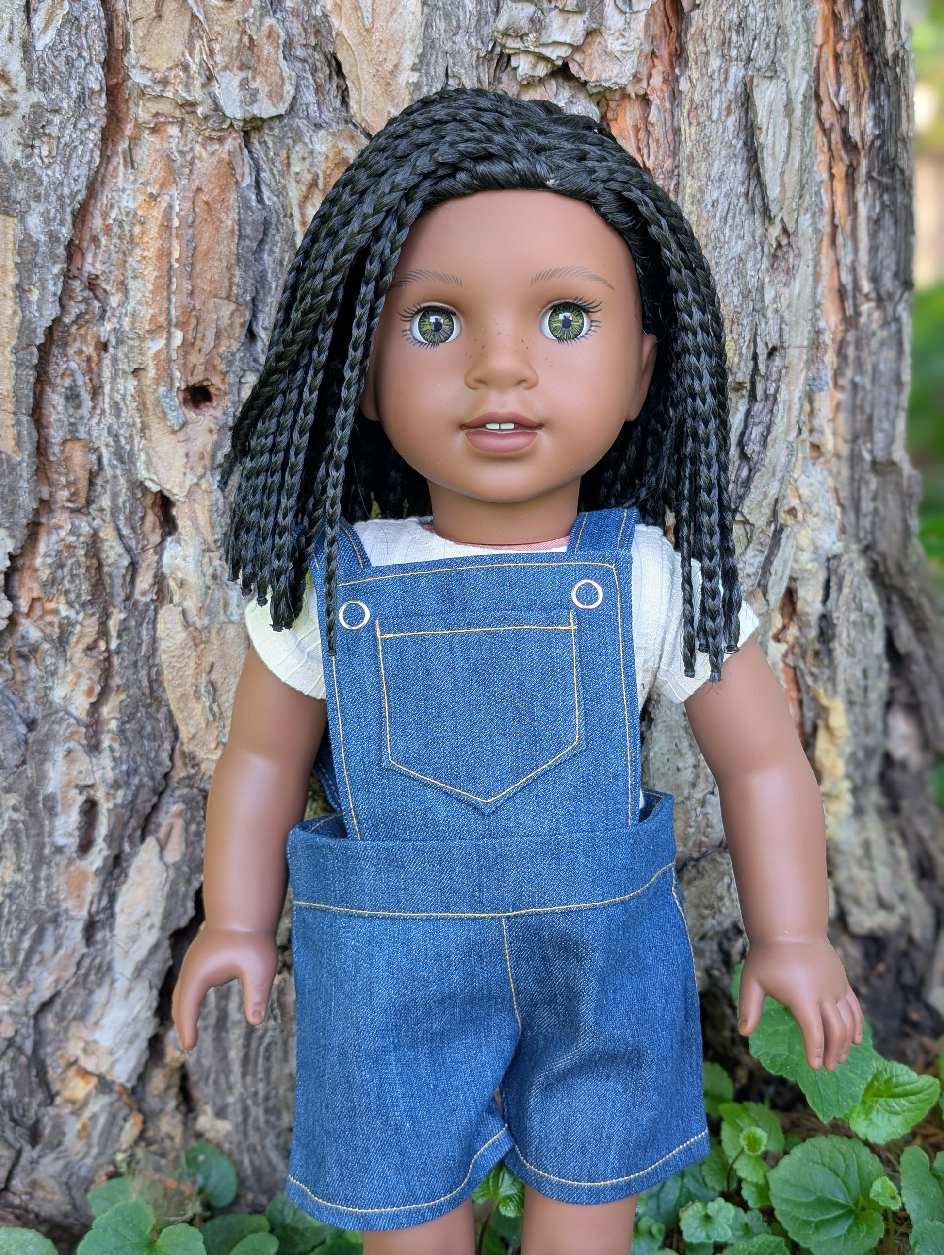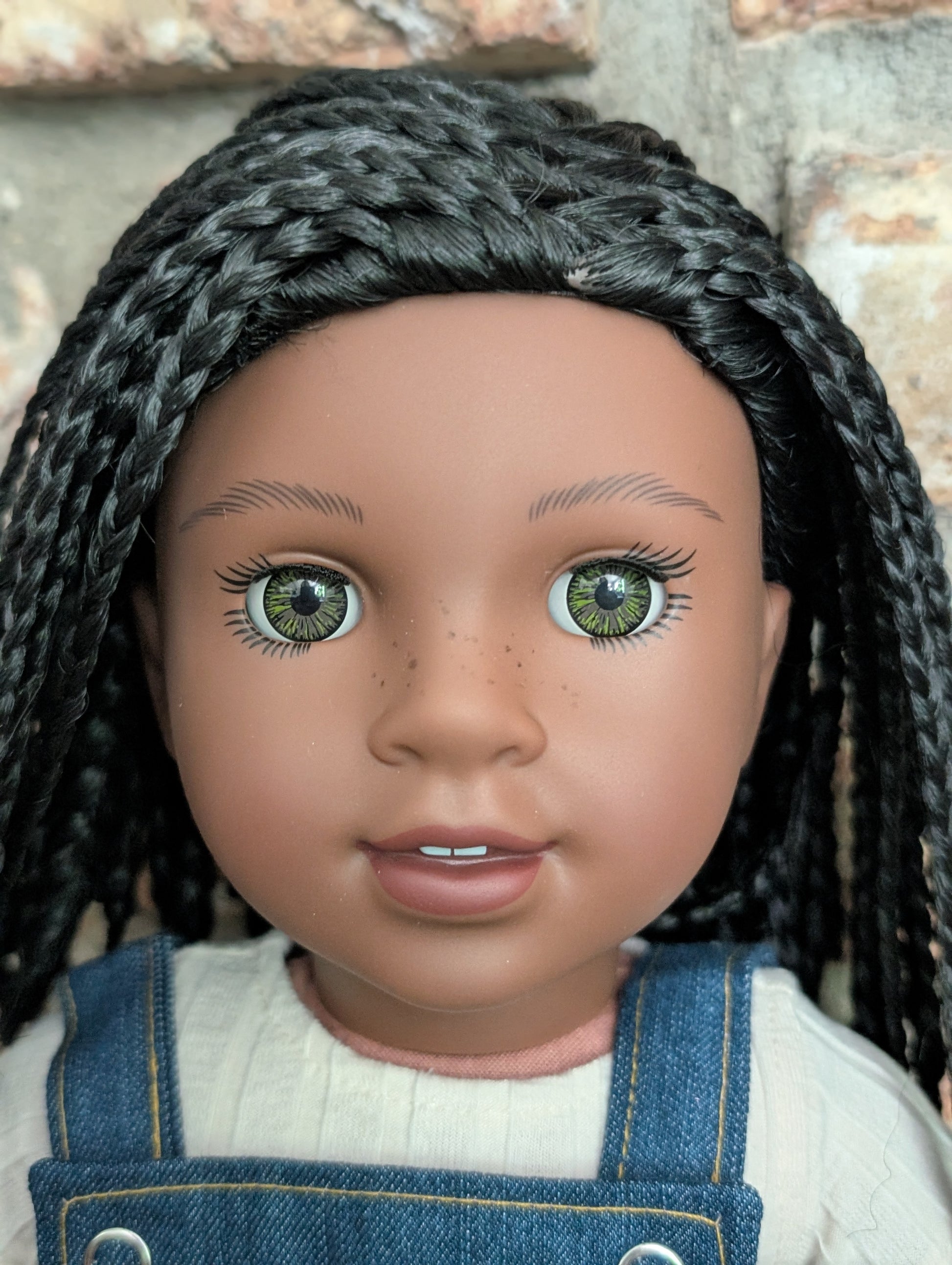 This one of a kind OOAK custom American Girl doll was created with a brand new doll, a black wig, and hazel eyes. She has freckles that were hand painted and sealed. She may have some minor shine marks from handling. She comes with the outfit pictured.