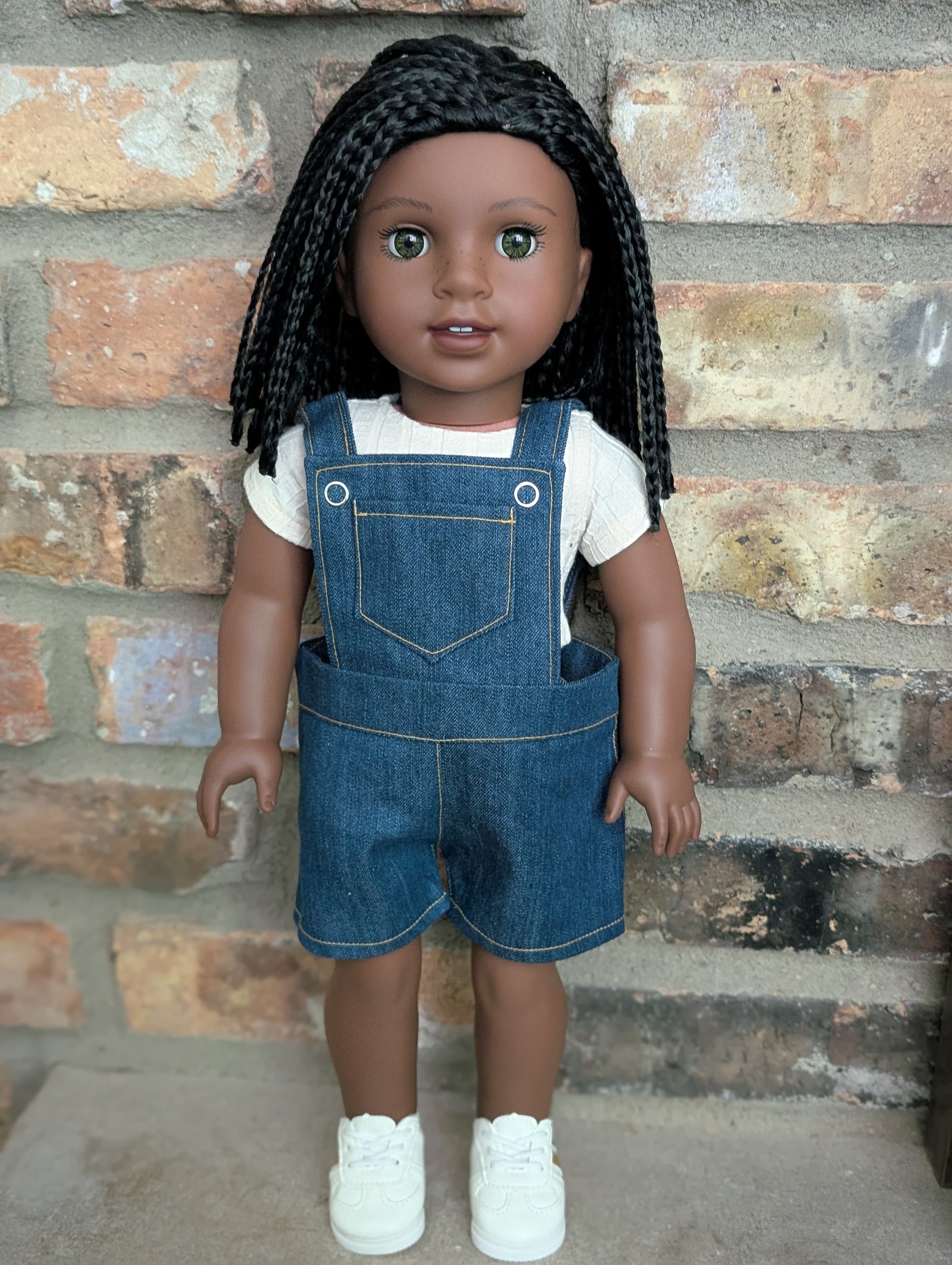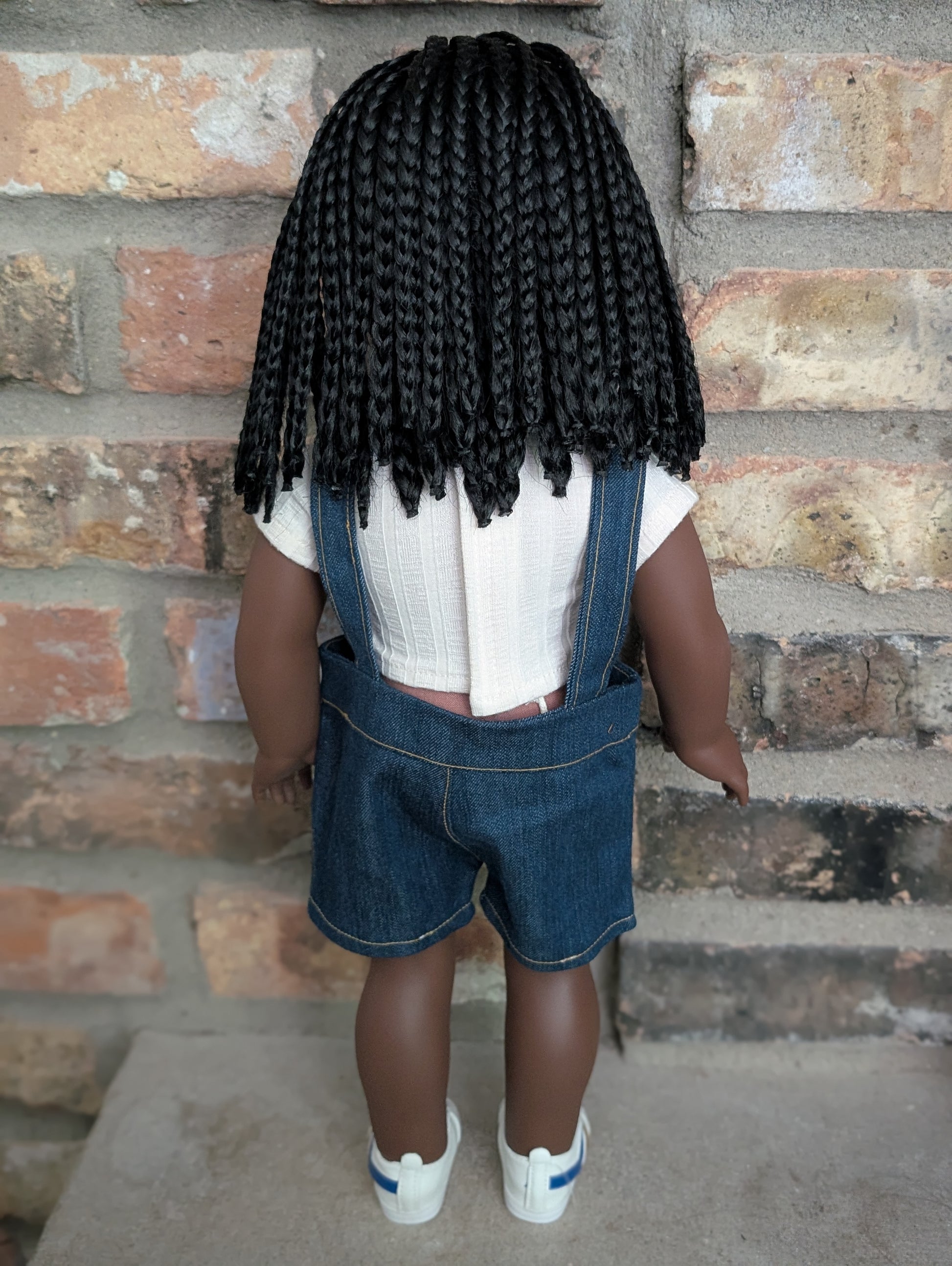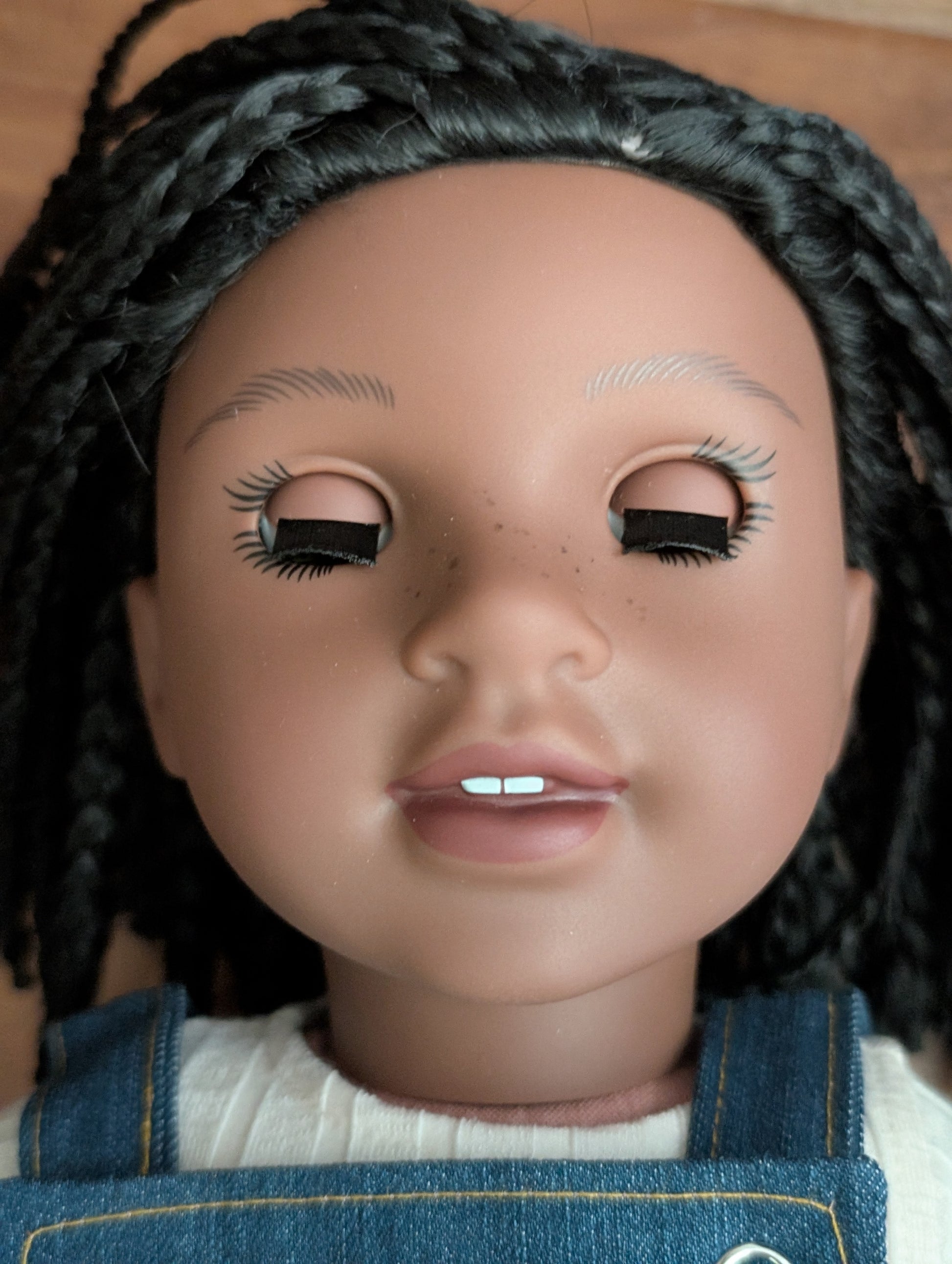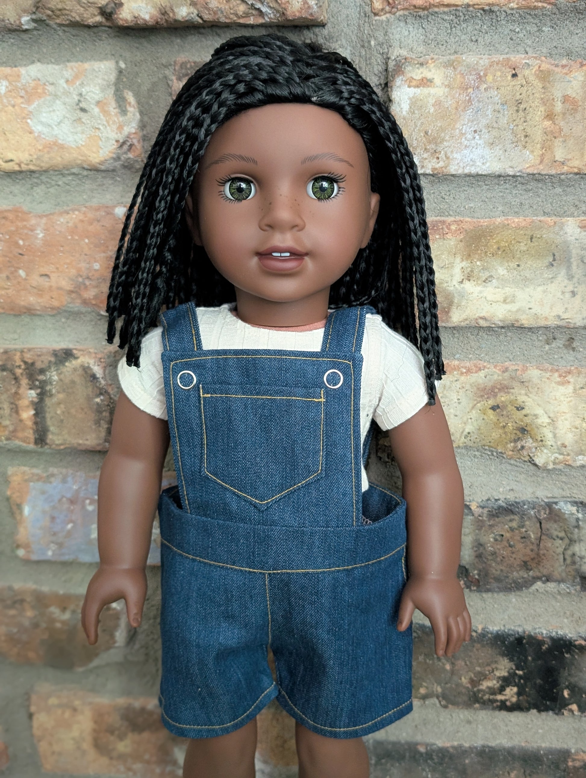 This one of a kind OOAK custom American Girl doll was created with a brand new doll, a black wig, and hazel eyes. She has freckles that were hand painted and sealed. She may have some minor shine marks from handling. She comes with the outfit pictured.