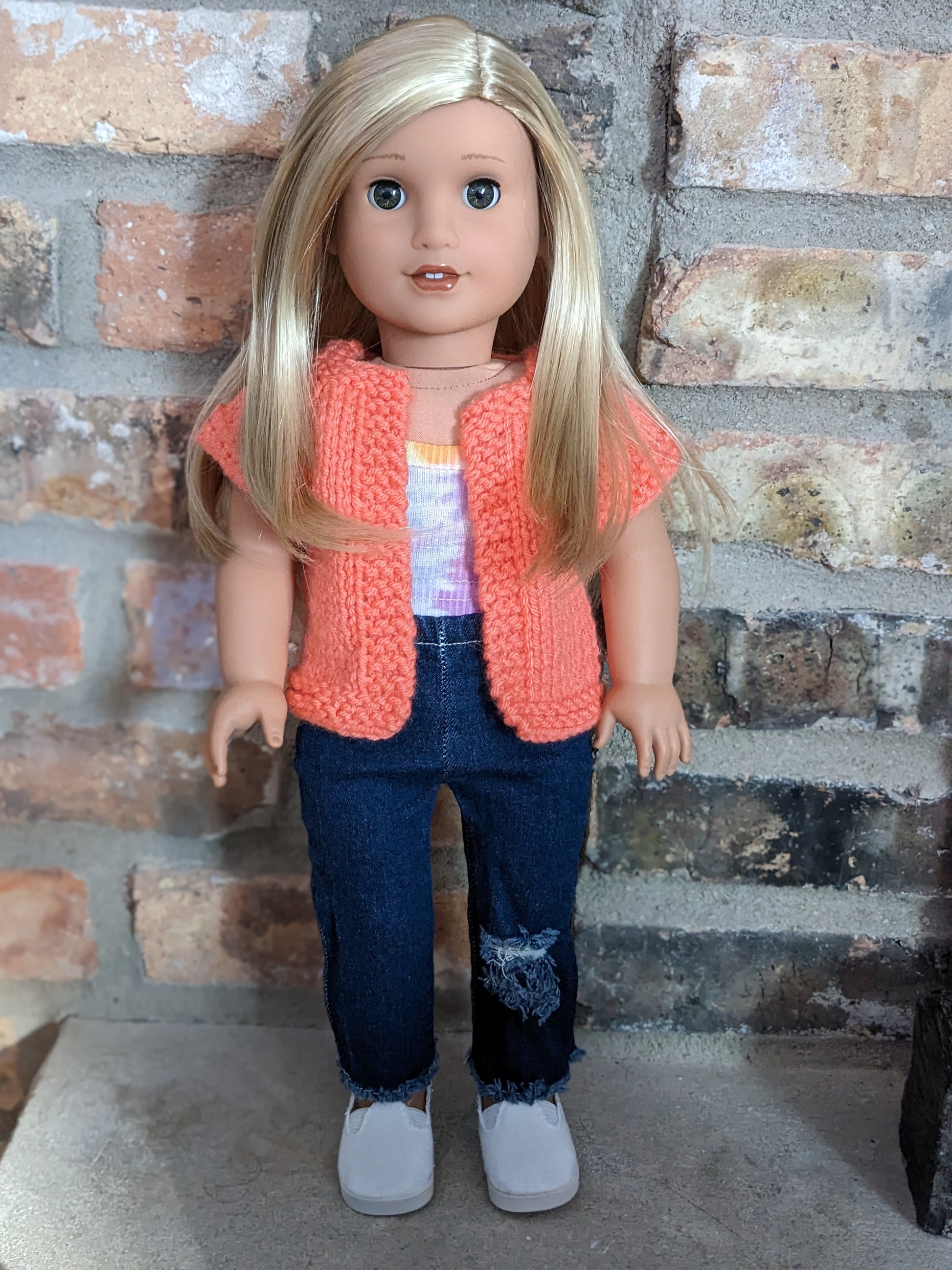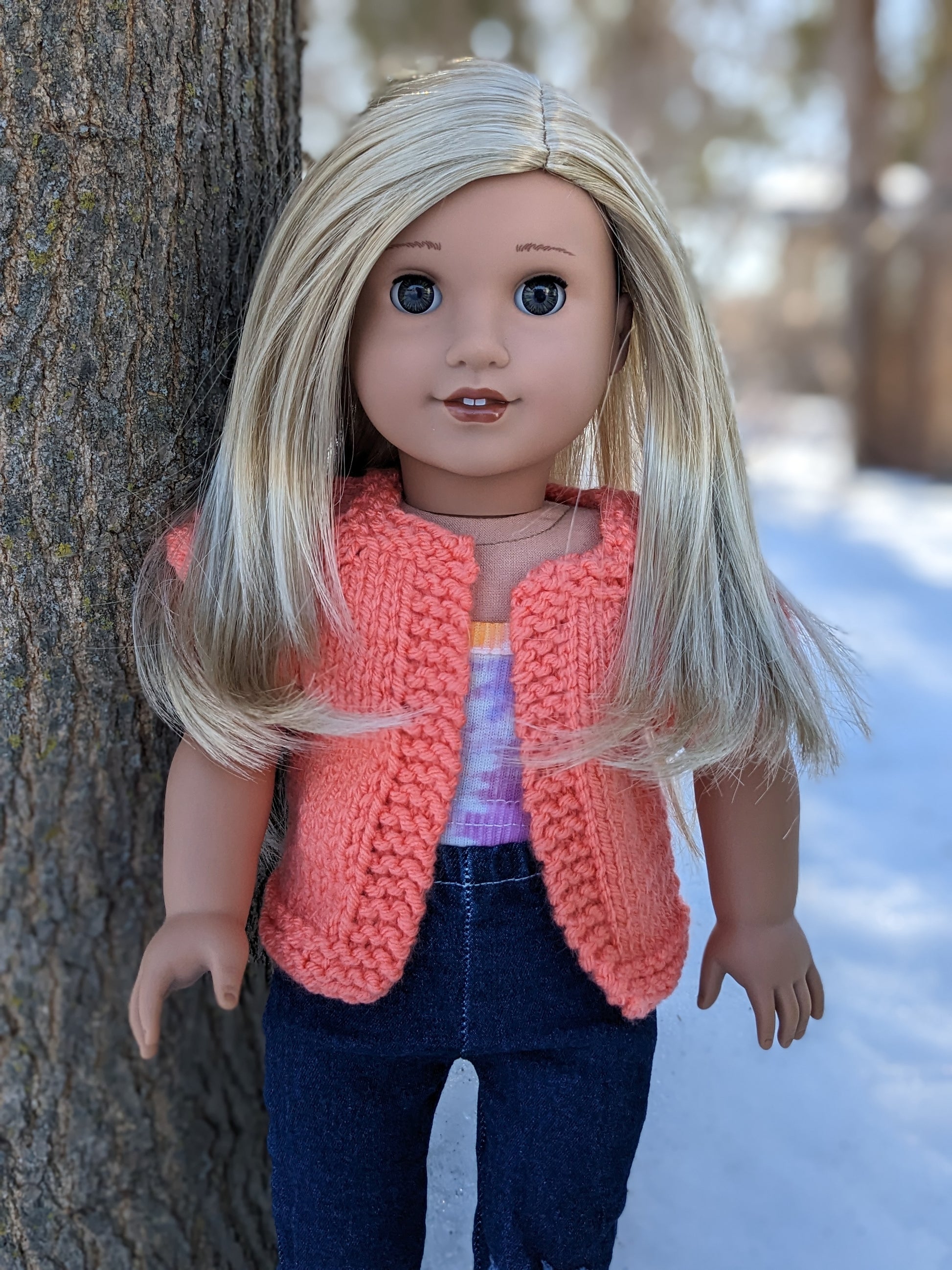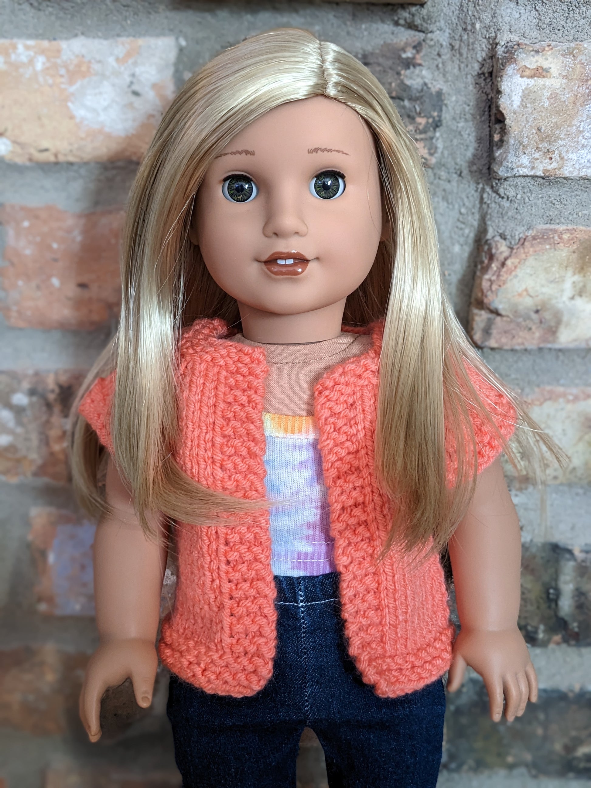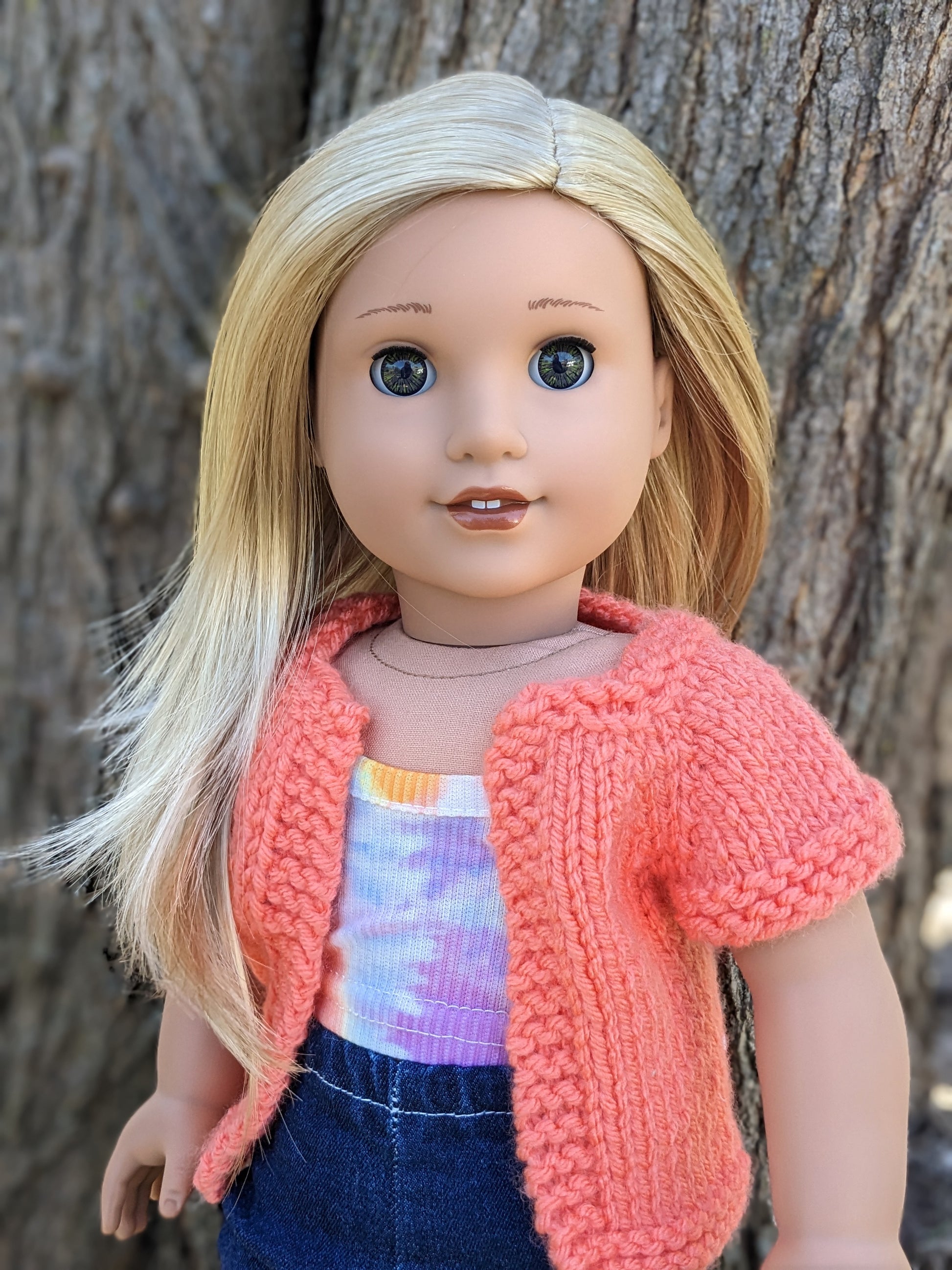 This one of a kind OOAK custom American Girl doll was created with a new doll, a light blonde wig, and hazel eyes. She has lip gloss that was hand painted and sealed. She may have some minor shine marks from handling. She comes with the outfit pictured.