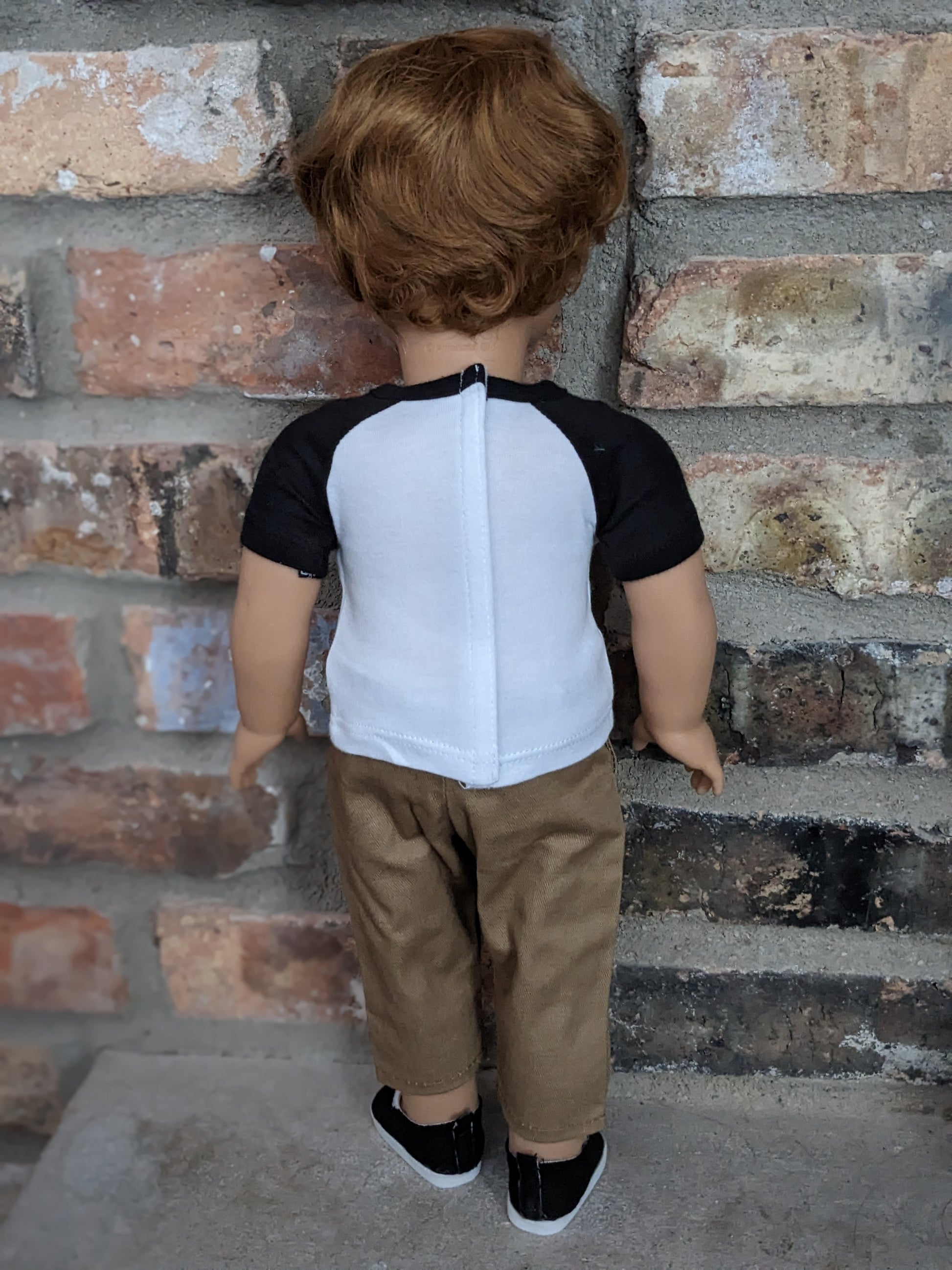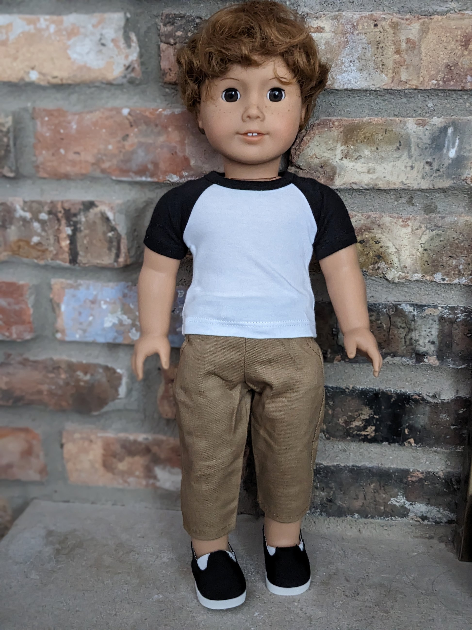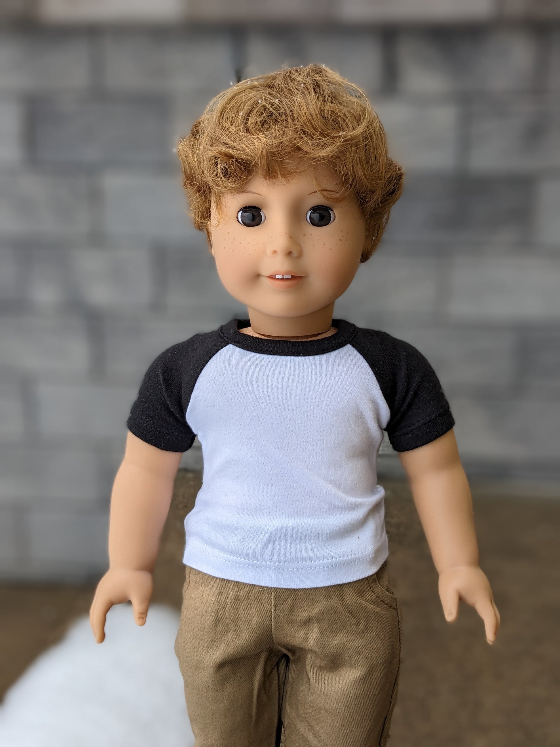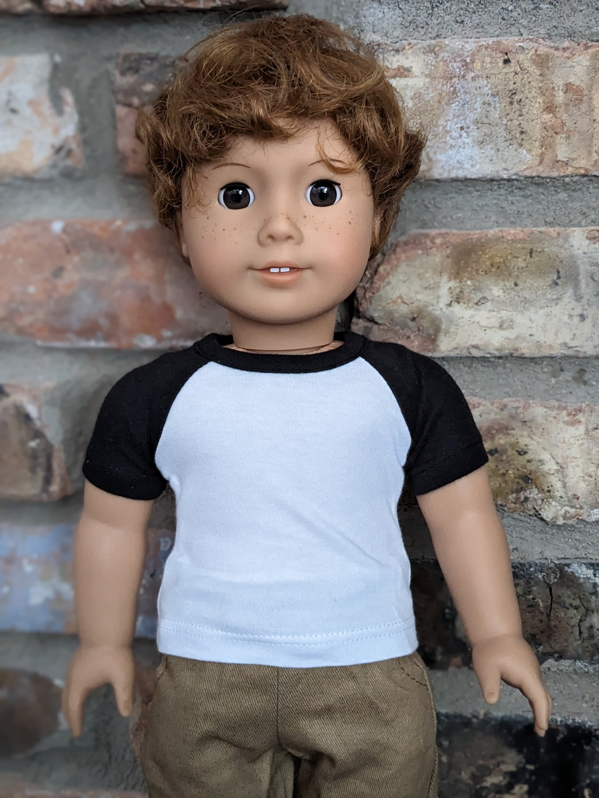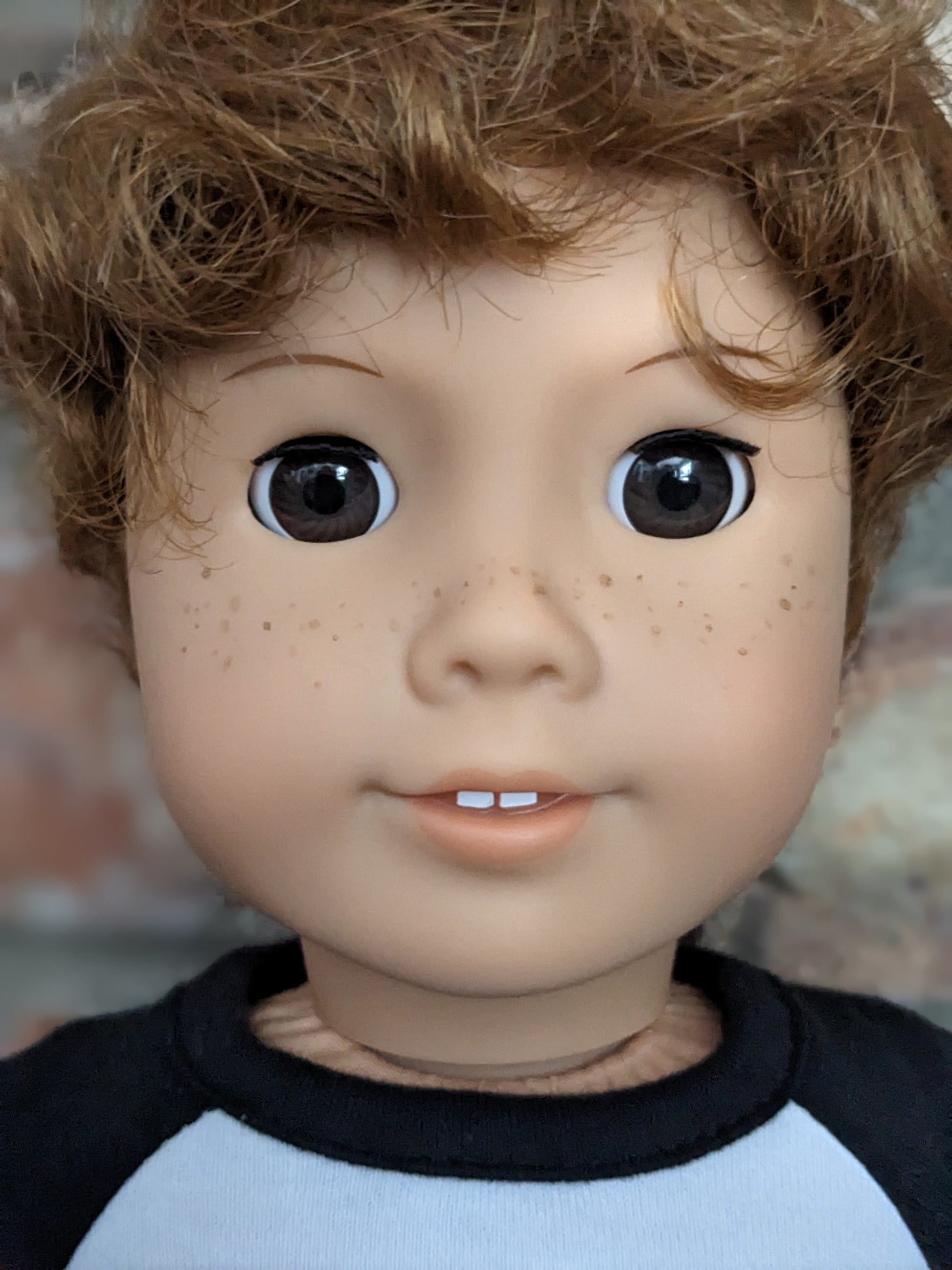 This one of a kind OOAK custom American Girl doll was created with a brand new Truly Me doll, a reddish blonde wig, and brown eyes. He may have some minor shine marks from handling. He has hand painted freckles. He comes with the outfit pictured. He has the two part eyes used by American Girl from around 2017-2019. He also has a microfiber cloth body with a tiny x on his bum.