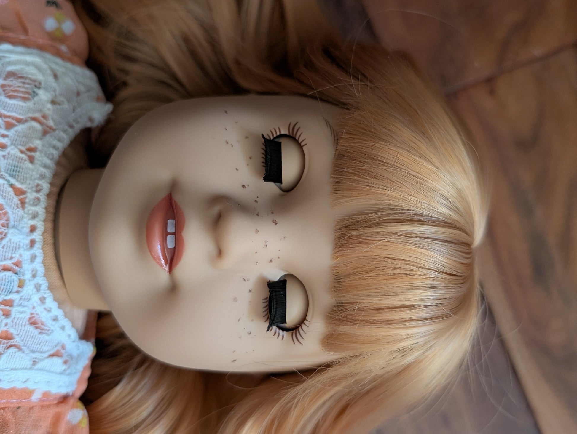 Dovie - light red hair, brown eyes, light skin tone, Jess face mold, freckles