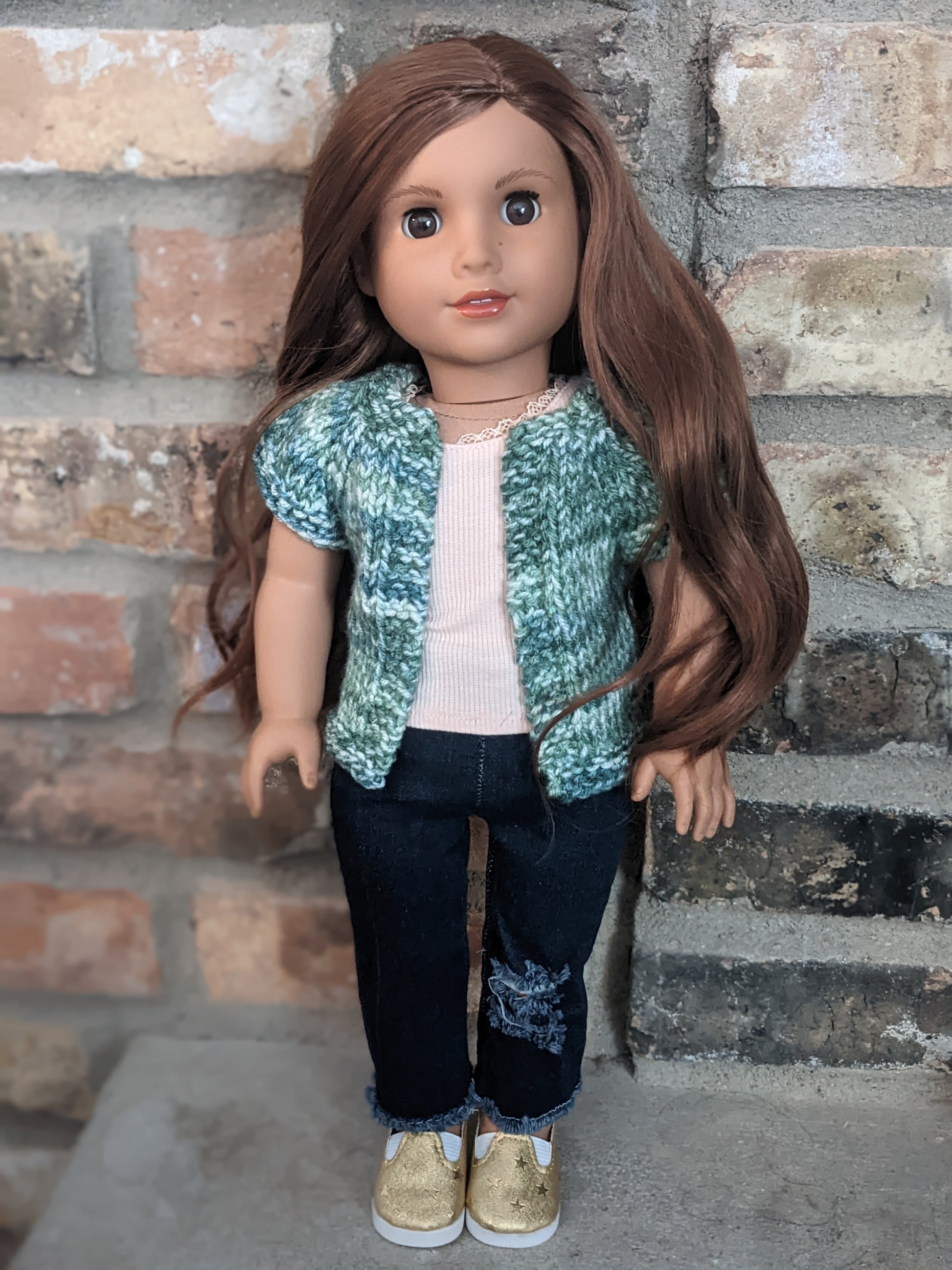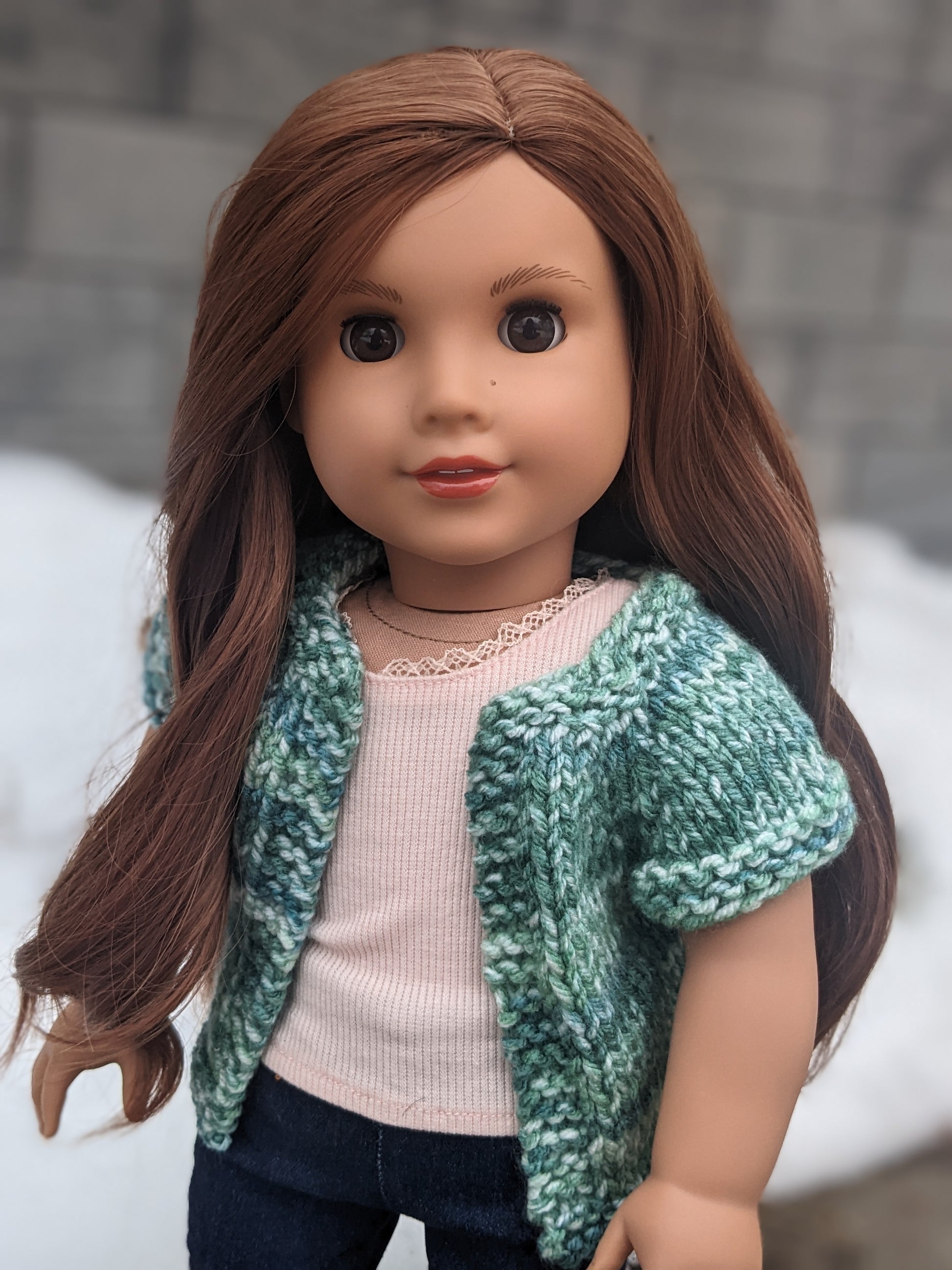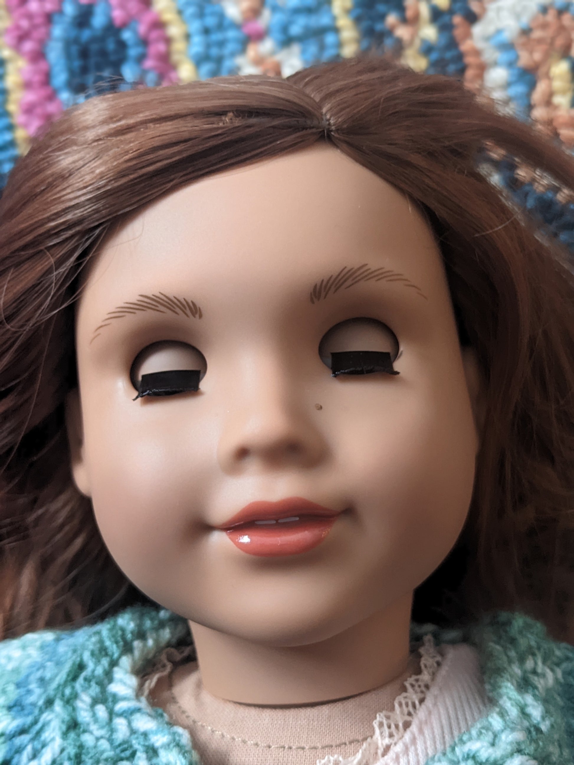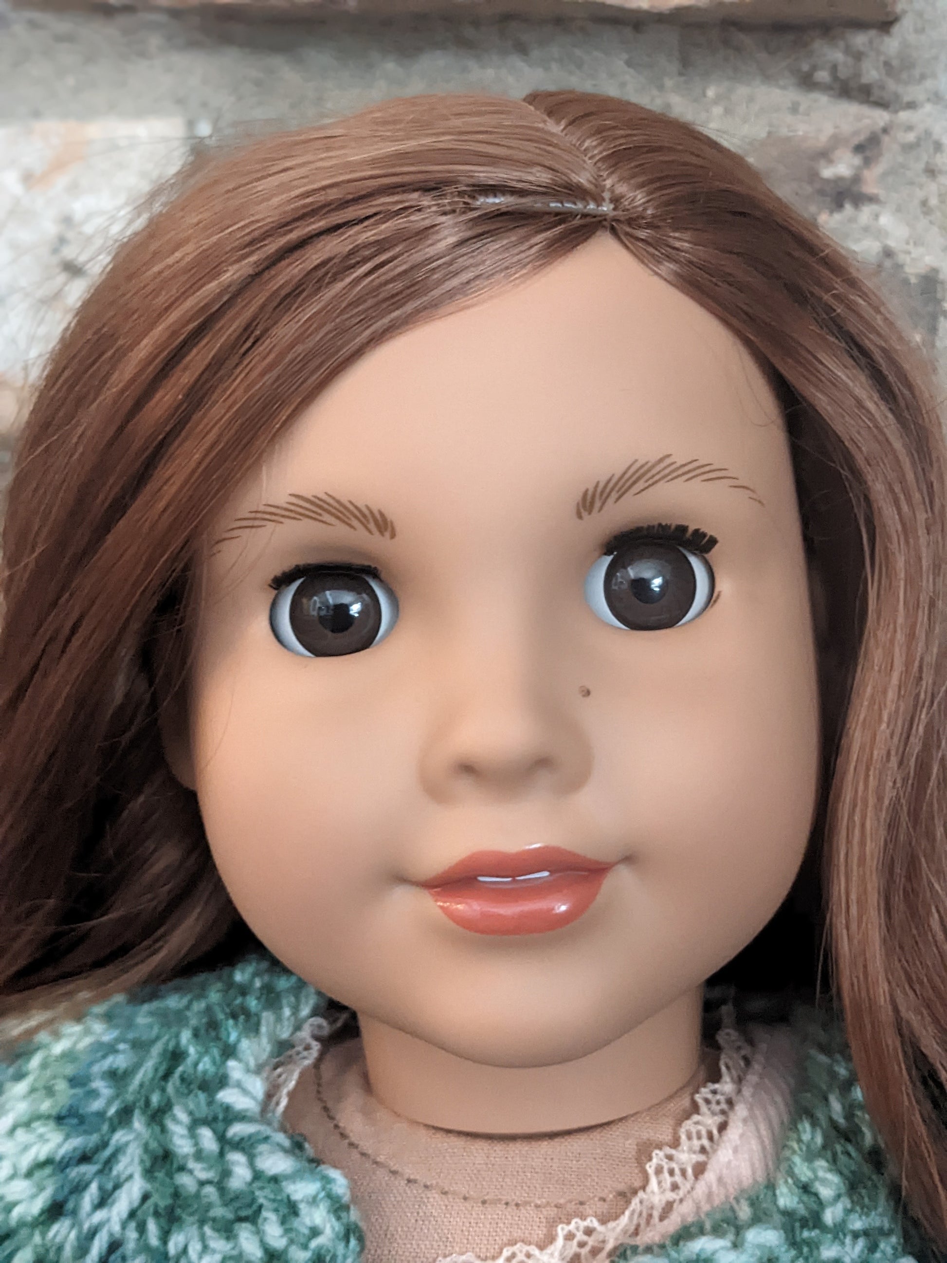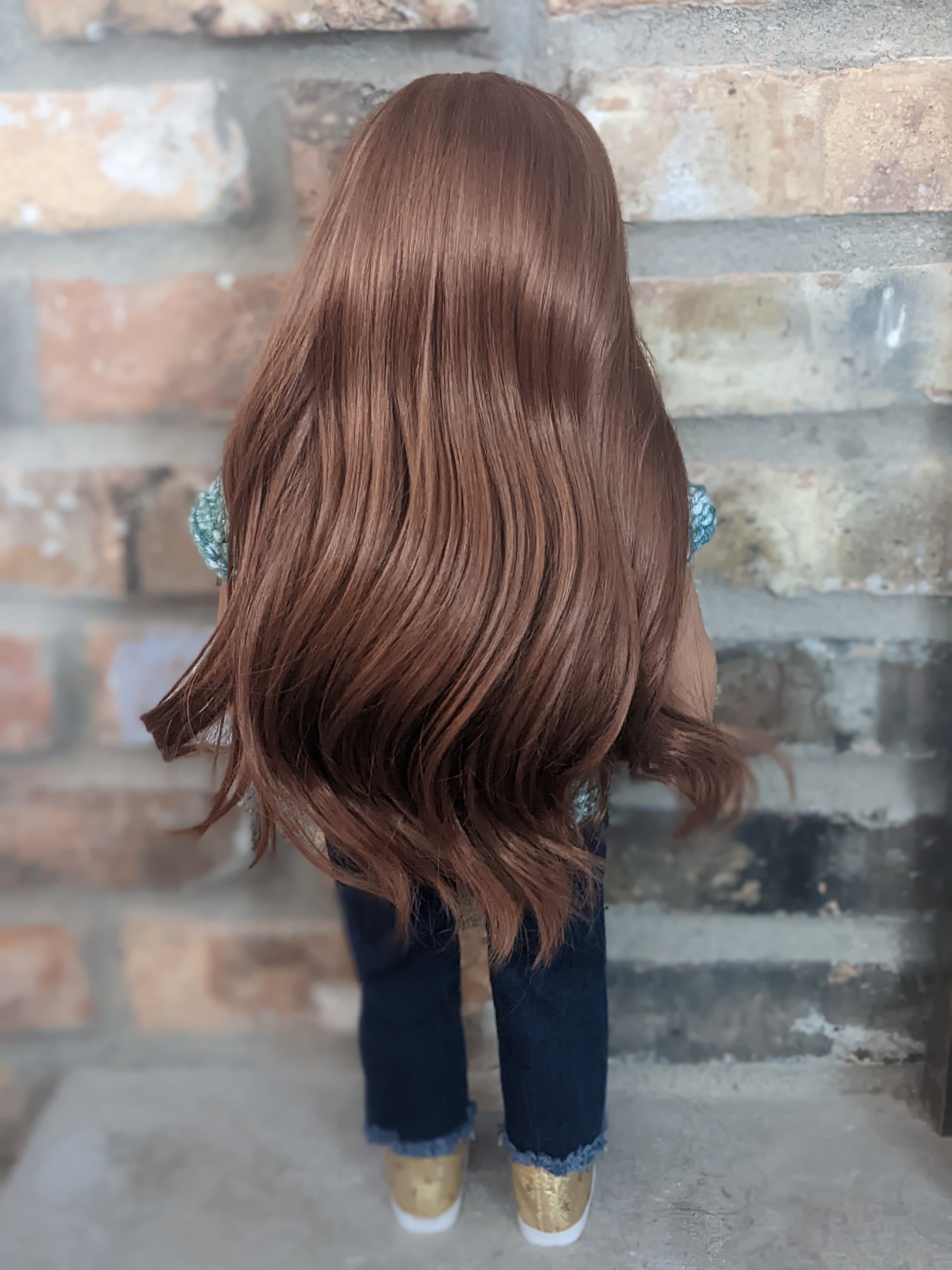 This one of a kind OOAK custom American Girl doll was created with a brand new Maritza doll, a reddish brown wig and brown eyes. She has lip gloss that was hand painted and sealed. She may have some minor shine marks from handling. She comes with the outfit pictured. Her painted on eyelashes have been removed.