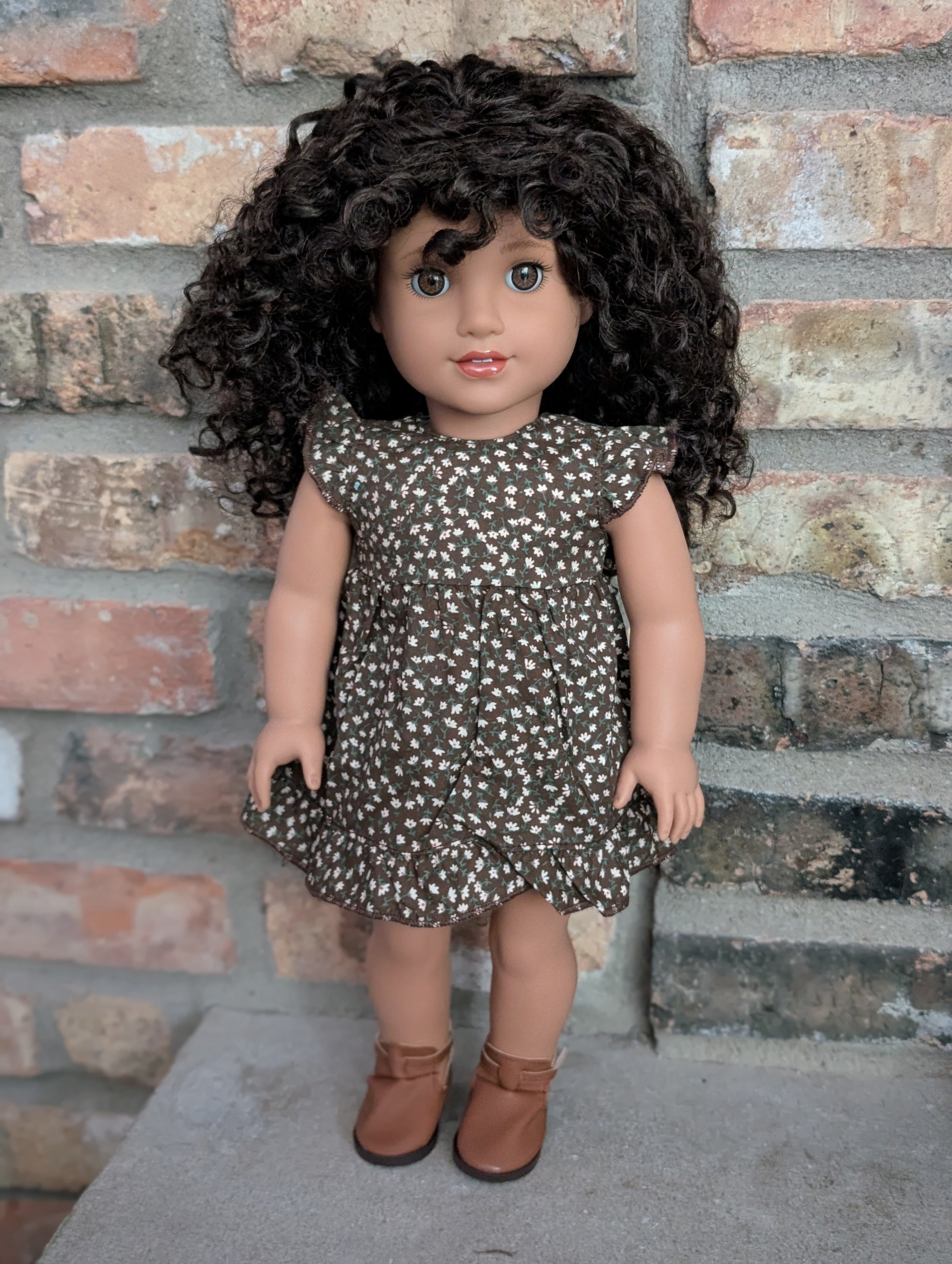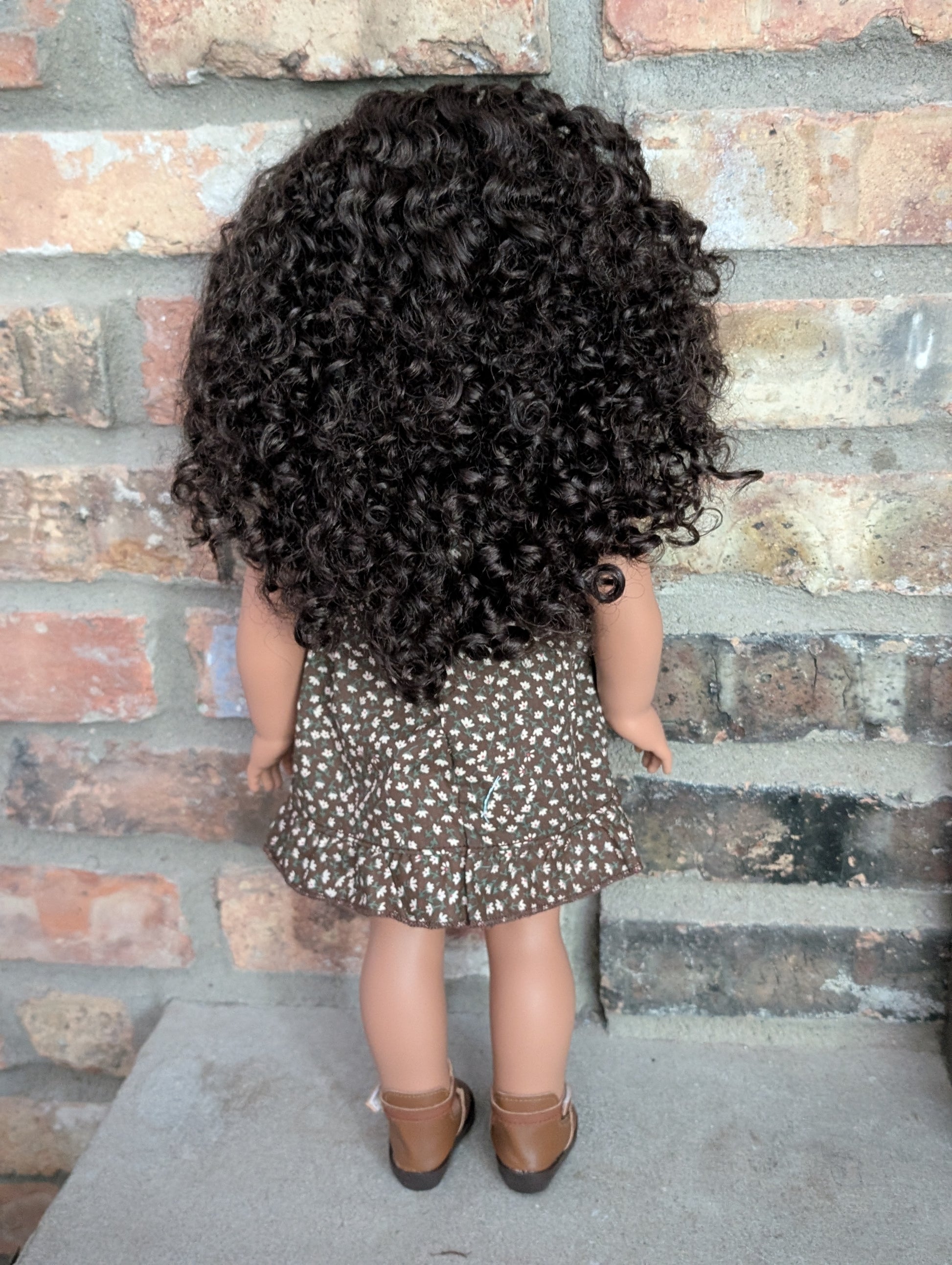 This one of a kind OOAK custom American Girl doll was created with a brand new doll, a brown wig, and light brown eyes. She has lip gloss that was hand painted and sealed. She may have some minor shine marks from handling. She comes with the outfit pictured.
