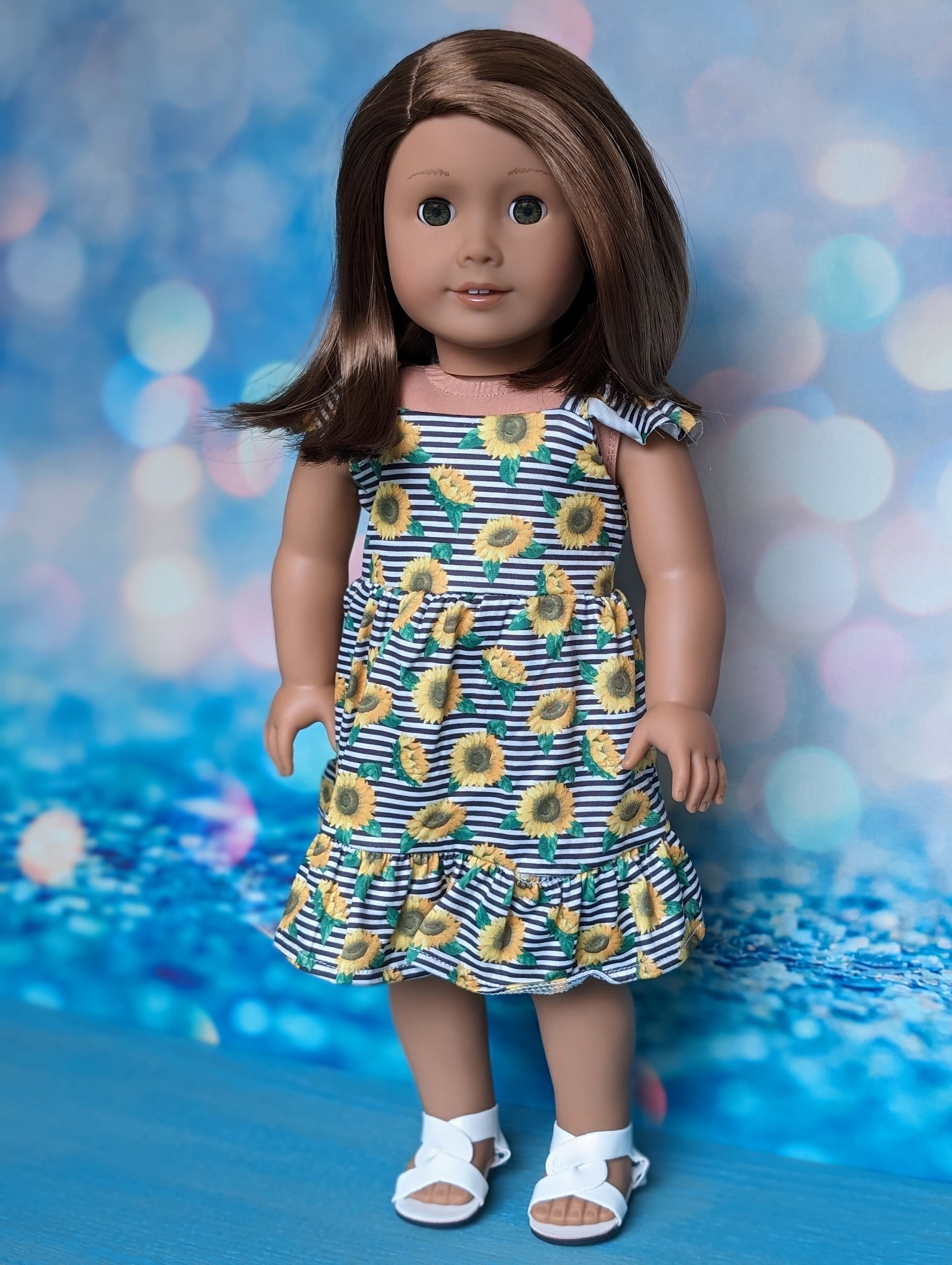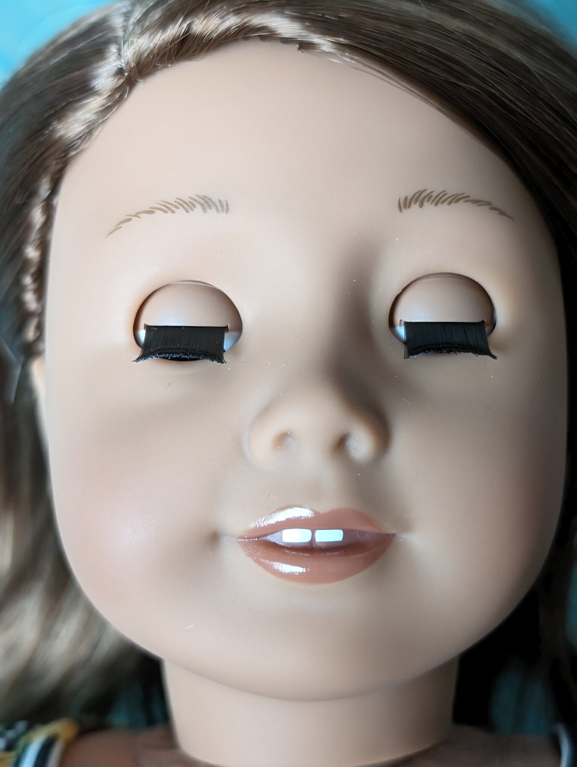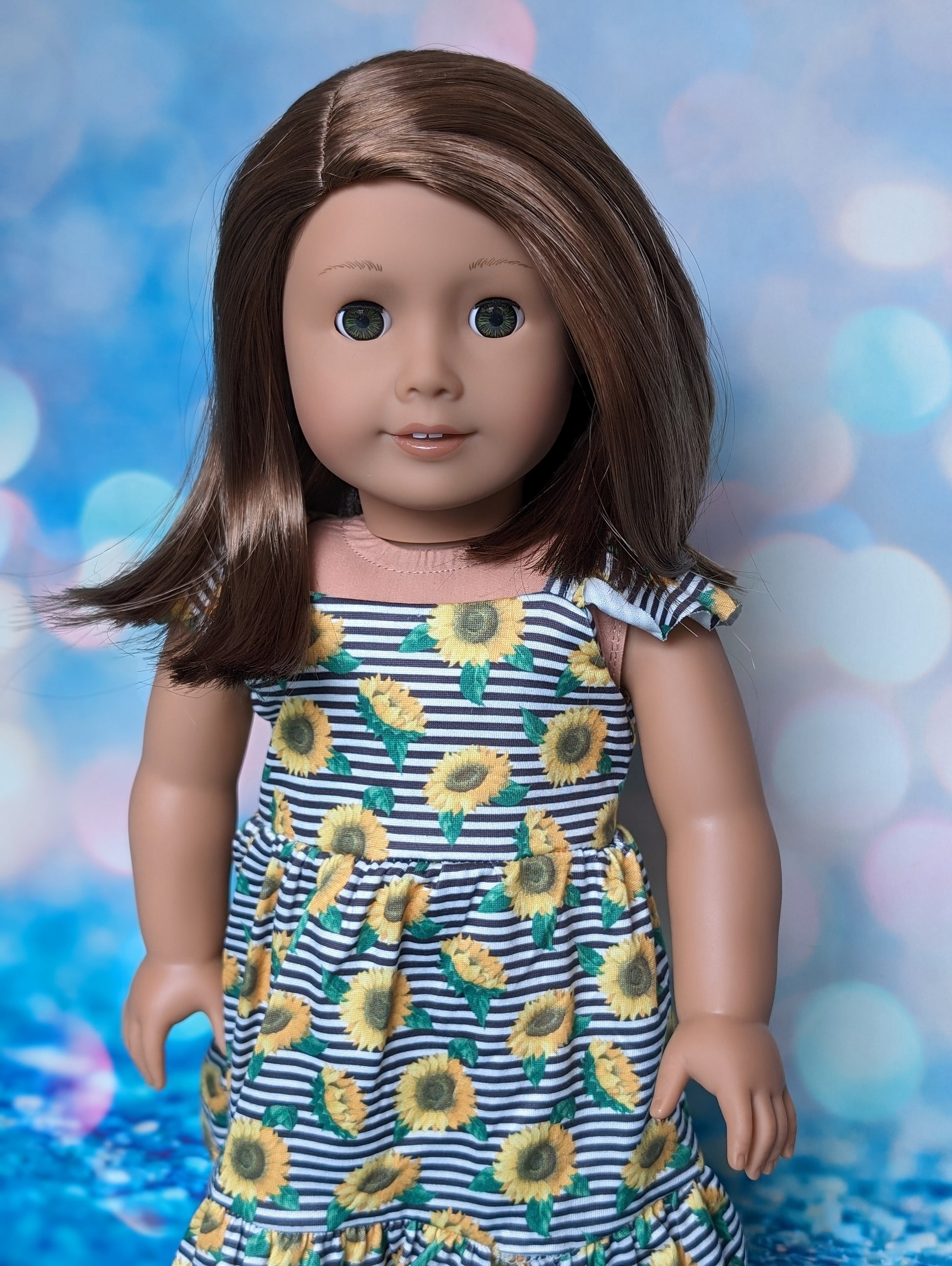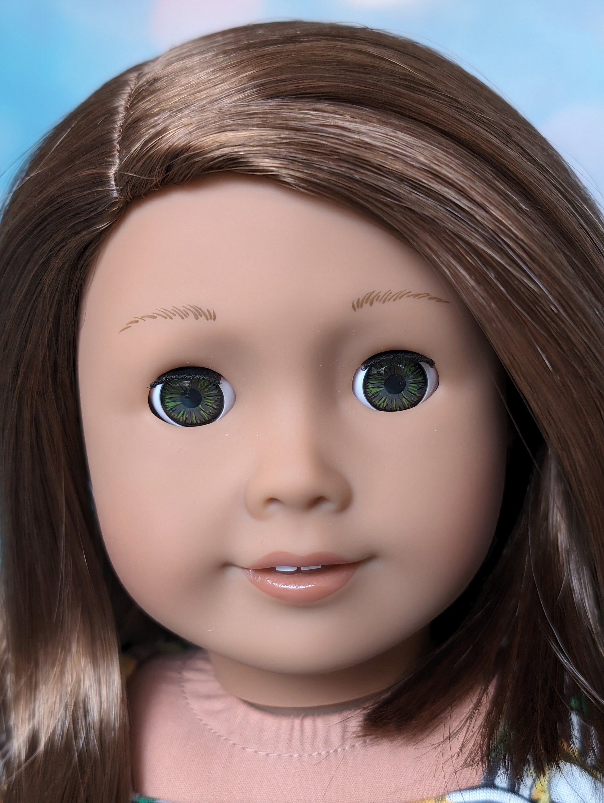 This one of a kind OOAK custom American Girl doll was created with a brand new doll, a brown wig, and hazel eyes. She has lip gloss that was hand painted and sealed. She may have some minor shine marks from handling. She comes with the outfit pictured. She has the microfiber cloth body with permapanties and the two part eyes with the white pegs used by American Girl from 2017-2019.