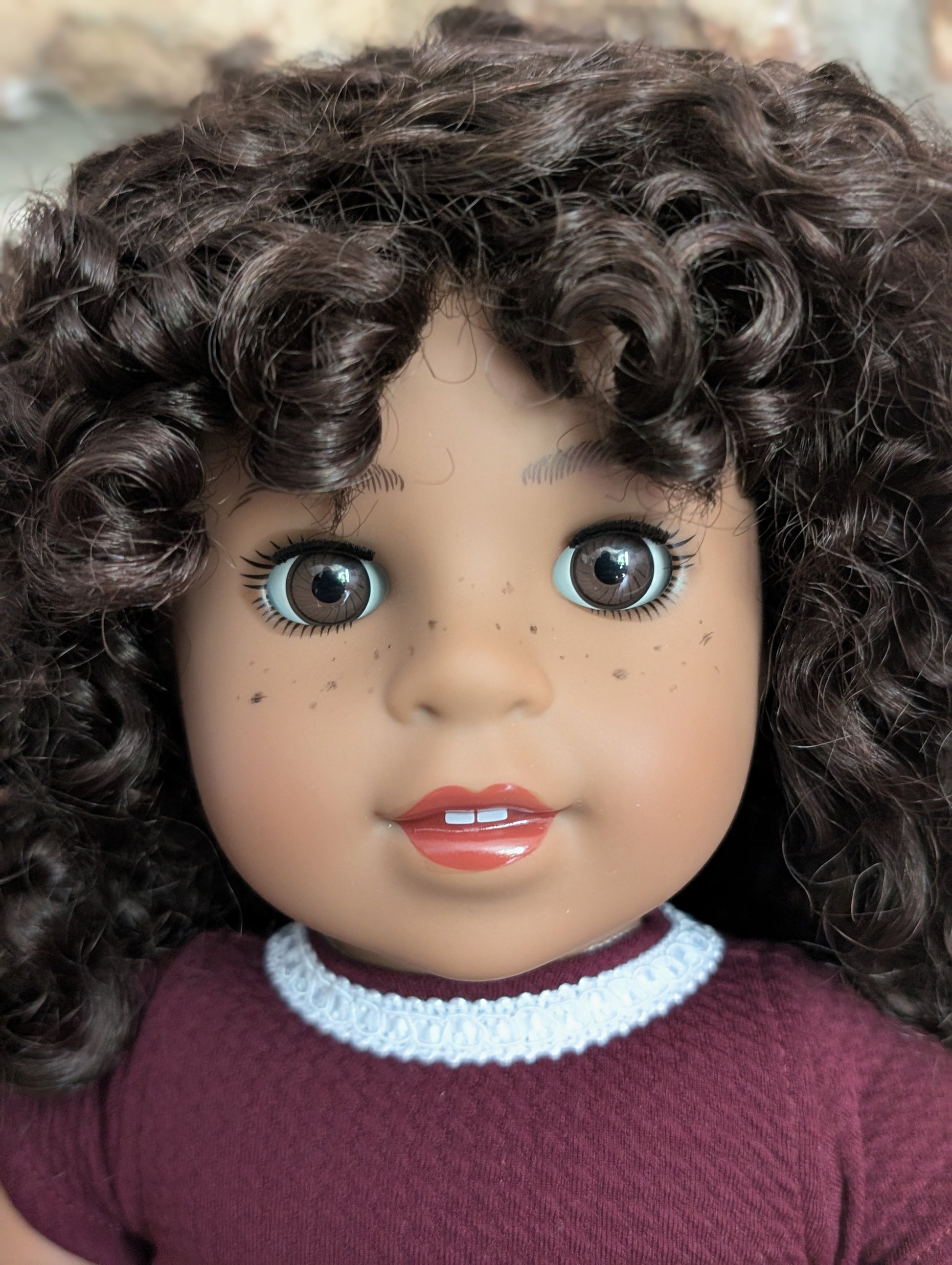 Mirabel - brown hair, brown eyes, dark skin tone, Makena face mold, freckles