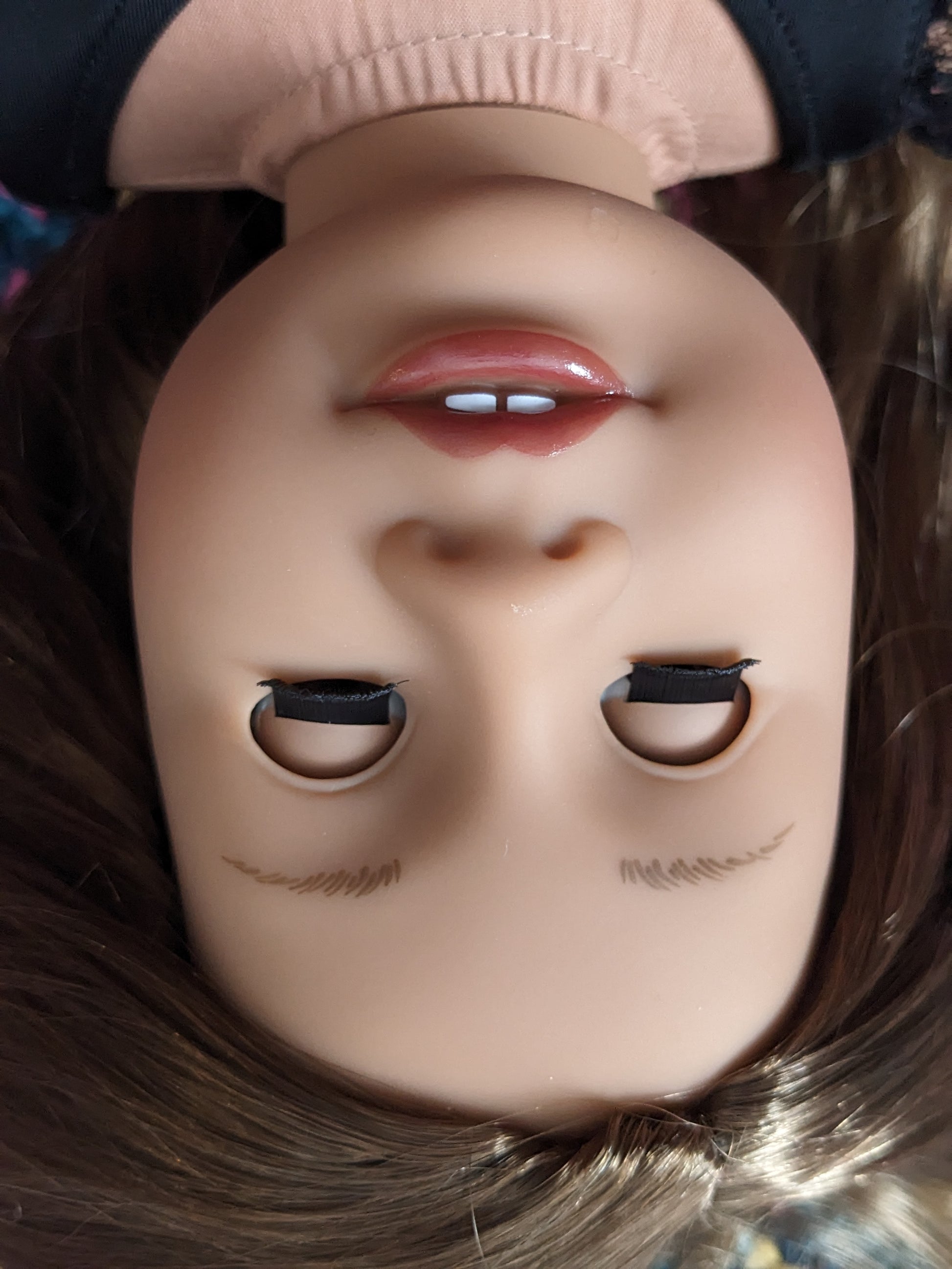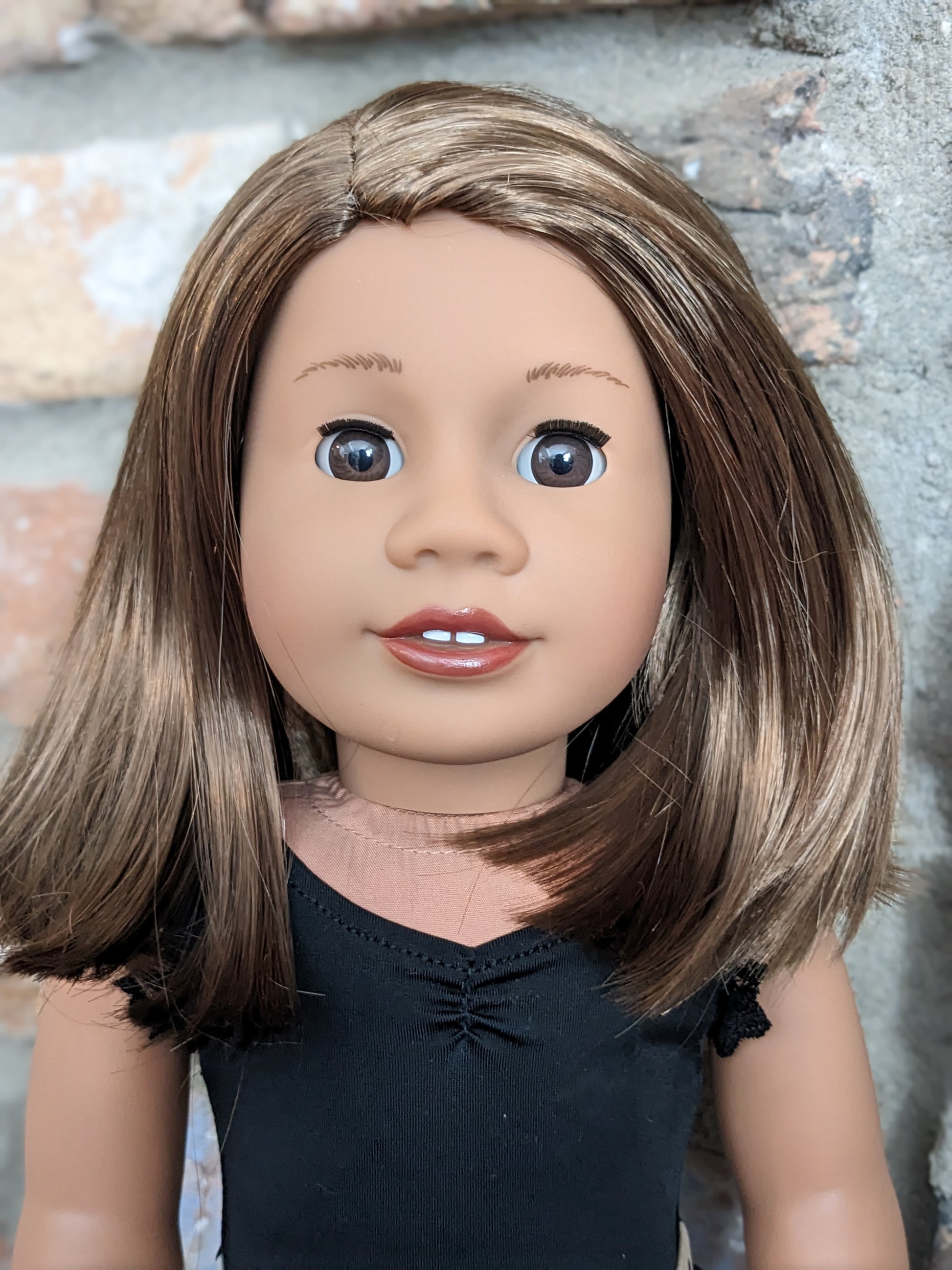 This one of a kind OOAK custom American Girl doll was created with a new doll, a brown wig, and brown eyes. She has lip gloss that was hand painted and sealed. She may have some minor shine marks from handling. She comes with the outfit pictured. She has the microfiber cloth body with permapanties and a tiny x on her bum.