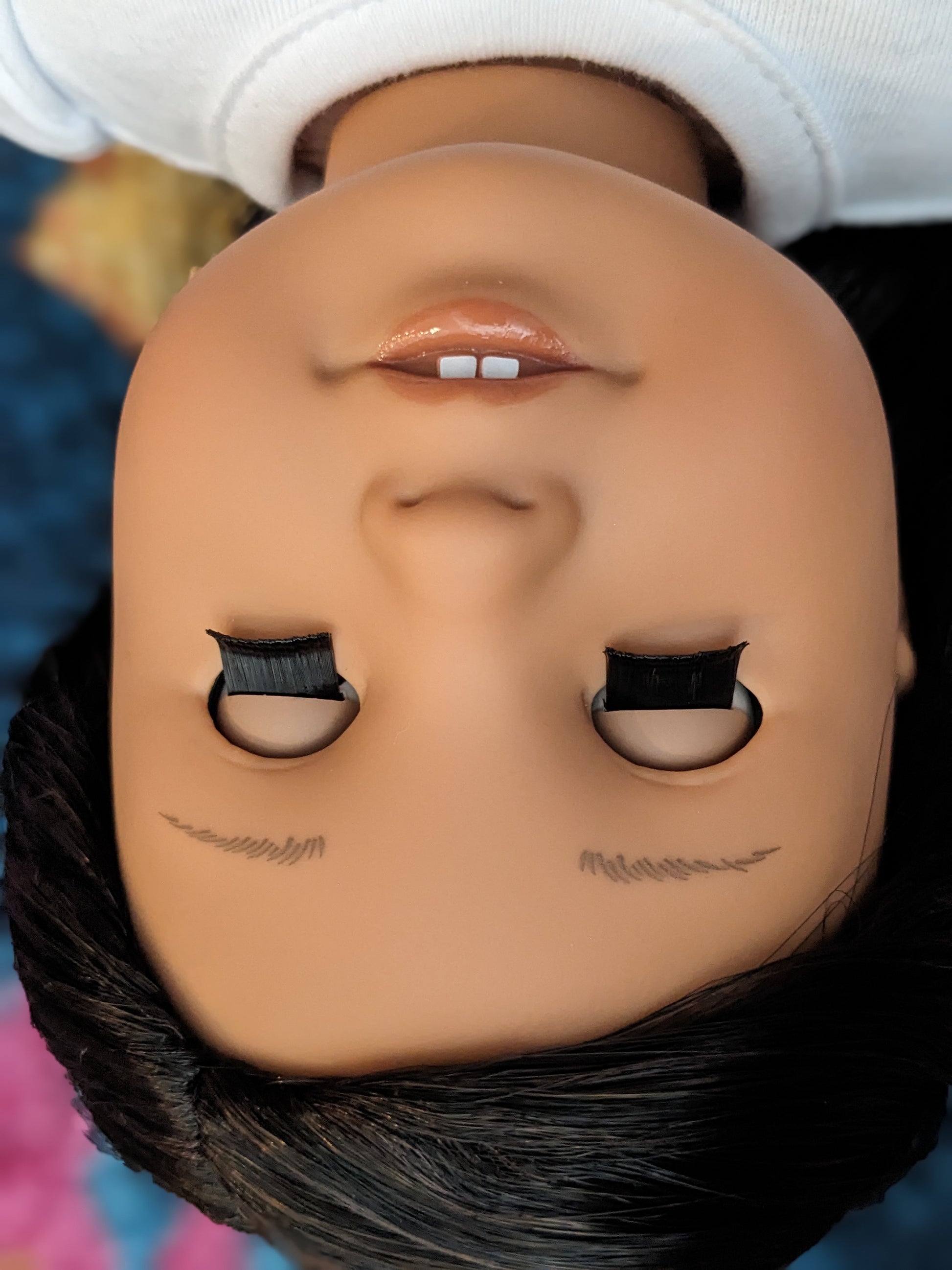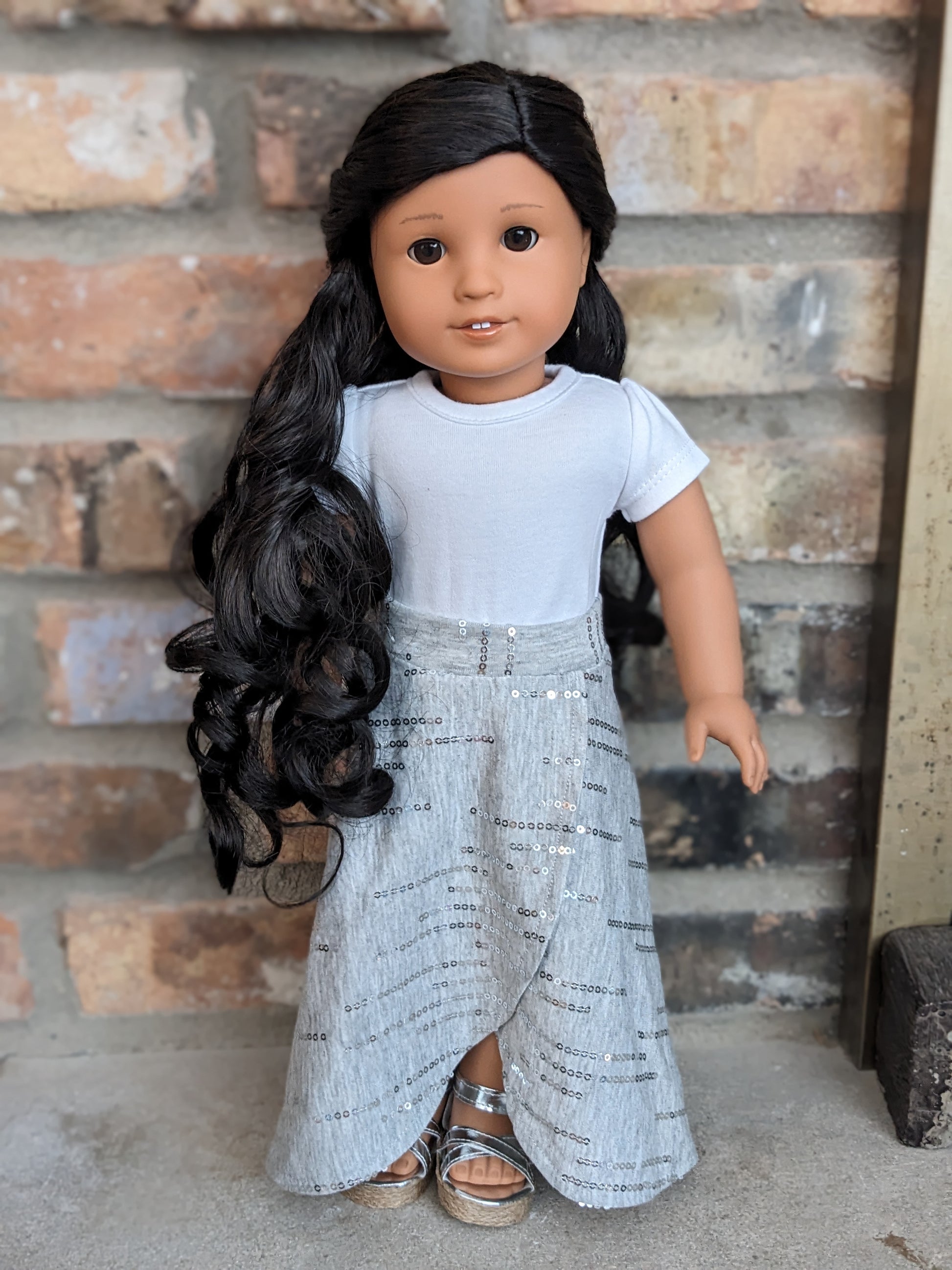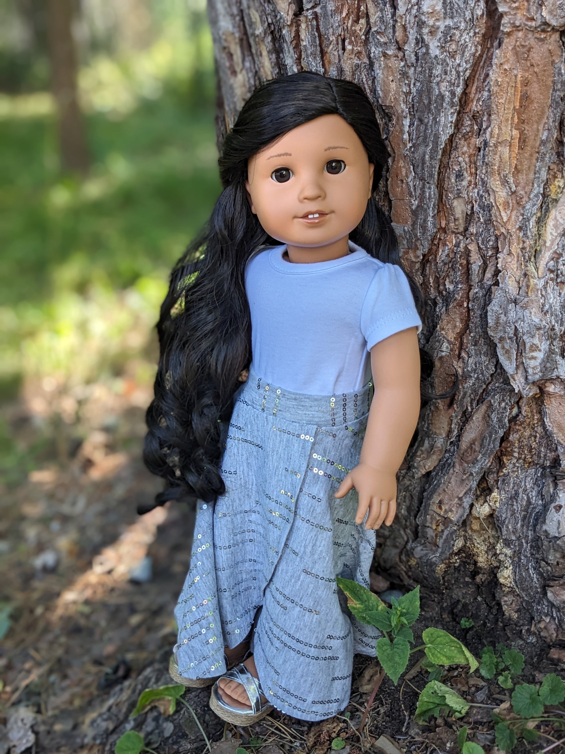 This one of a kind OOAK custom American Girl doll was created with a new doll, a brown wig, and brown eyes. She has lip gloss that was hand painted and sealed. She may have some minor shine marks from handling. She comes with the outfit pictured. She has the microfiber cloth body.