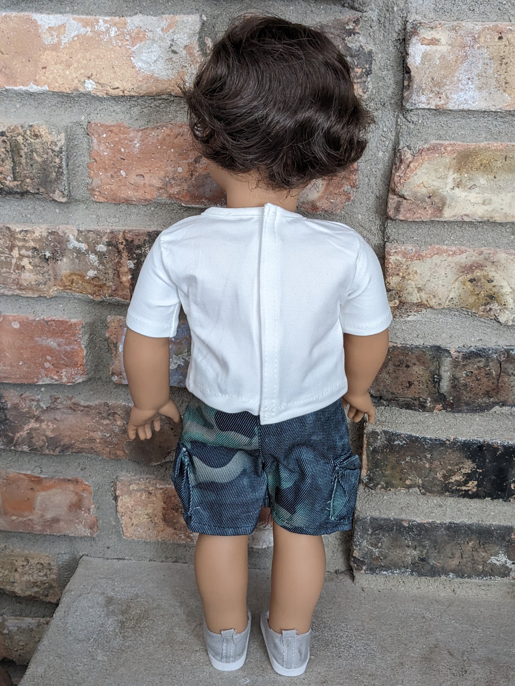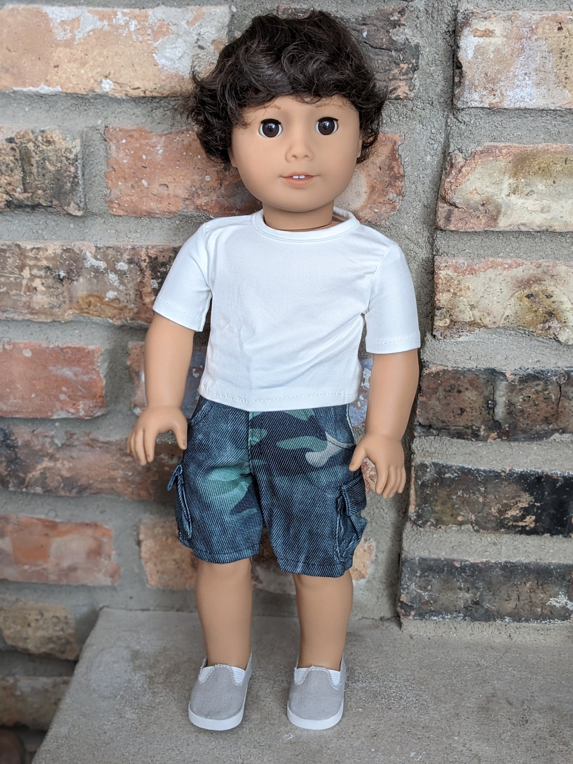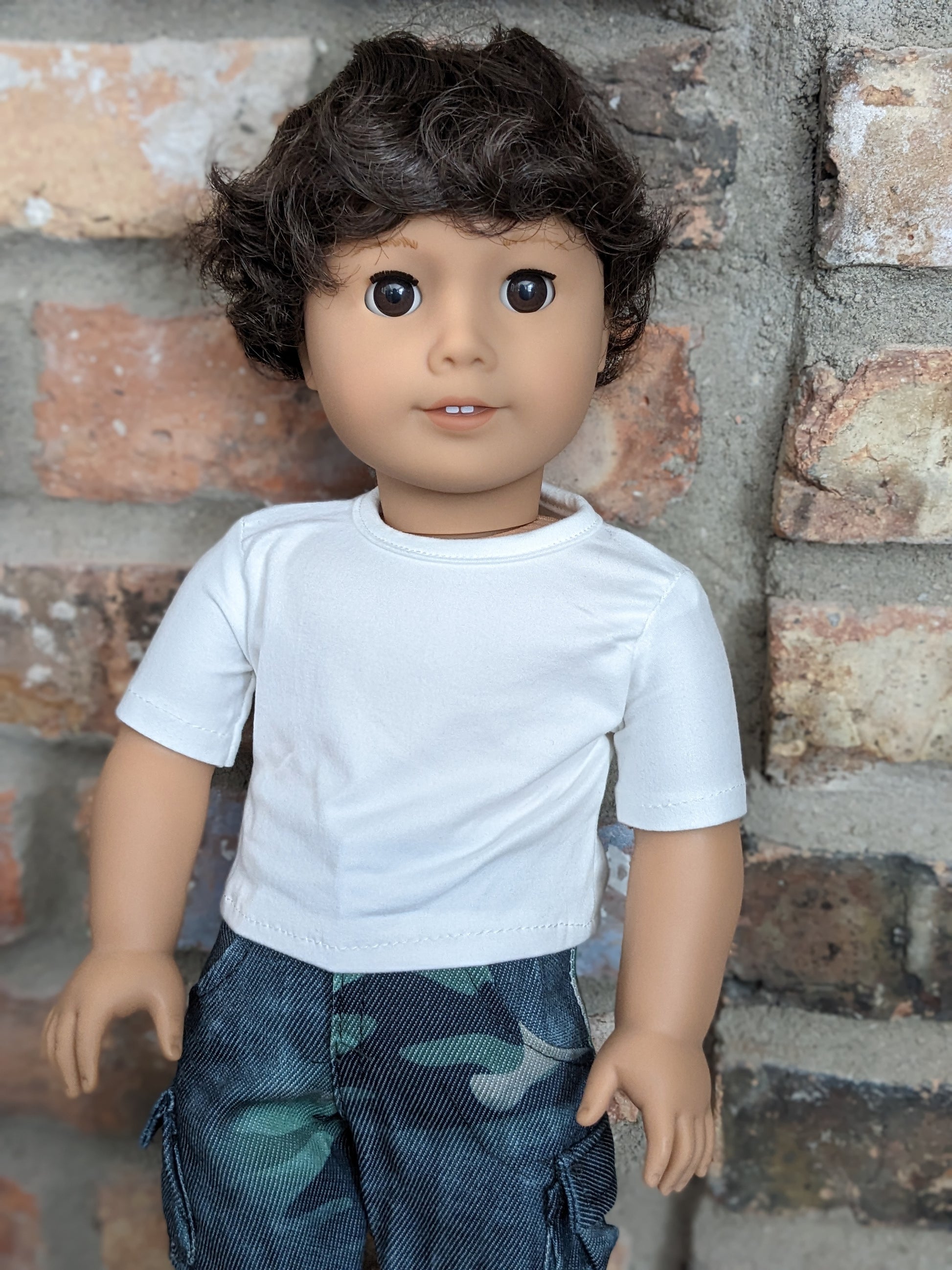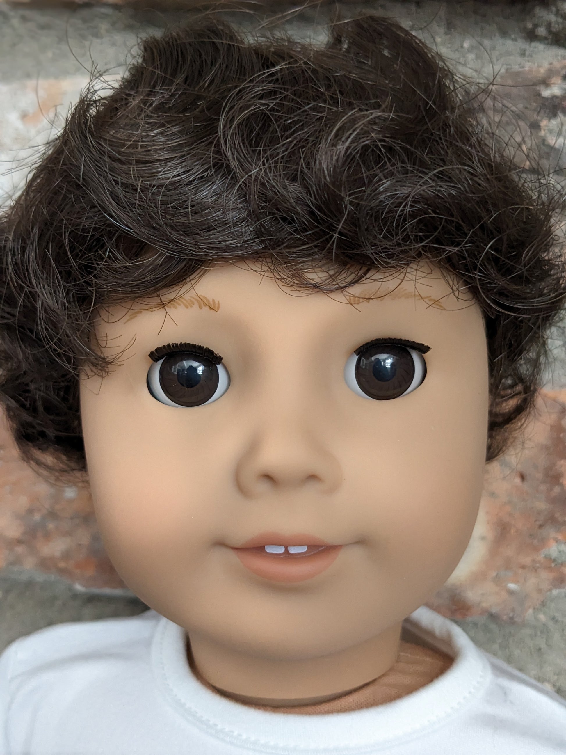 This one of a kind OOAK custom American Girl doll was created with a brand new Truly Me doll, a dark brown wig, and brown eyes. He may have some minor shine marks from handling. He comes with the outfit pictured.