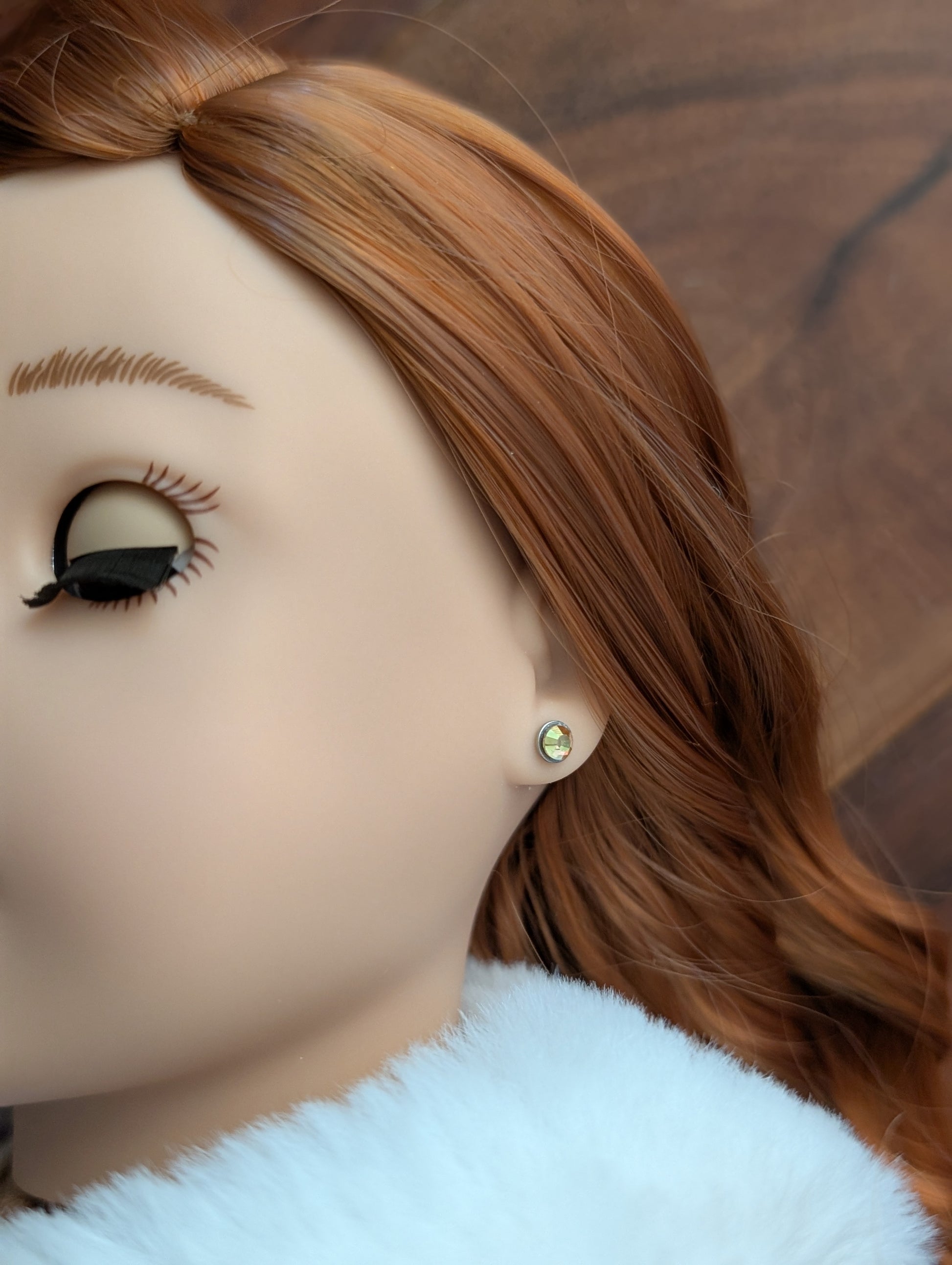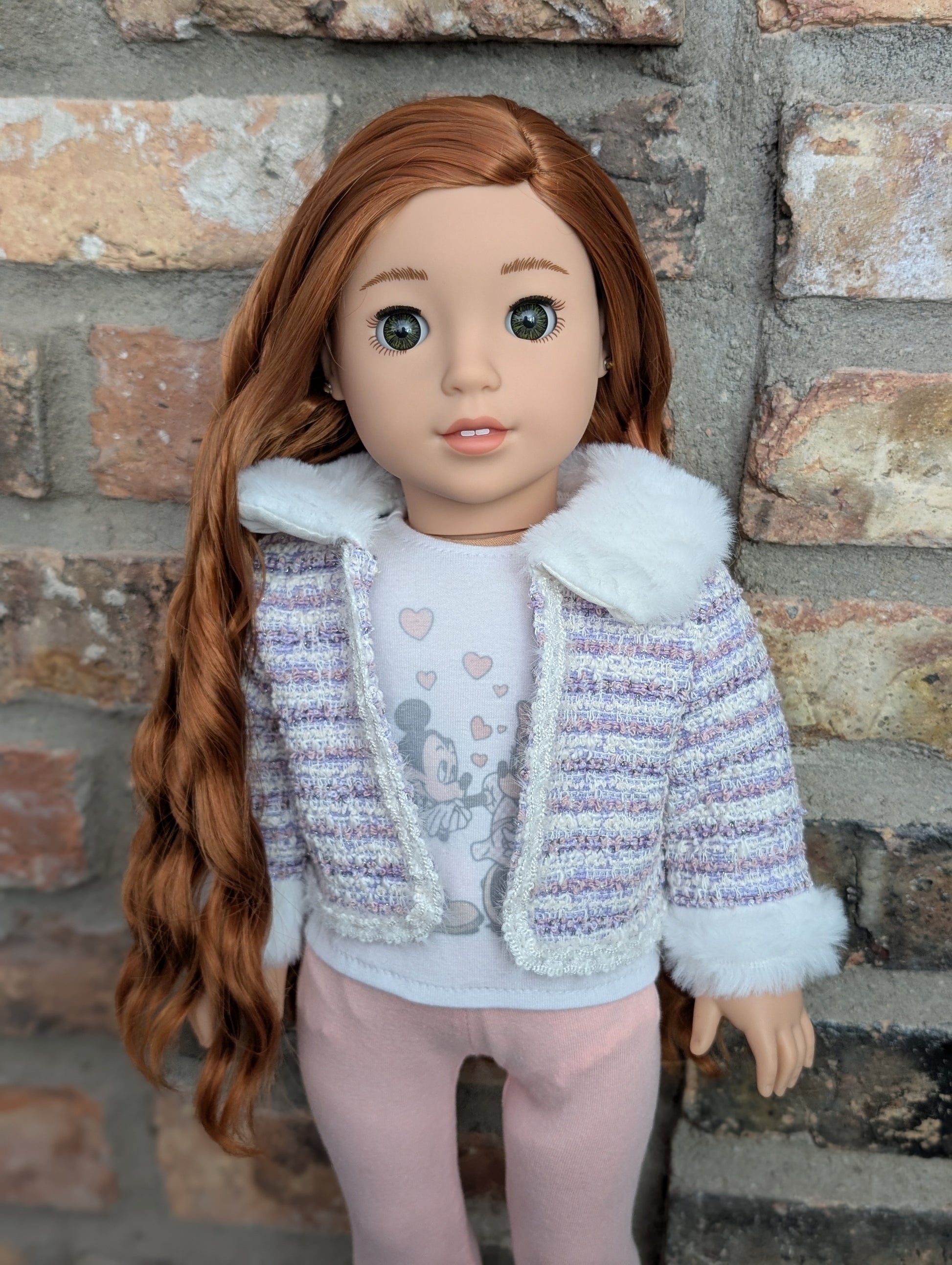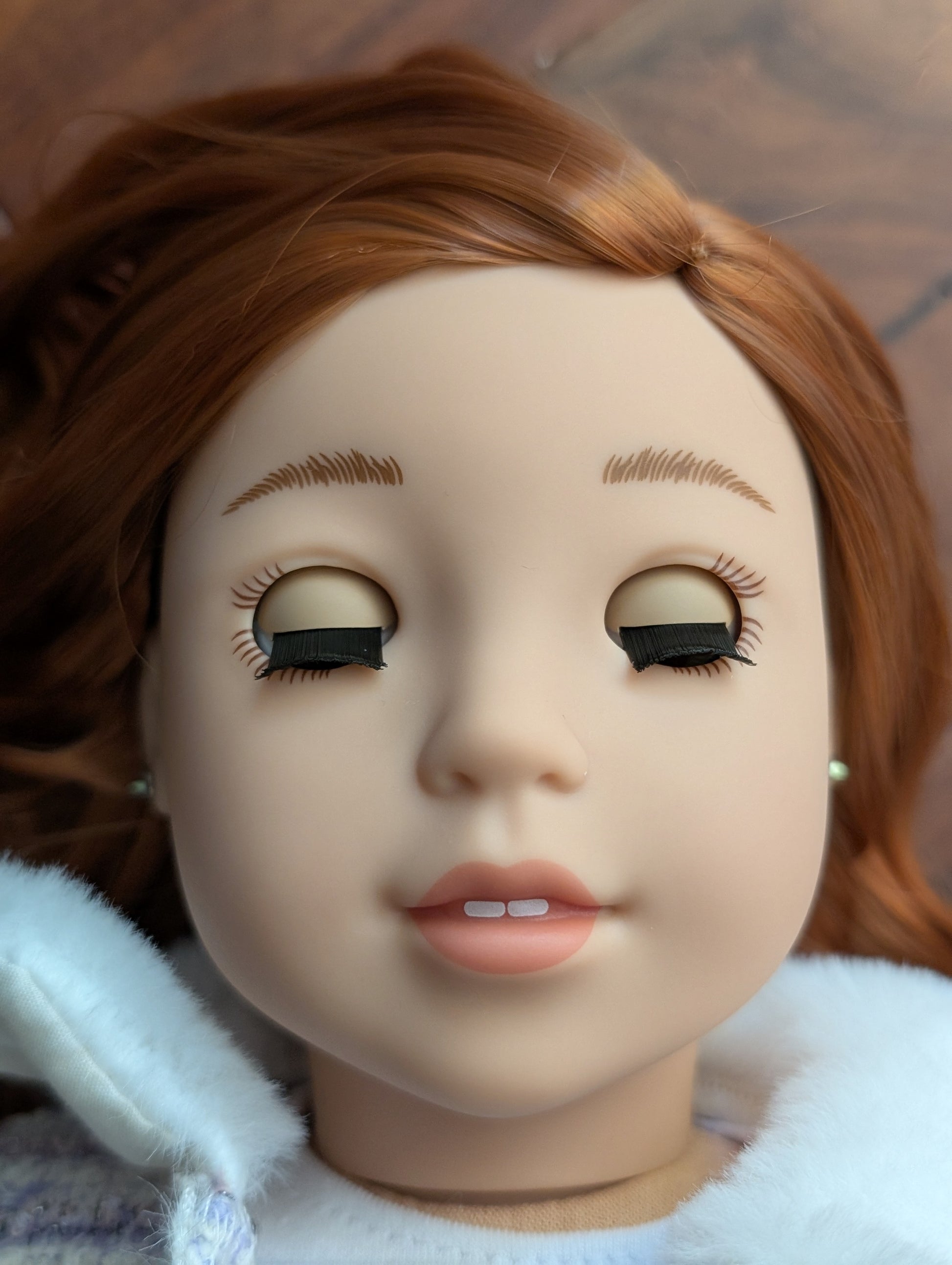 This one of a kind OOAK custom American Girl doll was created with a brand new doll, a red wig, and hazel eyes. She may have some minor shine marks from handling. She comes with the outfit pictured. Her ears are pierced with American Girl doll sized earrings.
