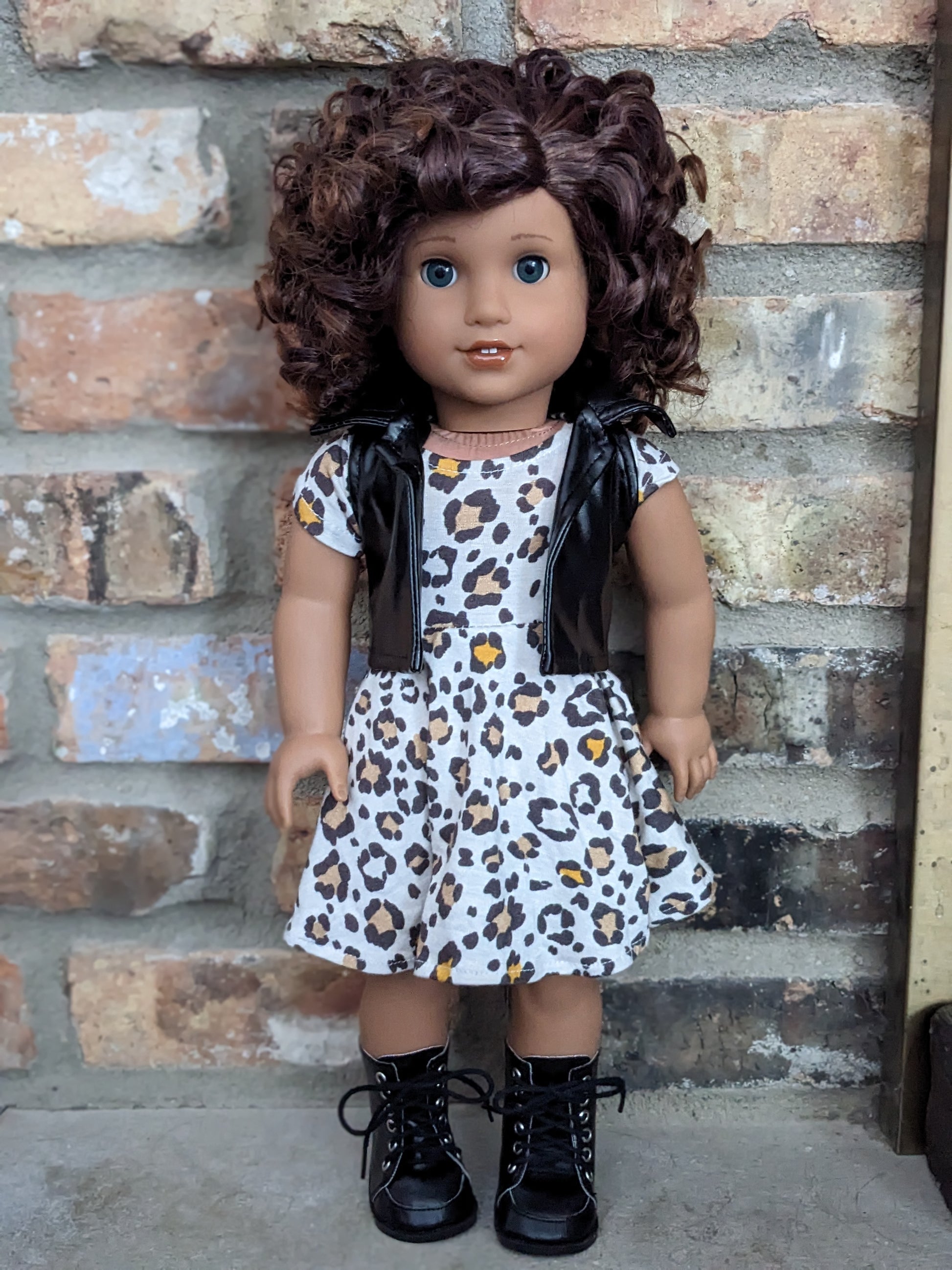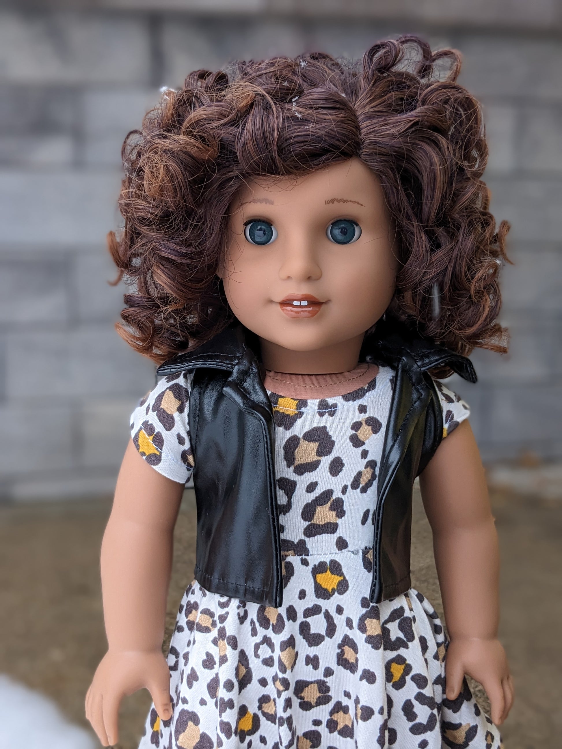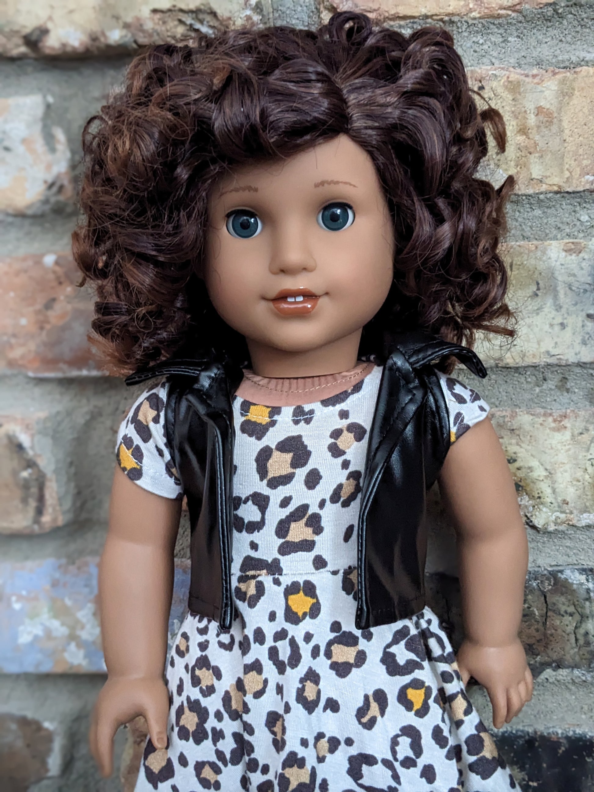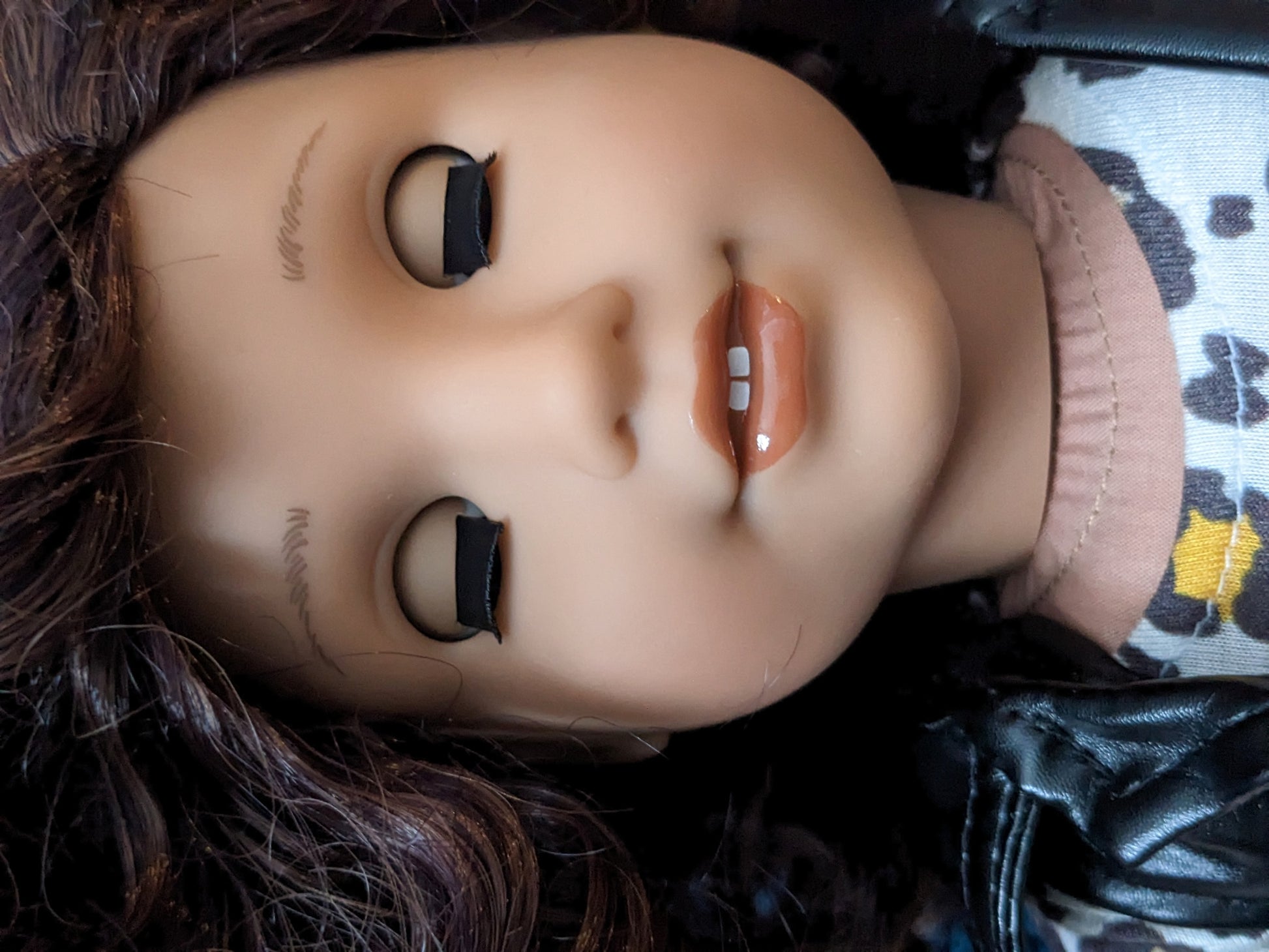 This one of a kind OOAK custom American Girl doll was created with a brand new TM doll, a brown curly wig and blue eyes. She has lip gloss that was hand painted and sealed. She may have some minor shine marks from handling. She will ship nude. She has a microfiber cloth body.