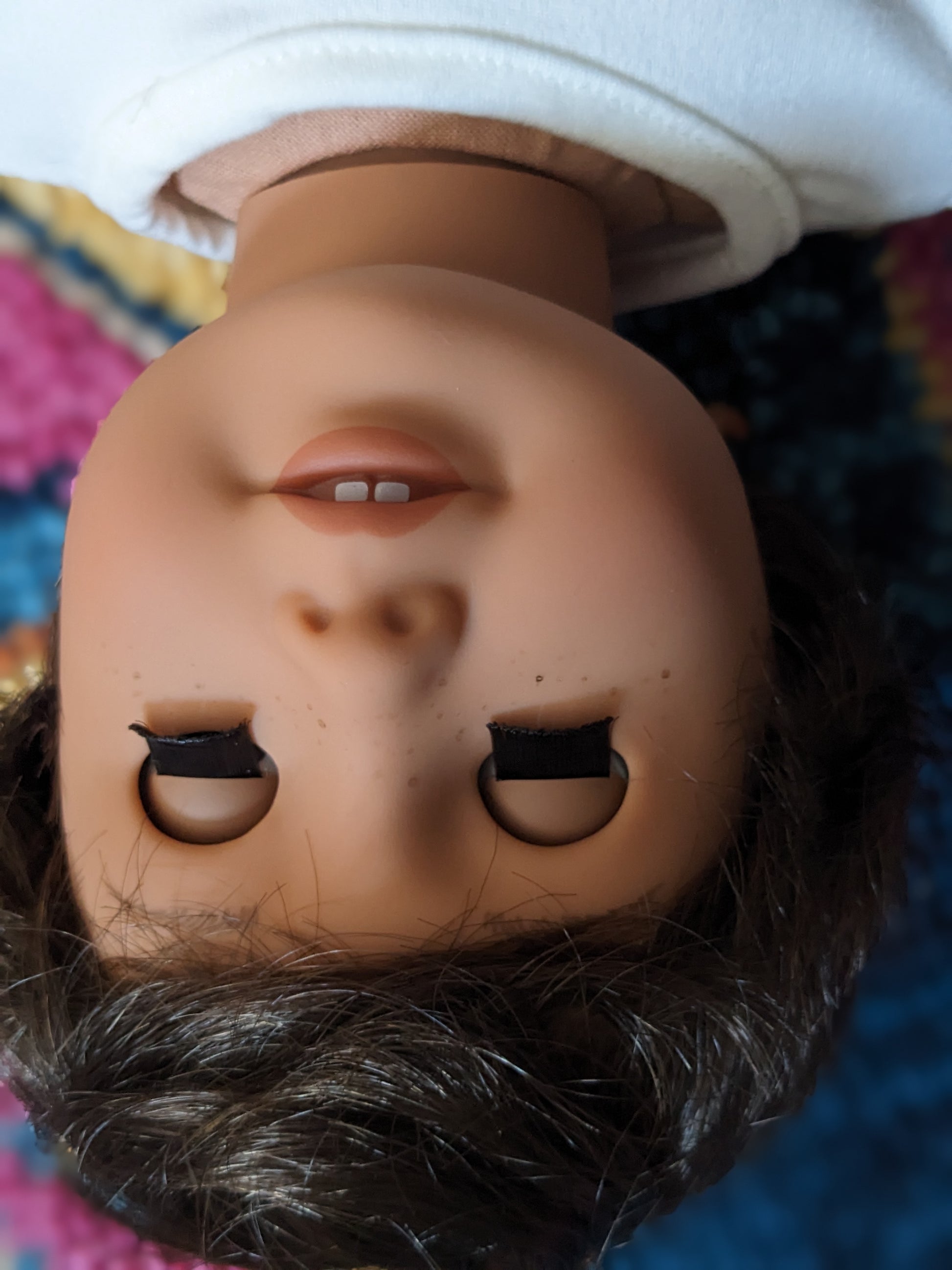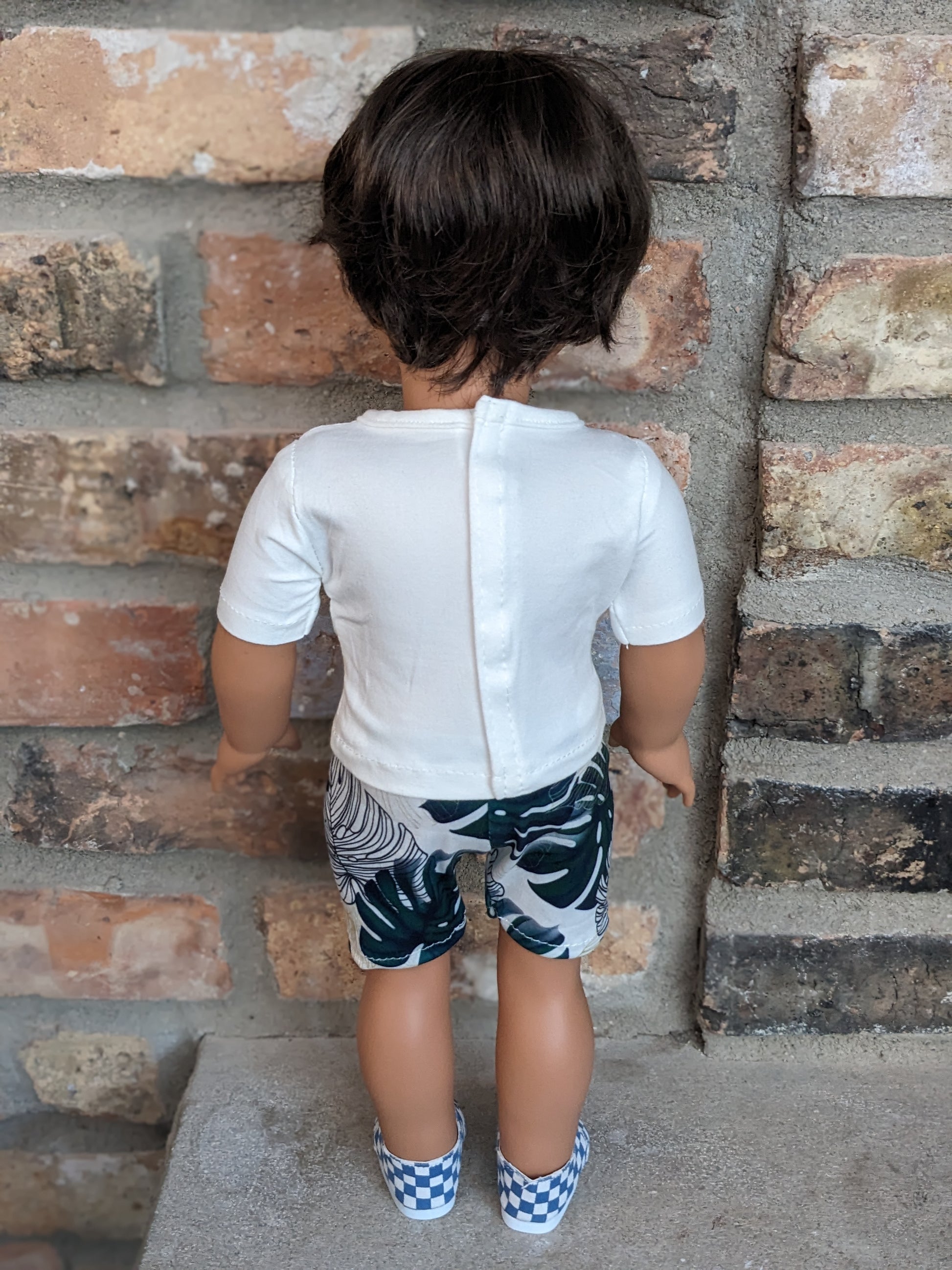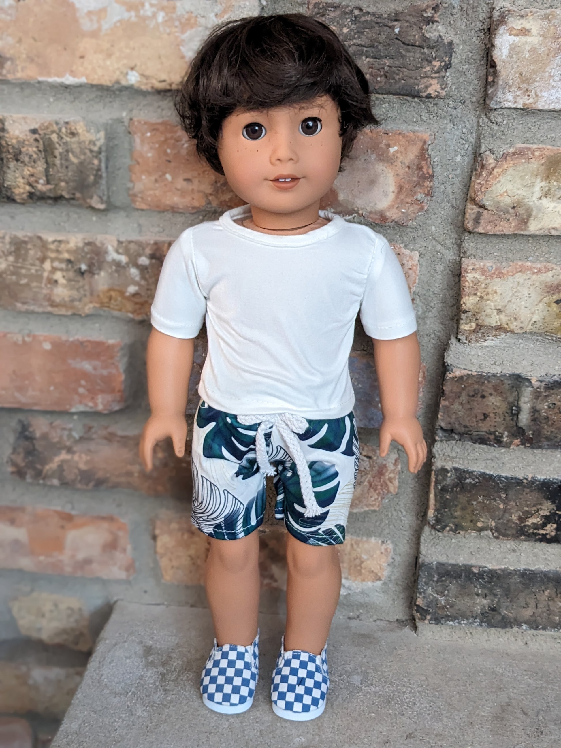 This one of a kind OOAK custom American Girl doll was created with a new doll, a brown wig, and brown eyes. He may have some minor shine marks from handling. He comes with the outfit pictured. He has hand painted freckles.