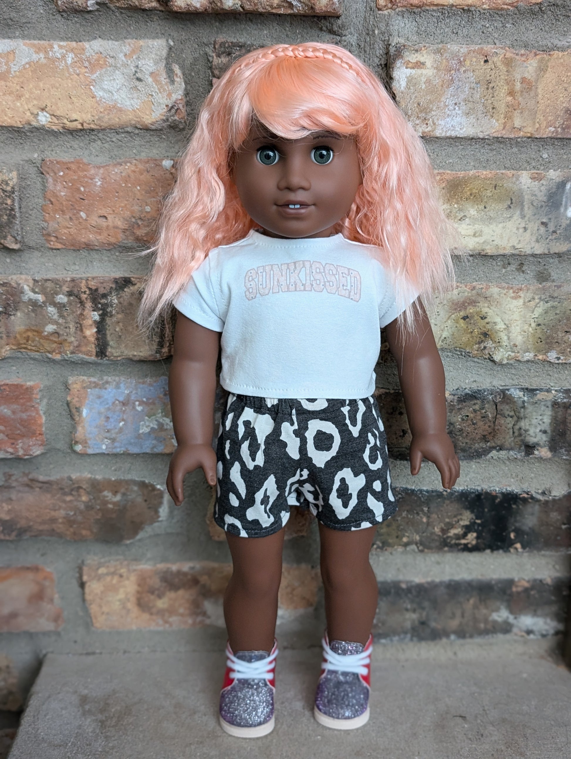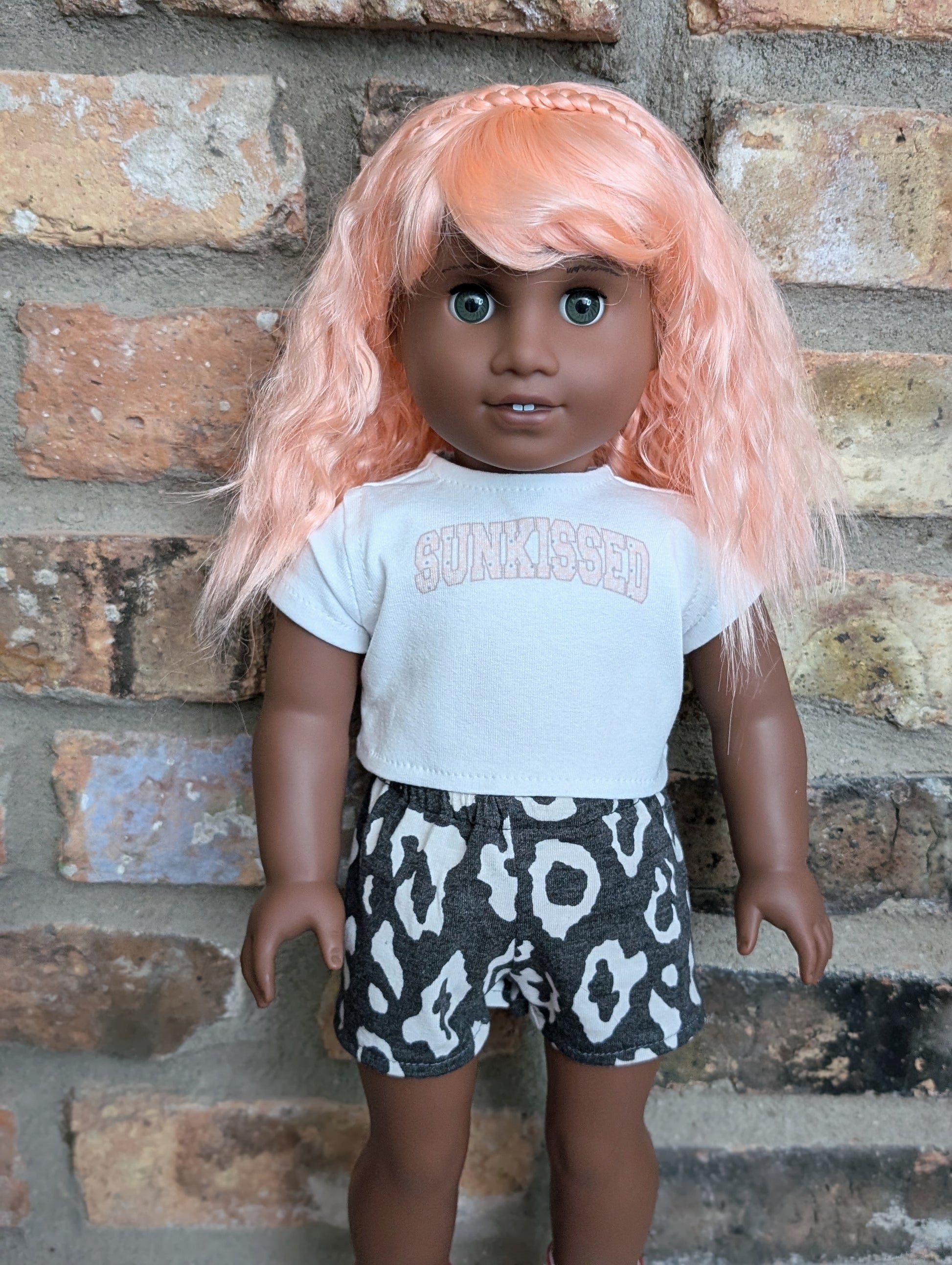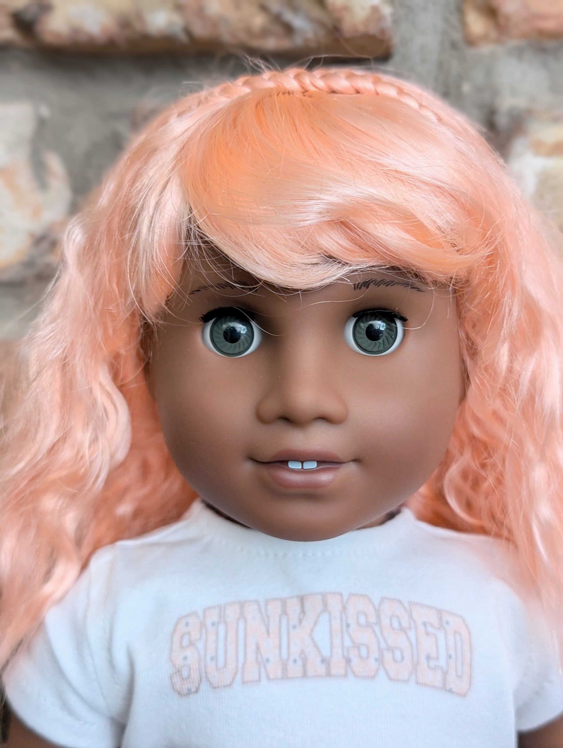 This one of a kind OOAK custom American Girl doll was created with a brand new Truly Me doll, a pink wig, and grey eyes. She may have some minor shine marks from handling.