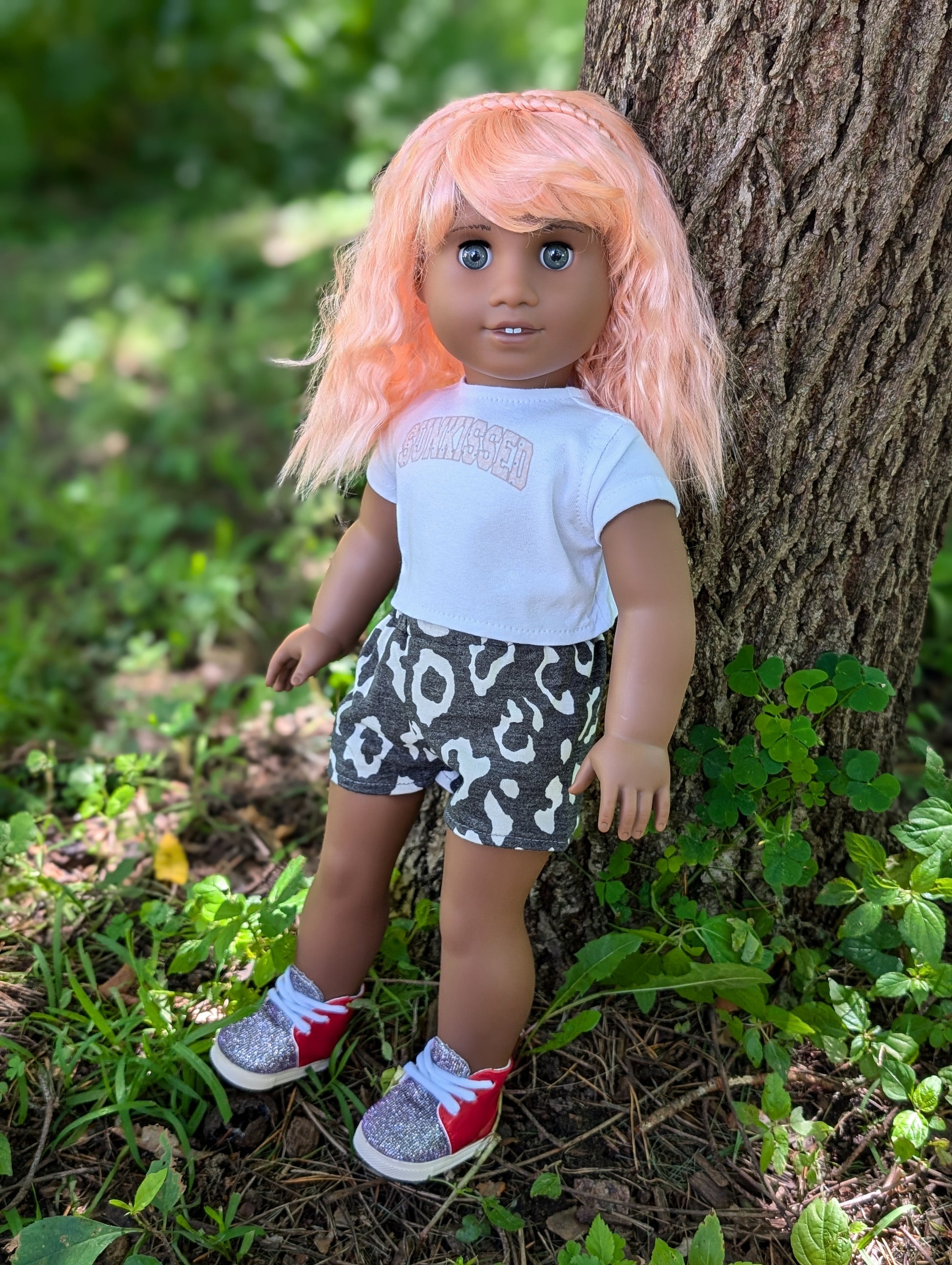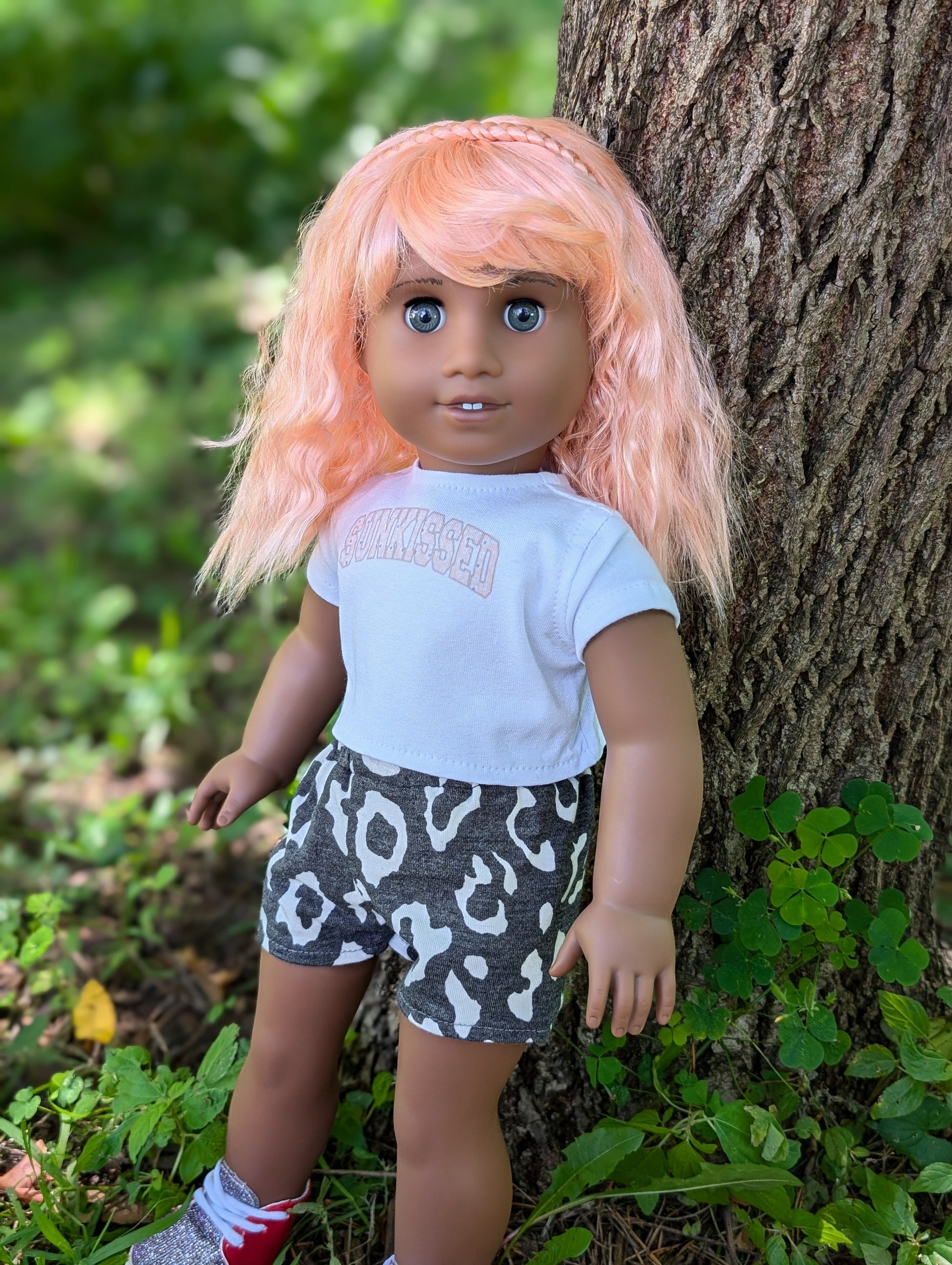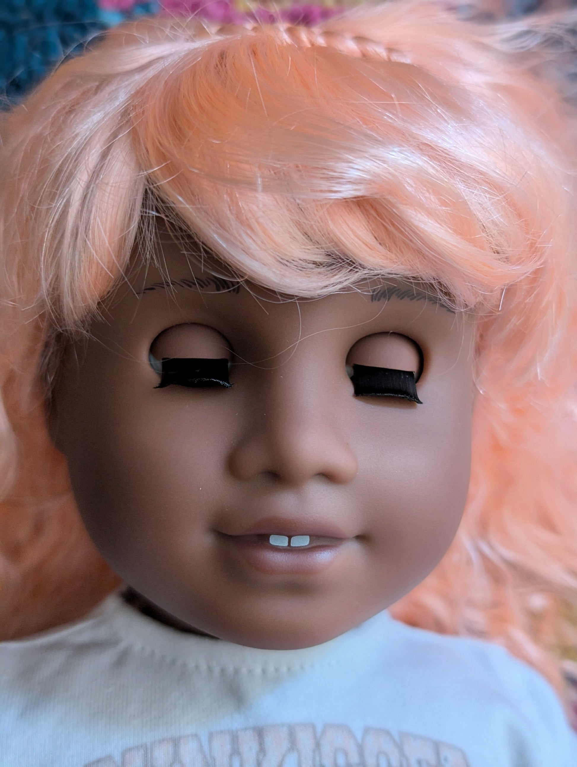This one of a kind OOAK custom American Girl doll was created with a brand new Truly Me doll, a pink wig, and grey eyes. She may have some minor shine marks from handling.