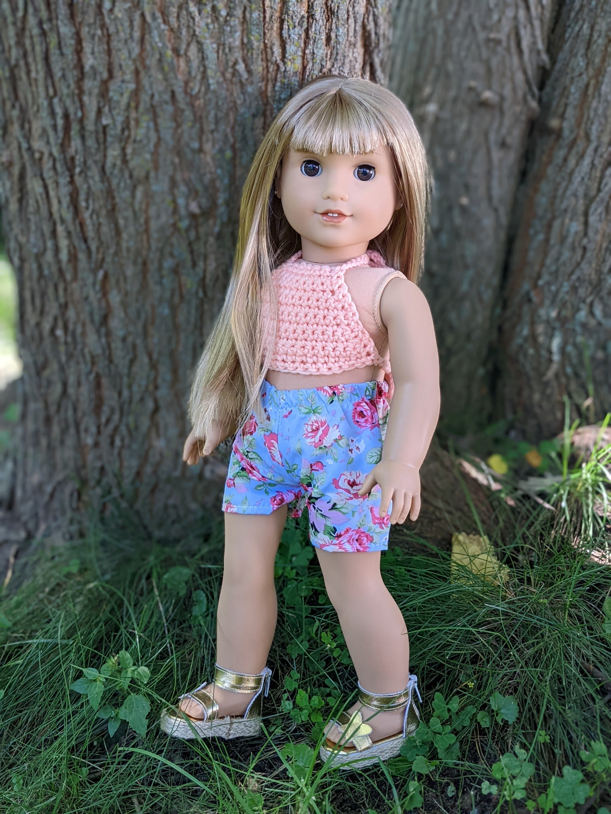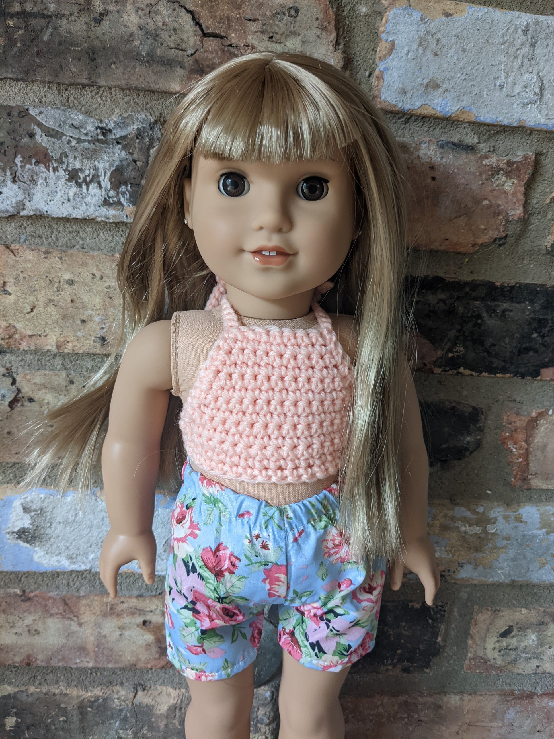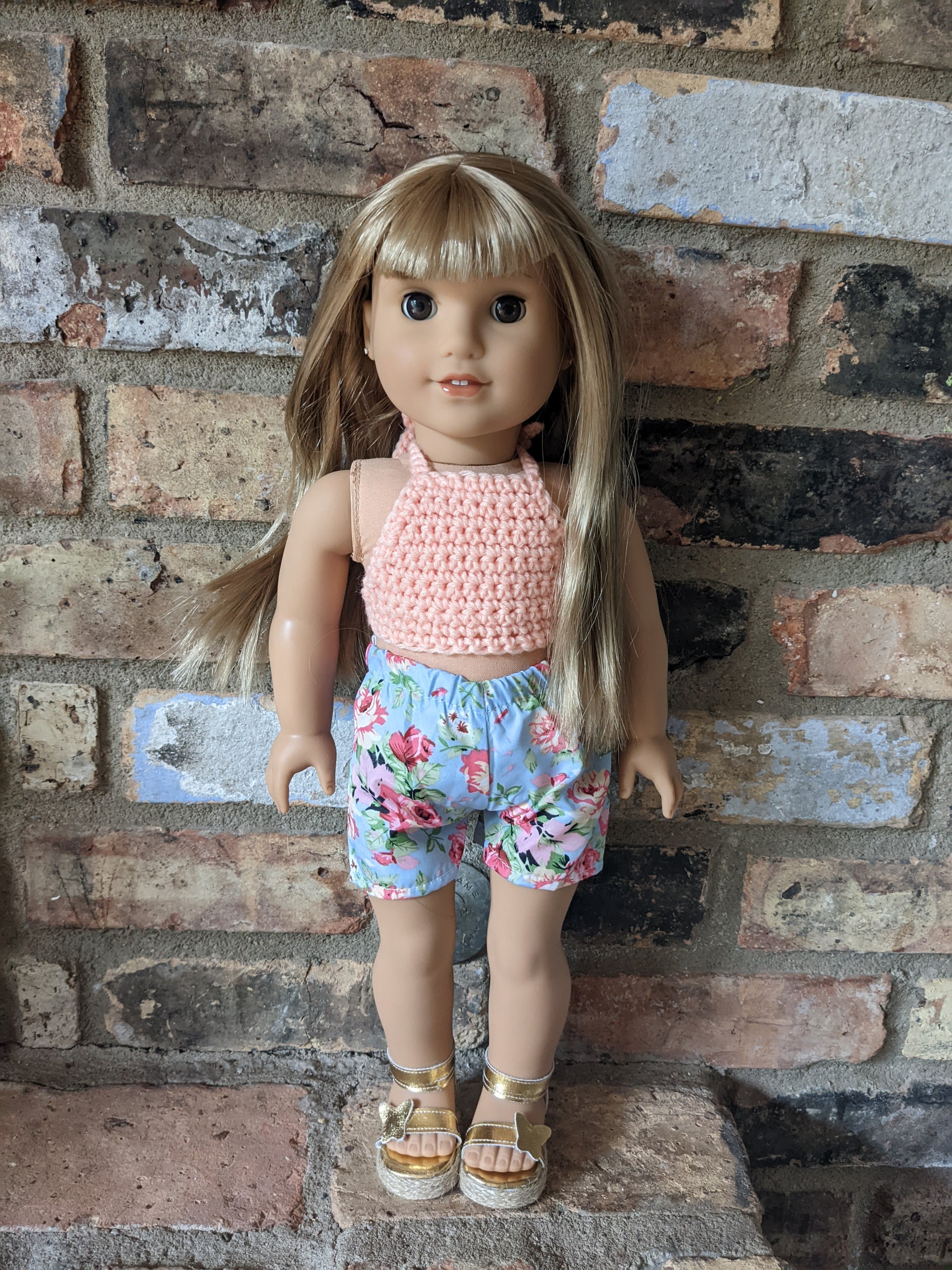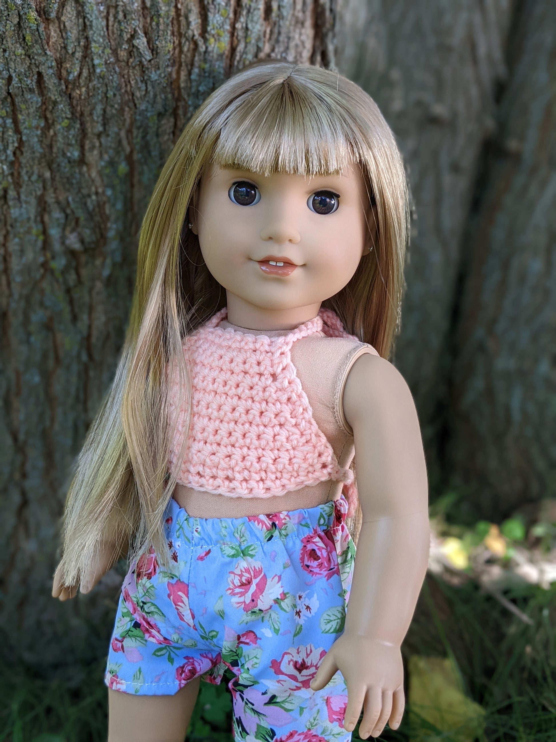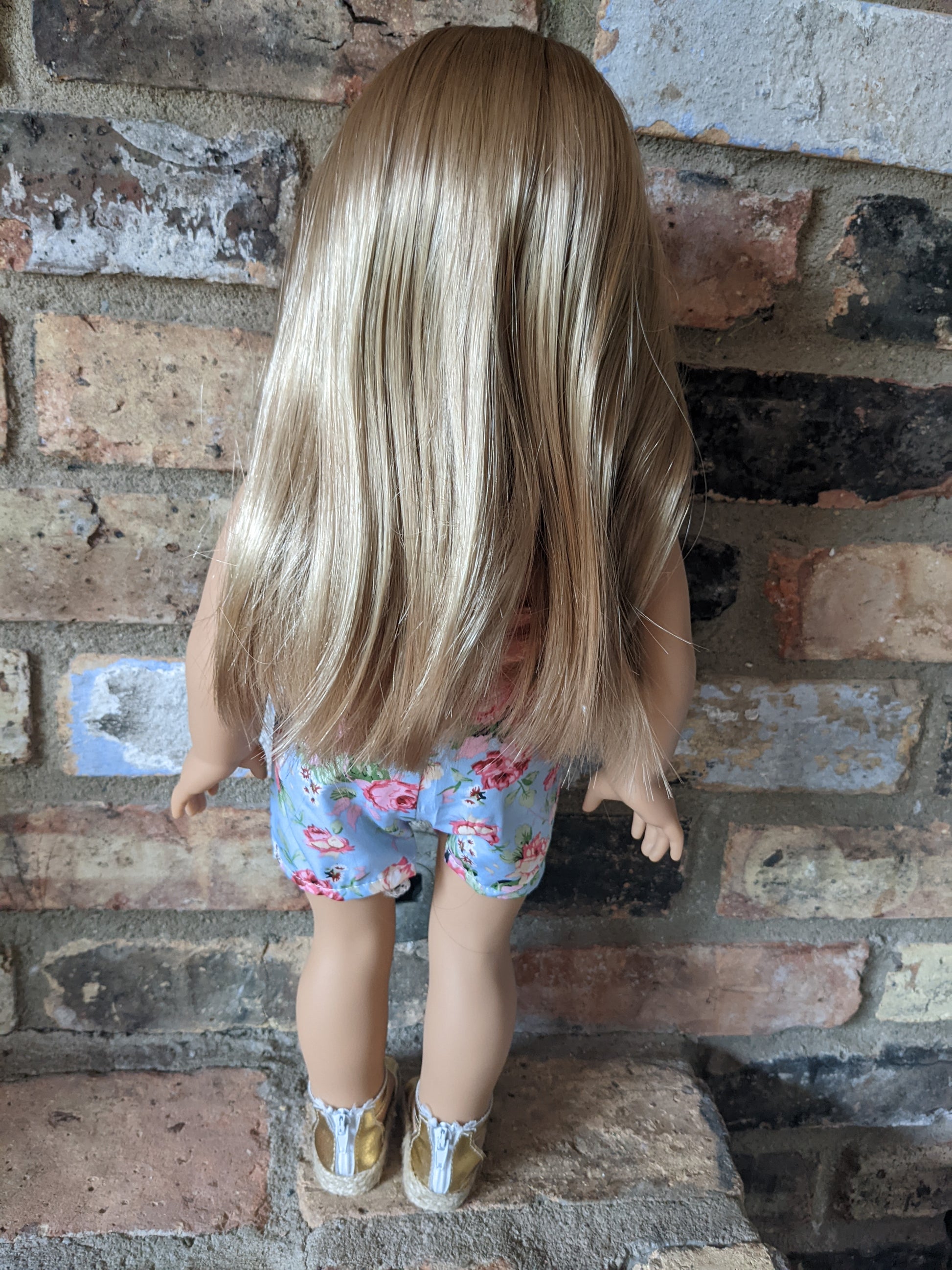This one of a kind OOAK custom American Girl doll was created with a brand new Truly Me doll, a blonde wig with bangs from a new Truly Me doll, and brown eyes. She has lip gloss that was hand painted and sealed. She may have some minor shine marks from handling. She comes with the outfit pictured.