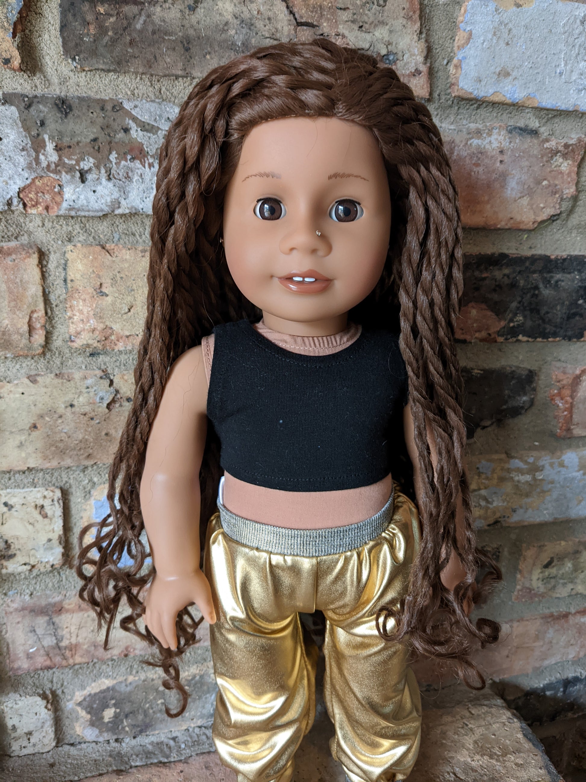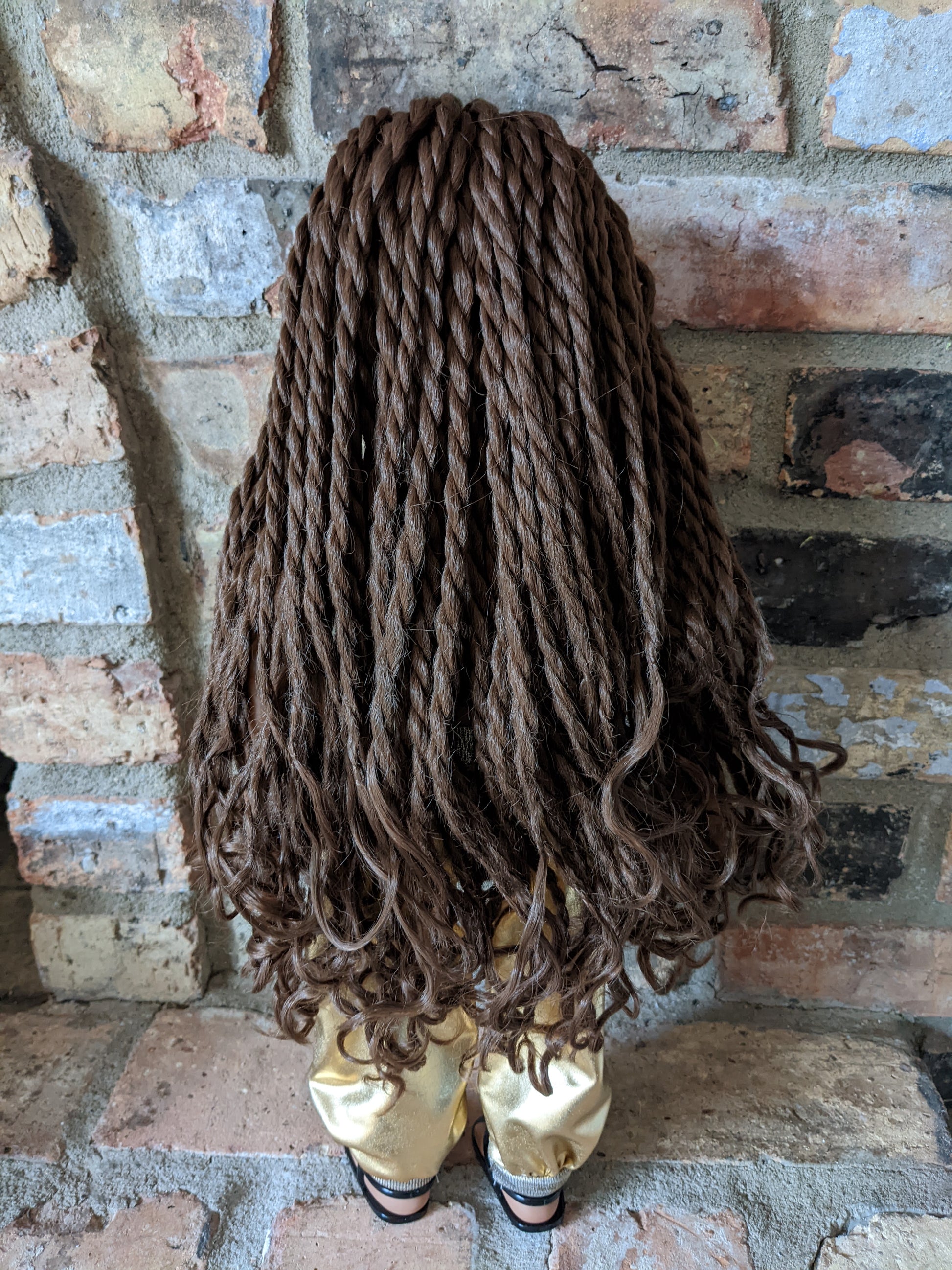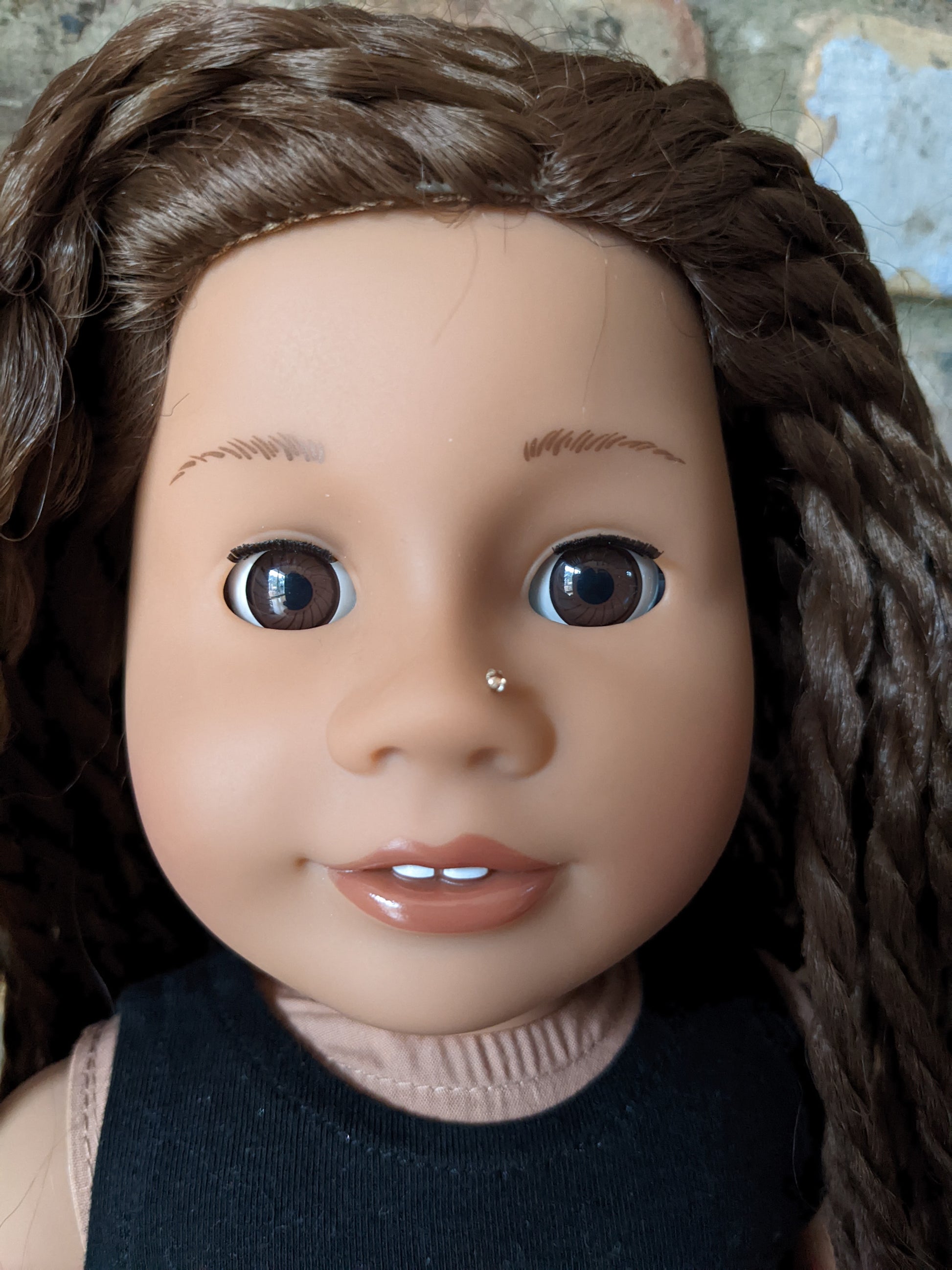 Alysha - brown twisted hair, brown eyes, medium skin tone, Addy face mold