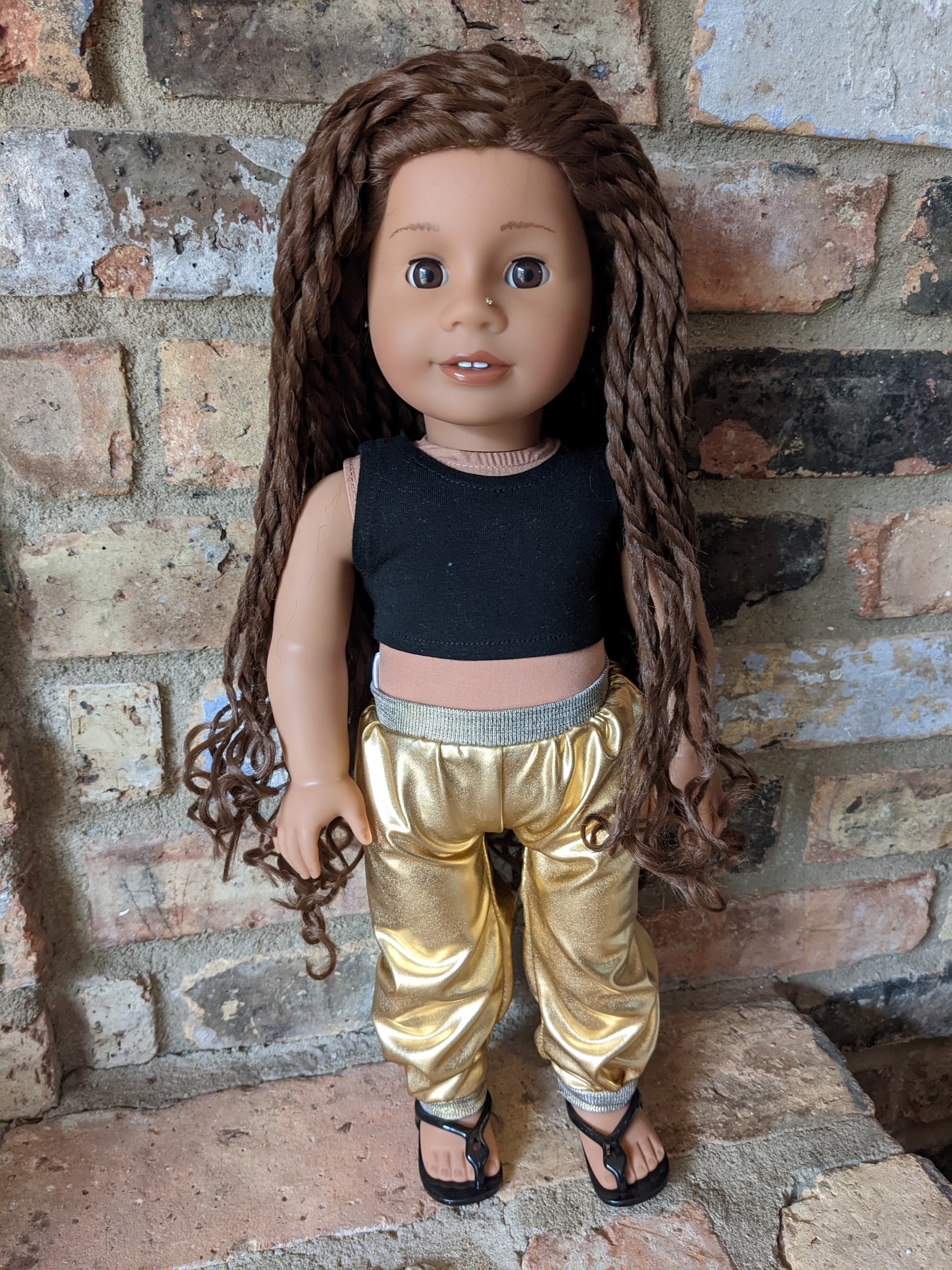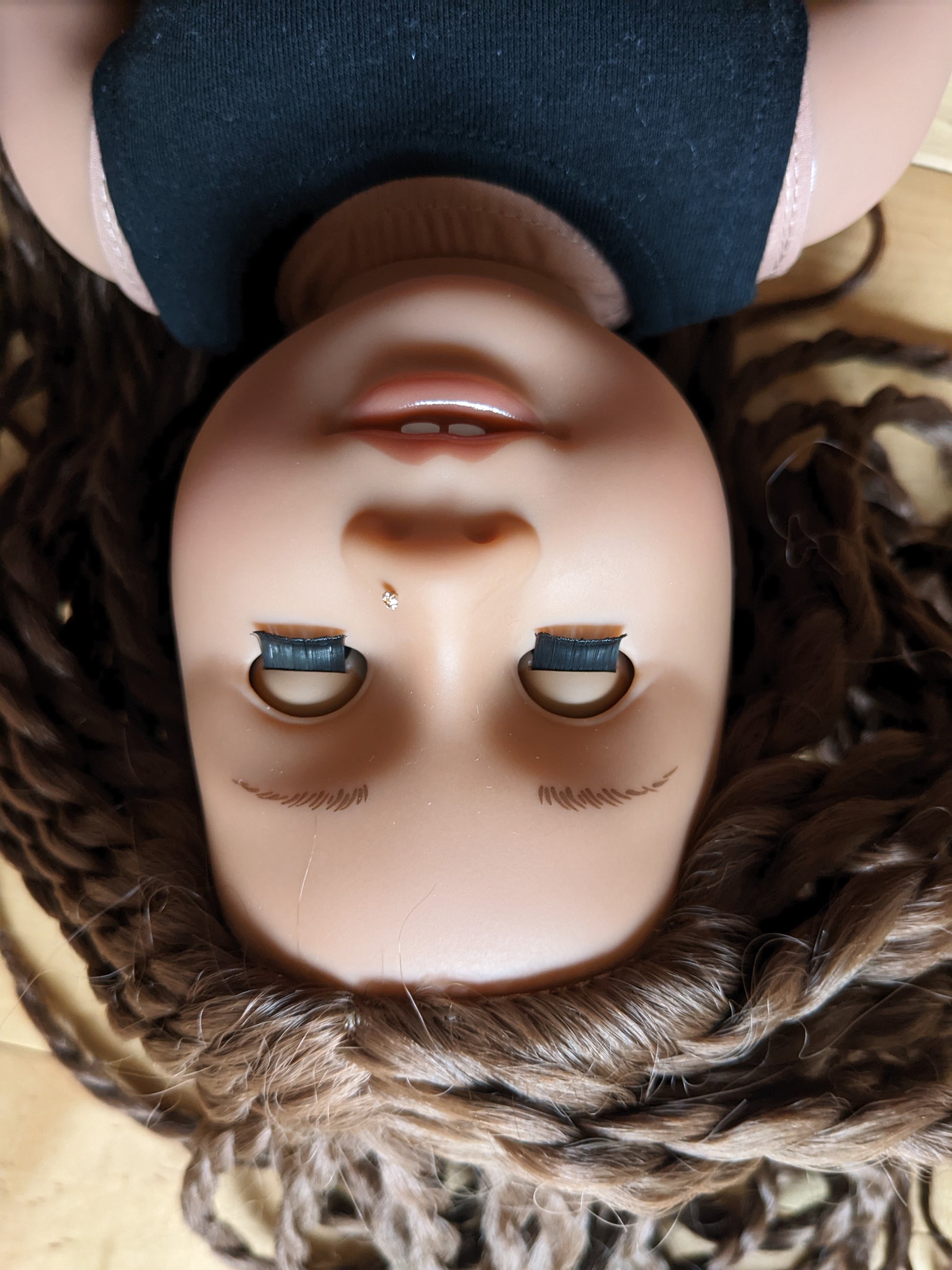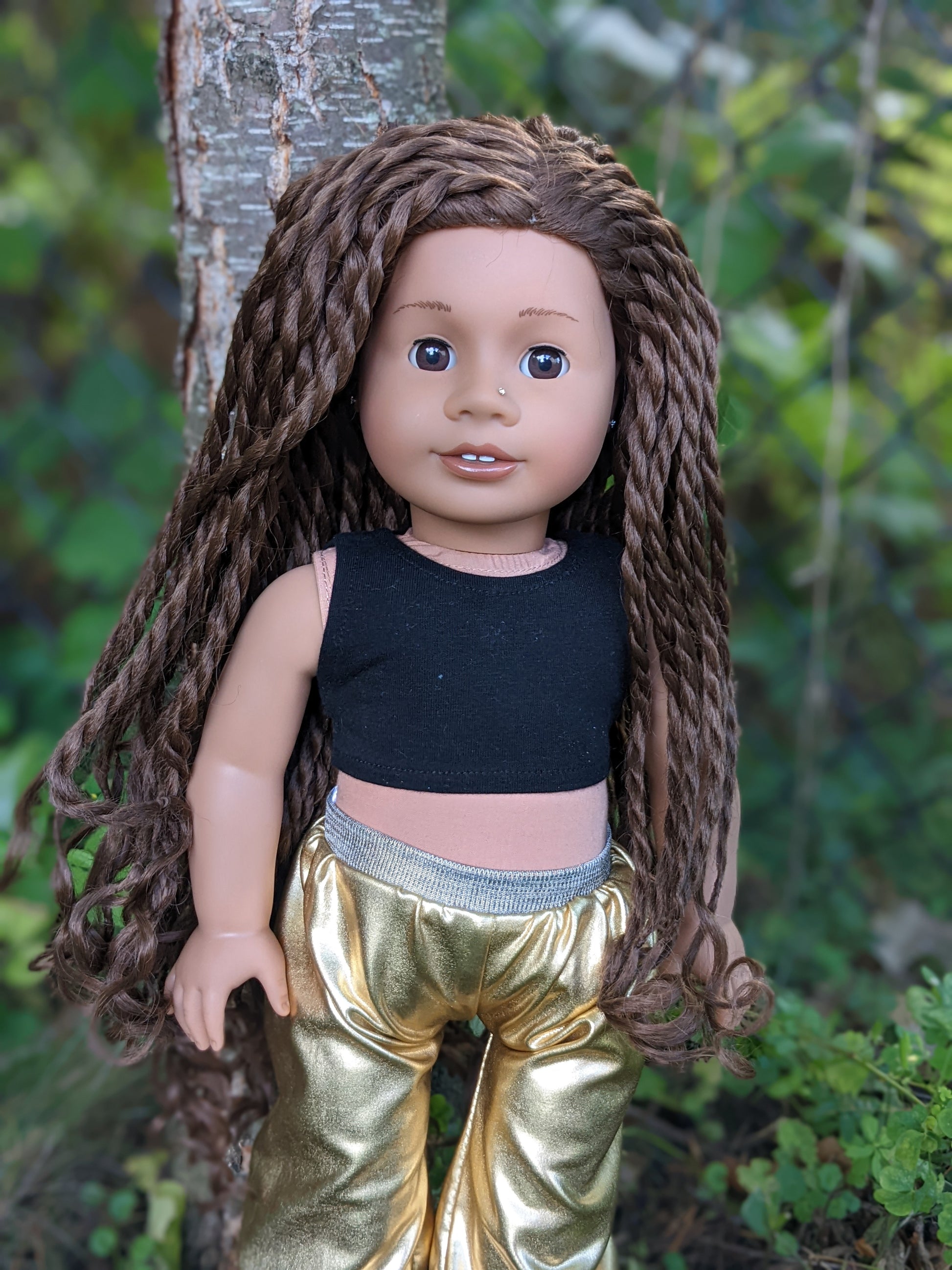 Alysha - brown twisted hair, brown eyes, medium skin tone, Addy face mold