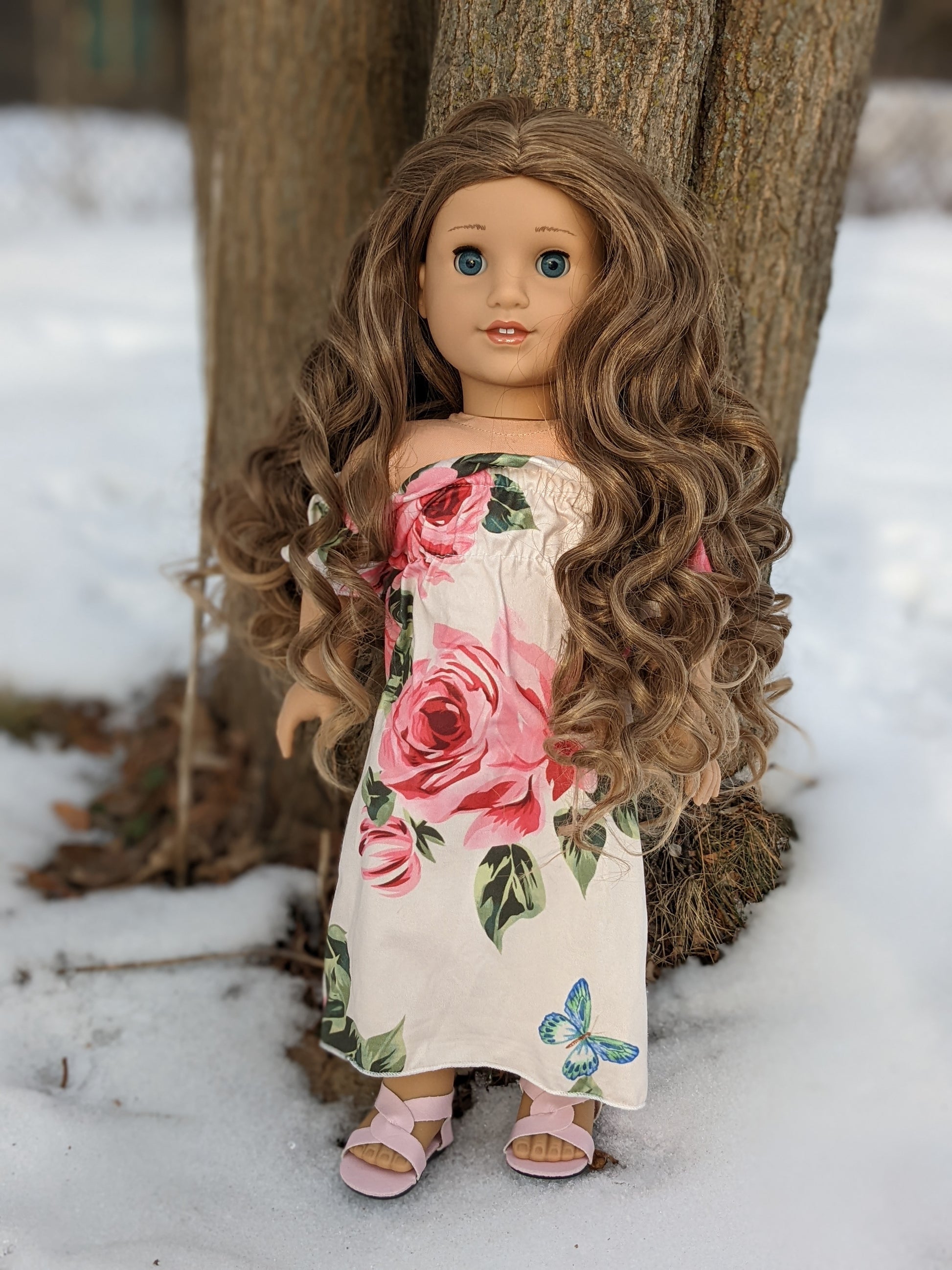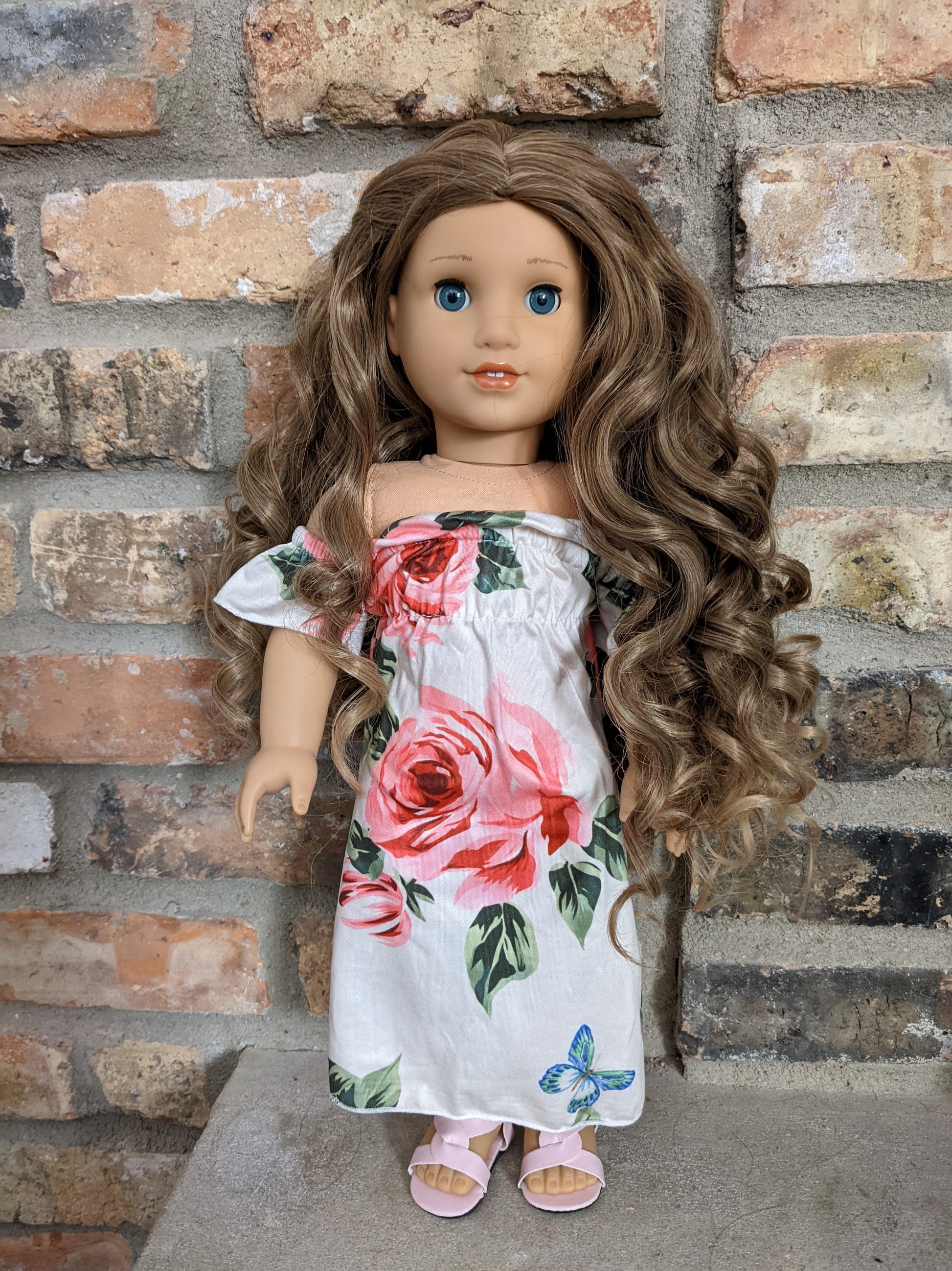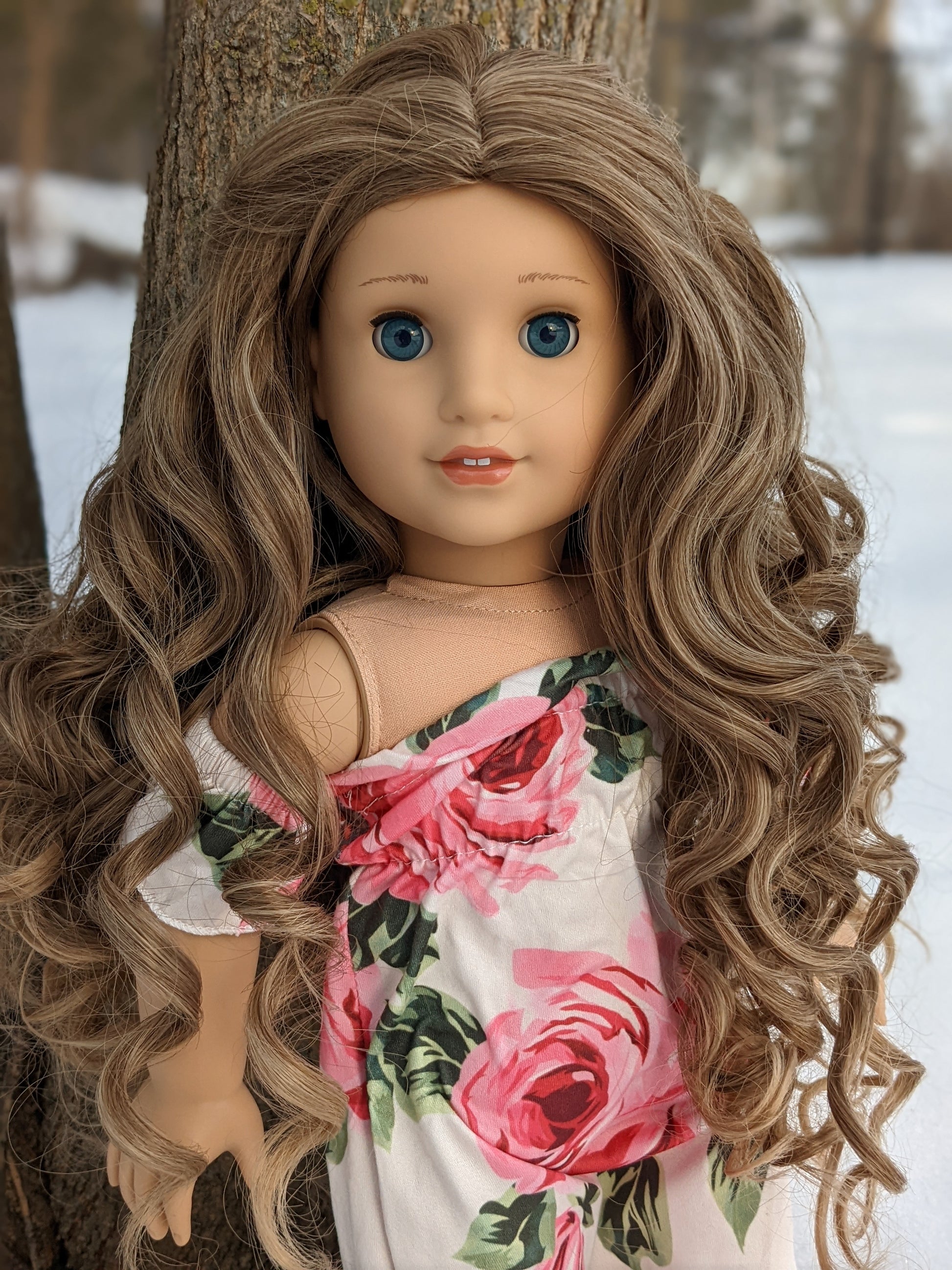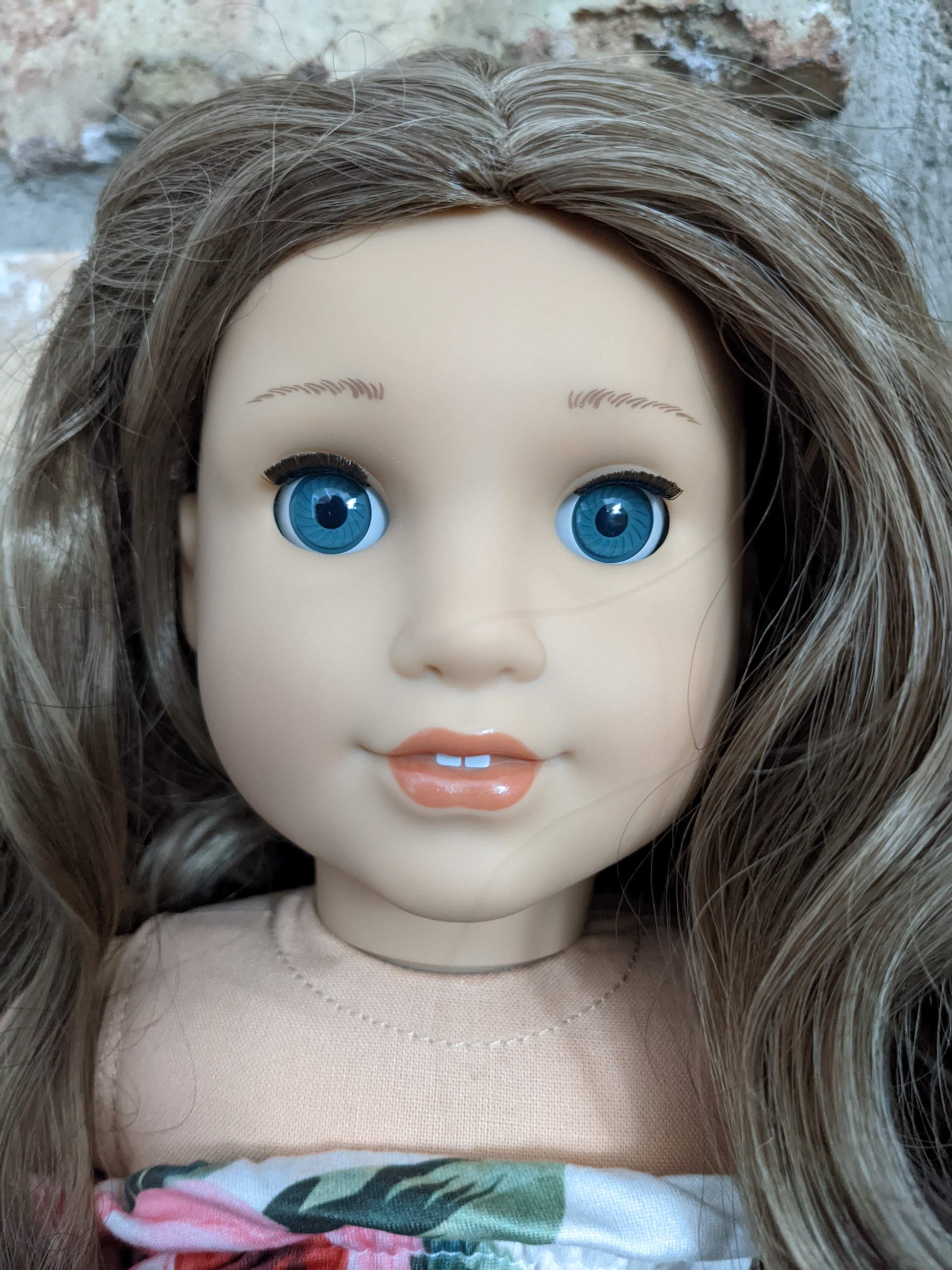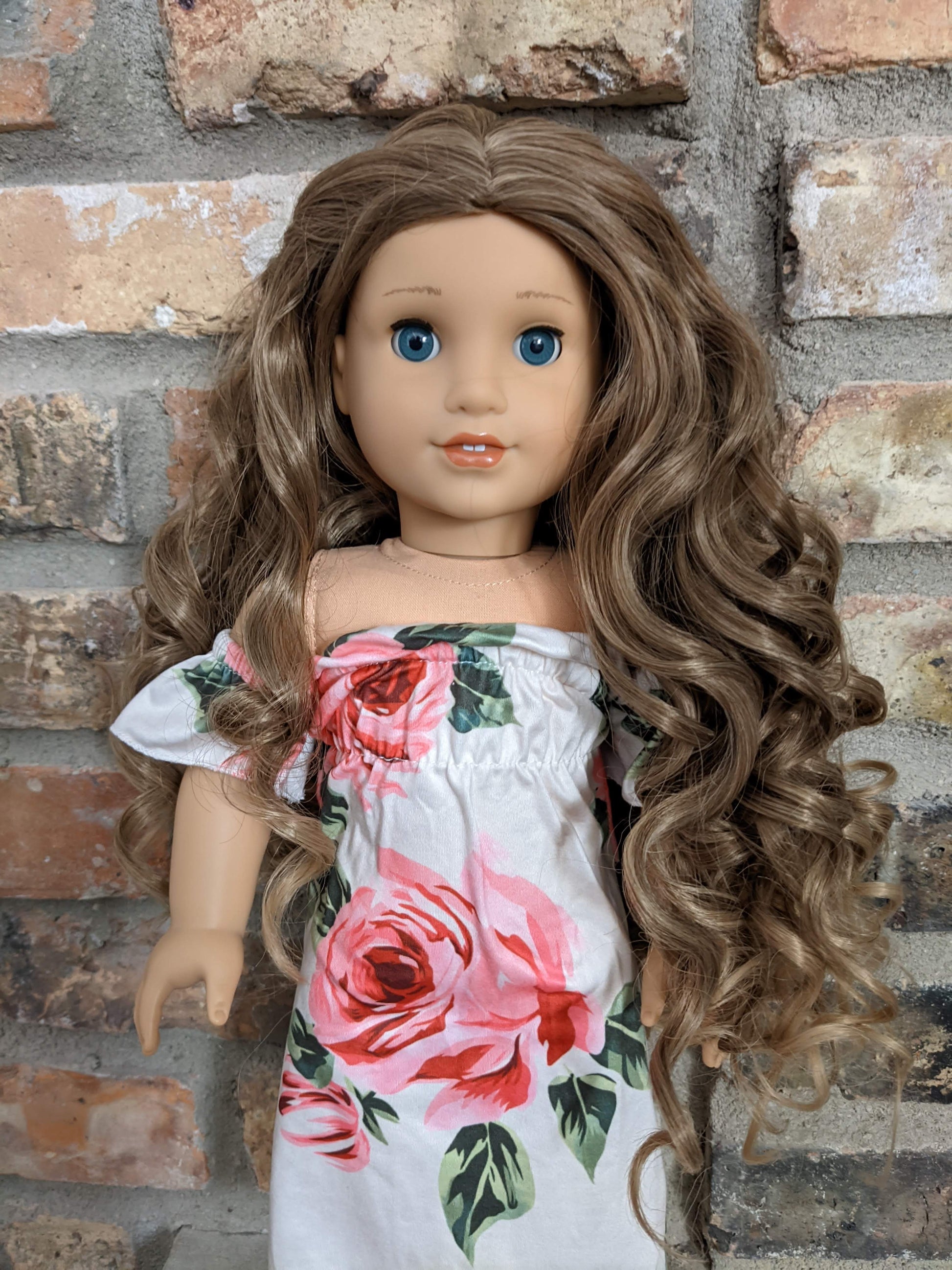 This one of a kind OOAK custom American Girl doll was created with a brand new Truly Me doll, a brown curly wig, and blue eyes. She has custom lip gloss, painted and sealed. She may have some minor shine marks from handling. She comes with the outfit pictured. Please let me know if you would like the wig left unattached. For all other orders, I will glue the wig on using a heavy duty permanent adhesive for a strong hold. I can reposition the wig to change the part location if you prefer or I can glue the wig on as close to how its pictured as possible, but slight variations may occur during the gluing process.