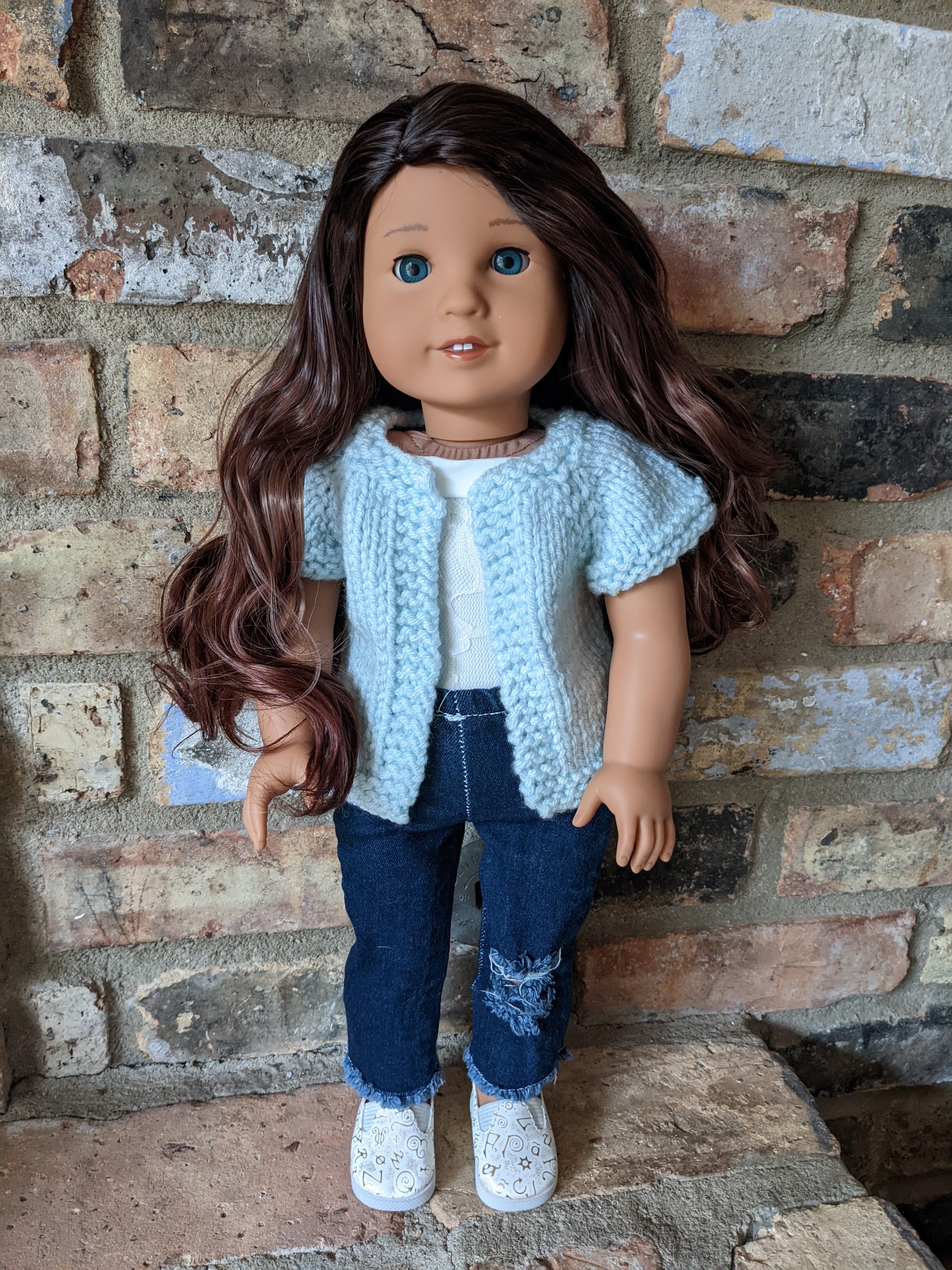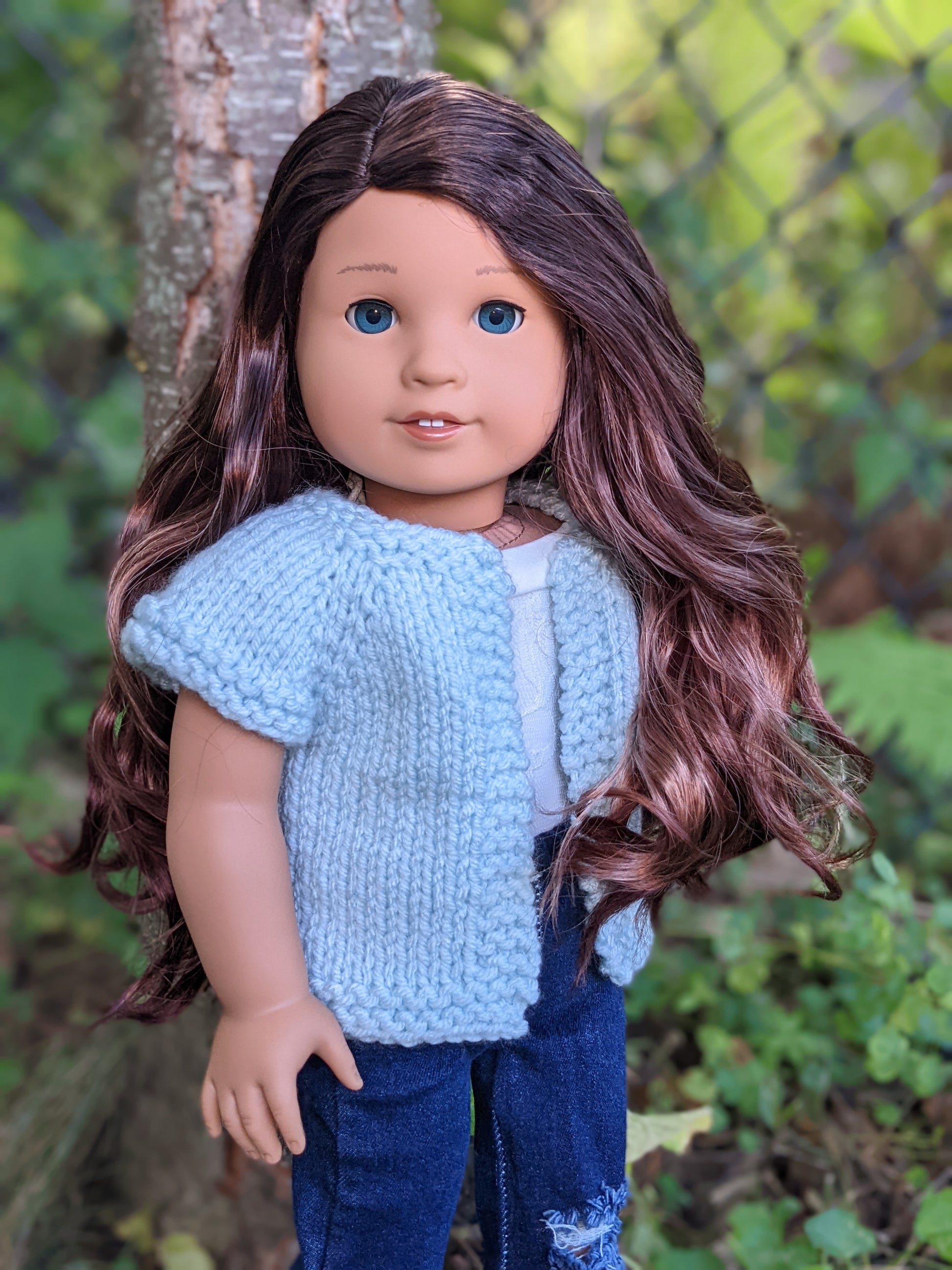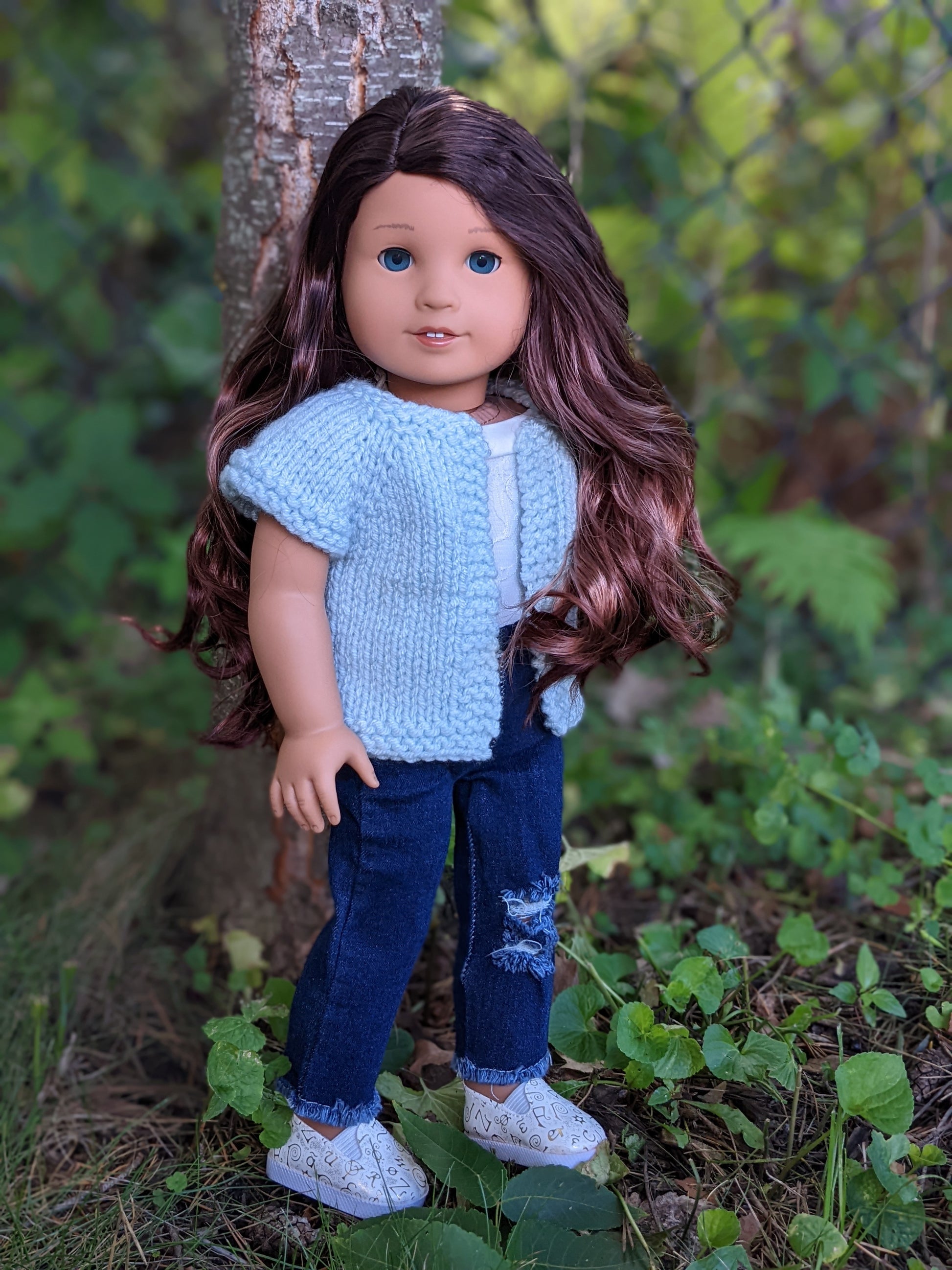 This one of a kind OOAK custom American Girl doll was created with a brand new Truly Me doll, a brown ombre wig, and blue eyes. She has lip gloss that was hand painted and sealed. She may have some minor shine marks from handling. She comes with the outfit pictured. She has a microfiber cloth body. Her ears are pierced with normal earrings and the tiny diamond look studs are included.