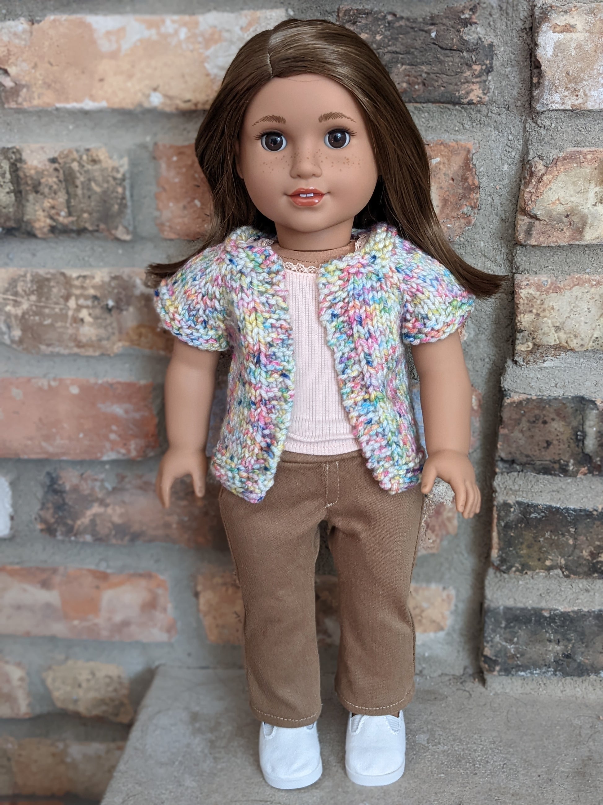 This one of a kind OOAK custom American Girl doll was created with a brand new Evette doll, a brown wig, and brown eyes. She has lip gloss that was hand painted and sealed. She may have some minor shine marks from handling. She comes with the outfit pictured. Her lower painted on eyelashes have been removed.