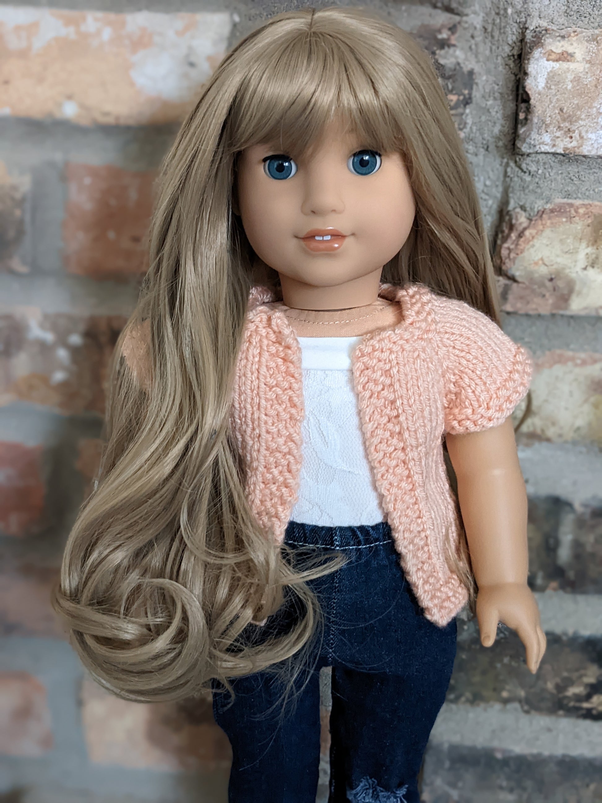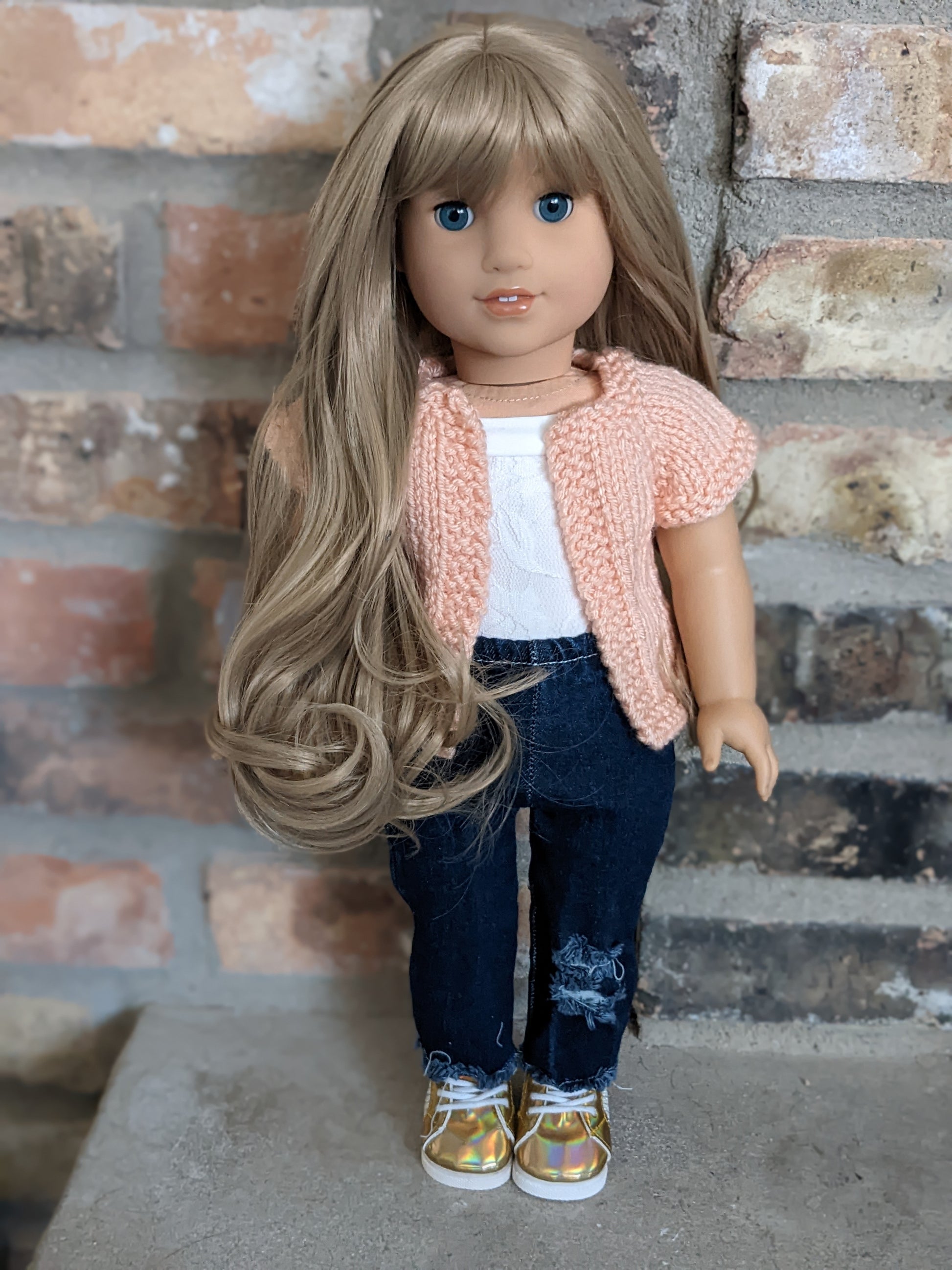 This one of a kind OOAK custom American Girl doll was created with a brand new Truly Me doll, a blonde wig, and blue eyes. She has lip gloss that was hand painted and sealed. She may have some minor shine marks from handling. She comes with the outfit pictured.