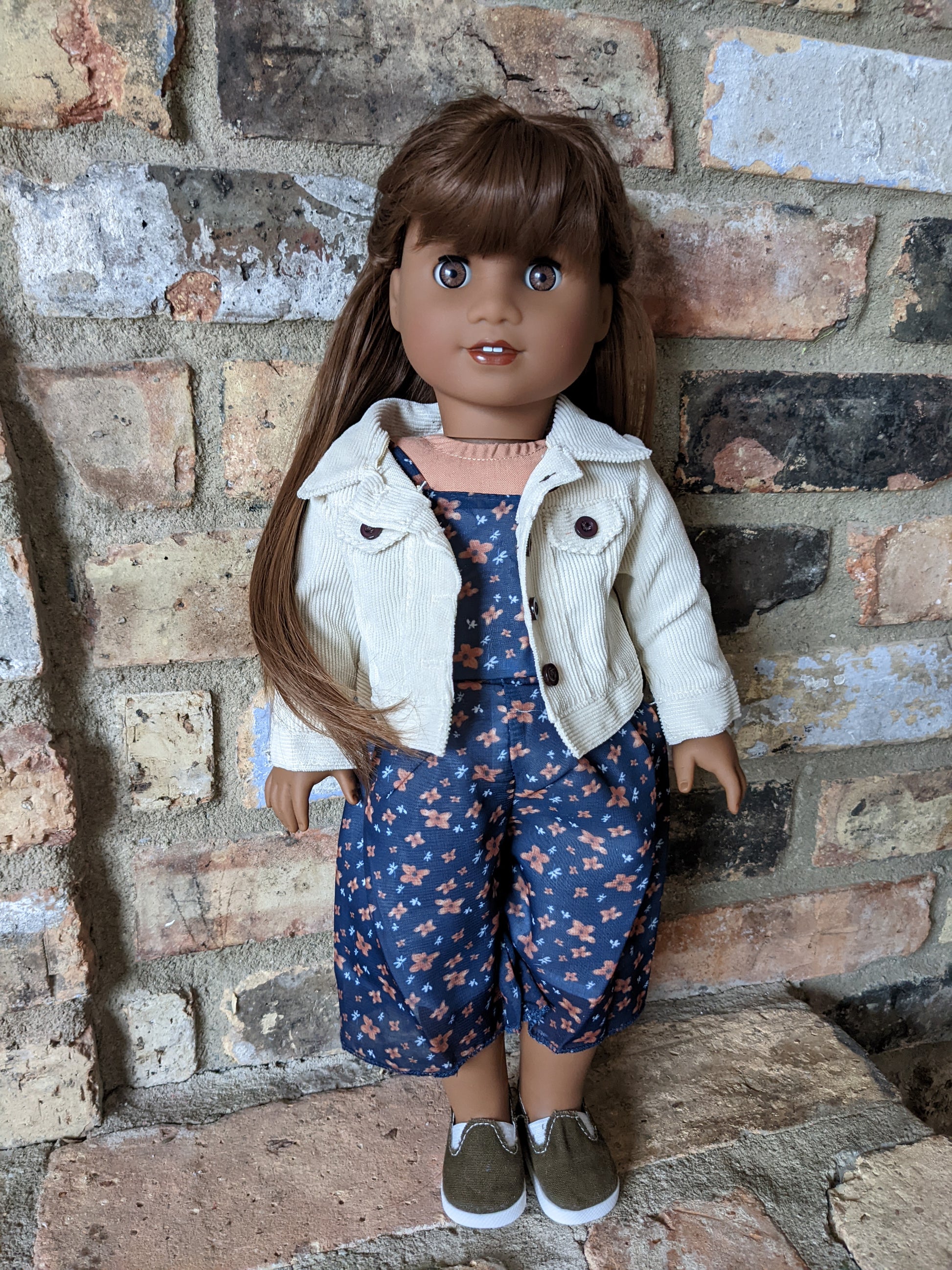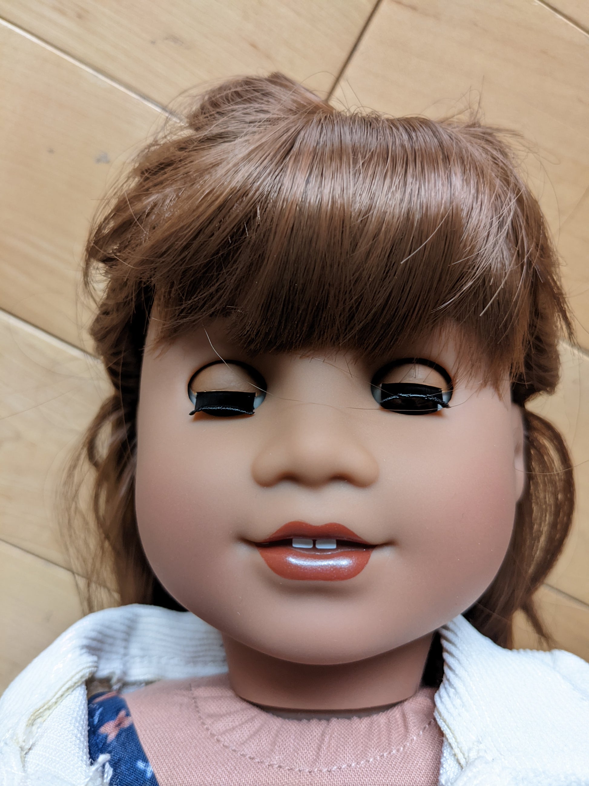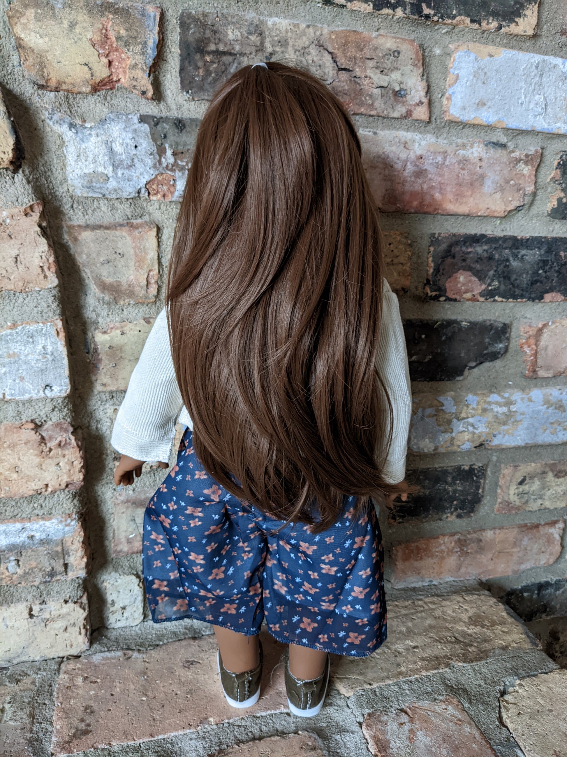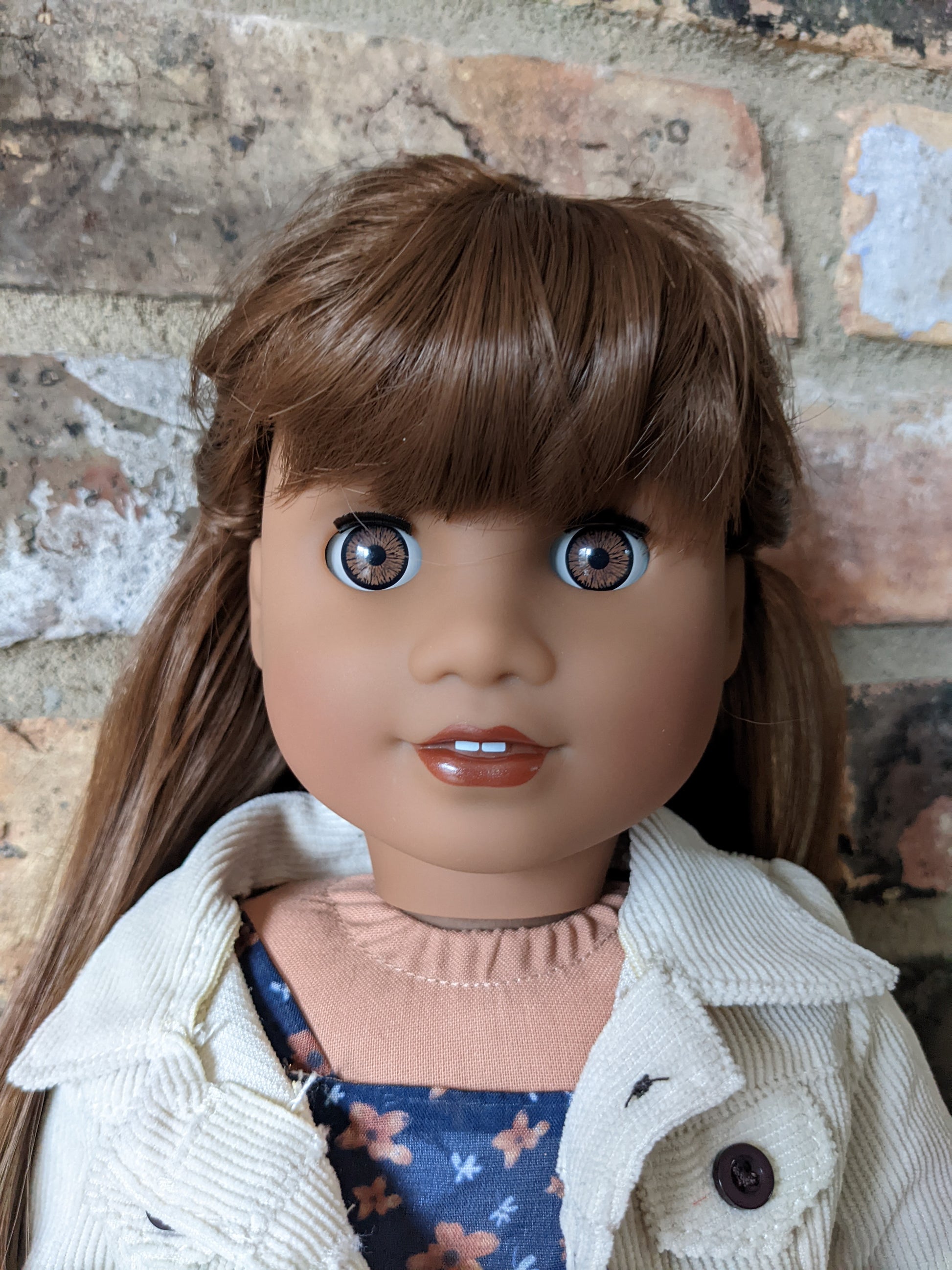 This one of a kind OOAK custom American Girl doll was created with a new Gabriela doll, light brown eyes, and a brown wig with bangs. She has custom lip gloss painted and sealed. She may have some minor shine marks from handling. She comes with the outfit pictured. If you would like me to leave the wig unattached, please let me know by leaving a note in the "Order Special Instructions" box upon checkout. Otherwise I will attach the wig with a heavy duty permanent adhesive.