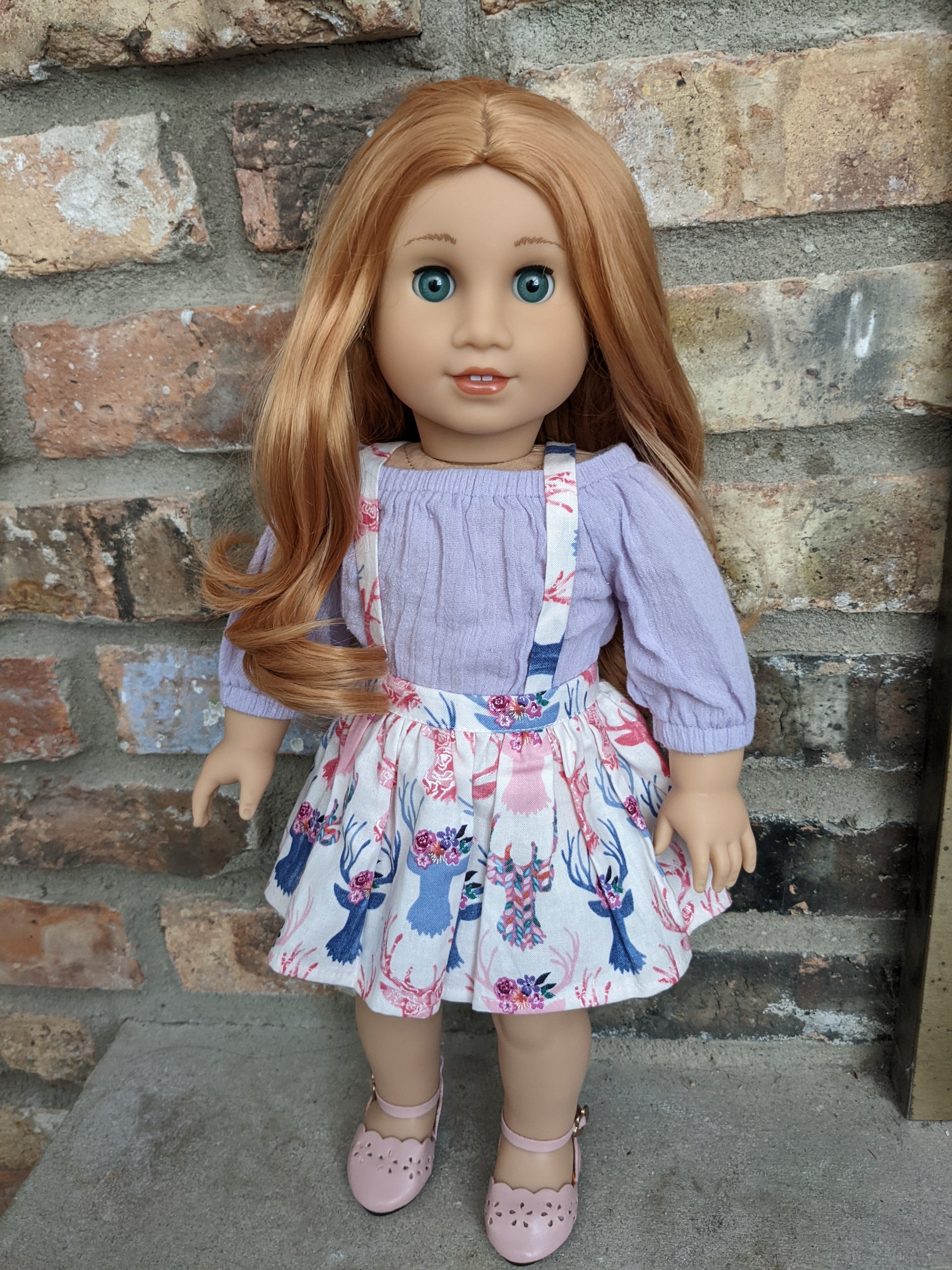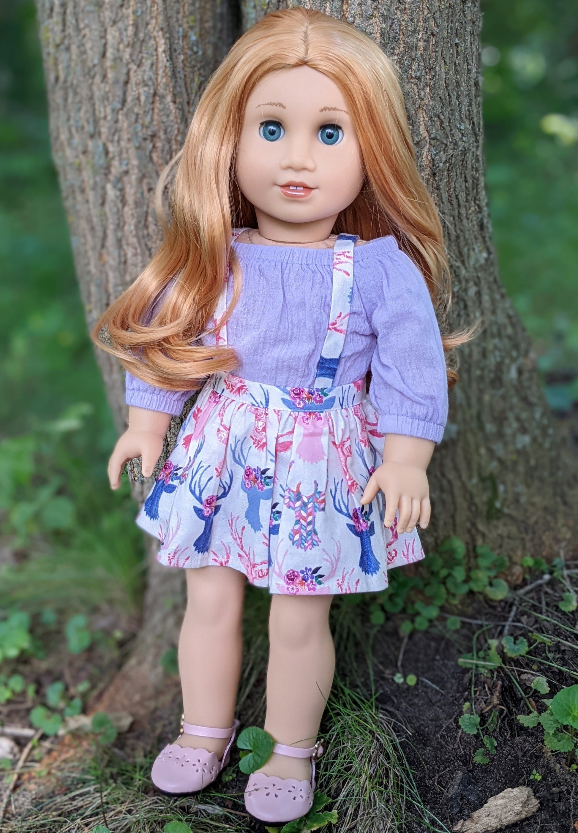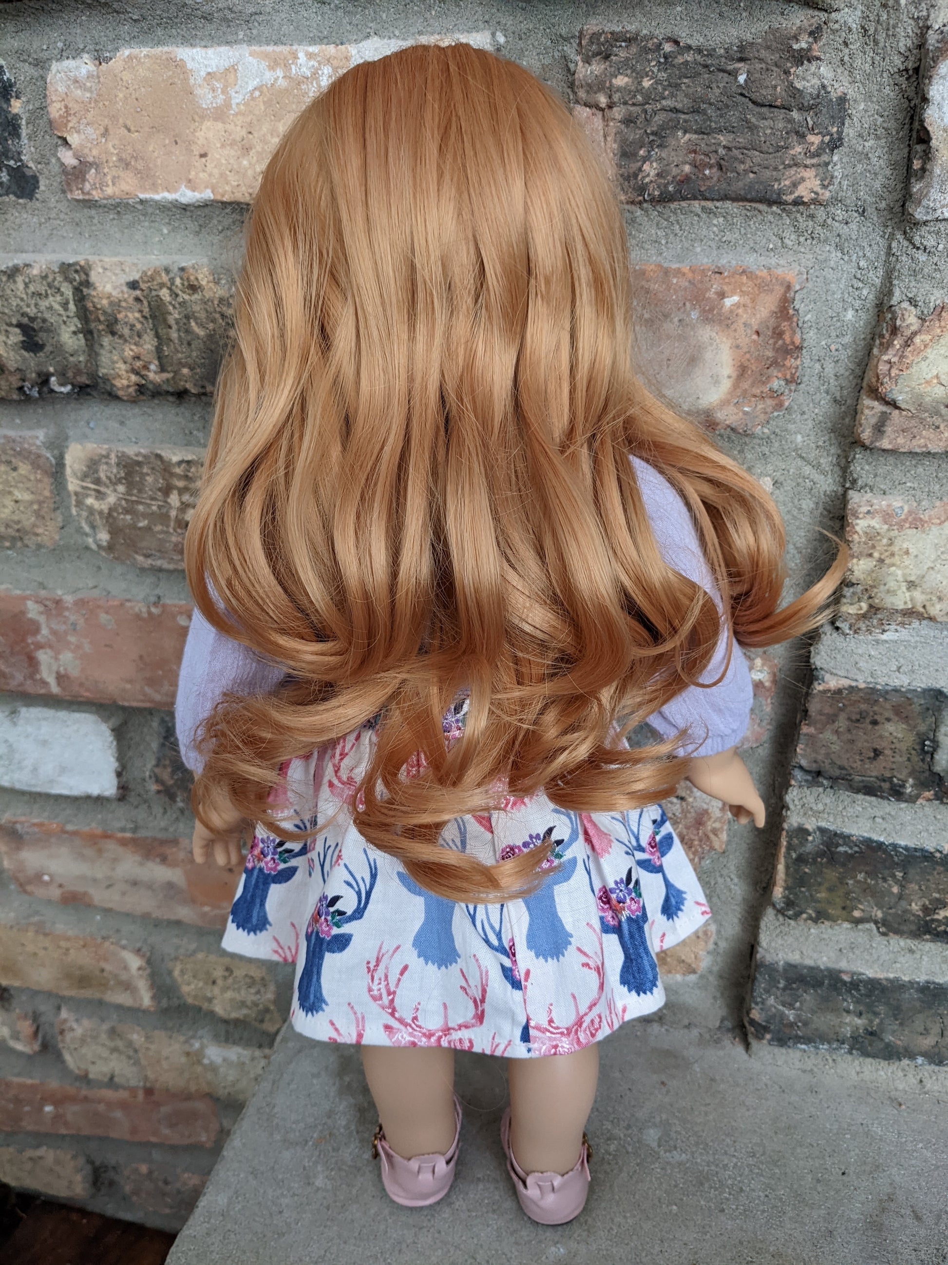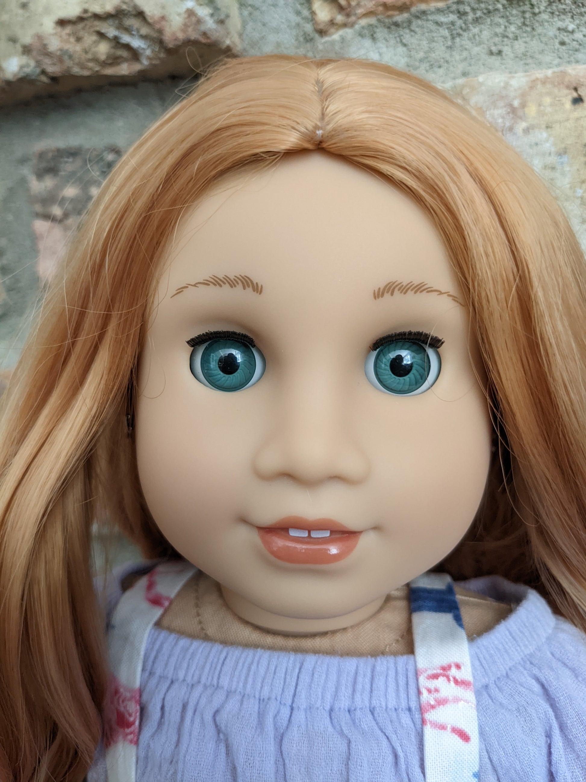 This one of a kind OOAK custom American Girl doll was created with a brand CYO doll, a light red wavy wig, and aquamarine eyes from a Marie Grace doll. She has lip gloss that was hand painted and sealed. She may have some minor shine marks from handling. She comes with the outfit pictured. Her ears are pierced with American Girl Doll earrings.