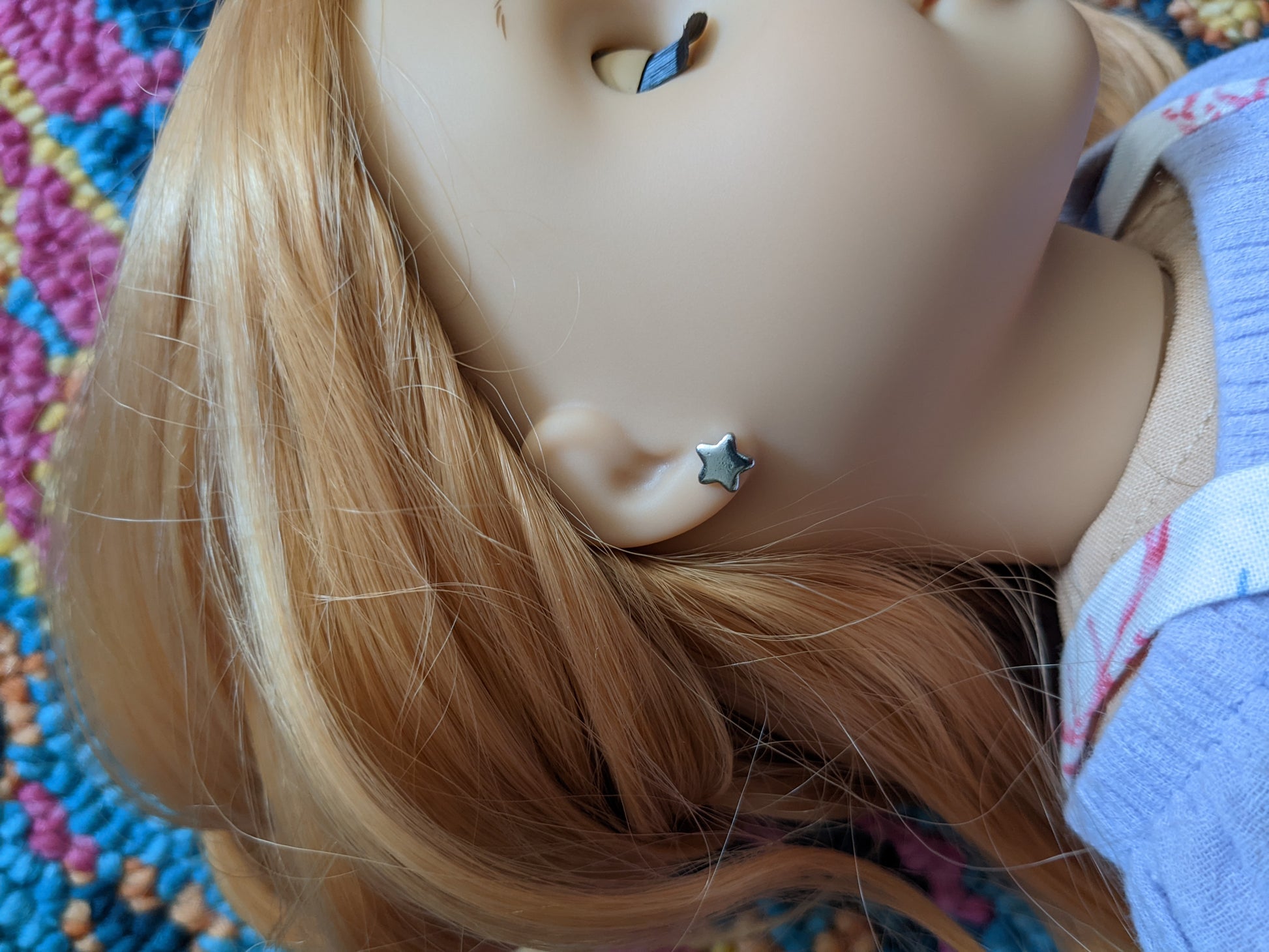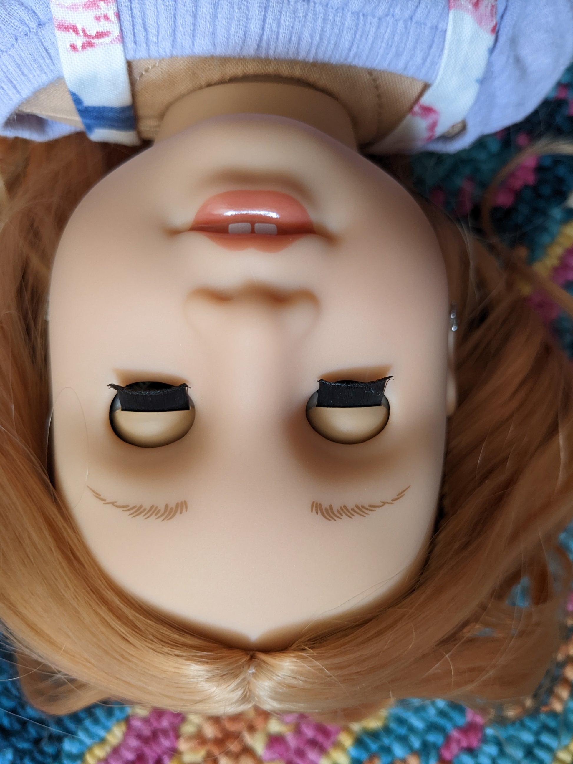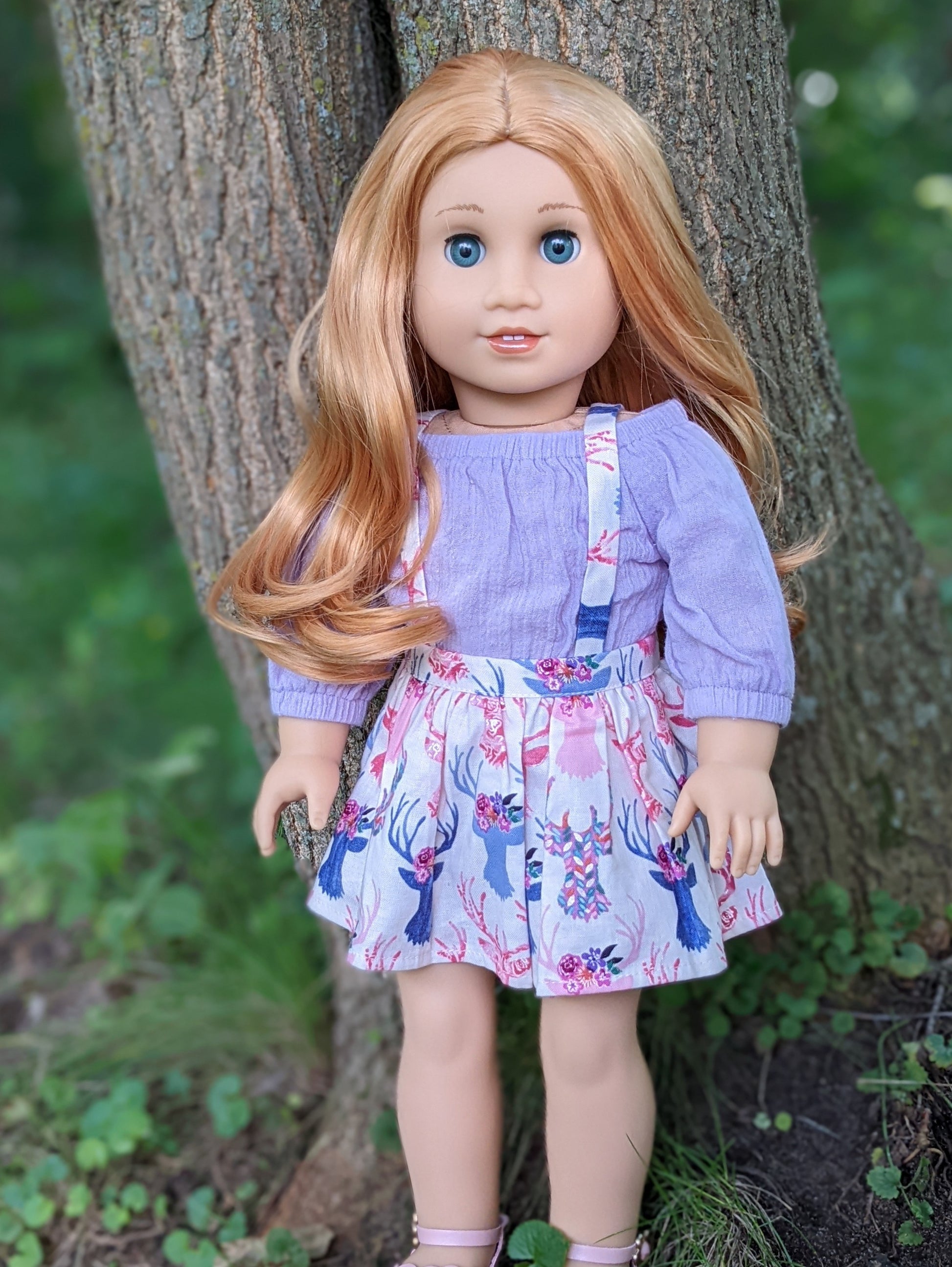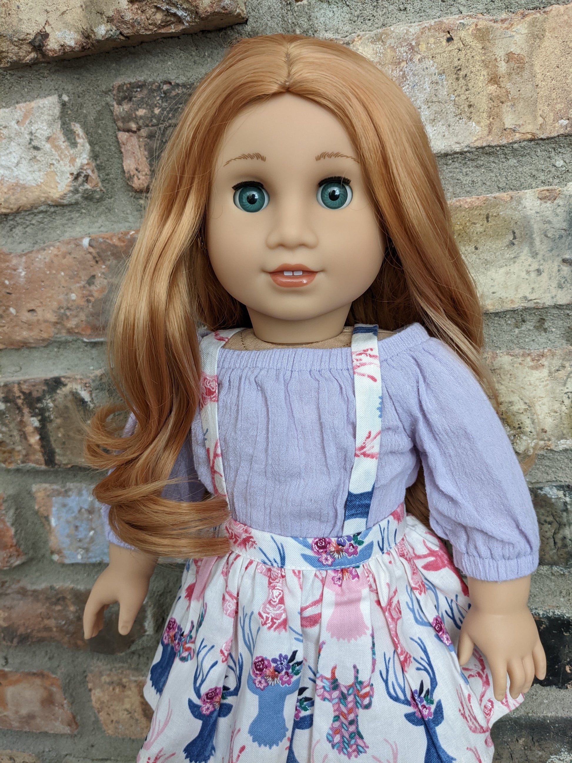 This one of a kind OOAK custom American Girl doll was created with a brand CYO doll, a light red wavy wig, and aquamarine eyes from a Marie Grace doll. She has lip gloss that was hand painted and sealed. She may have some minor shine marks from handling. She comes with the outfit pictured. Her ears are pierced with American Girl Doll earrings.