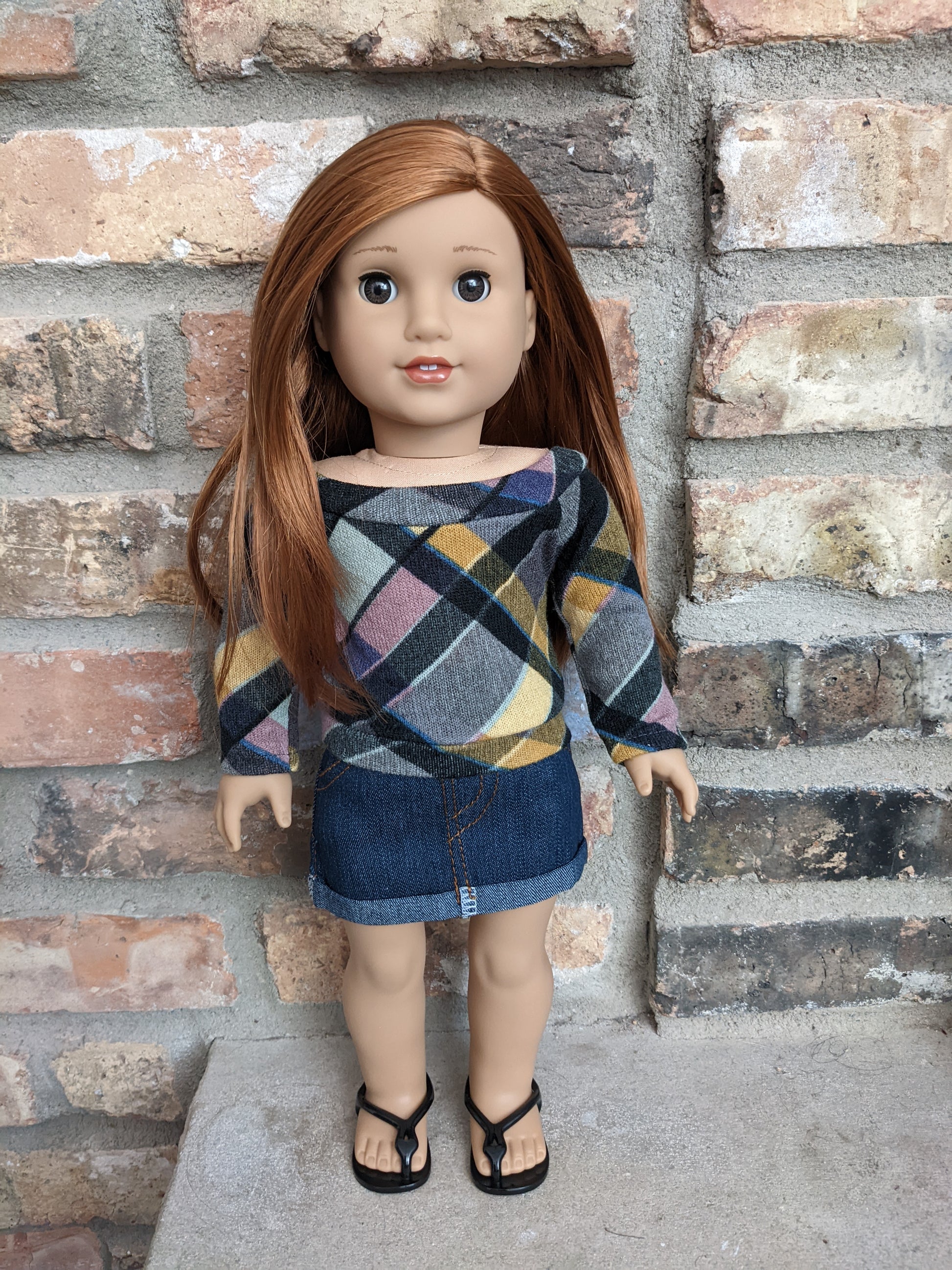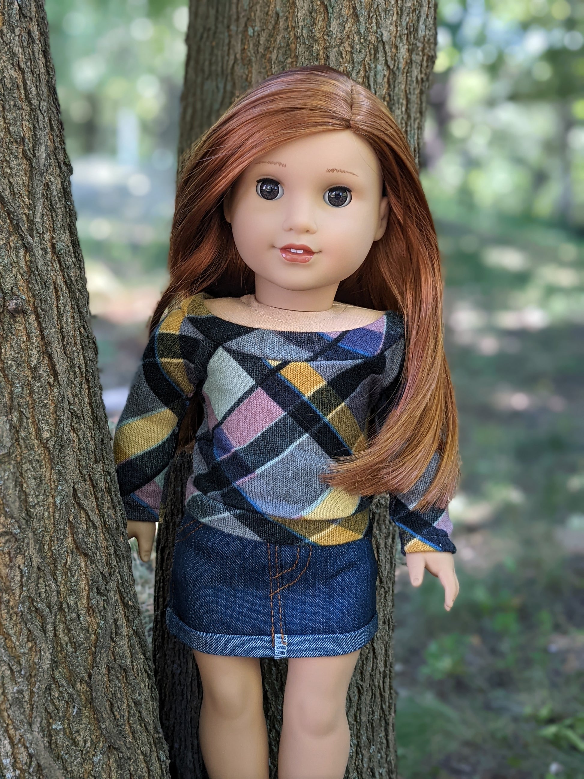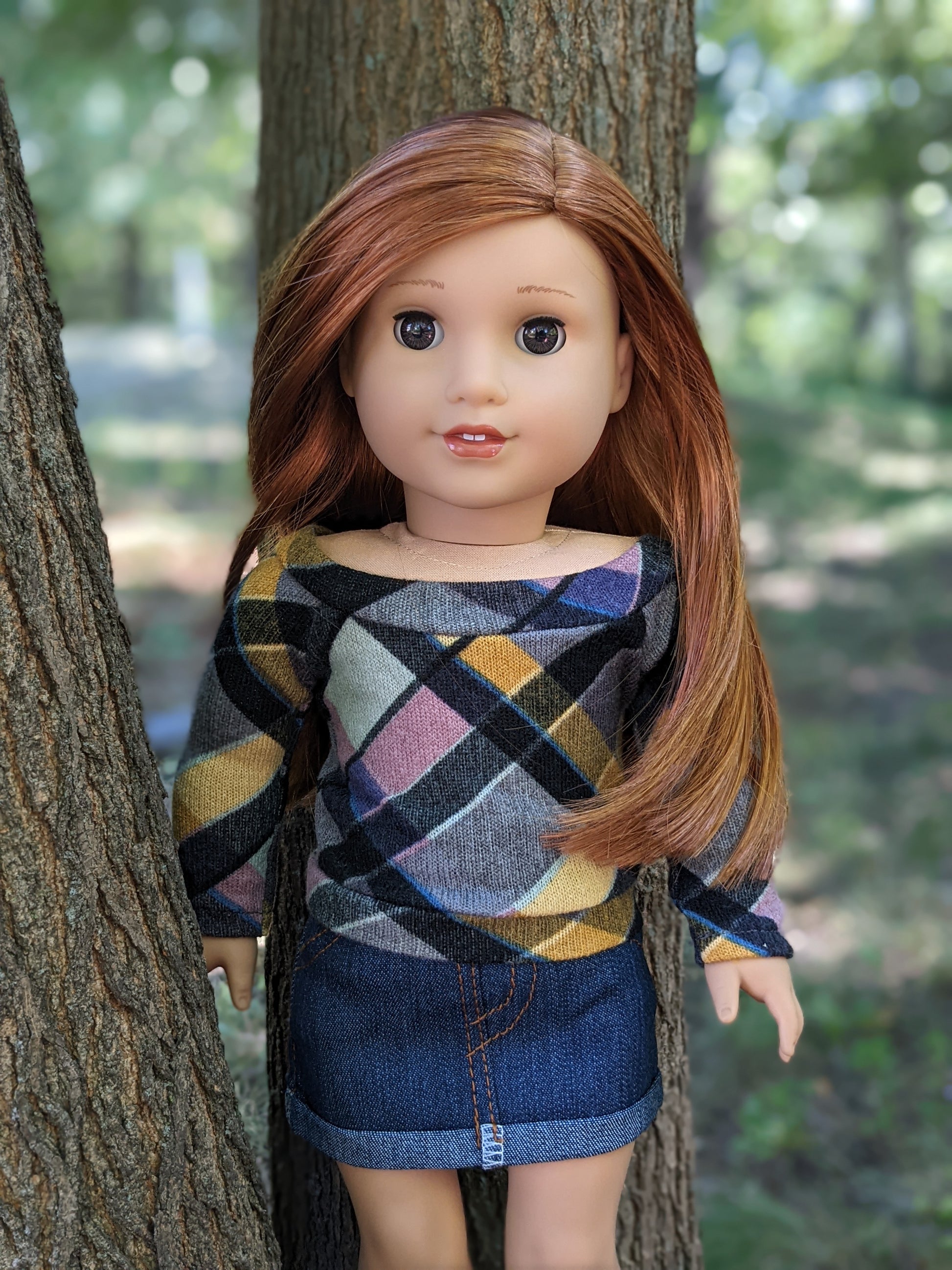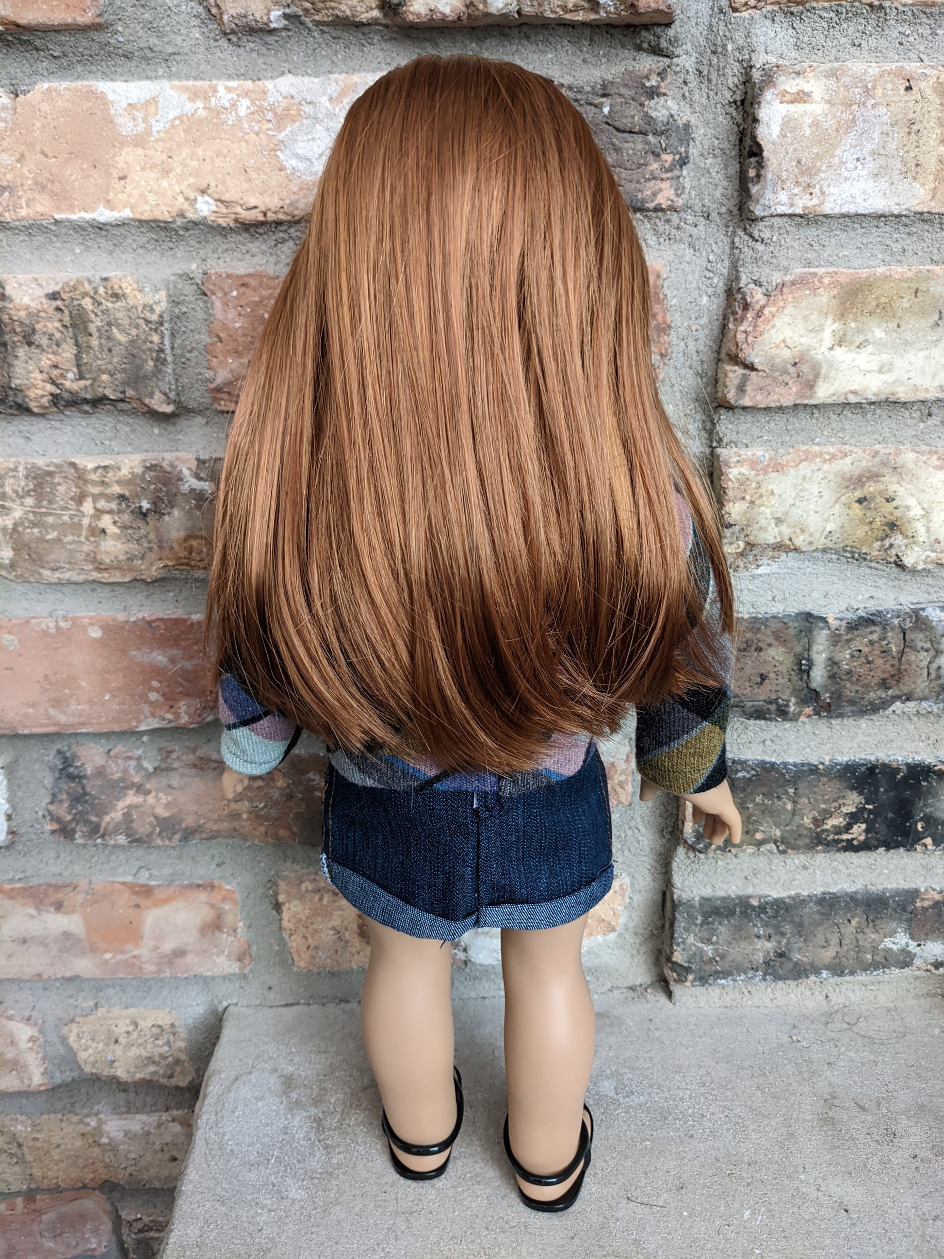This one of a kind OOAK custom American Girl doll was created with a brand new Kira doll, a red wig from a new TM 65 doll, and brown decal eyes from a Samantha doll. She has lip gloss that was hand painted and sealed. She may have some minor shine marks from handling. She comes with the outfit pictured.