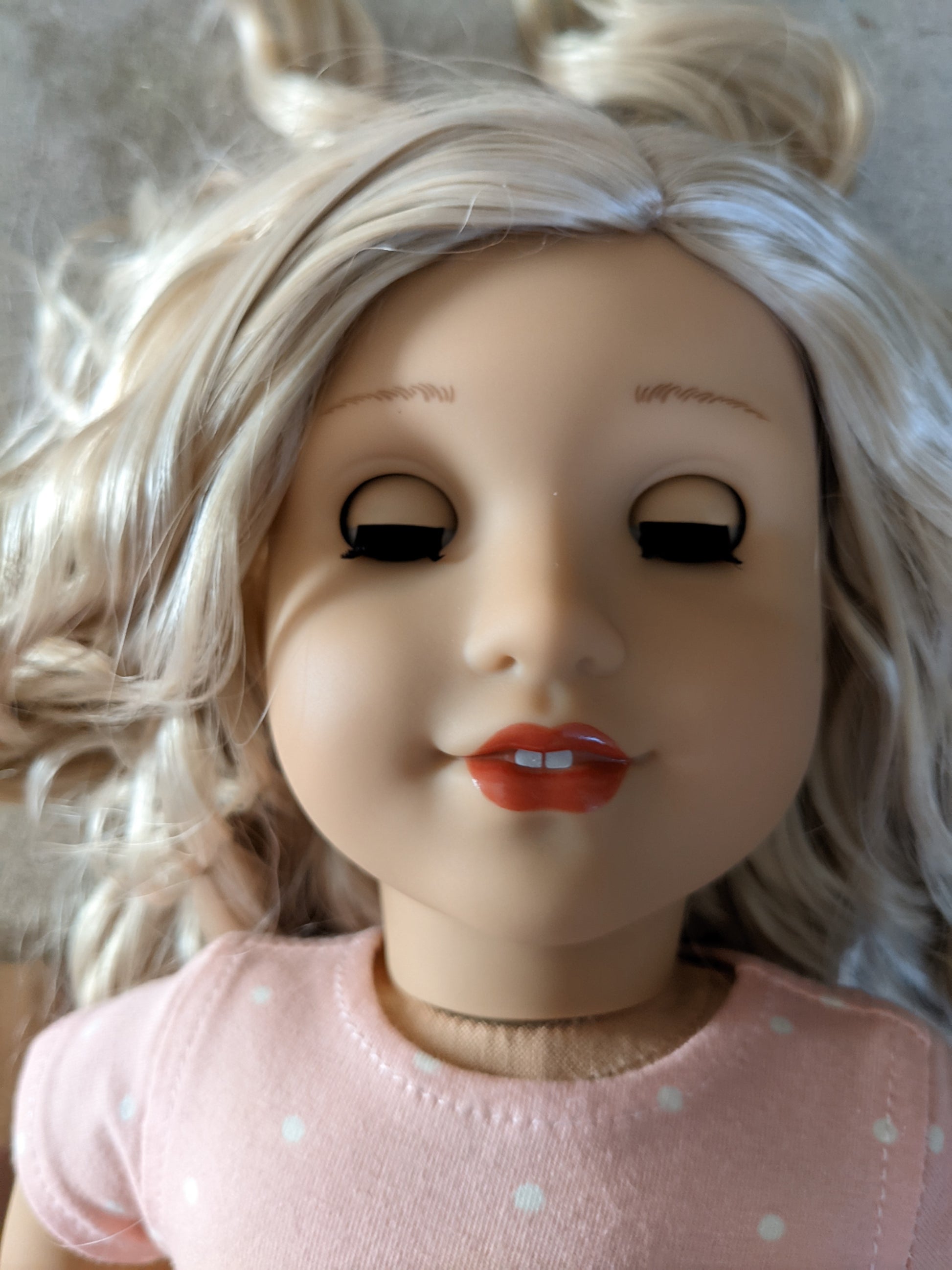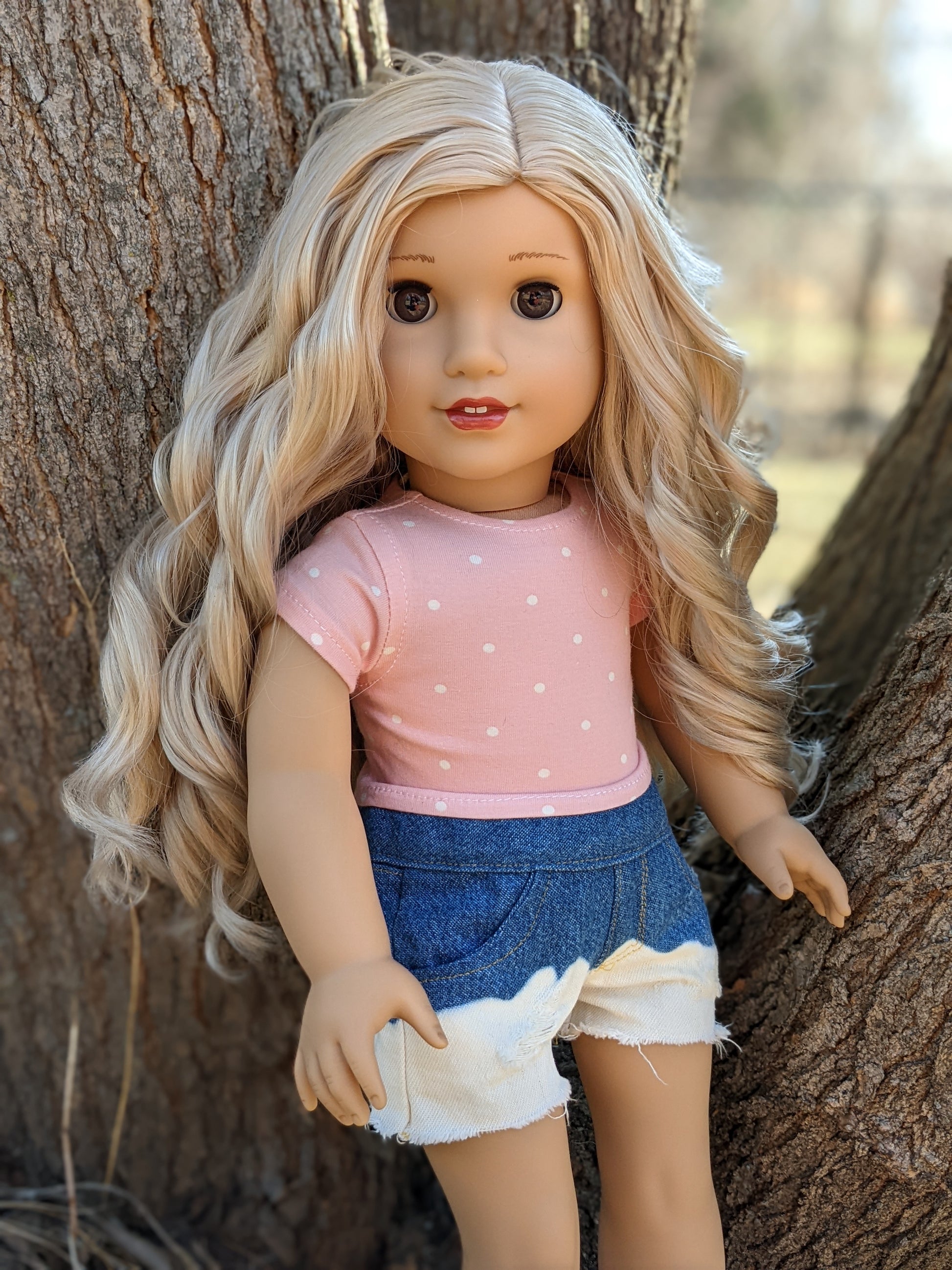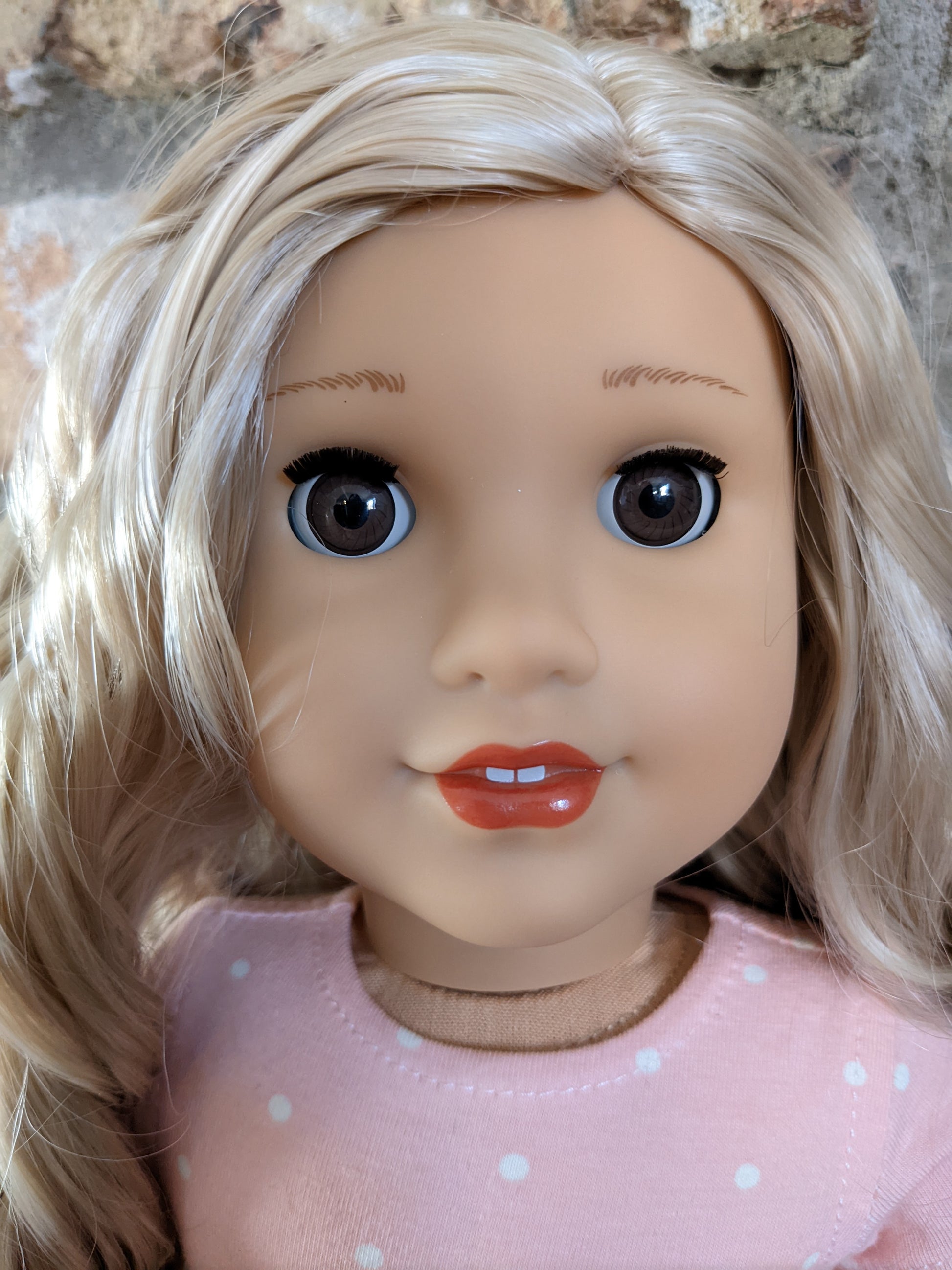 Rilee - blonde curly hair, brown eyes, light skin tone, Josefina face mold.