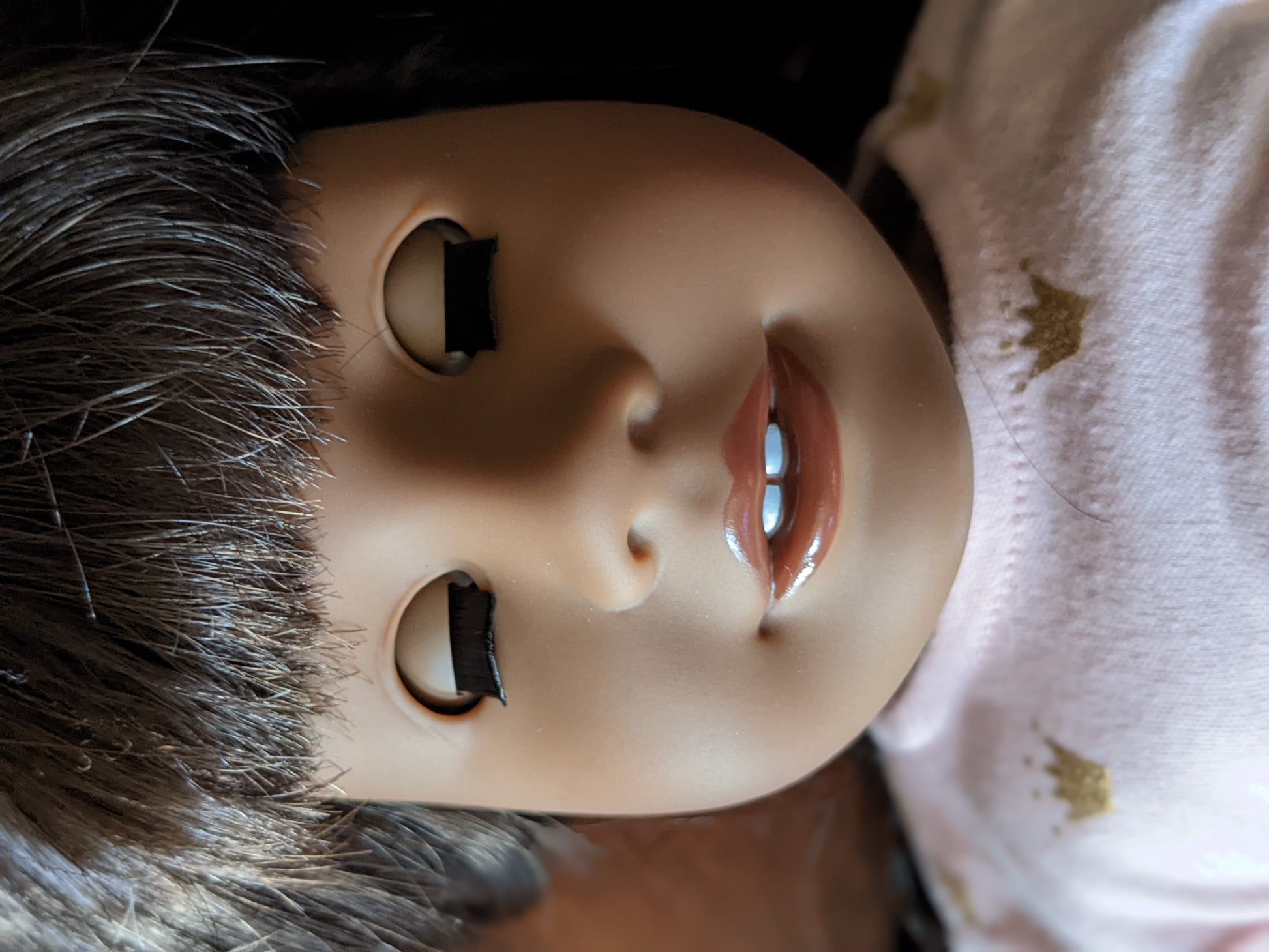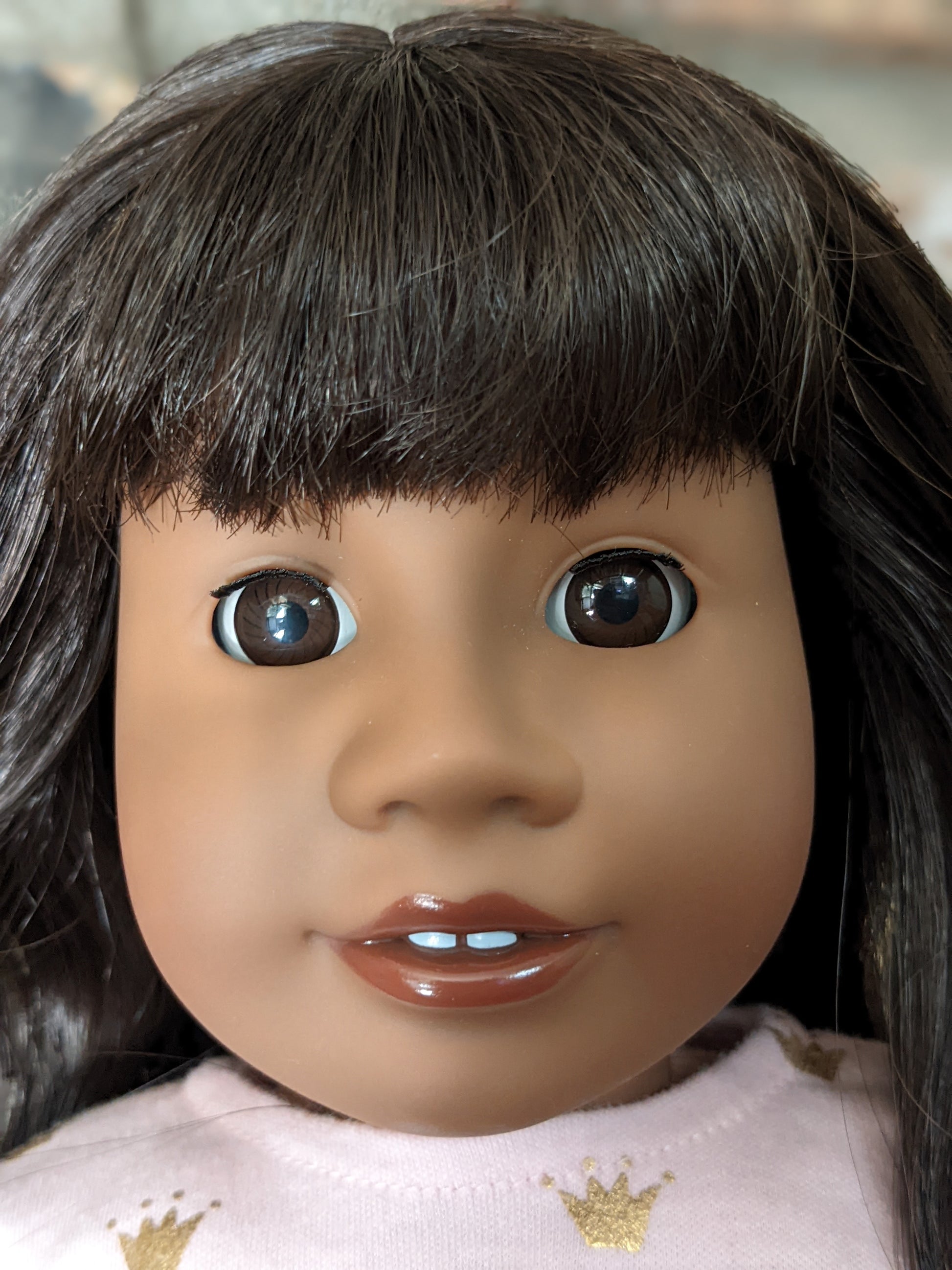 Solace - dark brown hair, brown eyes, dark skin tone, Addy face mold