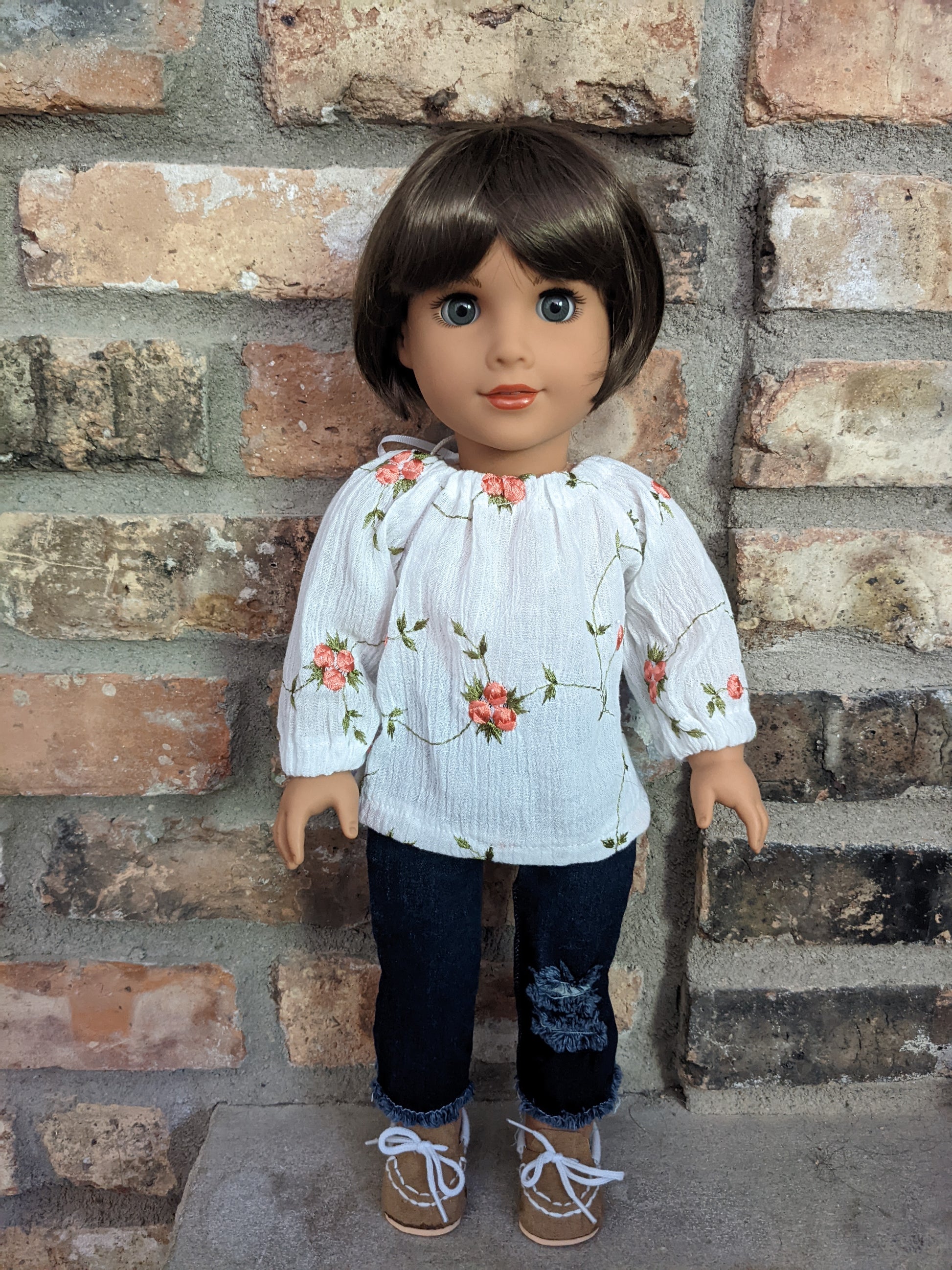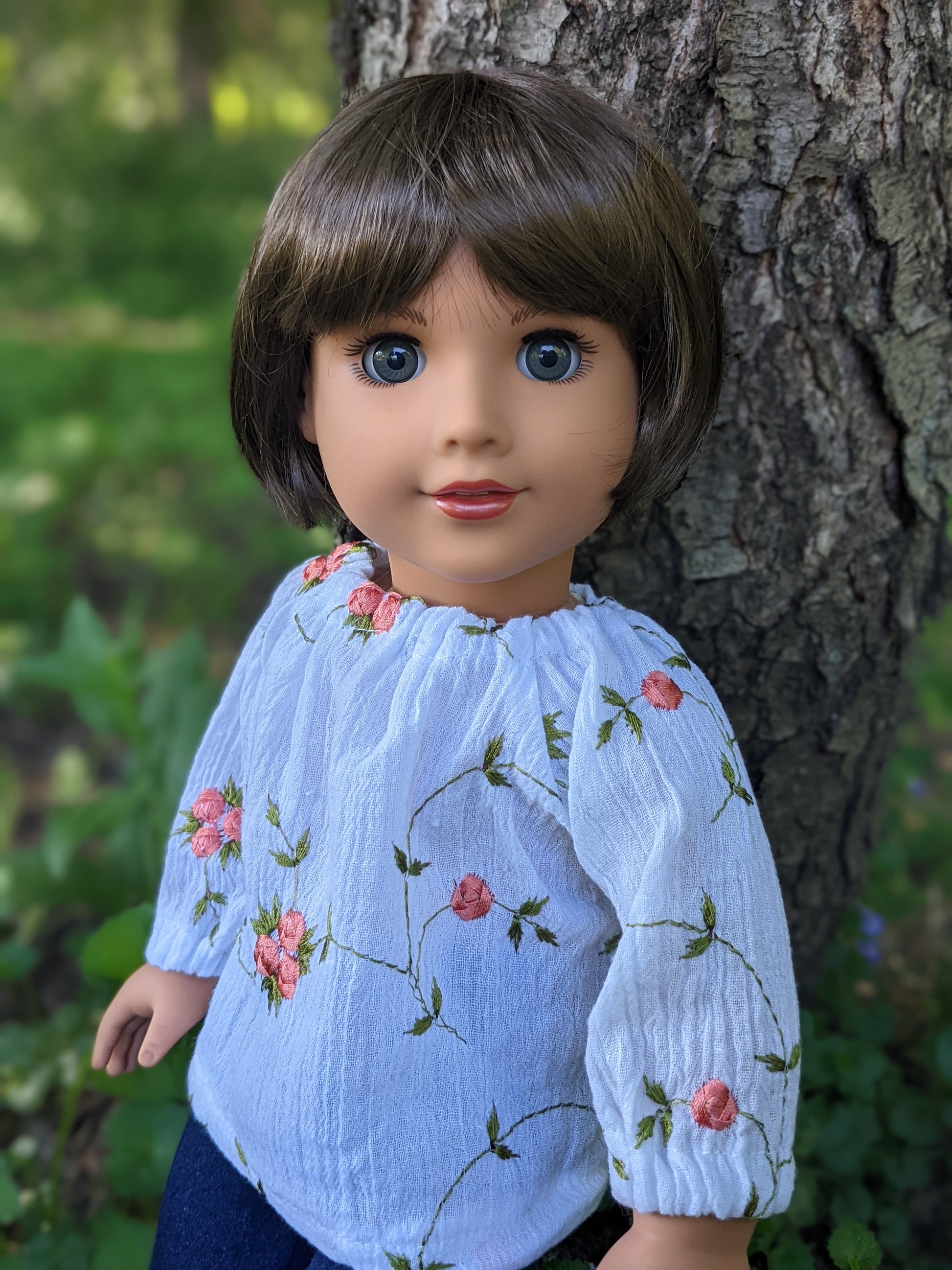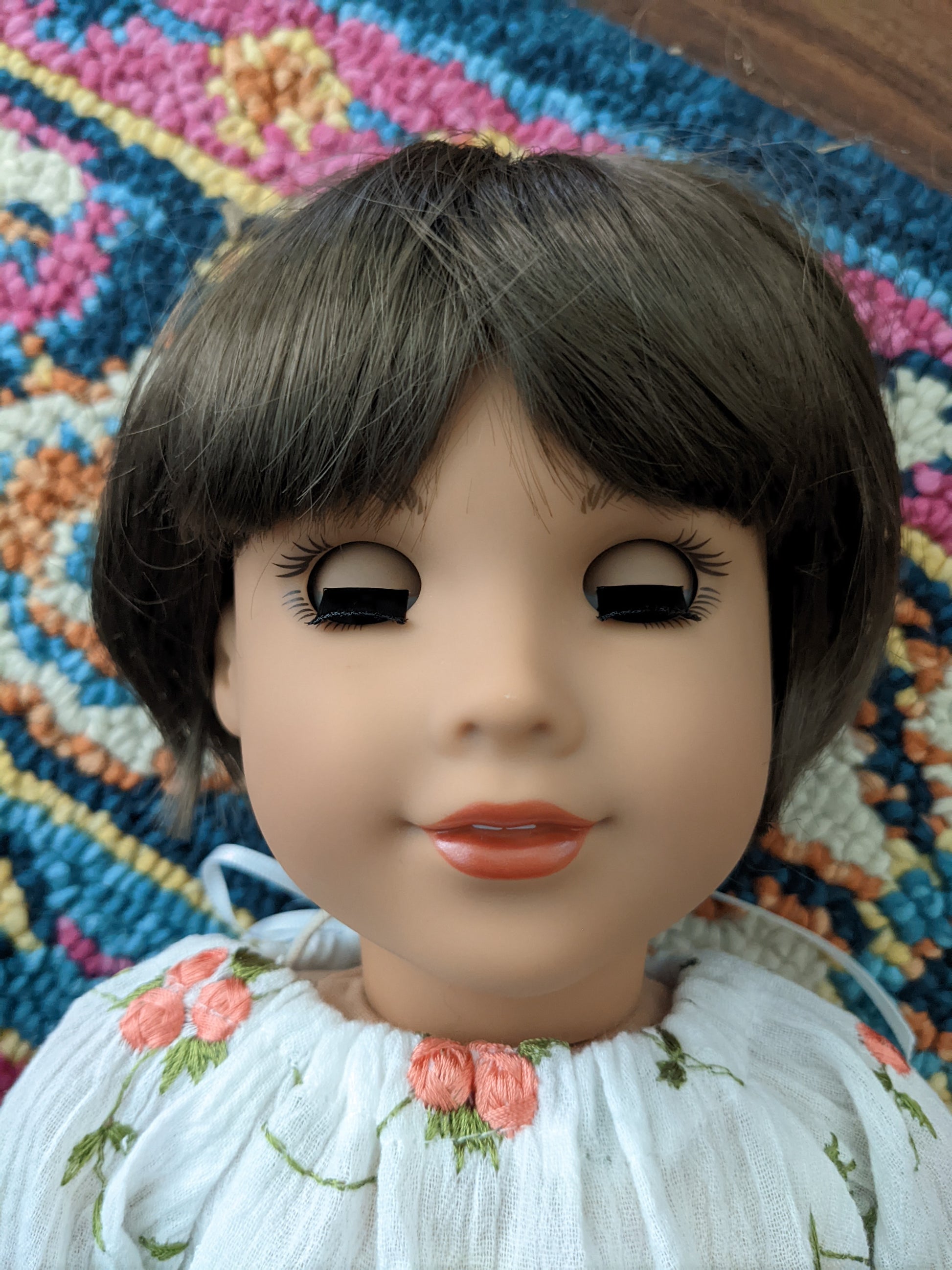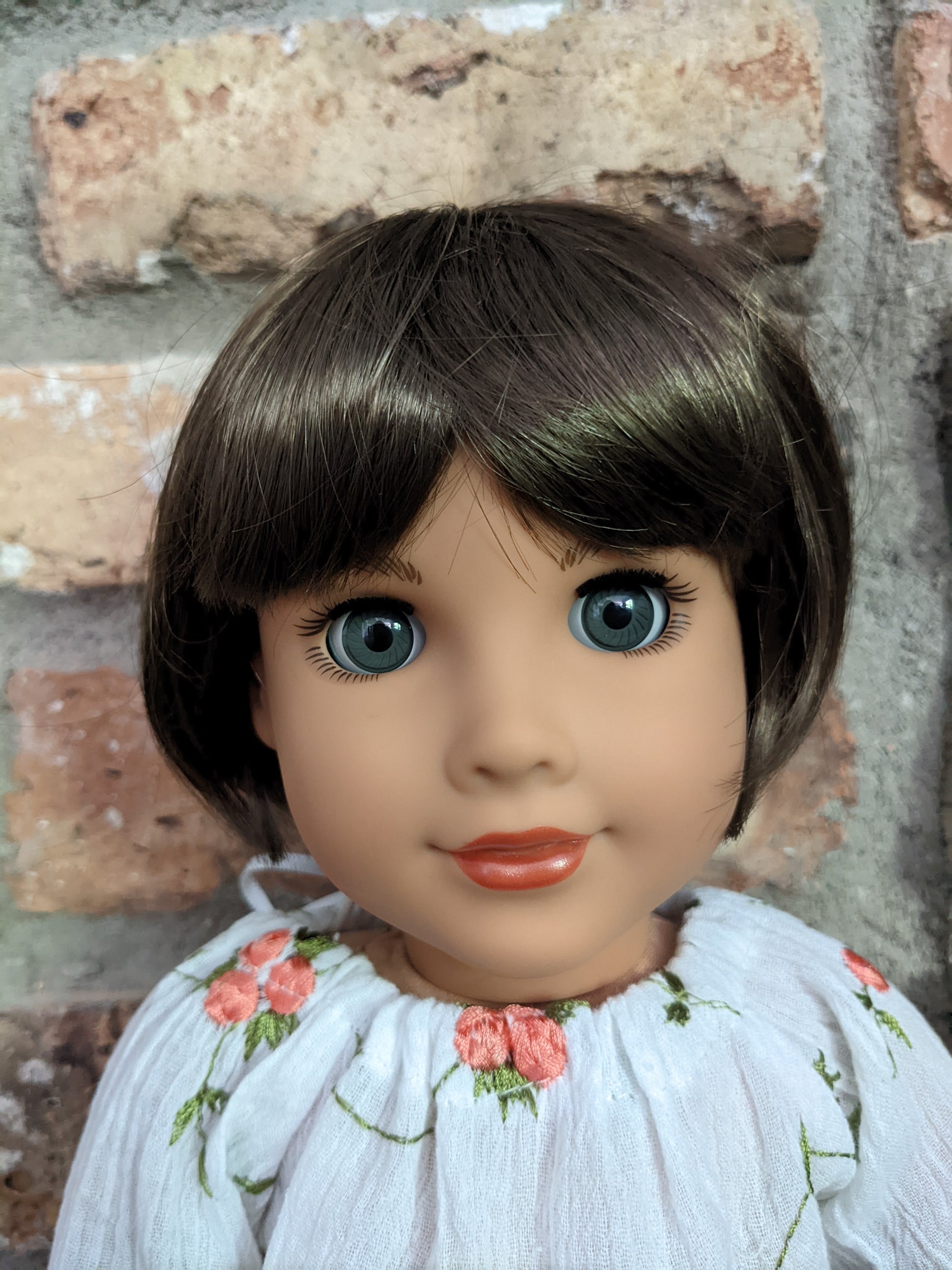 This one of a kind OOAK custom American Girl doll was created with a brand new Maritza doll, a brown super soft vegan mohair wig, and grey eyes. She has lip gloss that was hand painted and sealed. She may have some minor shine marks from handling. She comes with the outfit pictured. If you would like the wig left unattached, please leave a note in the "Order Special Instructions" box upon checkout. Otherwise I will attach the wig using a heavy duty permanent adhesive for a strong hold.