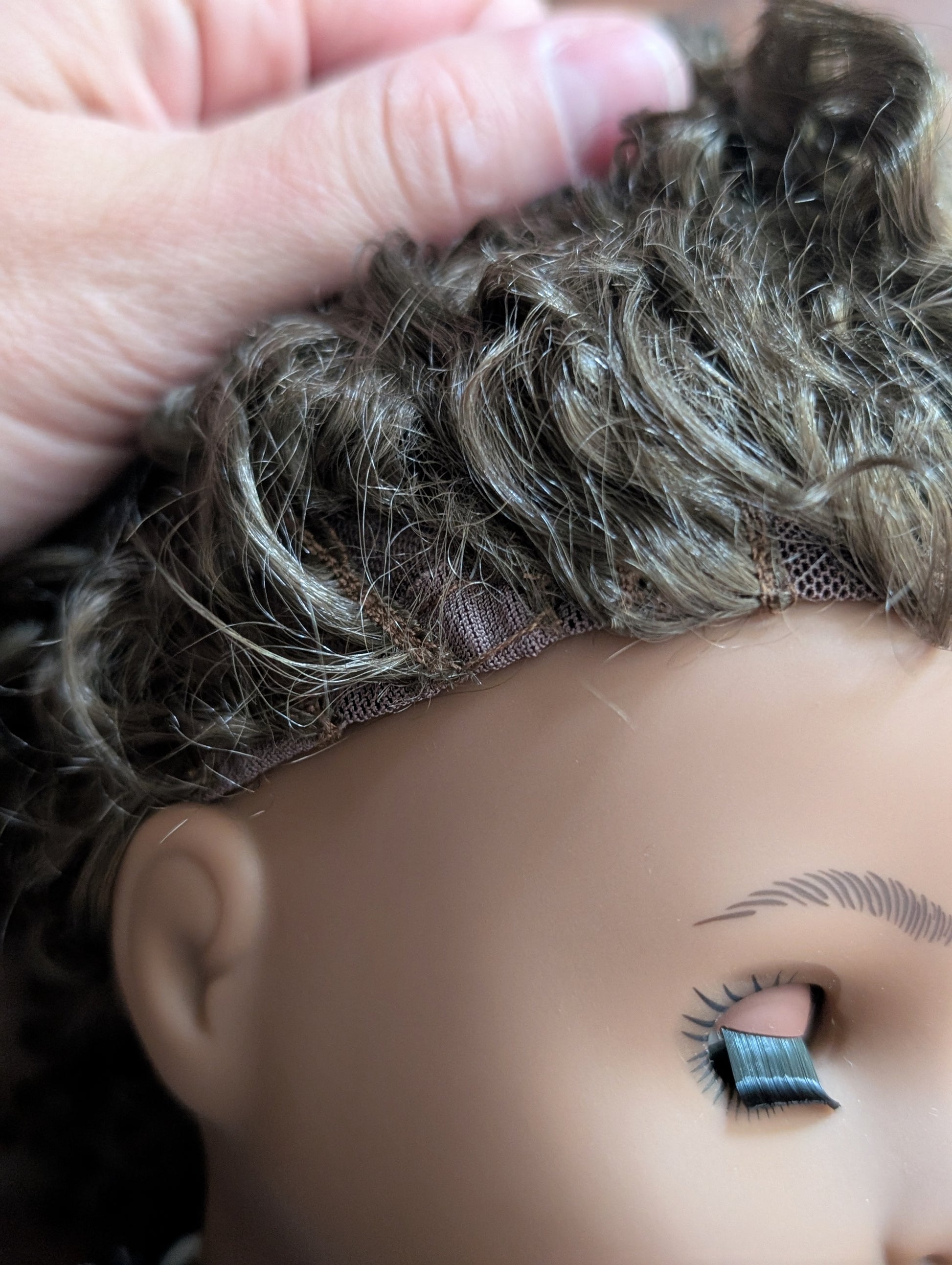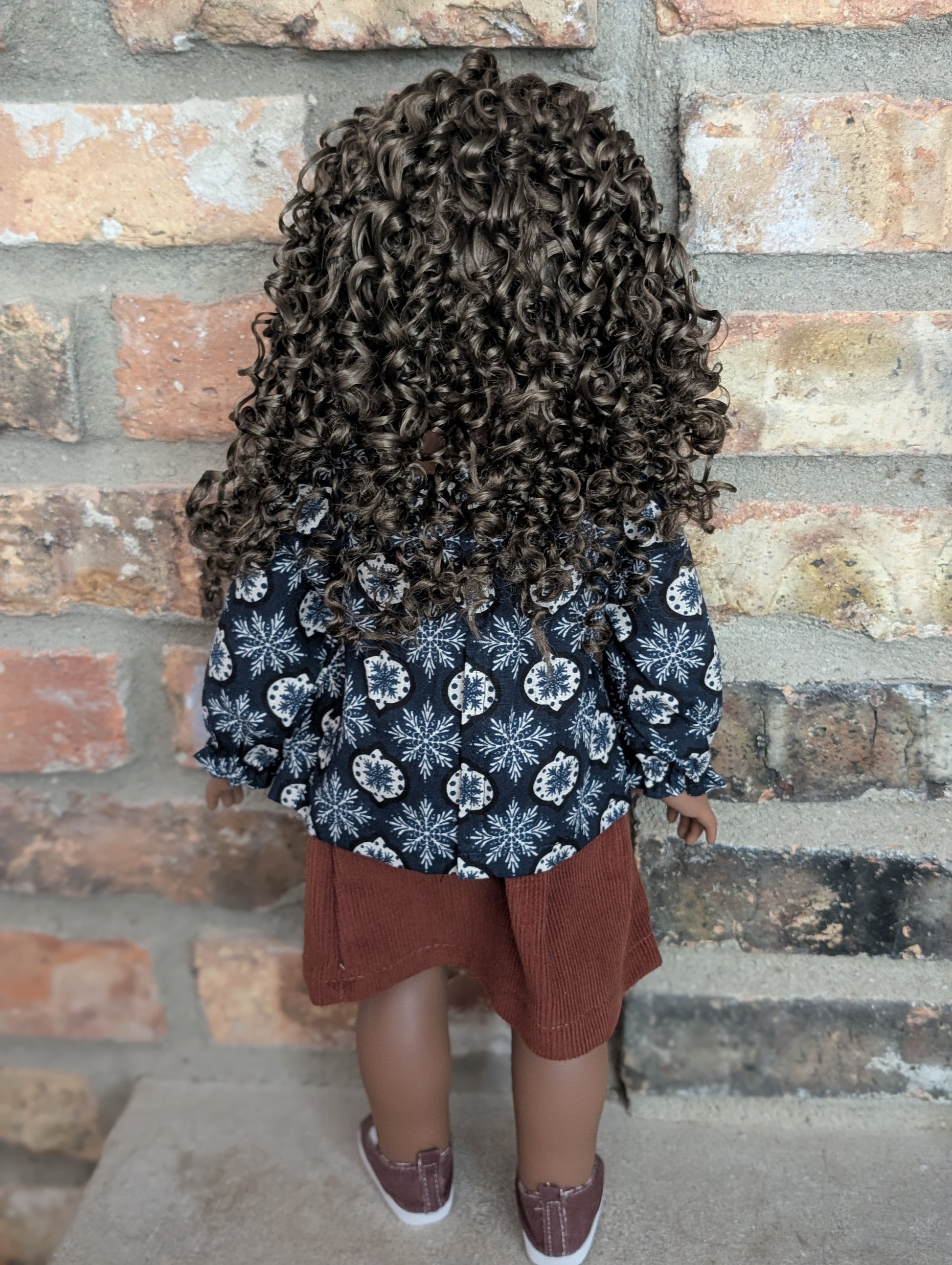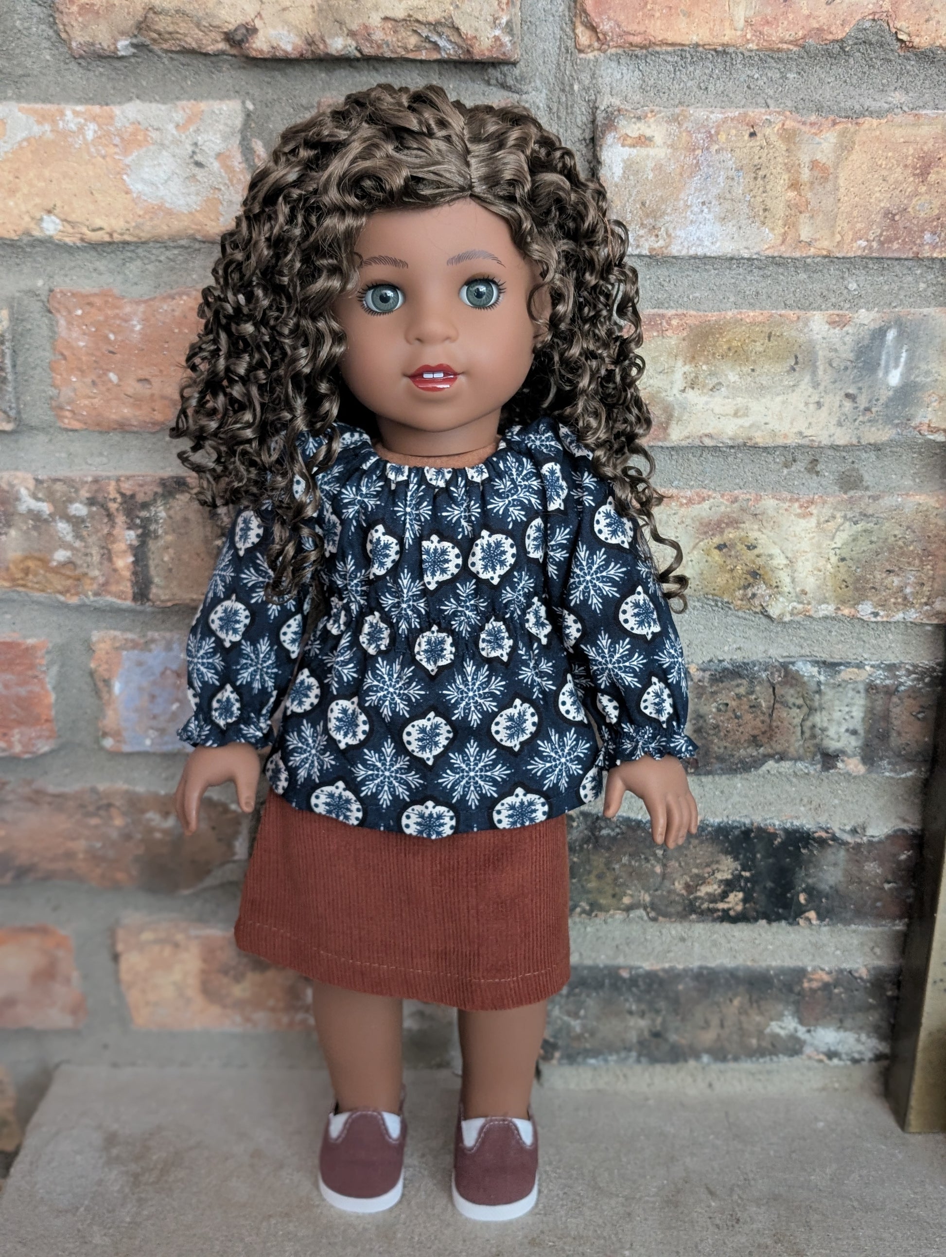 This one of a kind OOAK custom American Girl doll was created with a brand new doll, a brown wig, and grey eyes. She has lip gloss that was hand painted and sealed. She may have some minor shine marks from handling. She comes with the outfit pictured. This is a vegan mohair wig so it doesn't have hair at the edge of the wig cap.
