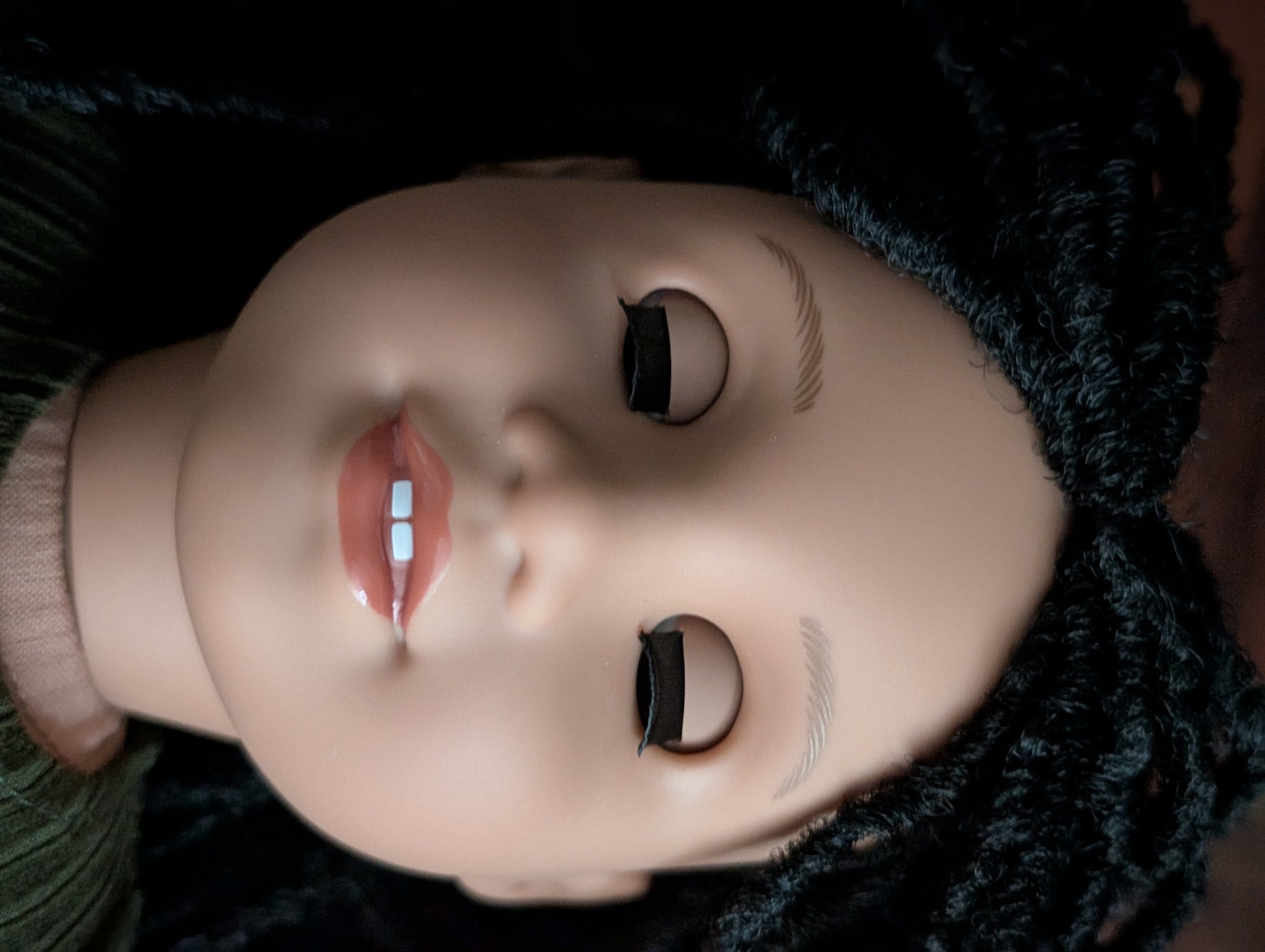 Anica - black locs, brown eyes, medium skin tone, Sonali face mold