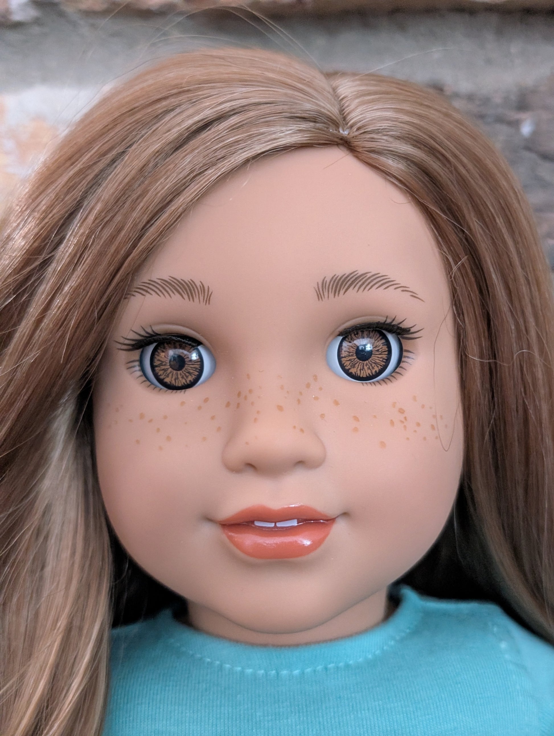 Caitlin - brown hair, light brown eyes, medium skin tone, Josefina face mold, freckles
