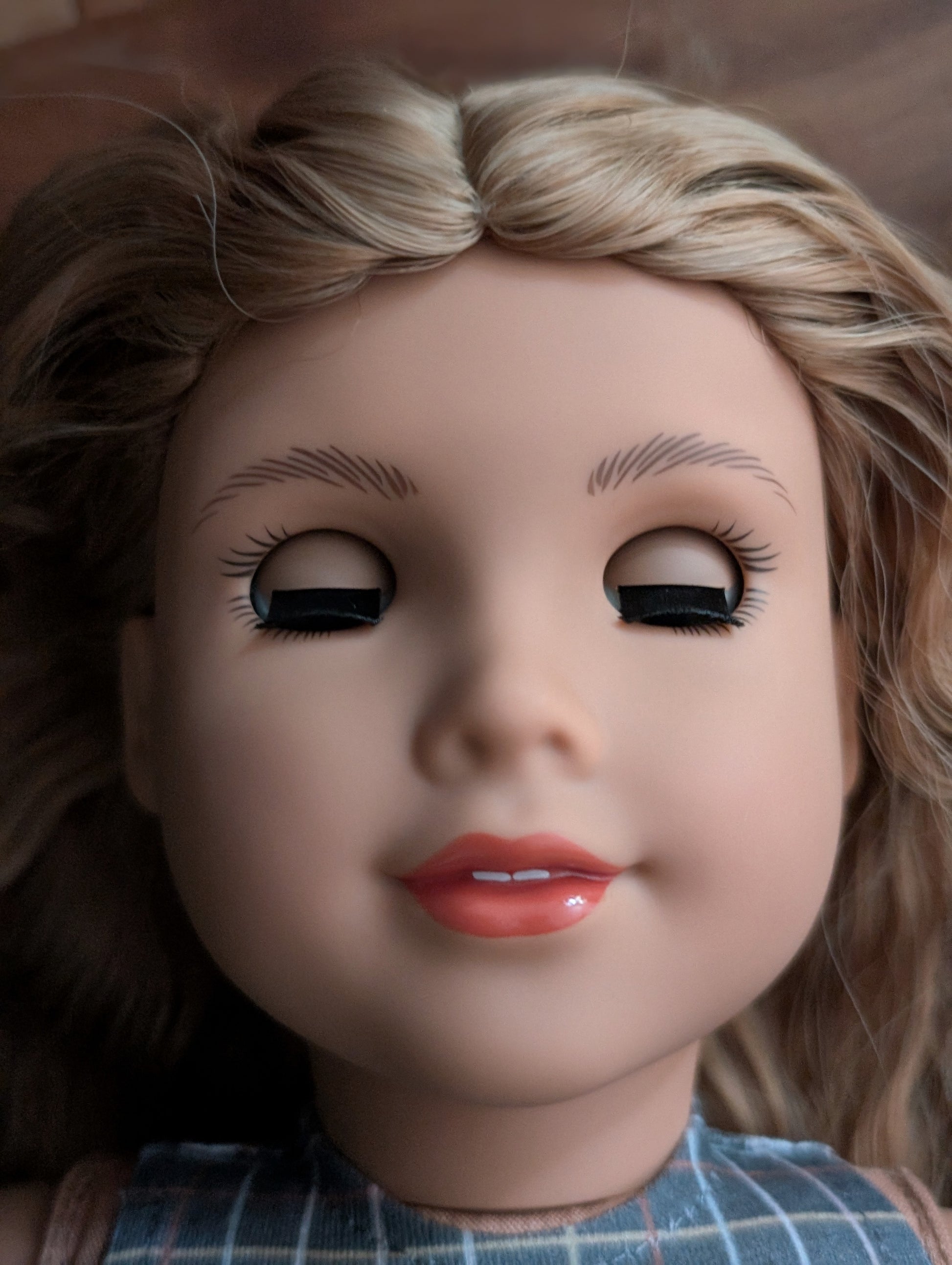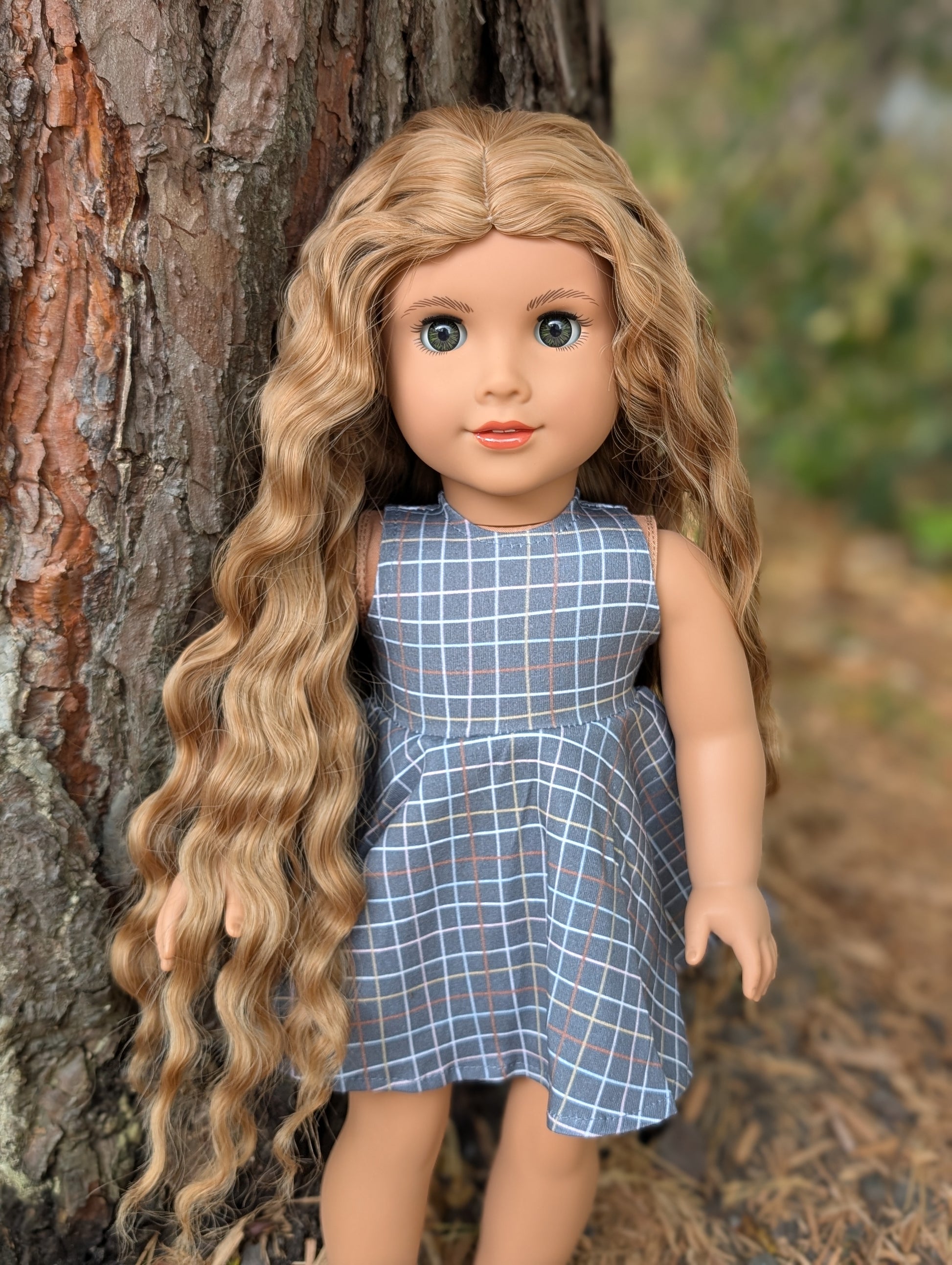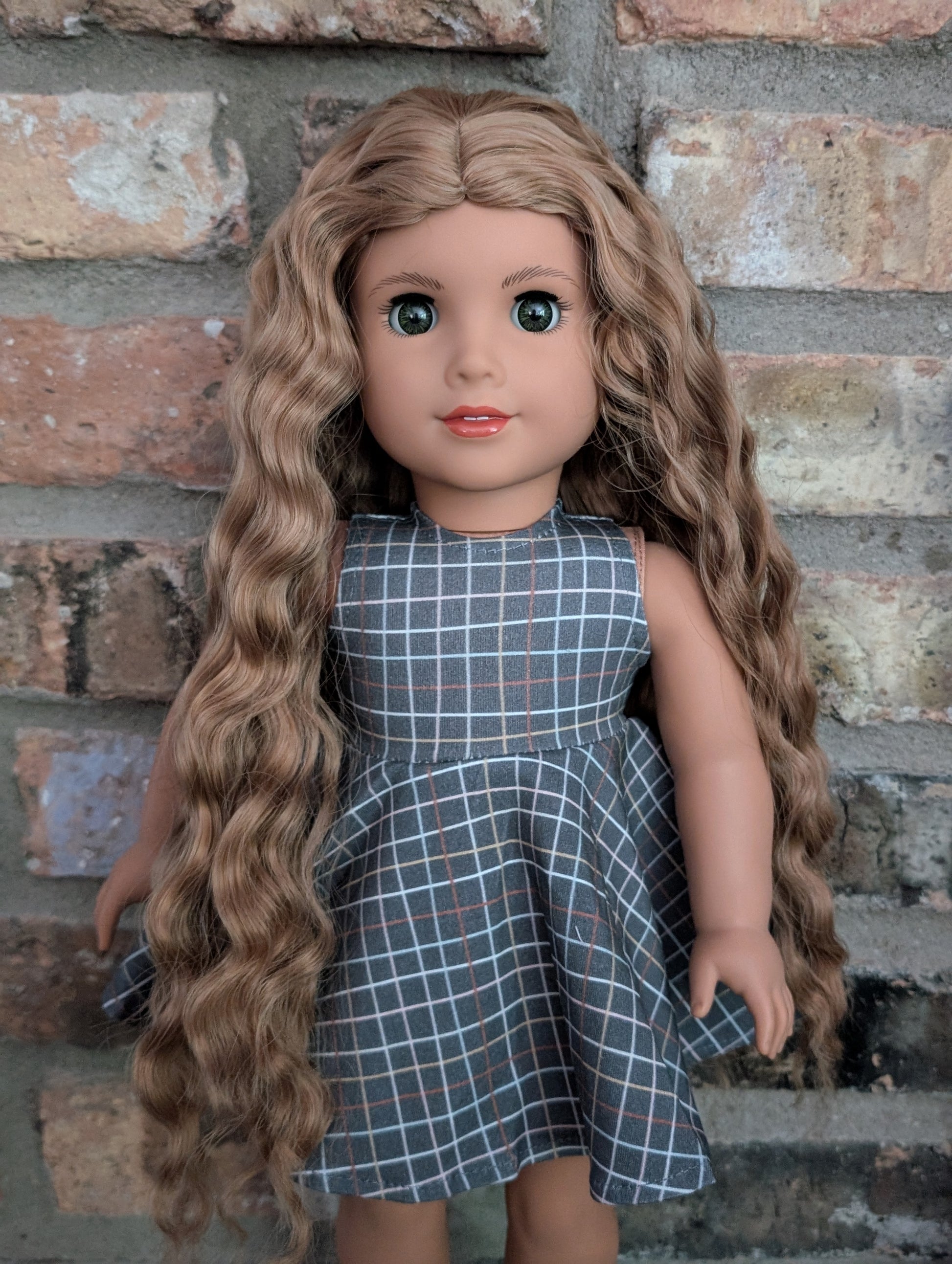 This one of a kind OOAK custom American Girl doll was created with a brand new doll, a brown wig, and hazel eyes. She has lip gloss that was hand painted and sealed. She may have some minor shine marks from handling. She comes with the outfit pictured.