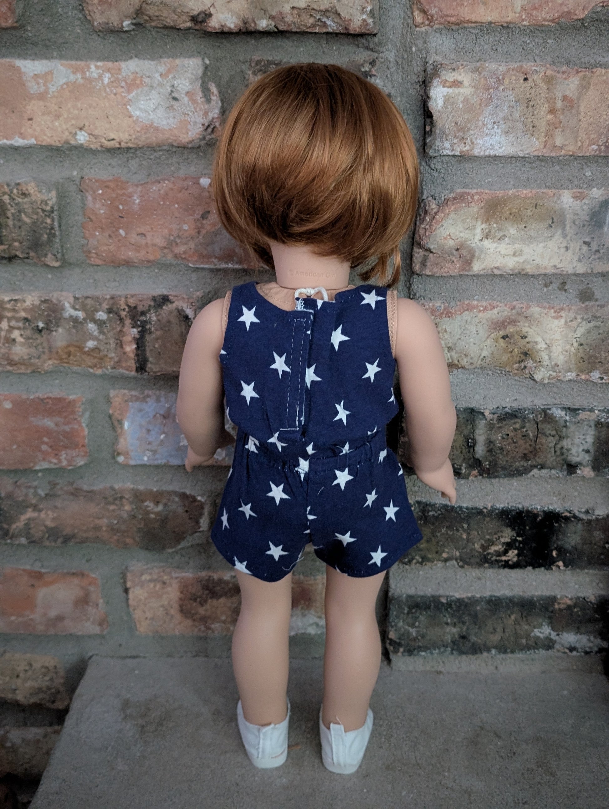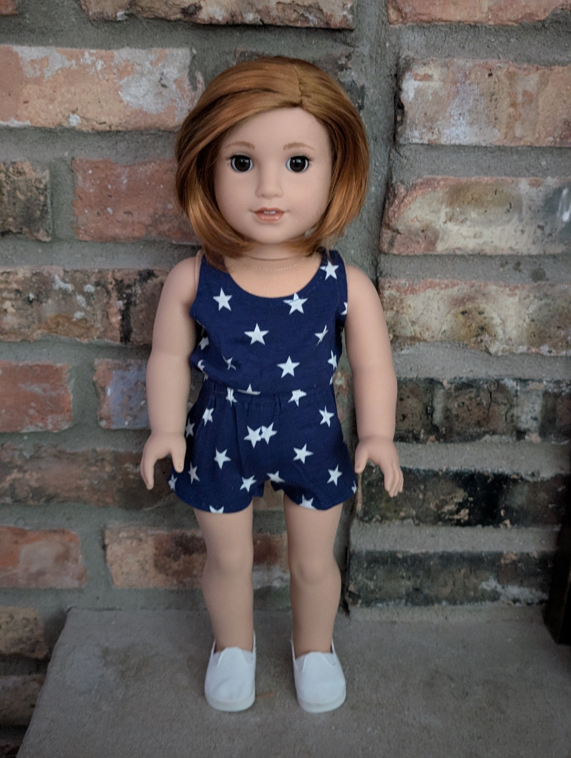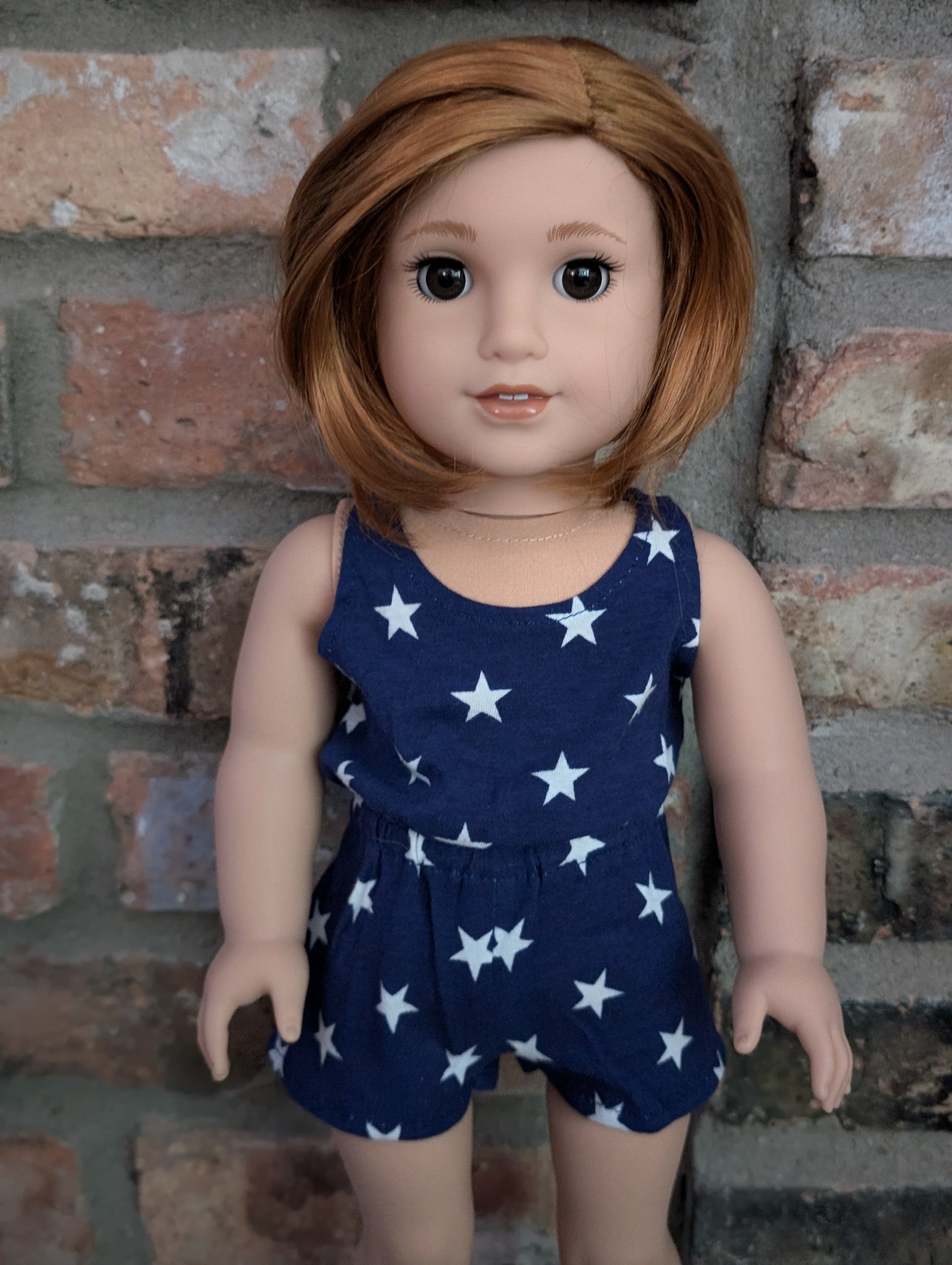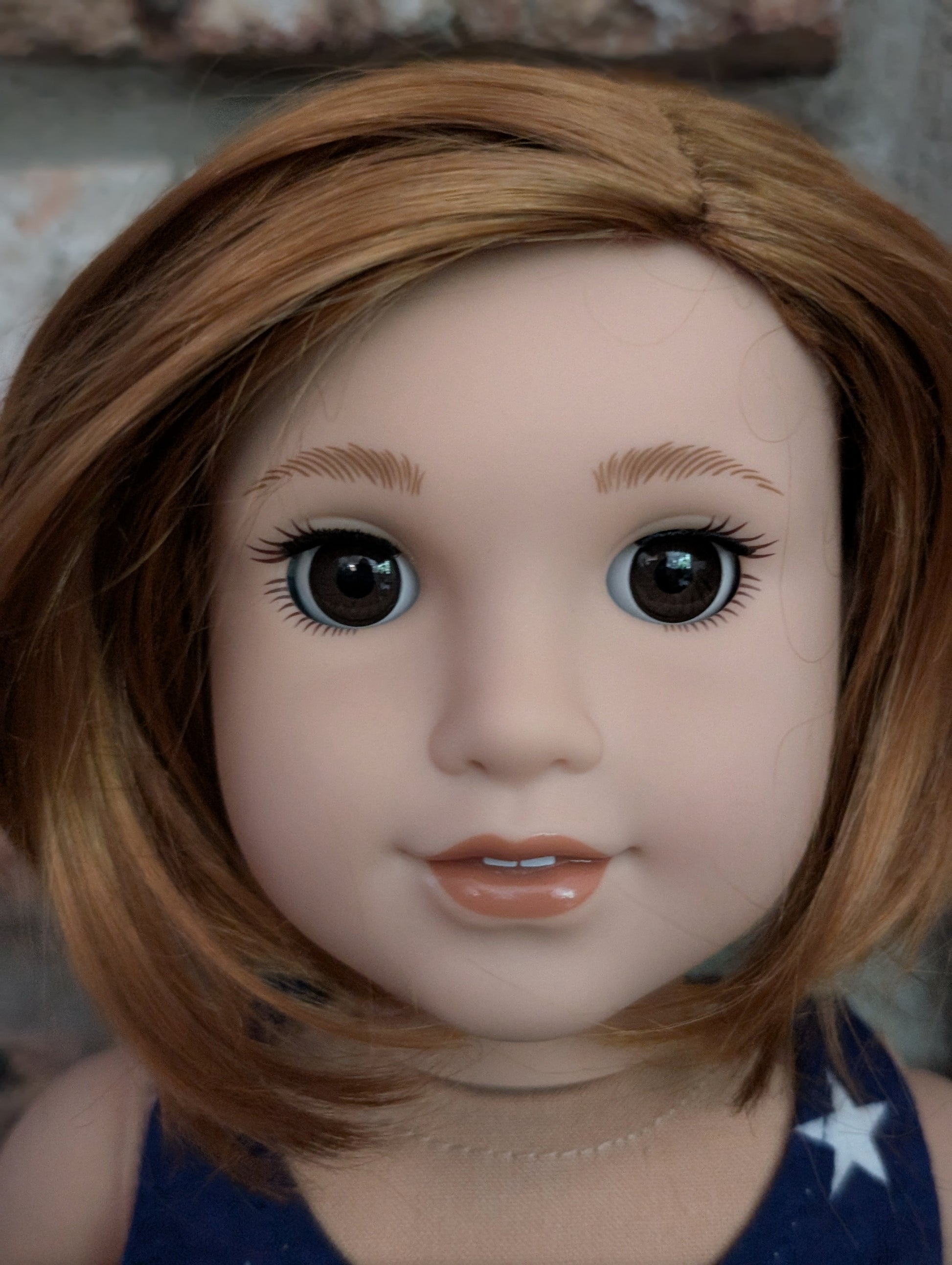 This one of a kind OOAK custom American Girl doll was created with a brand new doll, a red wig, and brown eyes. She has lip gloss that was hand painted and sealed. She may have some minor shine marks from handling. She comes with the outfit pictured.