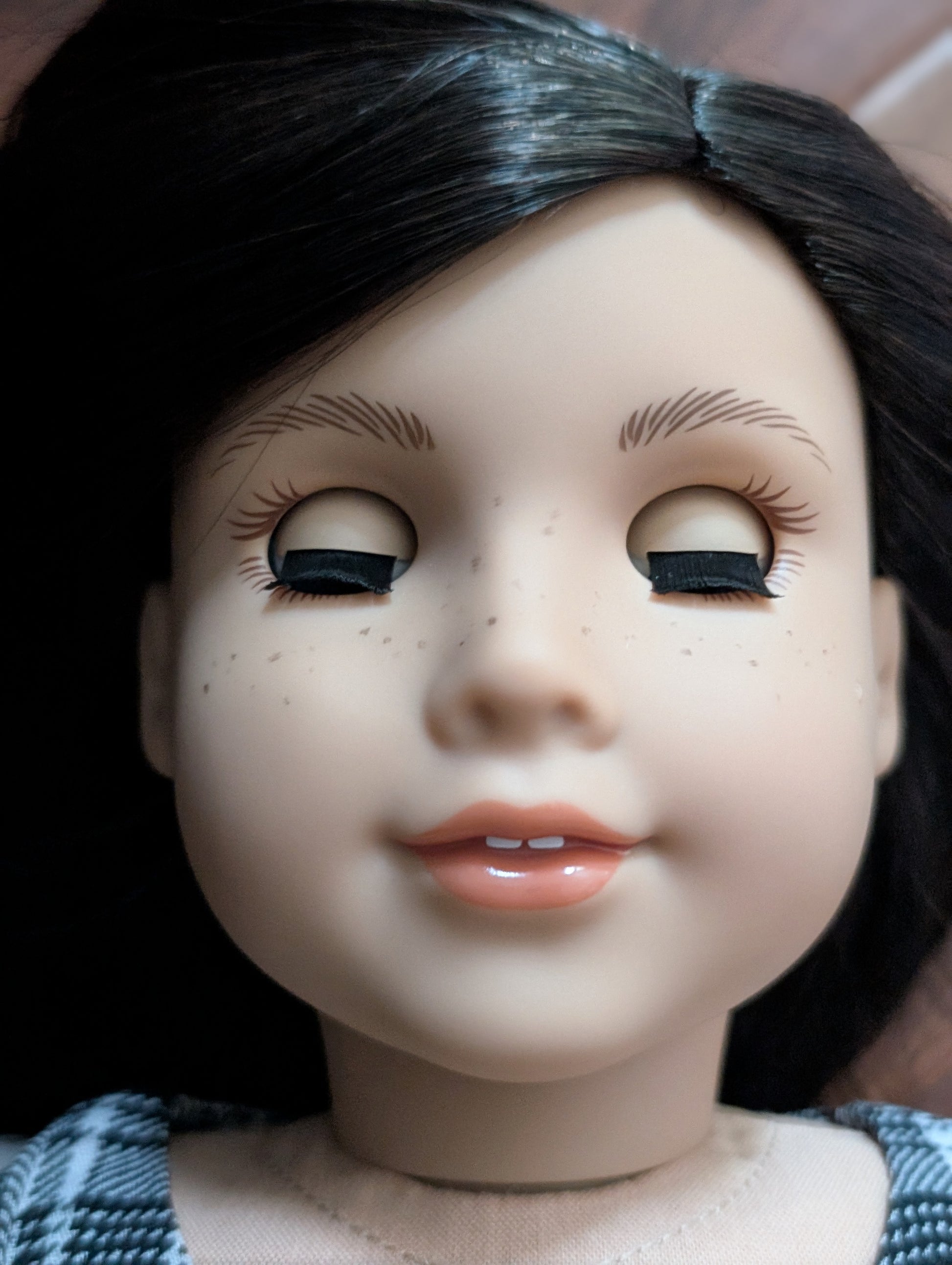 Haidee - black hair, blue eyes, light skin tone, Joss face mold, freckles