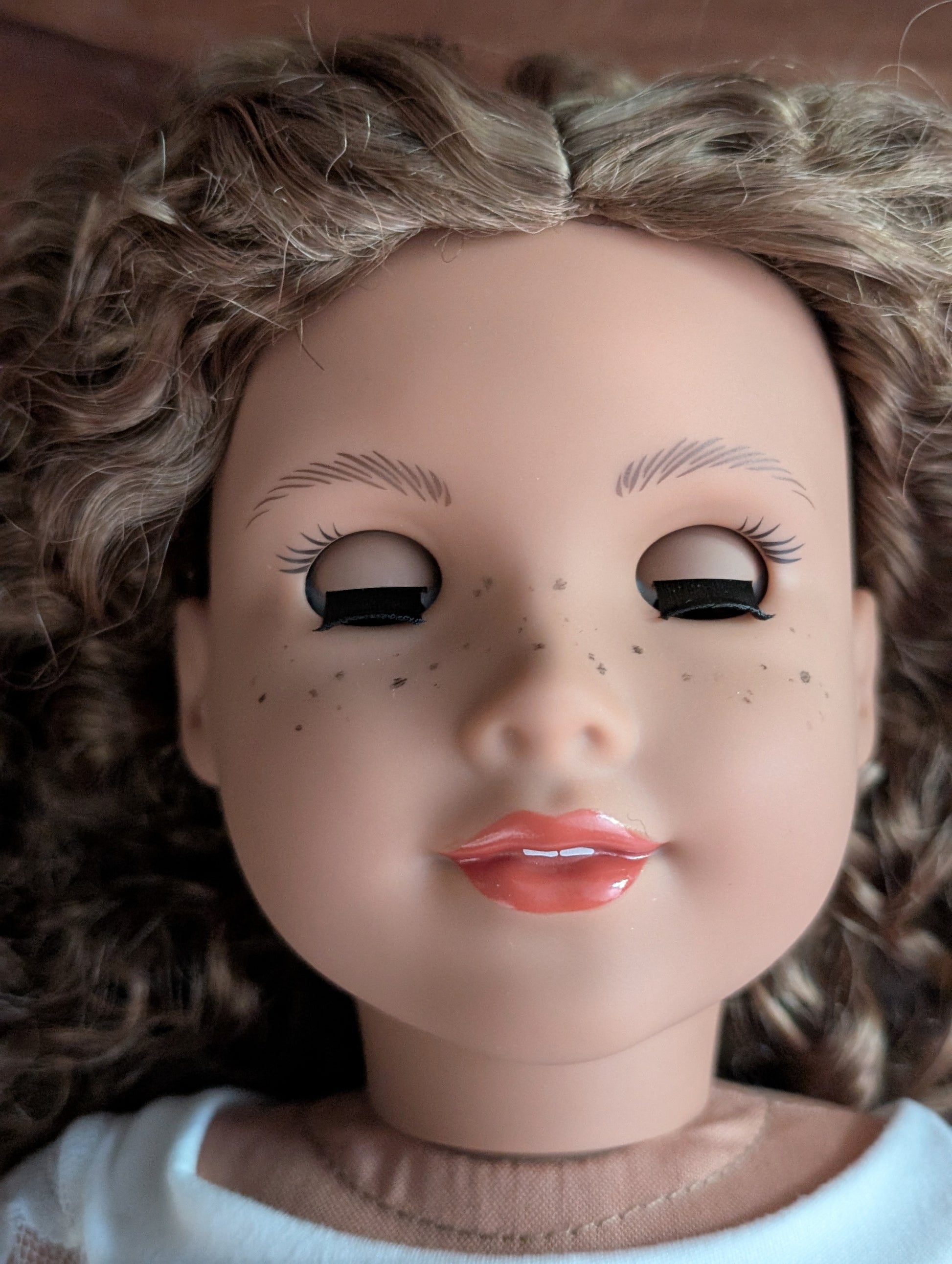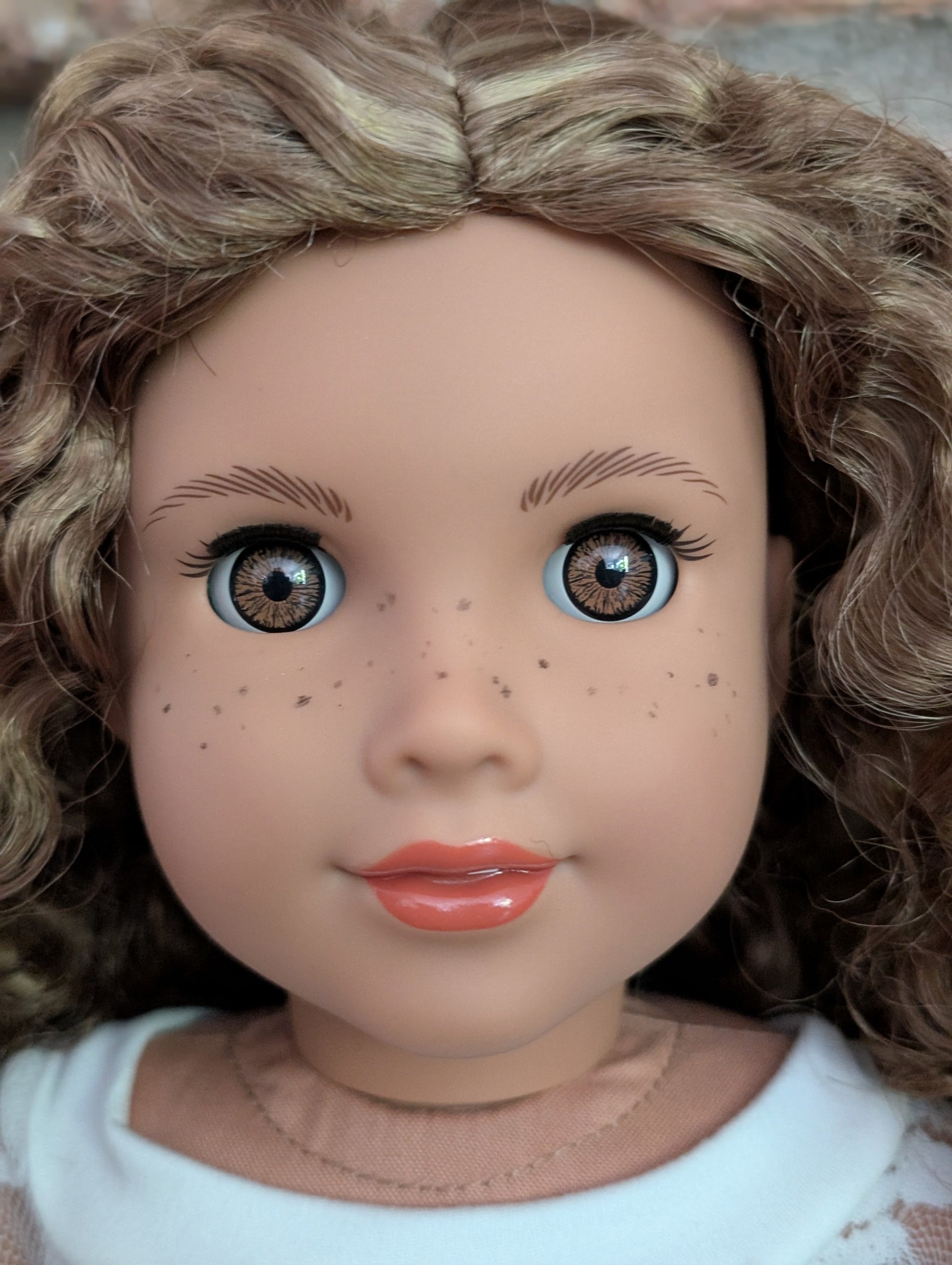 Julieta - caramel brown hair, brown eyes, medium skin tone, Joss face mold, freckles