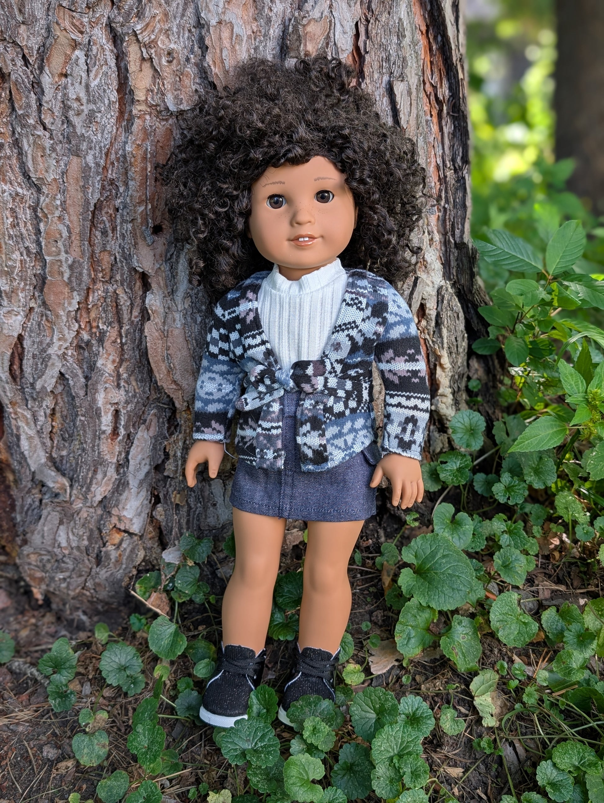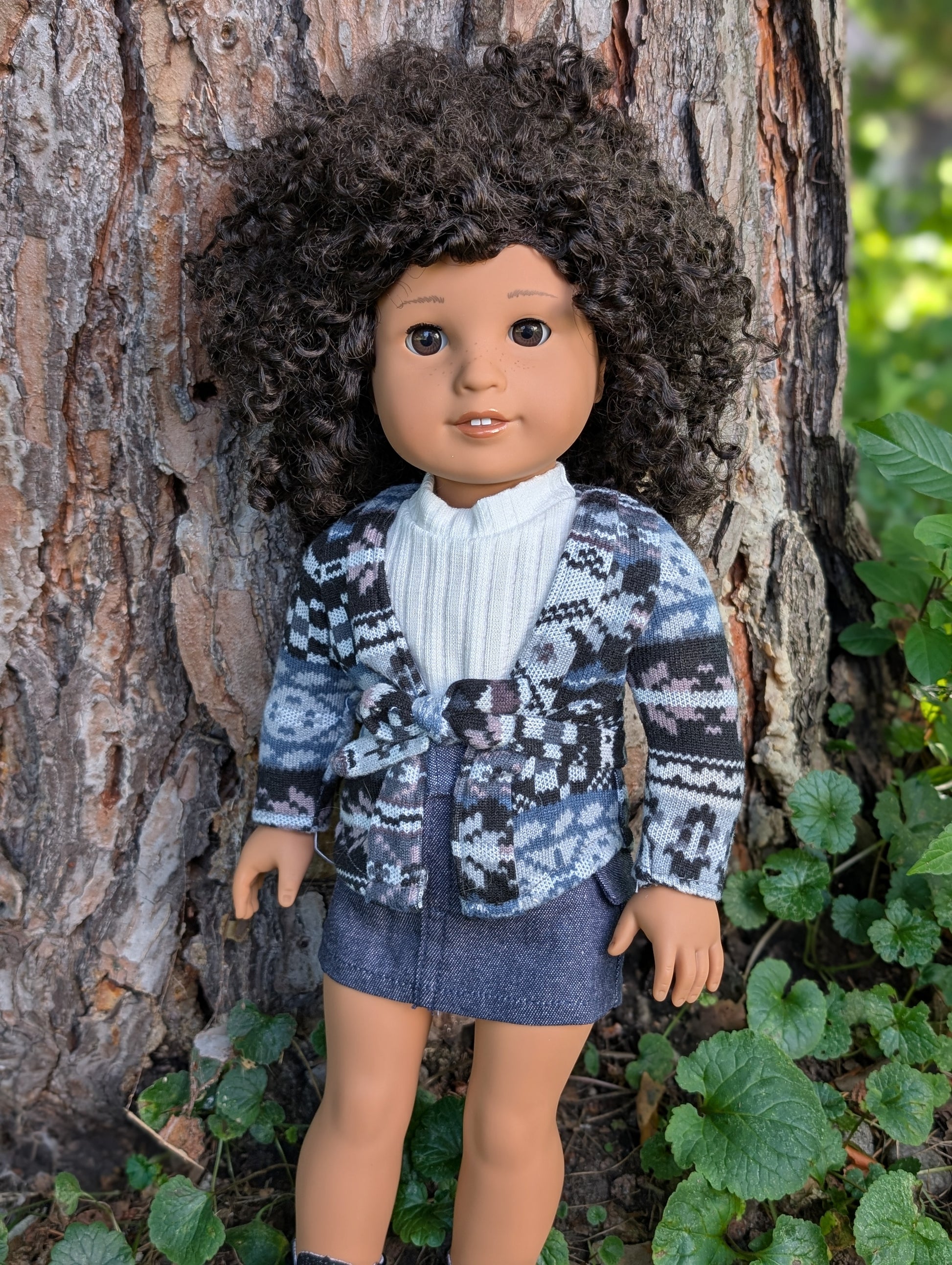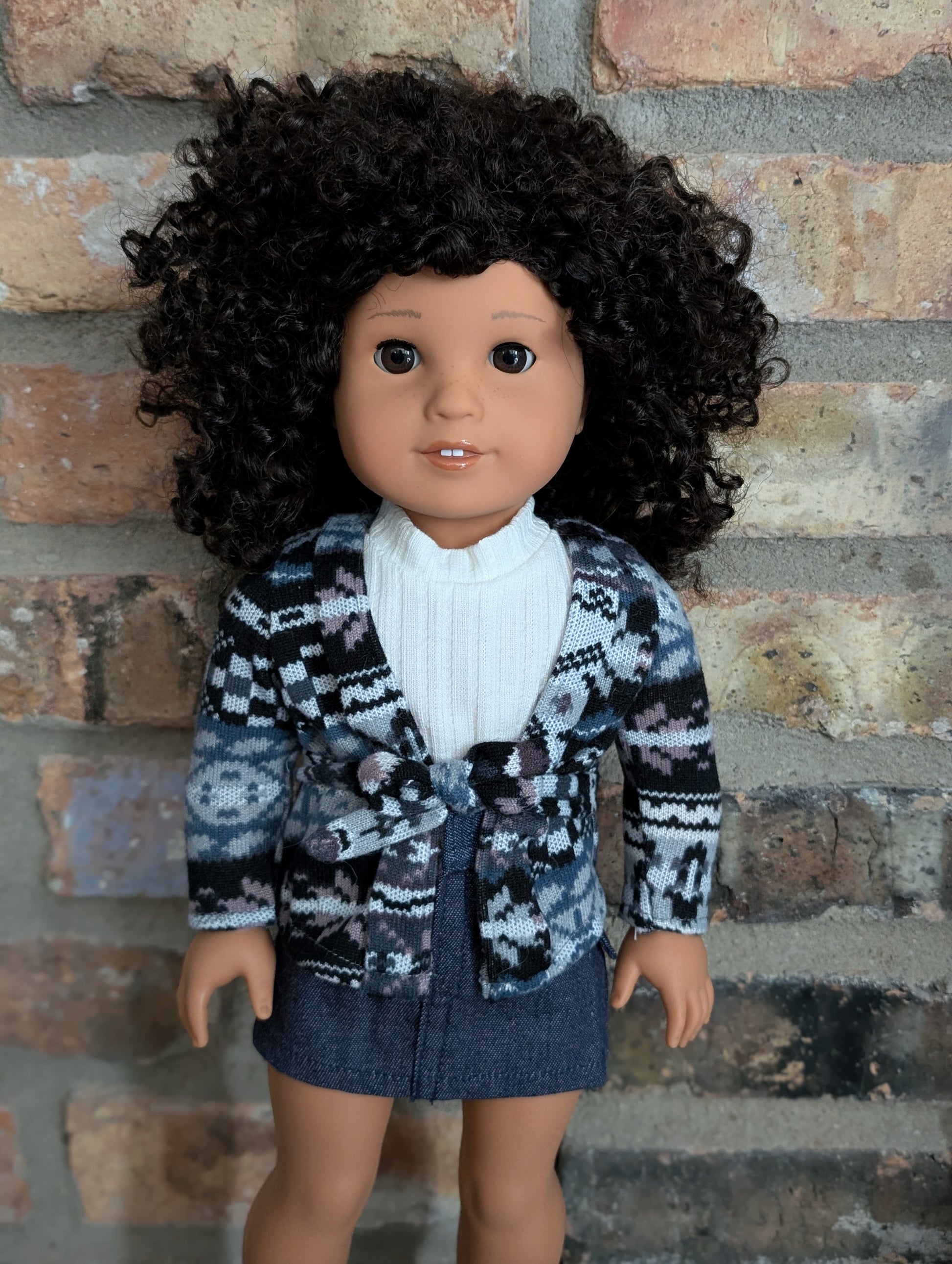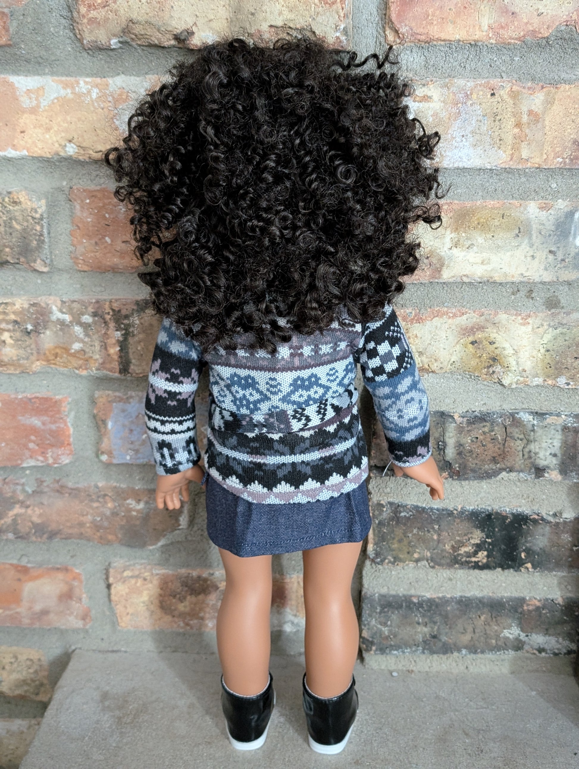 This one of a kind OOAK custom American Girl doll was created with a new doll, a dark brown wig, and brown eyes. She has lip gloss and freckles that were hand painted and sealed. She may have some minor shine marks from handling. She comes with the outfit pictured. She has the microfiber cloth body.