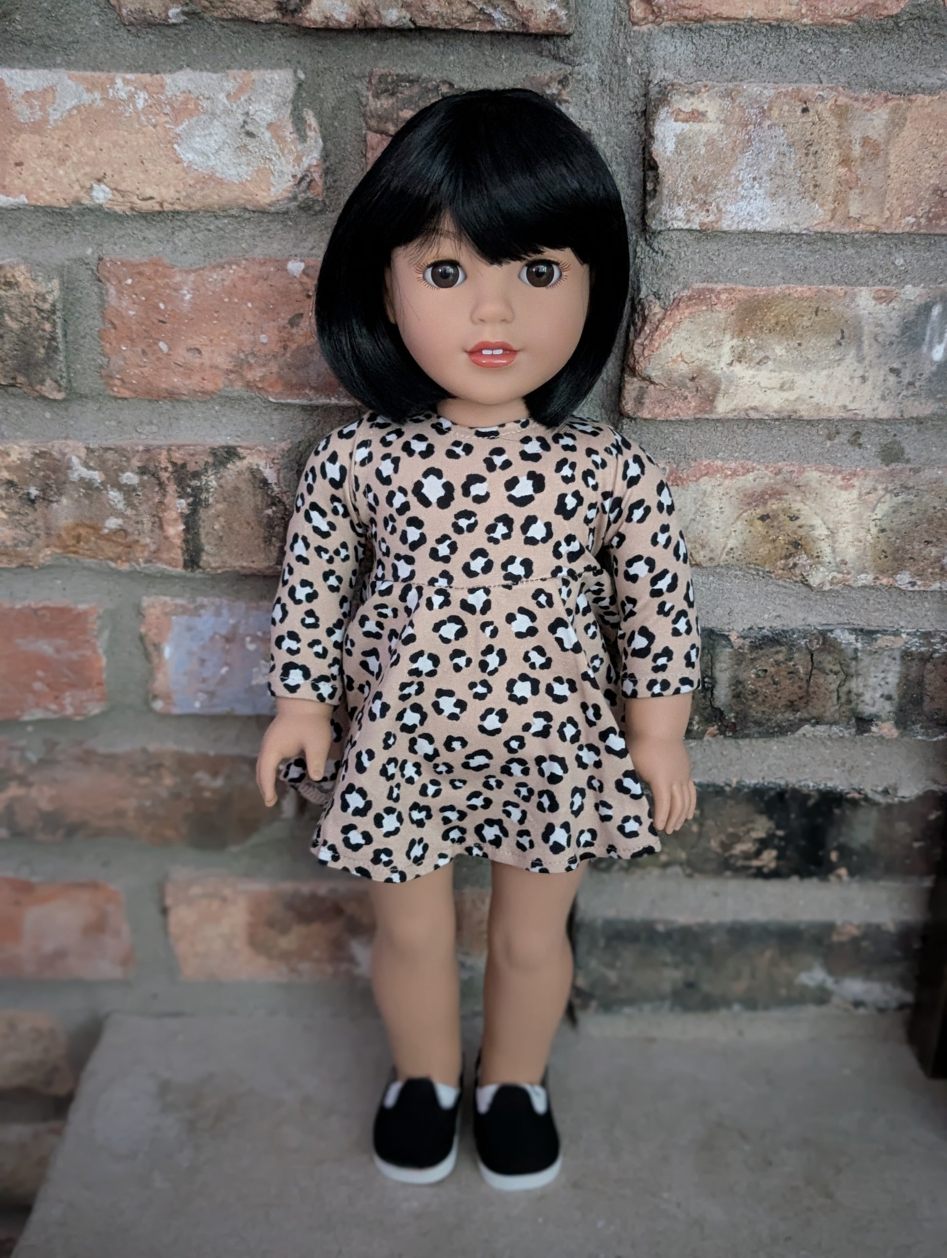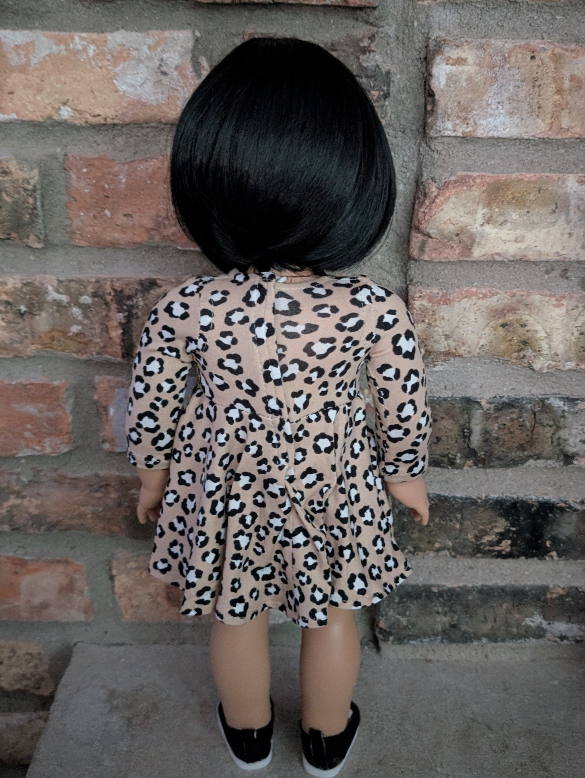 This one of a kind OOAK custom American Girl doll was created with a brand new doll, a black wig, and brown eyes. She has lip gloss that was hand painted and sealed. She may have some minor shine marks from handling. She comes with the outfit pictured.