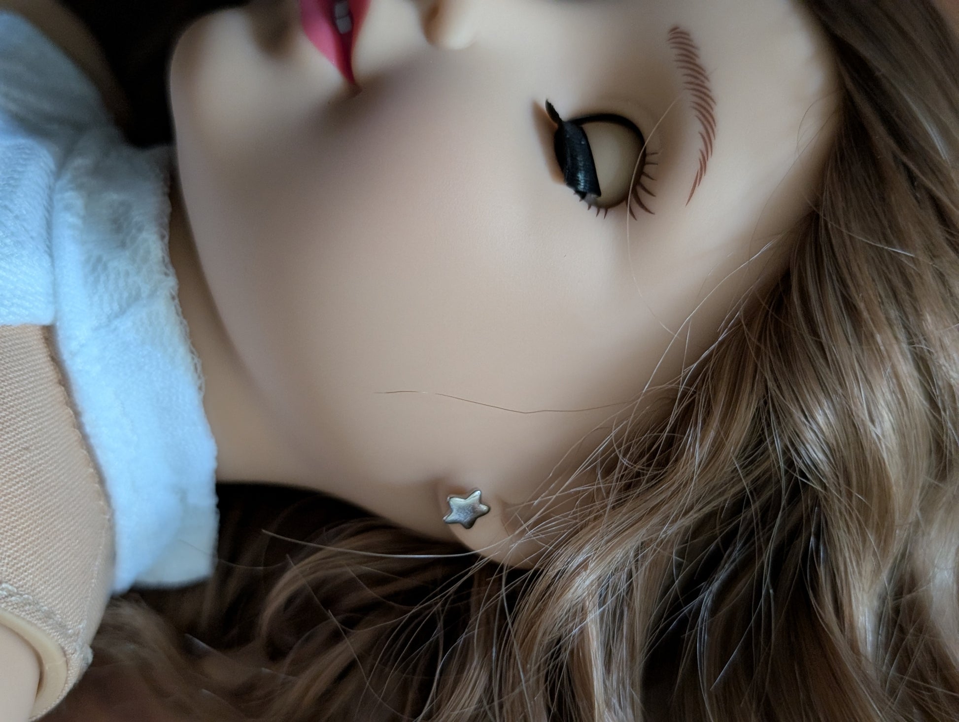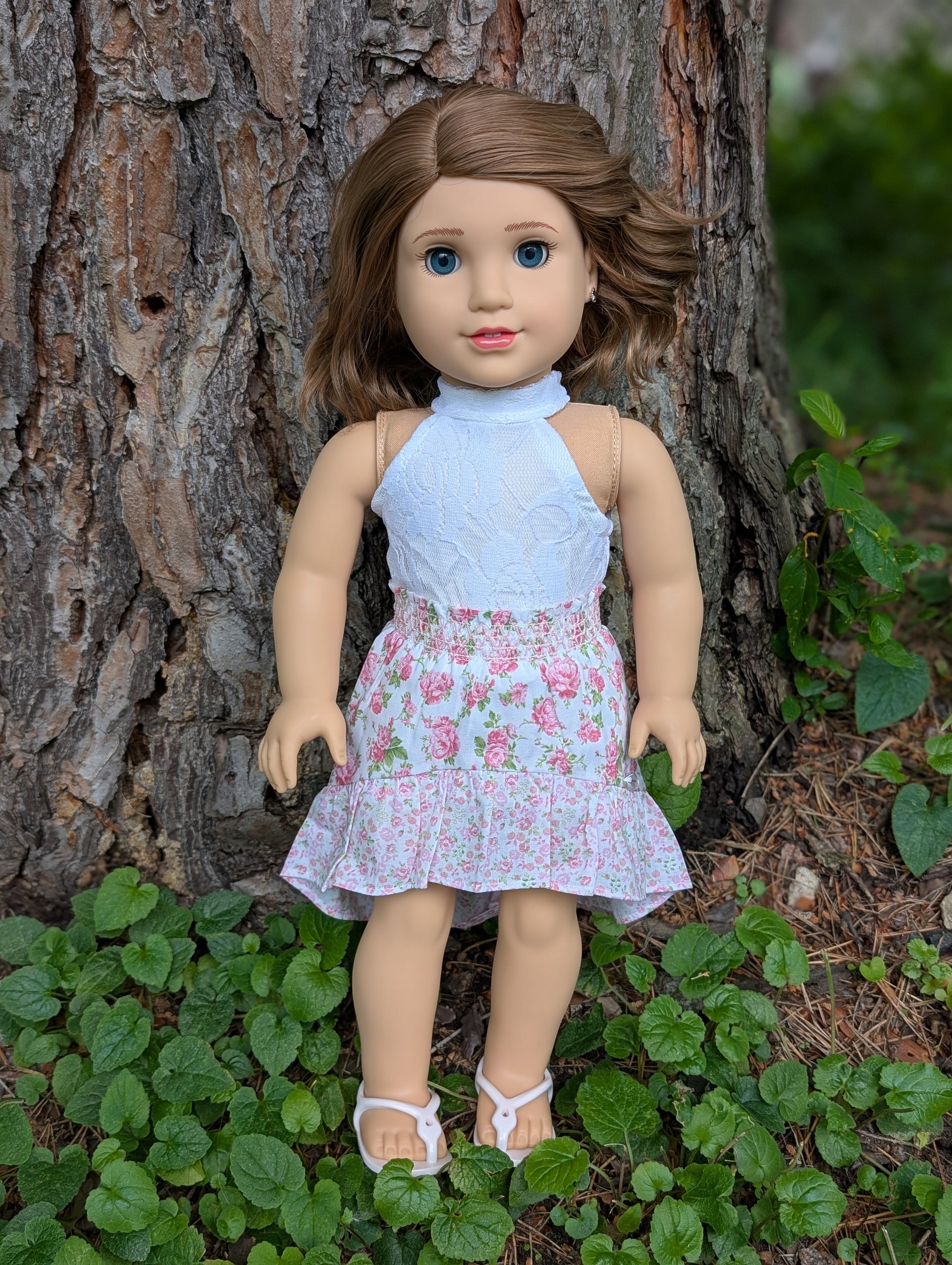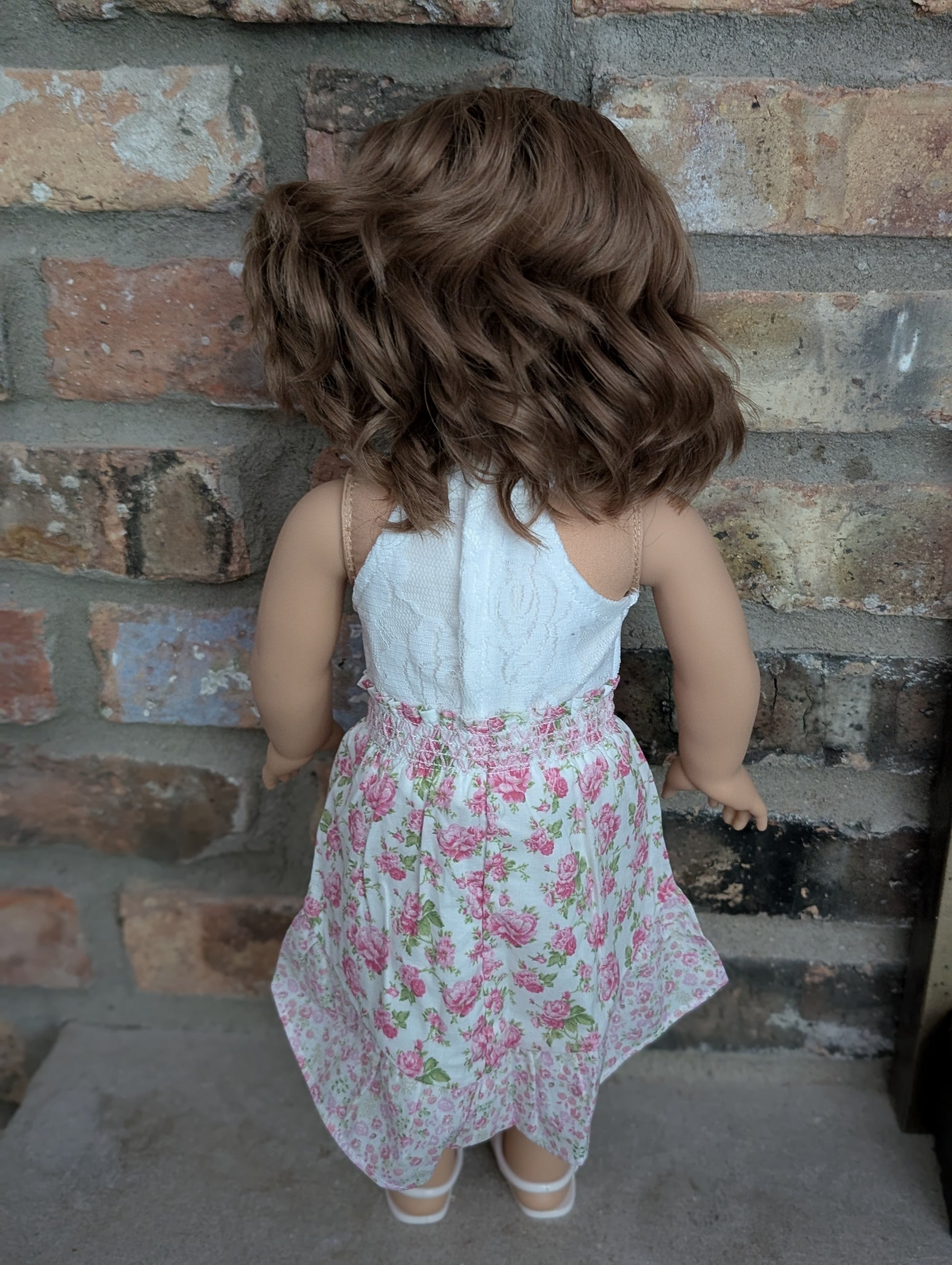 This one of a kind OOAK custom American Girl doll was created with a brand new Belle doll, a brown wig, and blue eyes. She has lip gloss that was hand painted and sealed. She may have some minor shine marks from handling. She comes with the outfit pictured. Her ears are pierced with American Girl doll sized earrings.