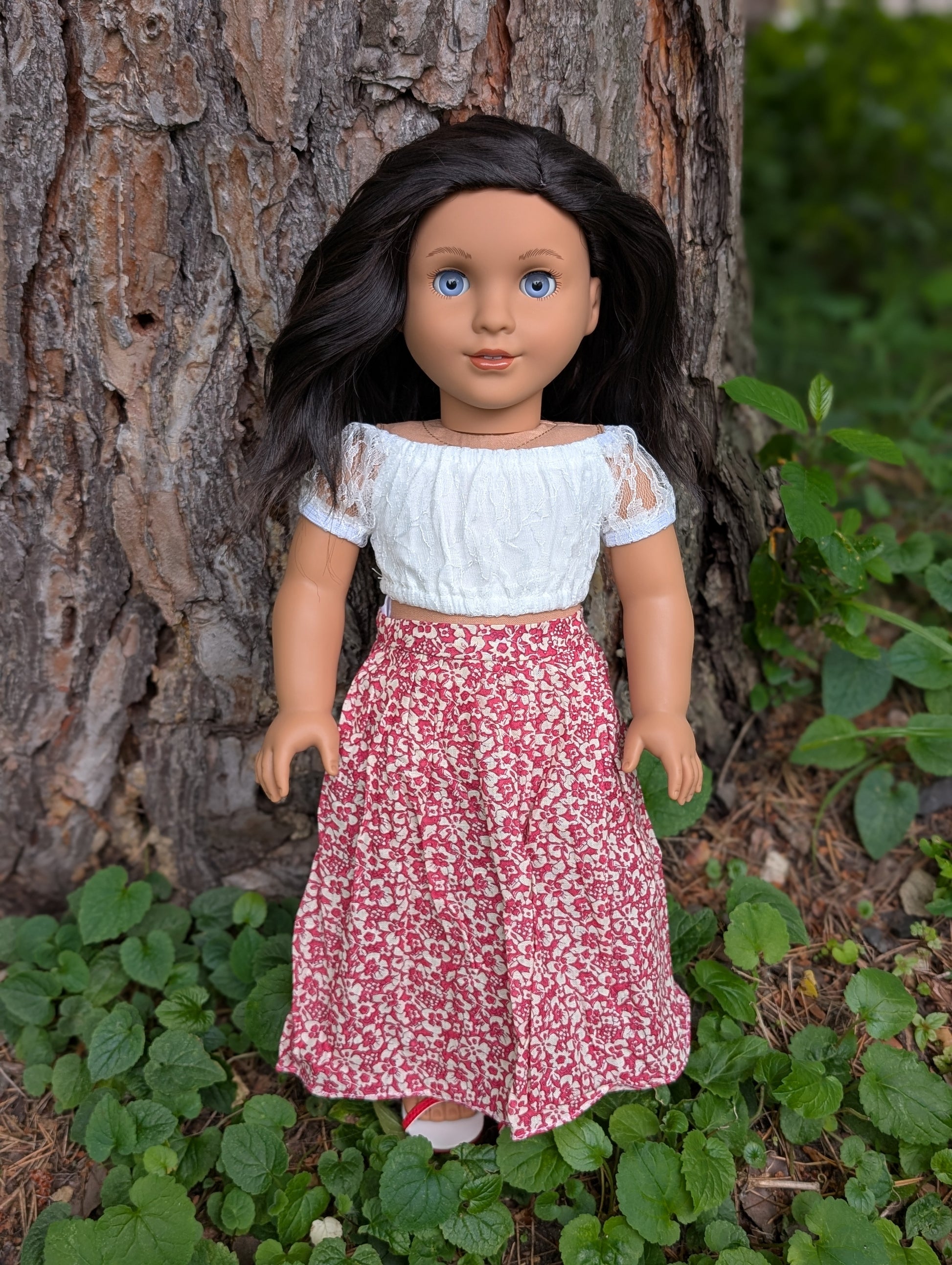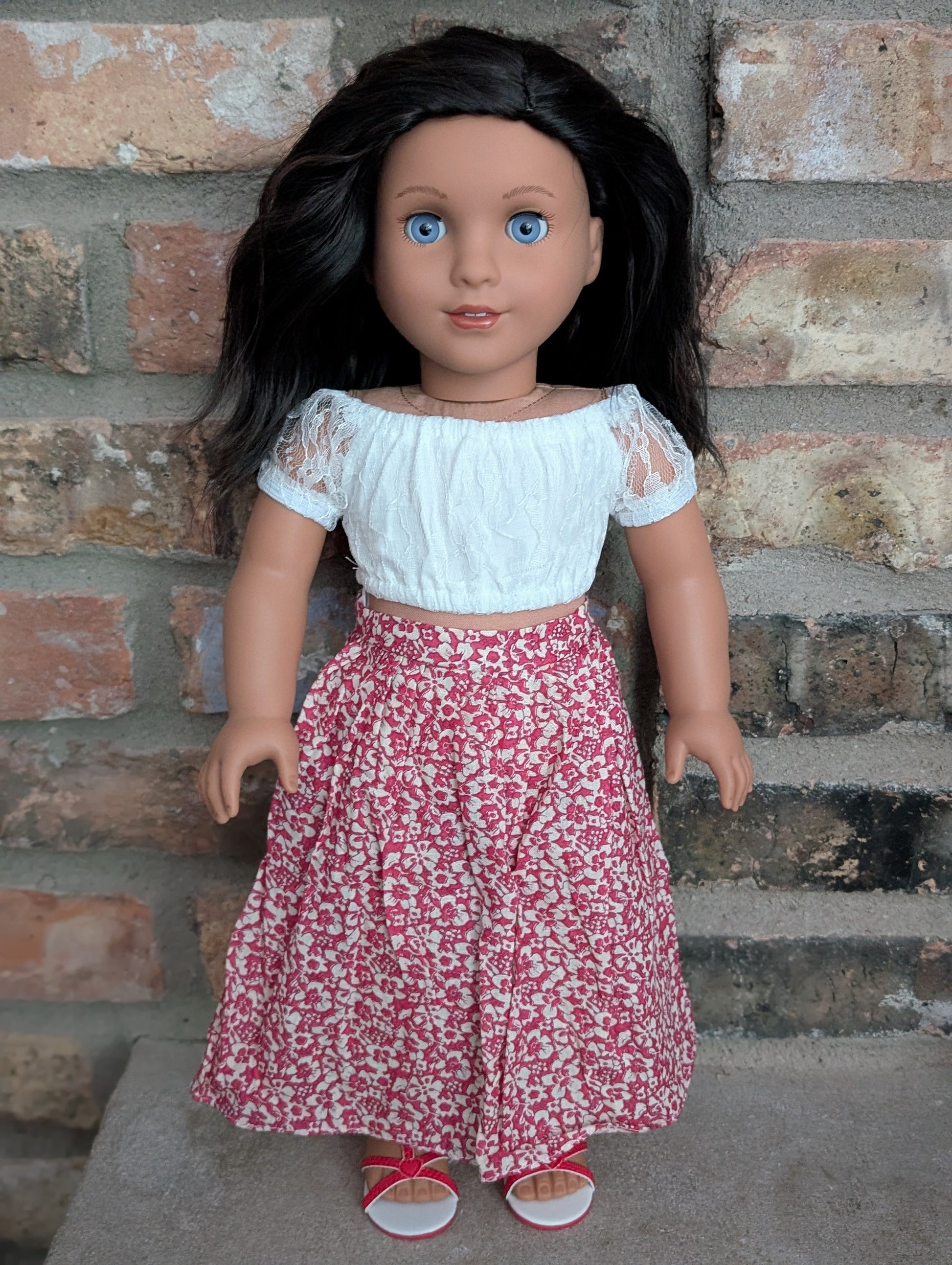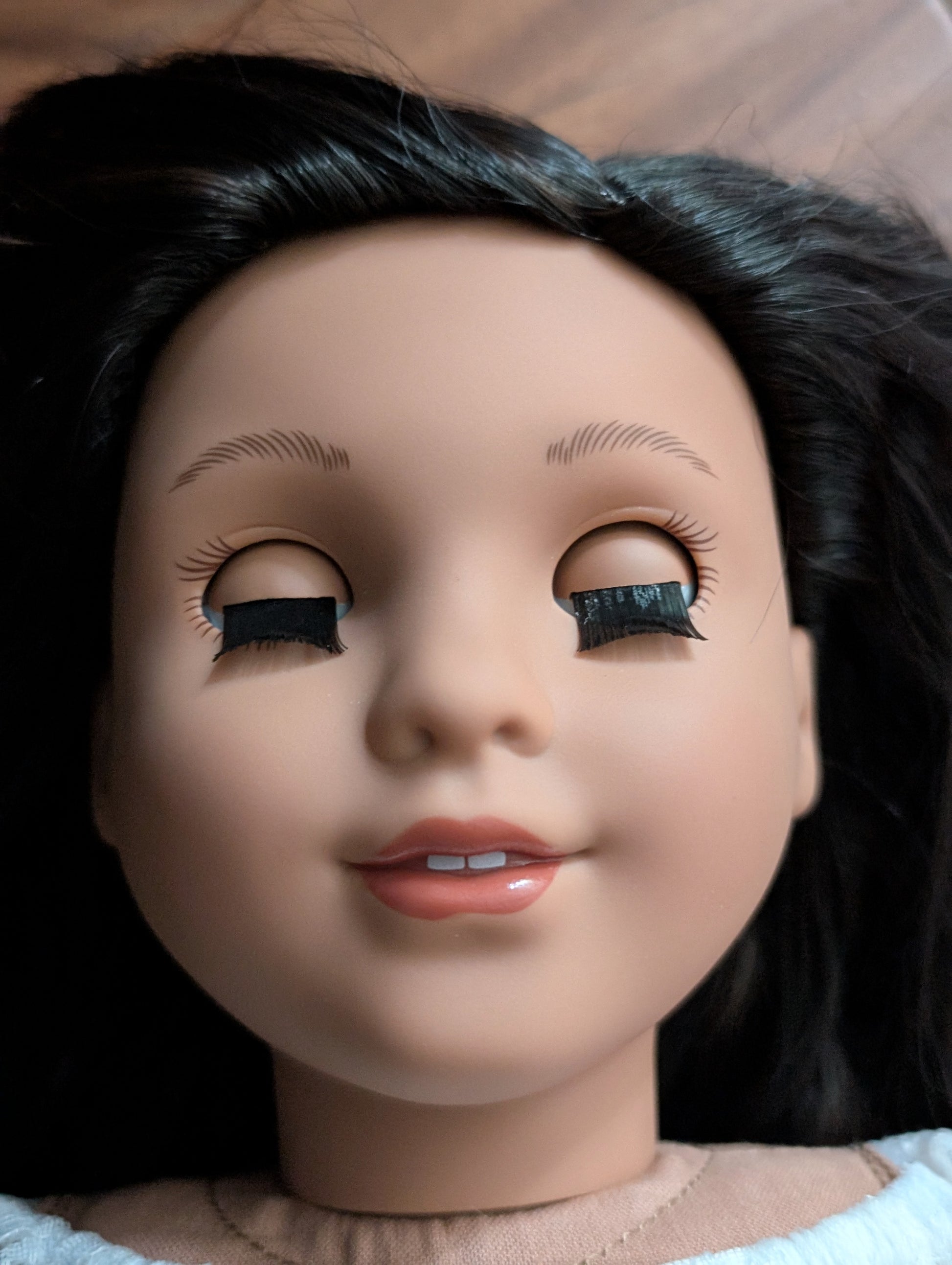 This one of a kind OOAK custom American Girl doll was created with a brand new doll, a dark brown wig, and blue from Etsy. She has lip gloss that was hand painted and sealed. She may have some minor shine marks from handling. She comes with the outfit pictured.