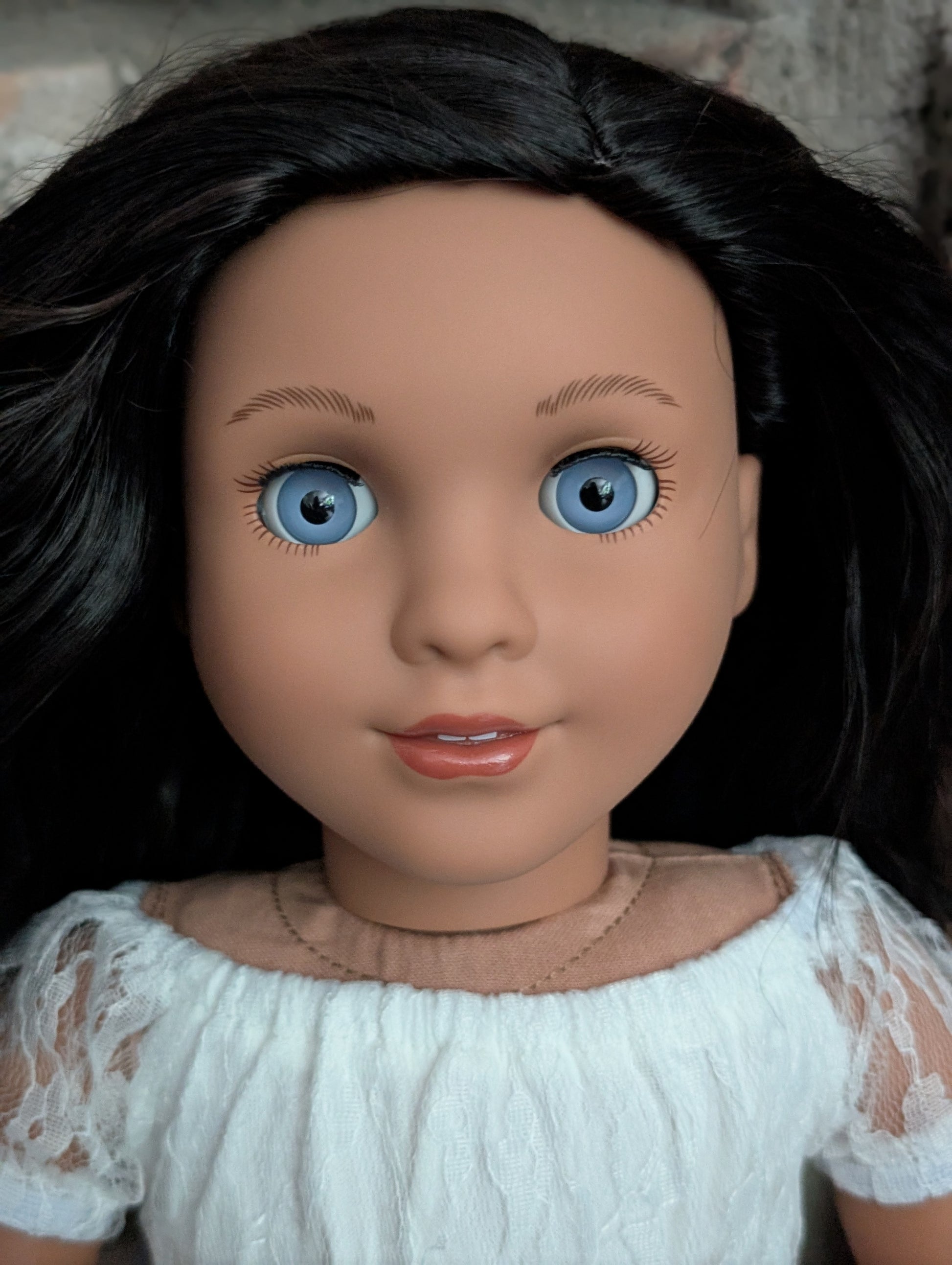 Laurell - dark brown hair, blue eyes, medium skin tone, Marie Grace face mold