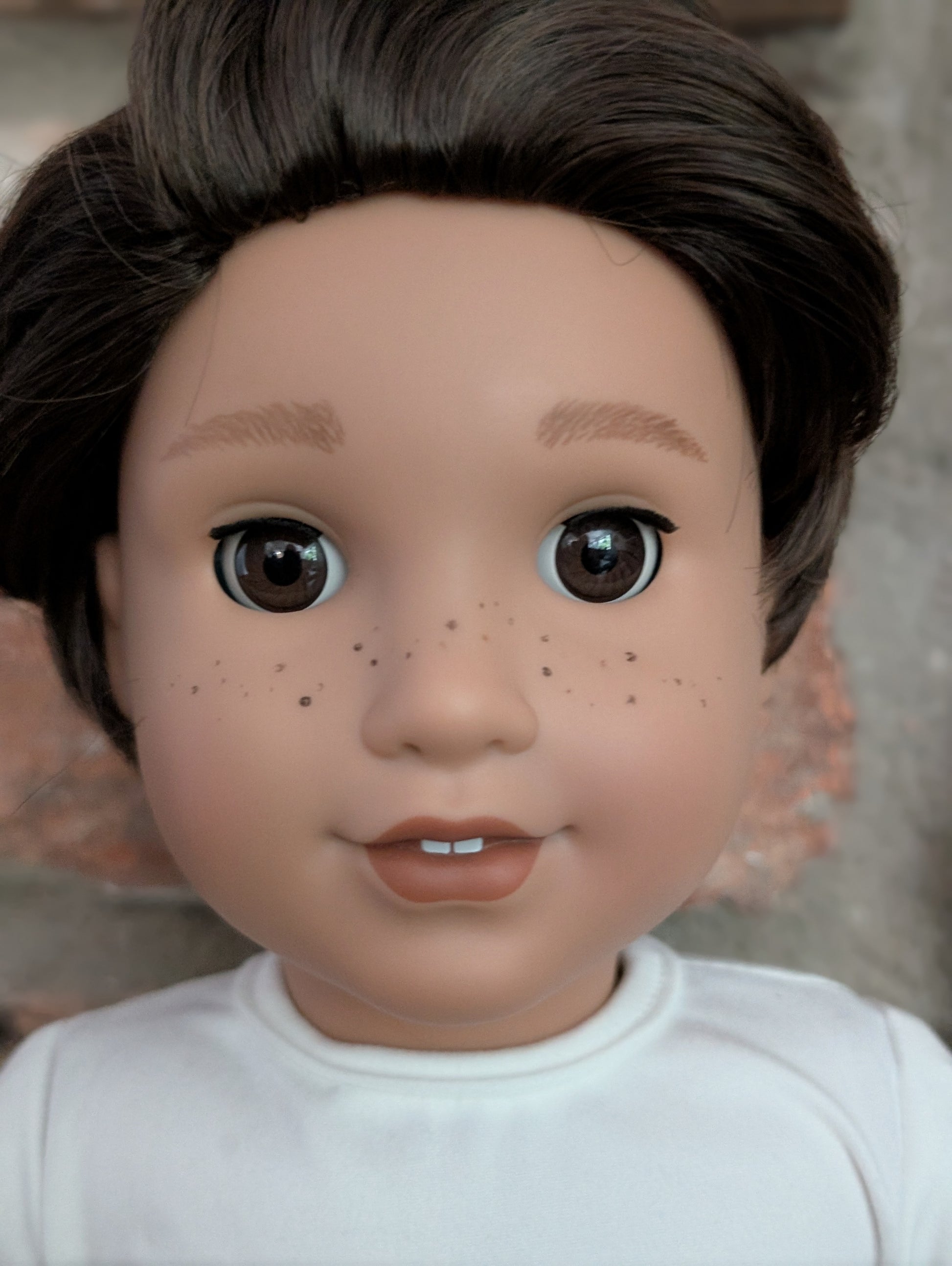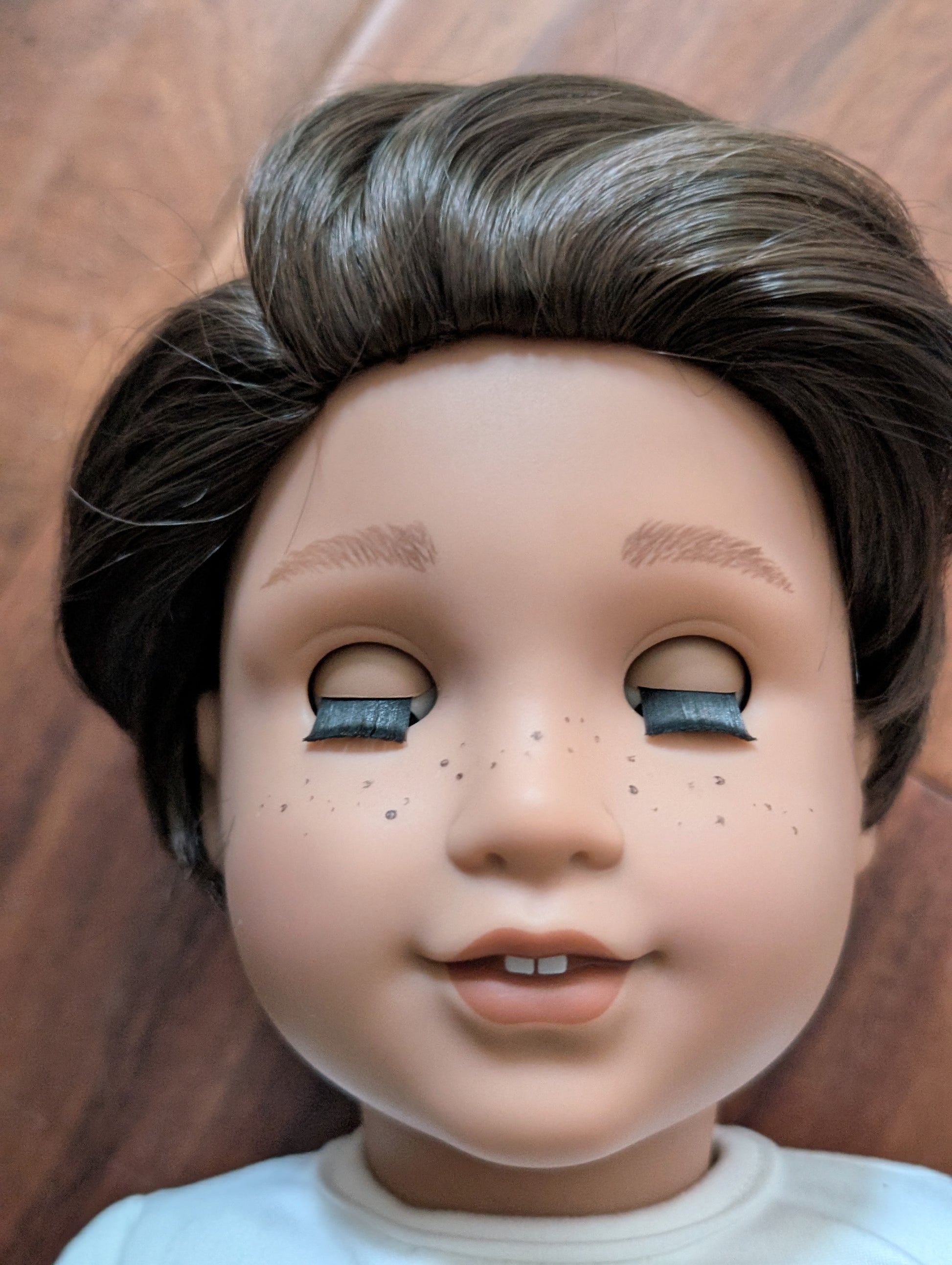 Lincoln - dark brown hair, brown eyes, medium skin tone, Josefina face mold, freckles