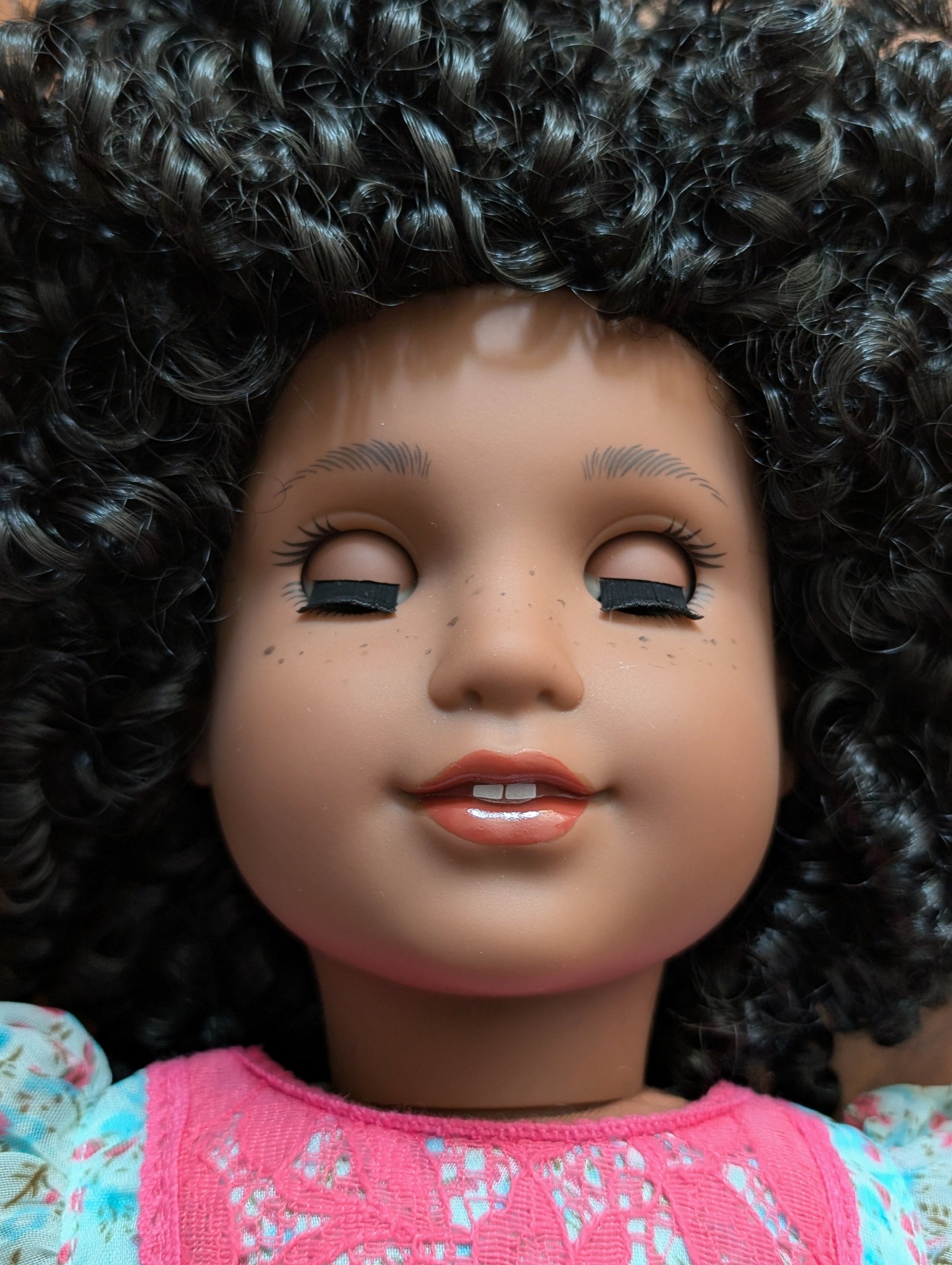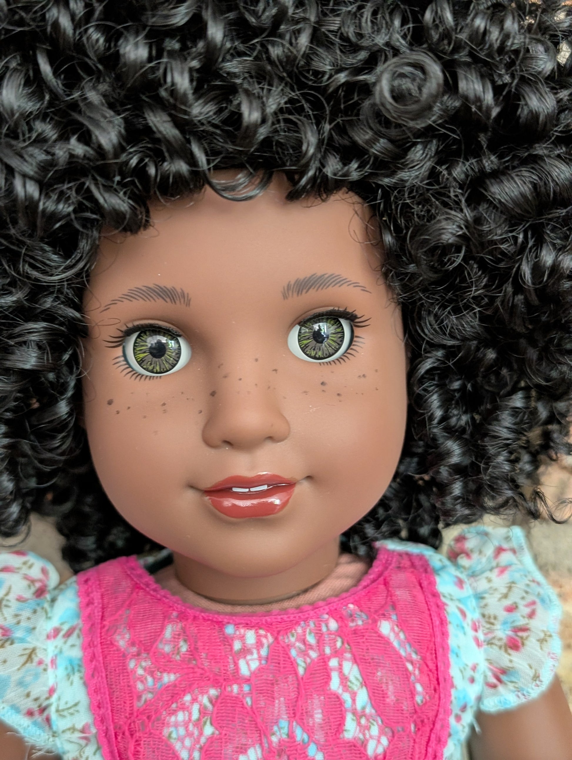 Morticia - black hair, hazel eyes, darkest skin tone, Josefina face mold, freckles