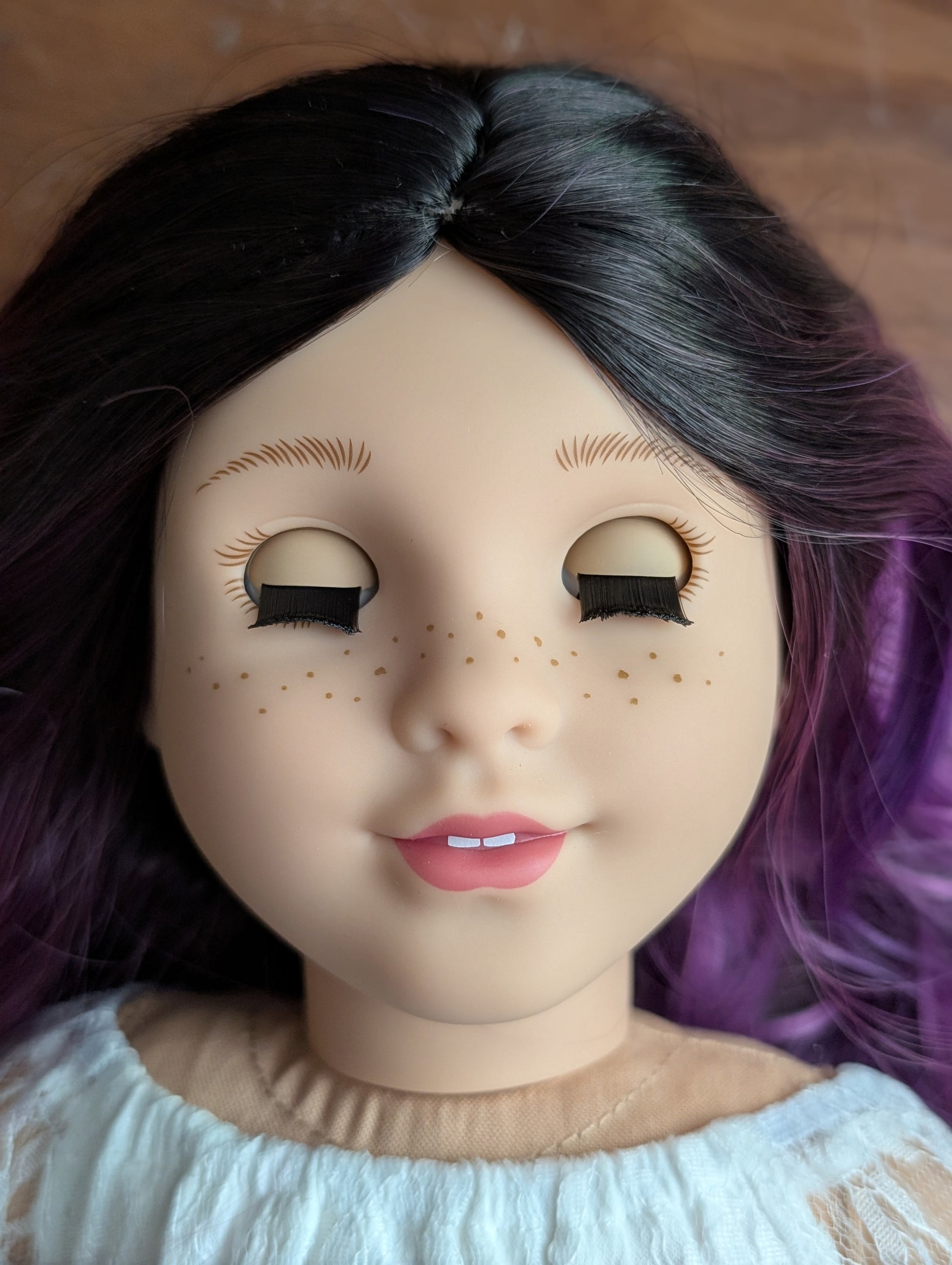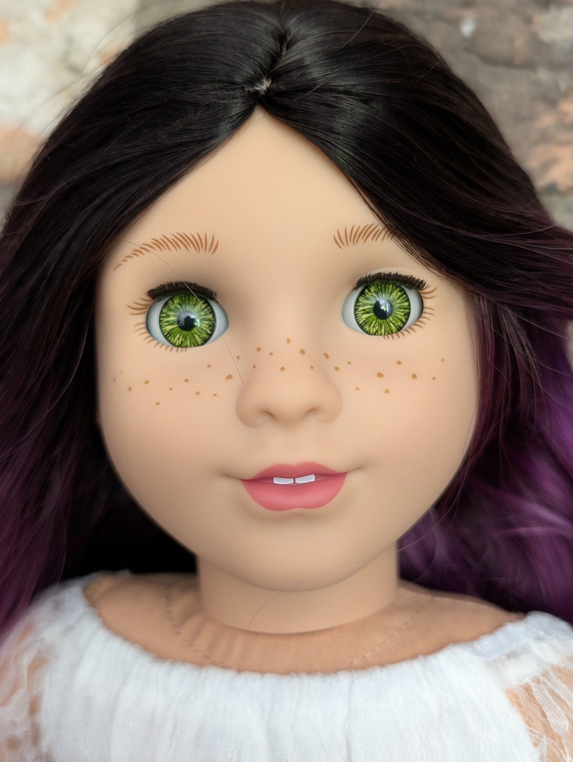 Custom - purple hair, green eyes, lightest skin tone, Marie Grace face mold, freckles