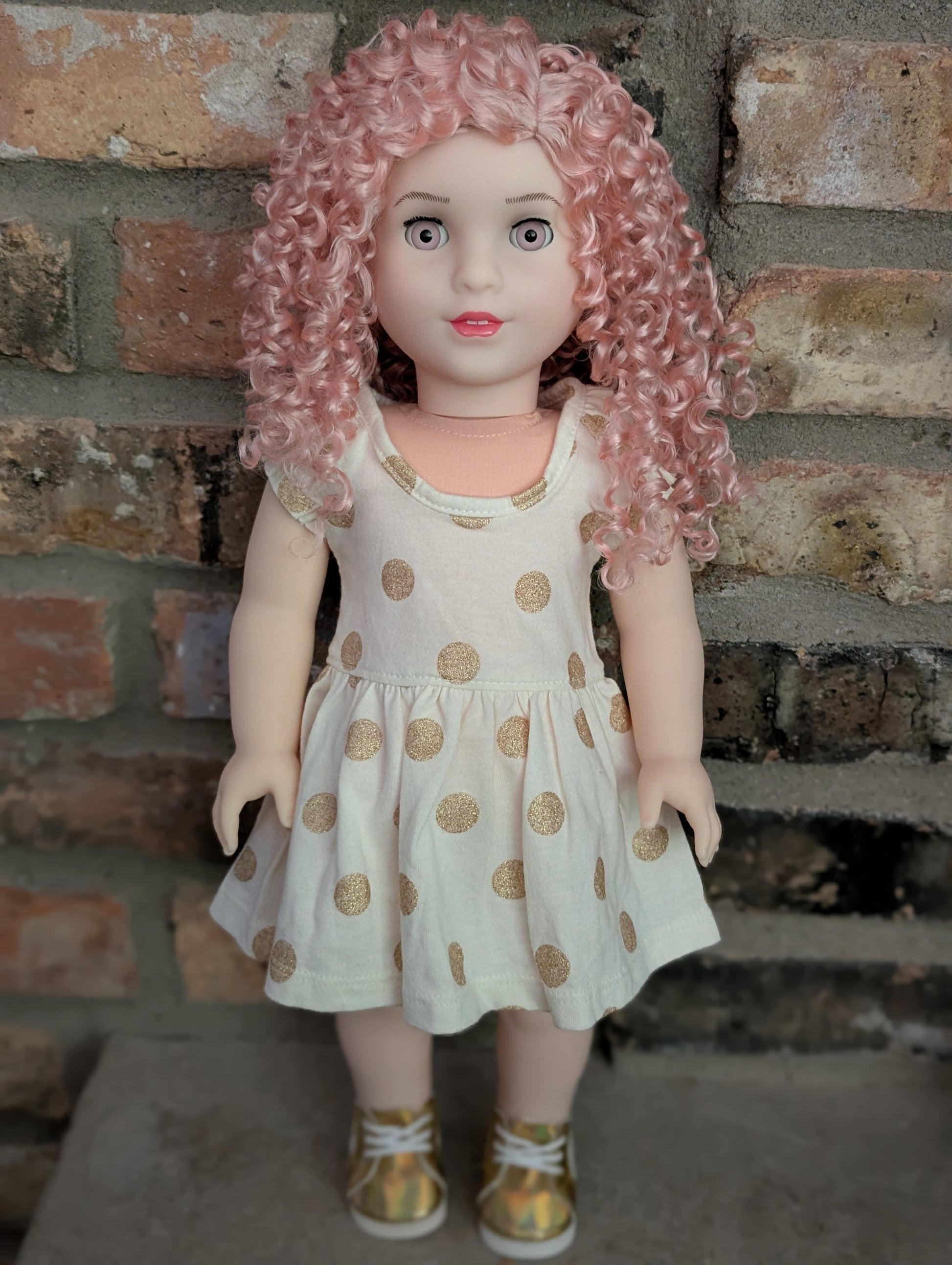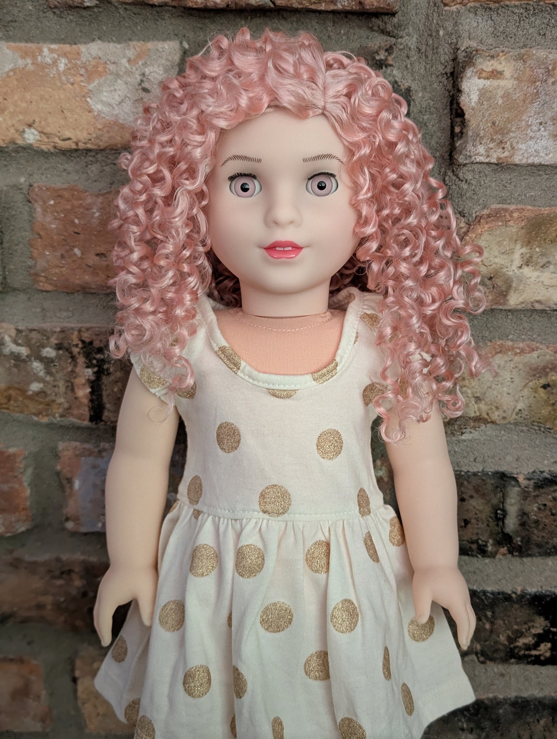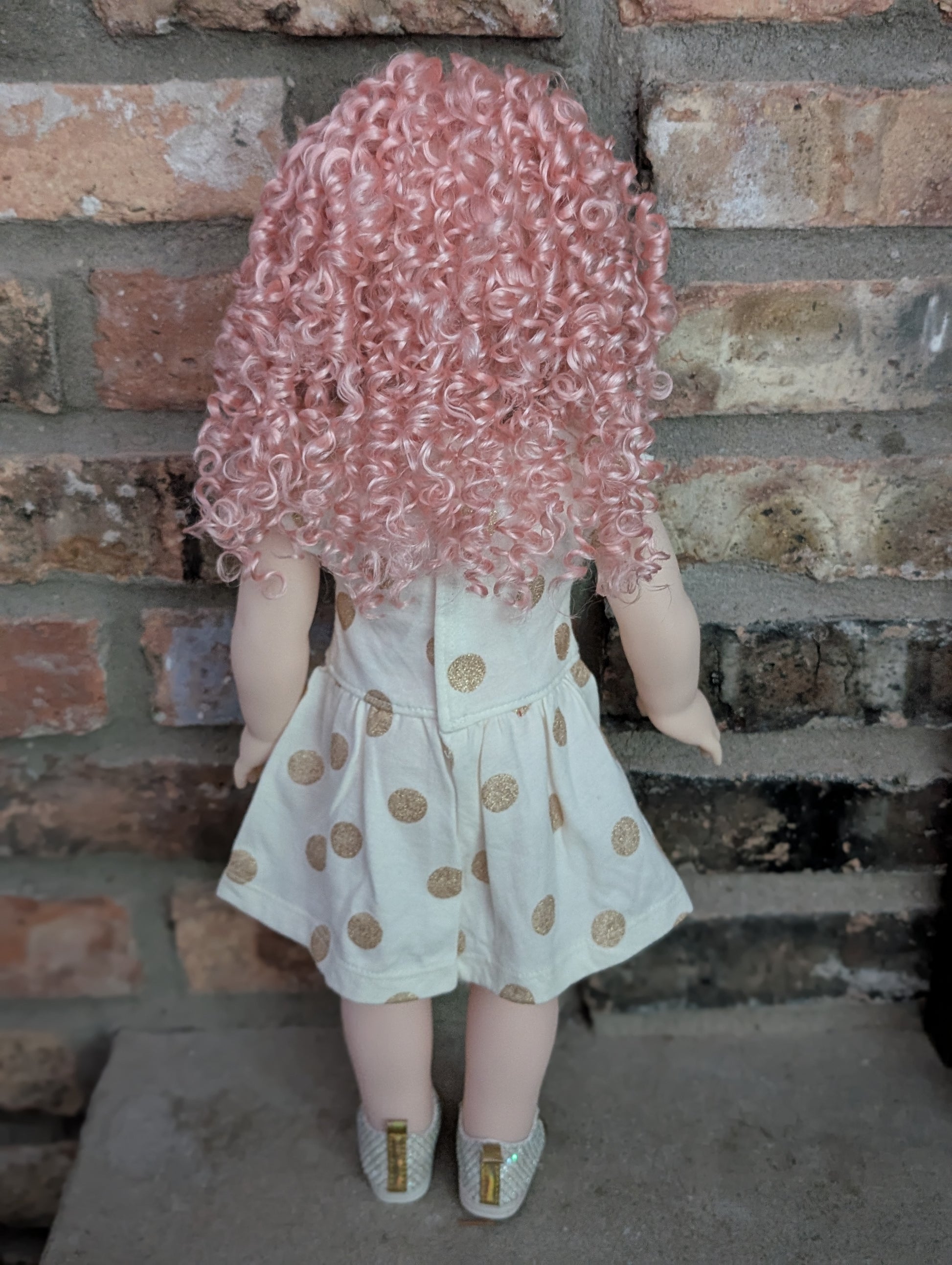 This one of a kind OOAK custom American Girl doll was created with a brand new Elsa doll, a pink wig, and pink eyes. She has lip gloss that was hand painted and sealed. She may have some minor shine marks from handling. She comes with the outfit pictured.